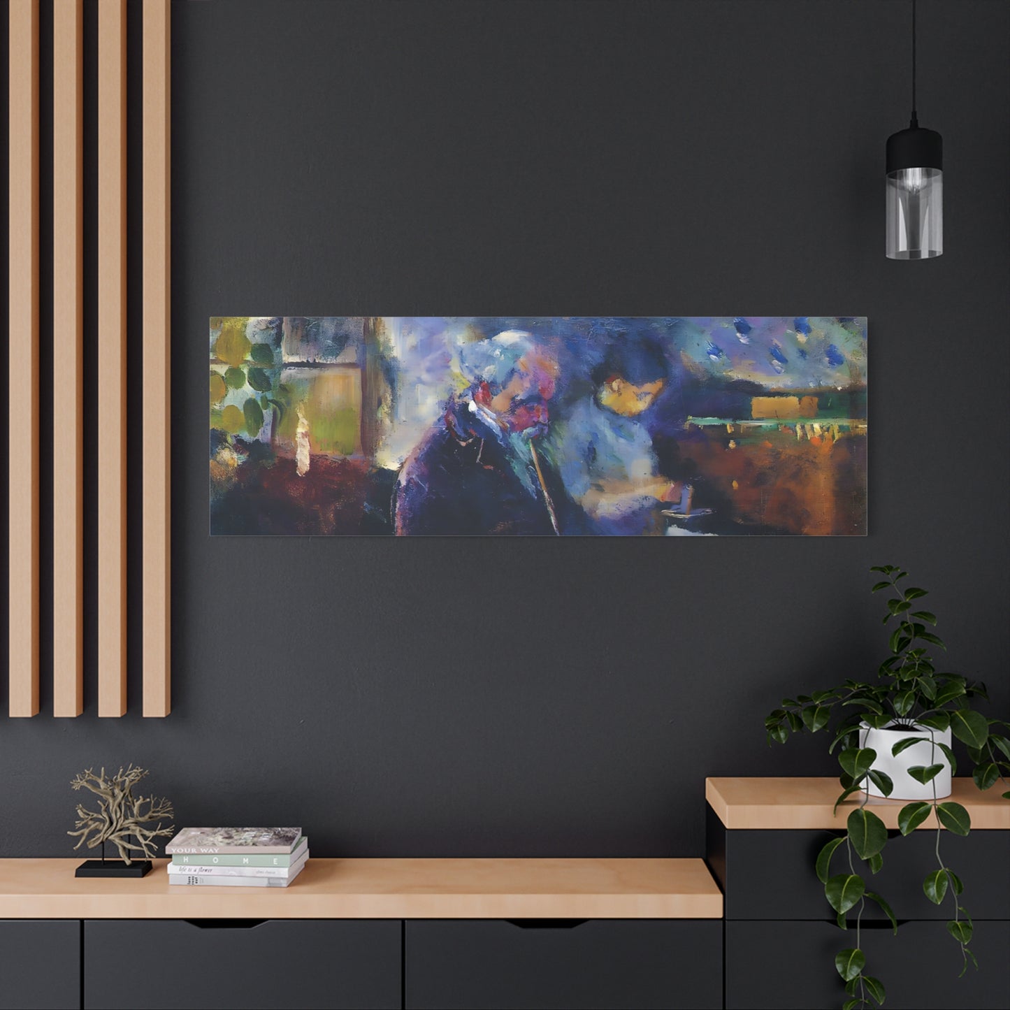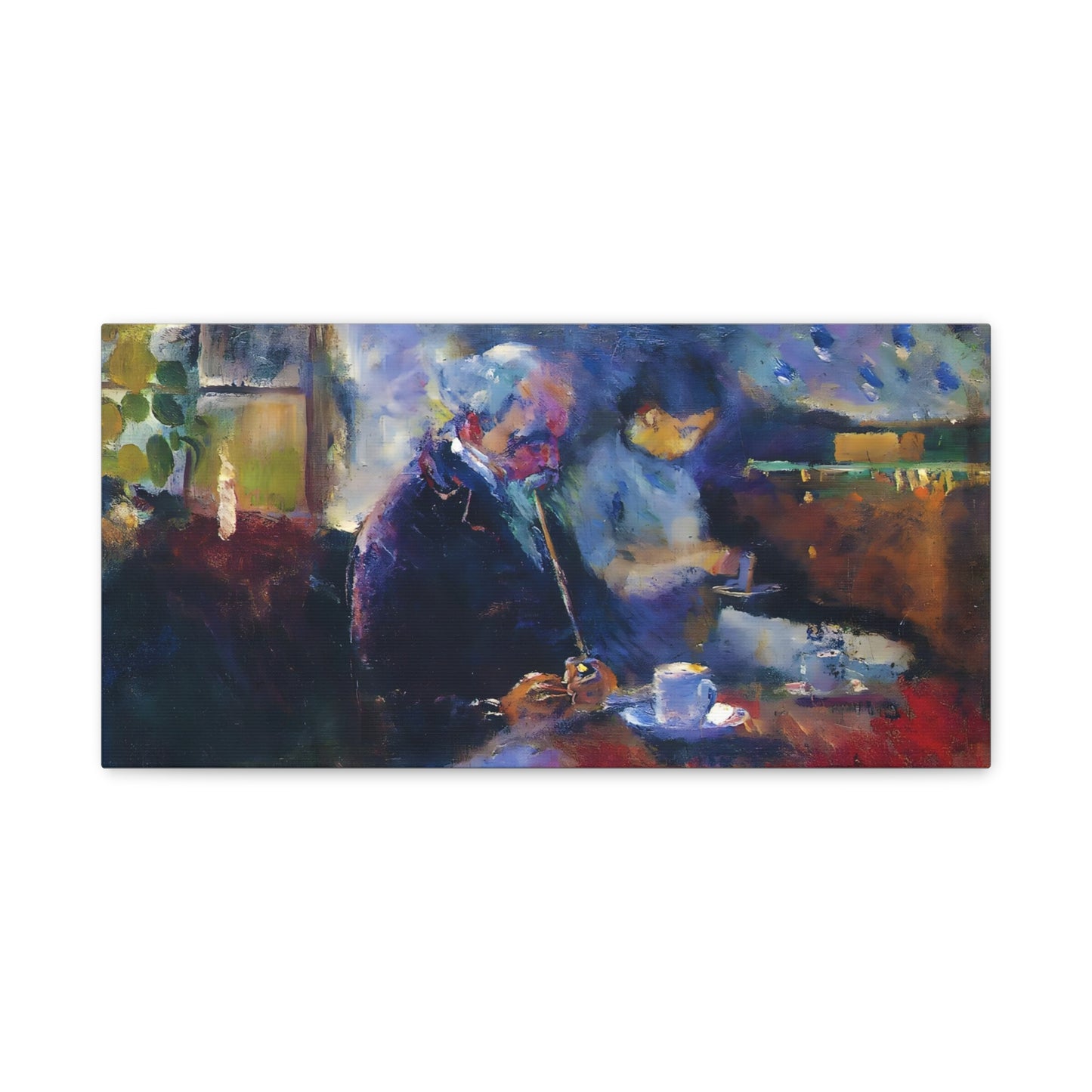 Step into a world of enchantment with At the Coffee Table by the legendary artist Edvard Munch, a spellbinding masterpiece crafted in 1902. Prepare to be transported to a mesmerizing scene where time stands still, as two figures engage in a clandestine rendezvous amidst an atmosphere charged with emotion. Munch's brushstrokes dance across the canvas, creating an electrifying interplay of light and shadow that brings the characters to life. This extraordinary artwork possesses a captivating power, drawing you into its realm and leaving you breathless with anticipation. With At the Coffee Table gracing your home, every moment becomes a tantalizing journey of exploration and connection, making it an absolute must-have for art connoisseurs seeking to elevate their space to new dimensions of excitement and intrigue.