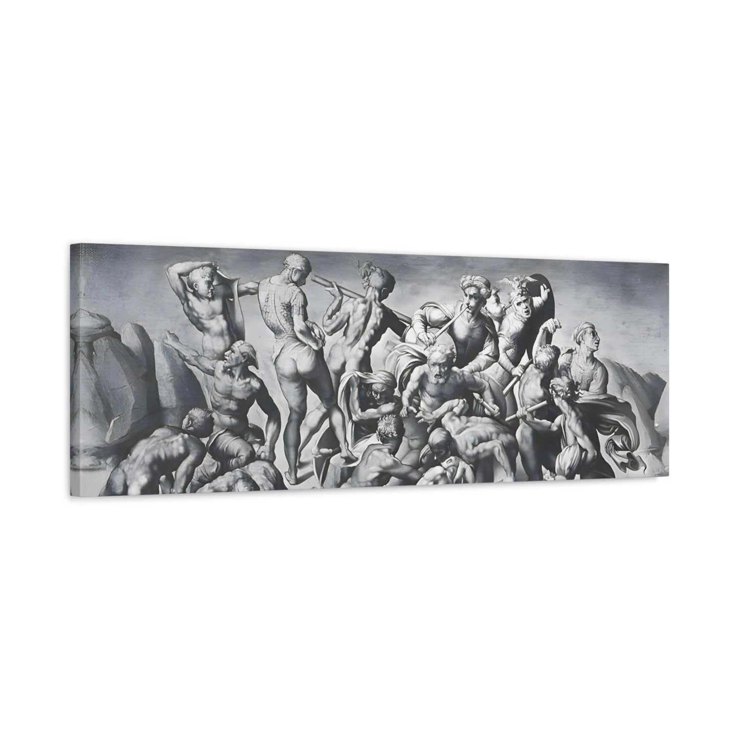 Experience the intensity and grandeur of Michelangelo's Battle of Cascina right in your own home! Created in 1504, this monumental artwork captures the chaos and power of a fierce battle scene. With its dynamic composition and muscular figures, this masterpiece showcases Michelangelo's extraordinary talent as a sculptor and painter. Imagine the impact this iconic artwork will have on your walls, immersing you in the raw energy of the Renaissance era. Our canvas art replication beautifully captures the intricate details and dramatic atmosphere of the original, allowing you to own a piece of history. Don't miss the opportunity to bring the spirit of Michelangelo's Battle of Cascina into your home and let its epic storytelling captivate your space.