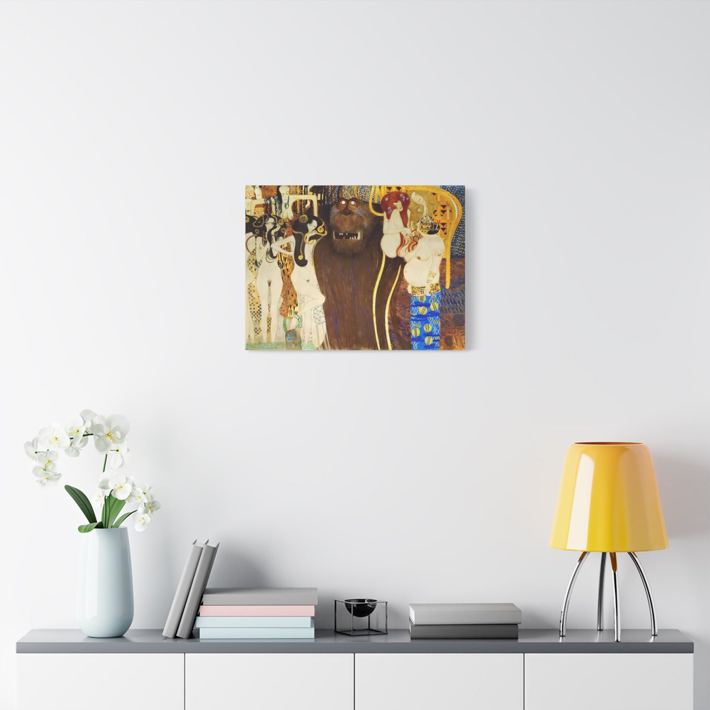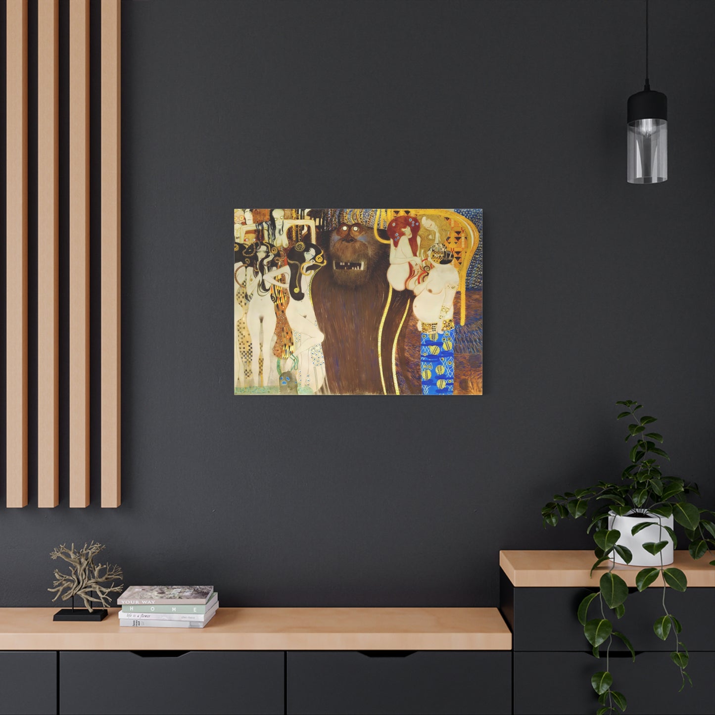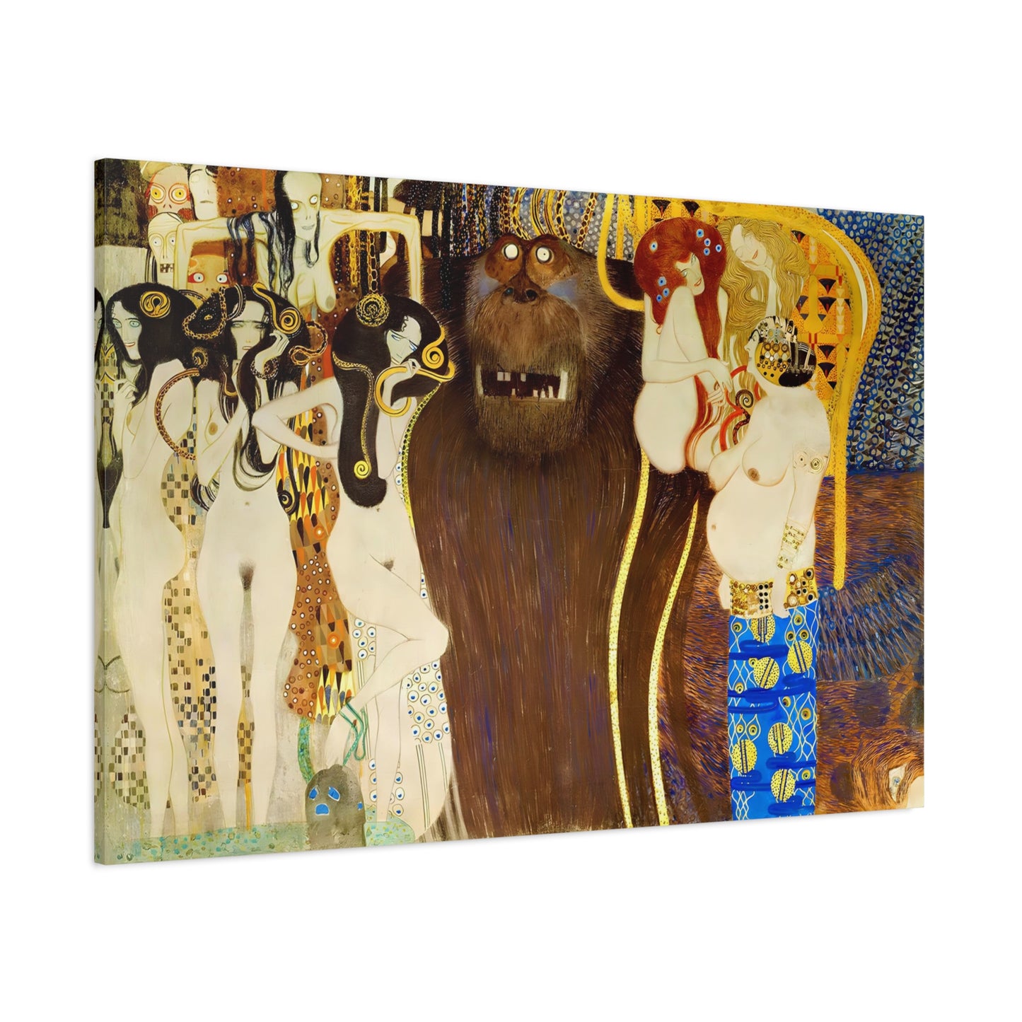 Immerse yourself in the artistic genius of Gustav Klimt's "Beethoven Frieze," a captivating masterpiece created in 1902. Our remarkable canvas art replication allows you to bring home this extraordinary artwork, infusing your space with creativity and cultural significance. Experience the mesmerizing blend of intricate symbolism and vibrant colors that pay homage to Beethoven's Ninth Symphony. Let this awe-inspiring piece become the centerpiece of your home, sparking conversations and evoking a sense of awe. Don't miss the opportunity to own a replica of this iconic artwork, adding a touch of artistic grandeur and cultural heritage to your surroundings. Embrace the power of "Beethoven Frieze" and indulge in the magic of art in your own home.