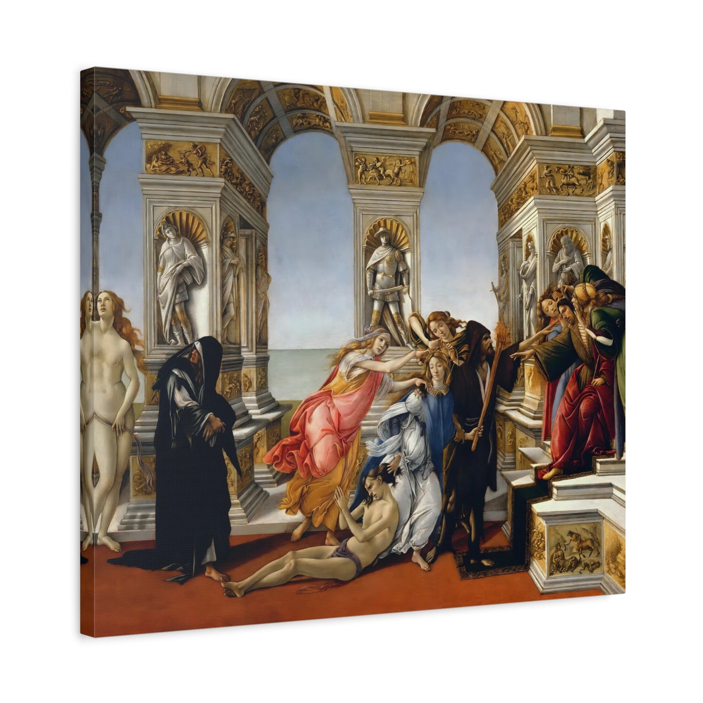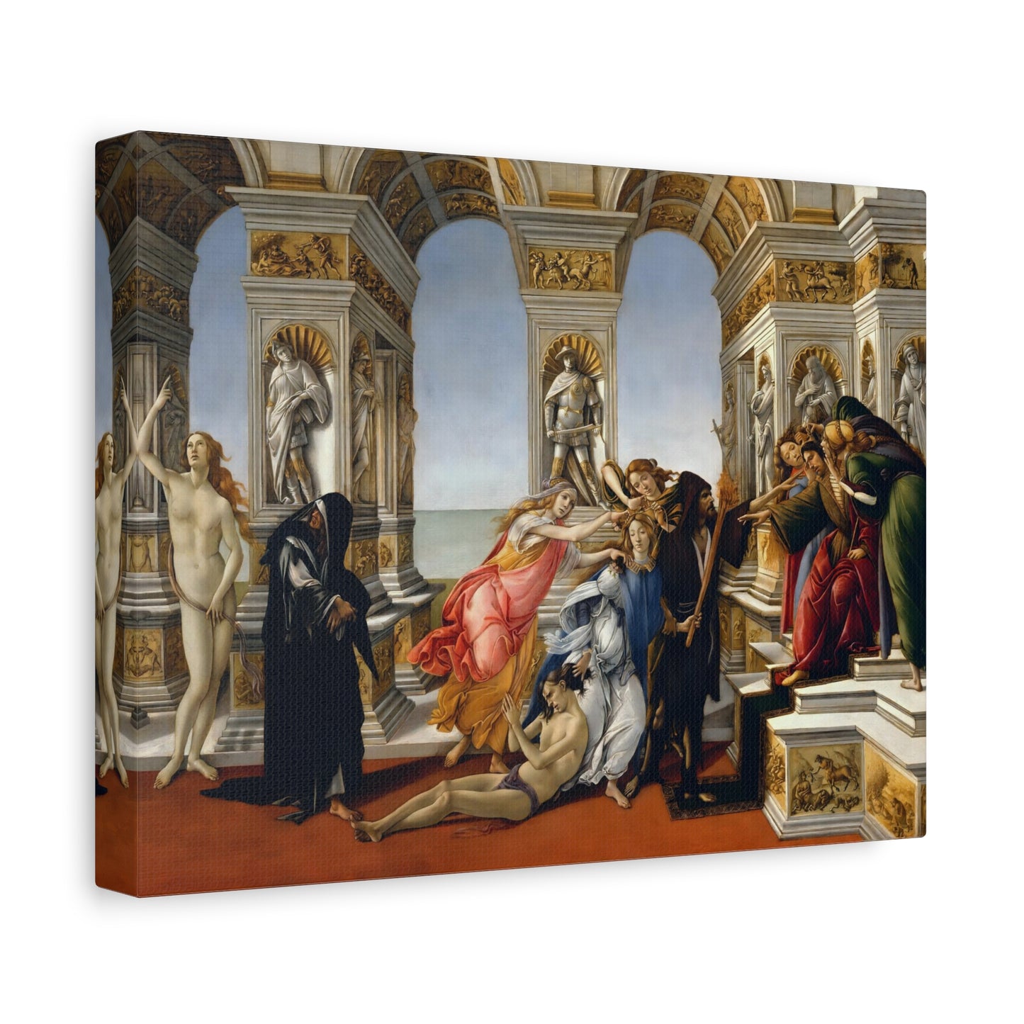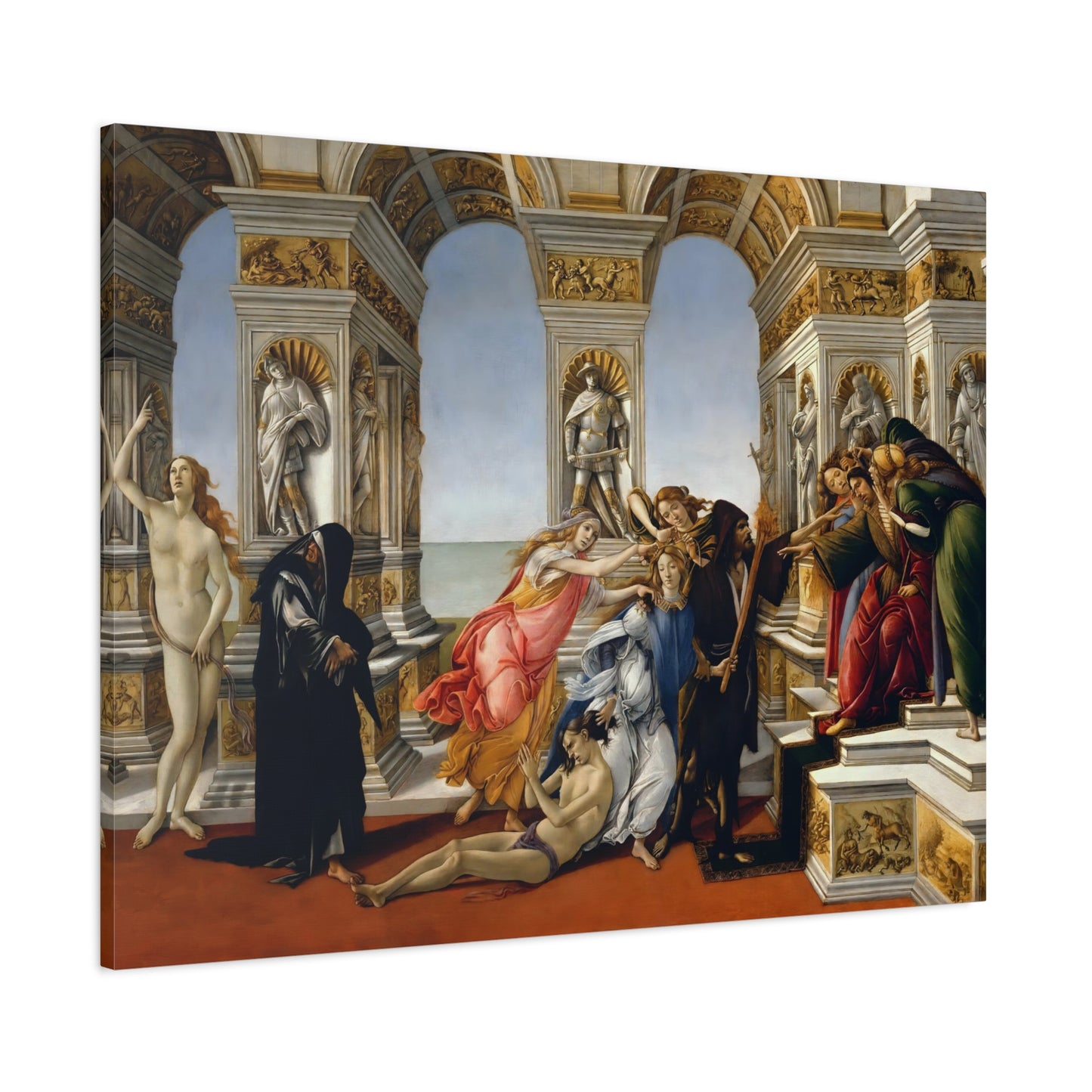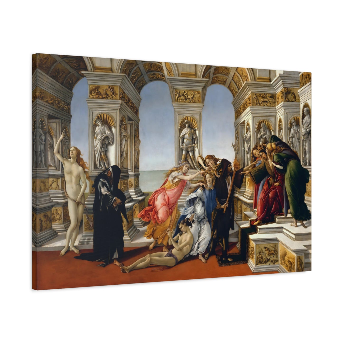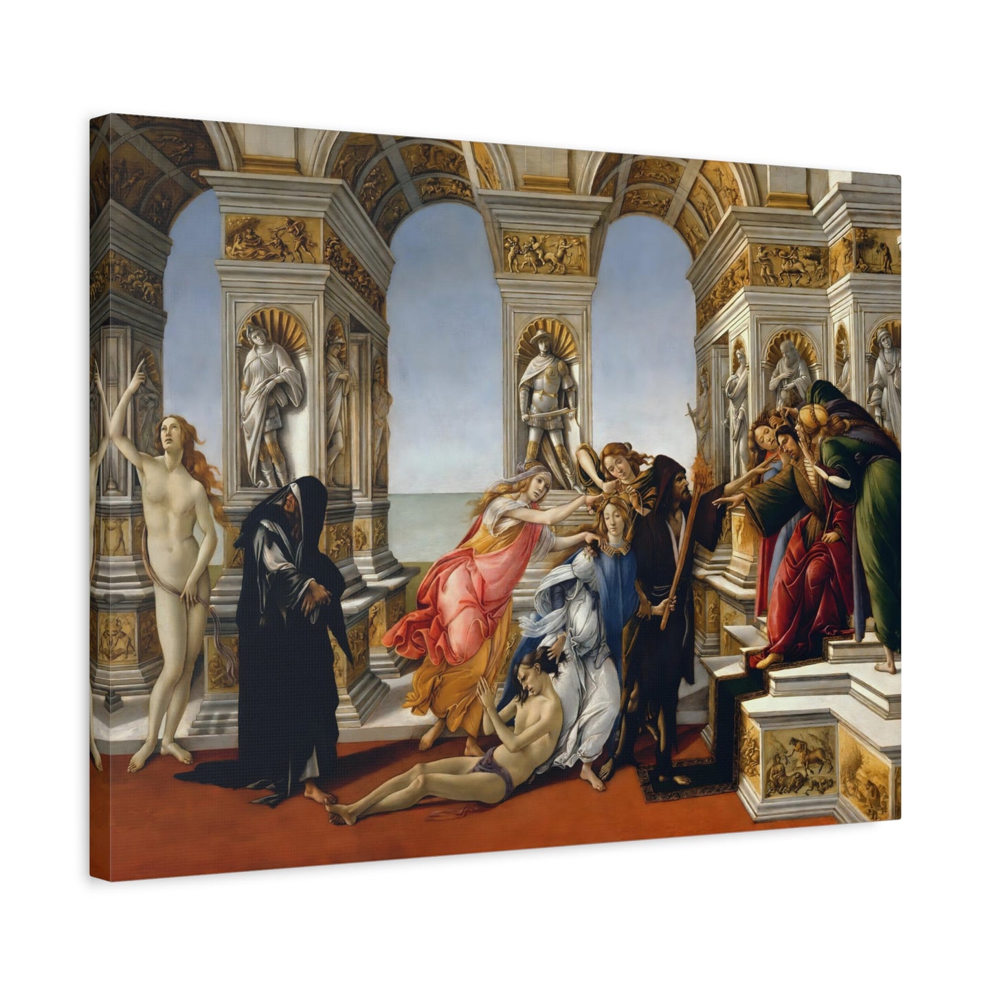 Experience the mesmerizing world of Sandro Botticelli's Calumny of Apelles, a masterpiece crafted in 1494. This extraordinary artwork depicts the powerful allegory of slander and deceit, inspired by the ancient Greek painter Apelles. With its intricate details and symbolic imagery, owning a canvas art replication of Calumny of Apelles adds an air of sophistication and intellectual depth to your home. Let the captivating composition and vibrant colors draw you into the narrative, as Botticelli masterfully captures the complexities of human nature and the consequences of false accusations. Embrace the opportunity to own a piece of art history and invite thought-provoking conversation into your living space. Discover the allure of Botticelli's genius and infuse your home with timeless elegance.