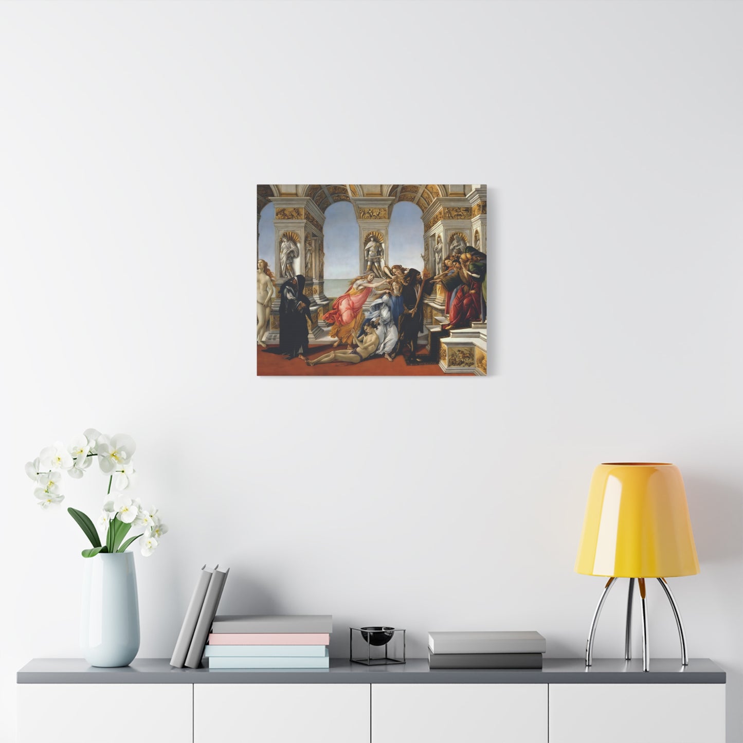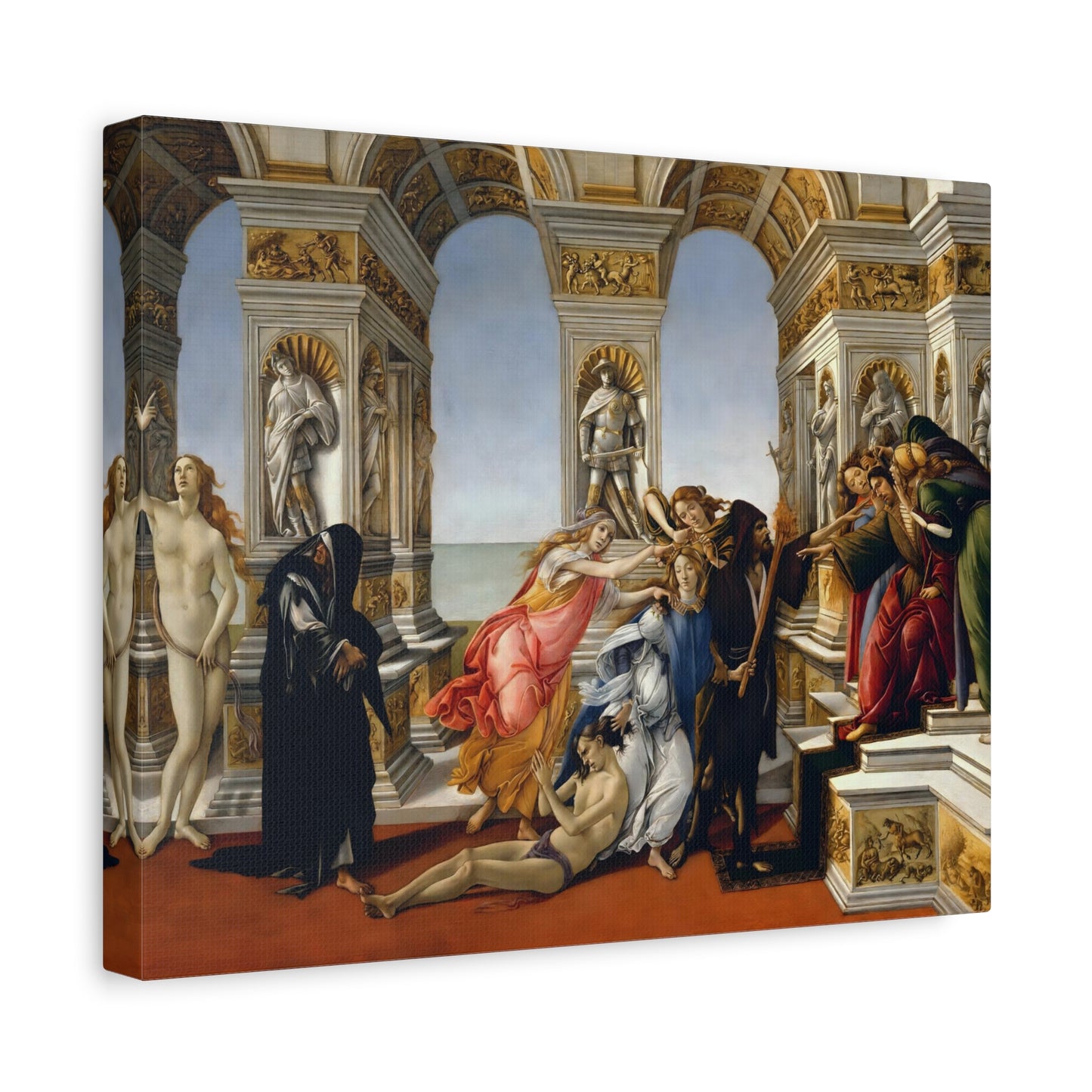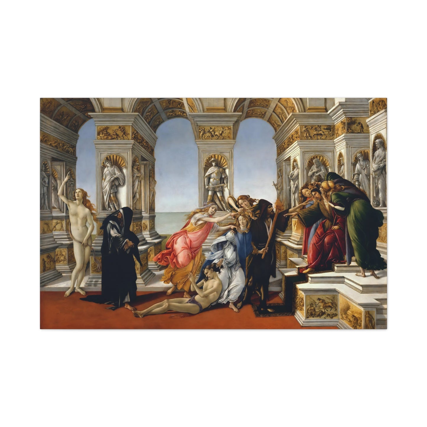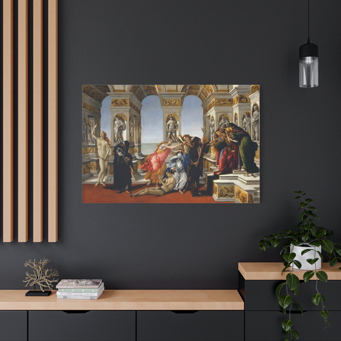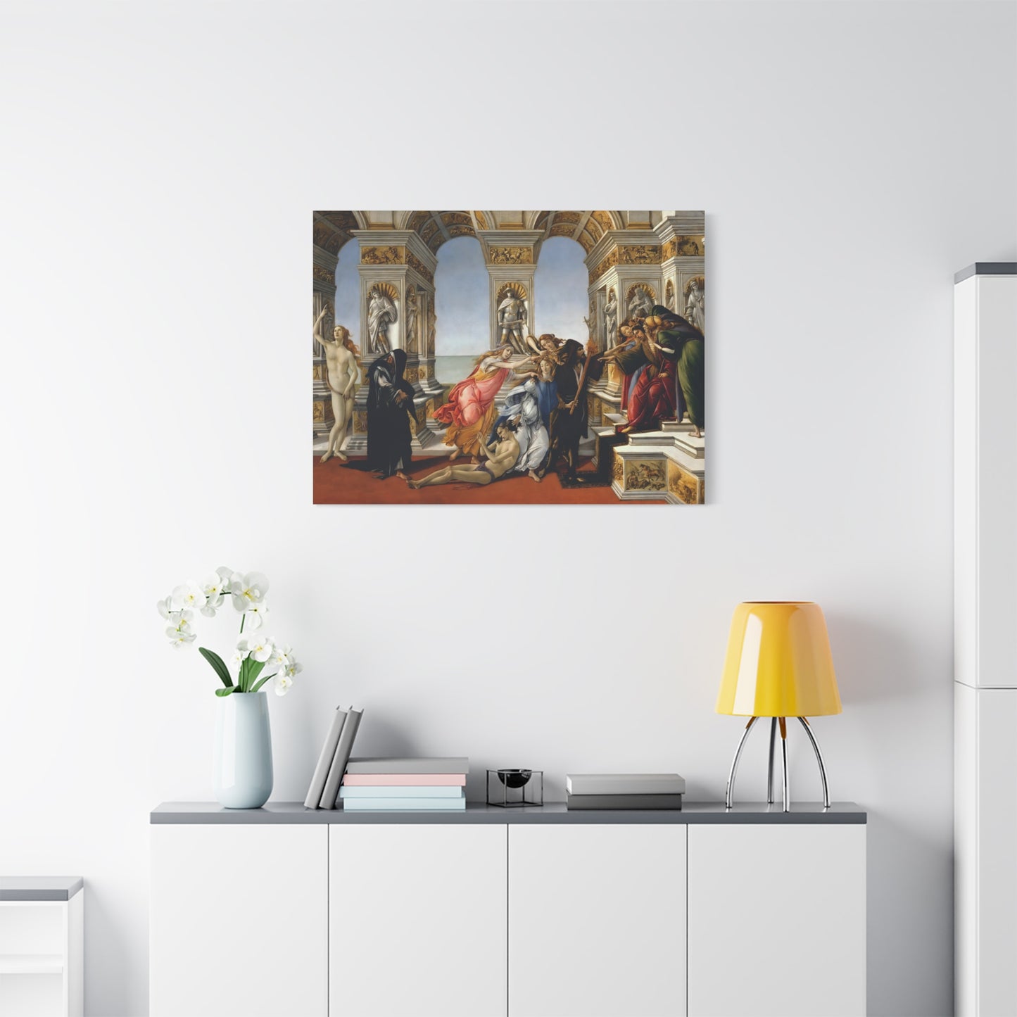 Experience the mesmerizing world of Sandro Botticelli's Calumny of Apelles, a masterpiece crafted in 1494. This extraordinary artwork depicts the powerful allegory of slander and deceit, inspired by the ancient Greek painter Apelles. With its intricate details and symbolic imagery, owning a canvas art replication of Calumny of Apelles adds an air of sophistication and intellectual depth to your home. Let the captivating composition and vibrant colors draw you into the narrative, as Botticelli masterfully captures the complexities of human nature and the consequences of false accusations. Embrace the opportunity to own a piece of art history and invite thought-provoking conversation into your living space. Discover the allure of Botticelli's genius and infuse your home with timeless elegance.