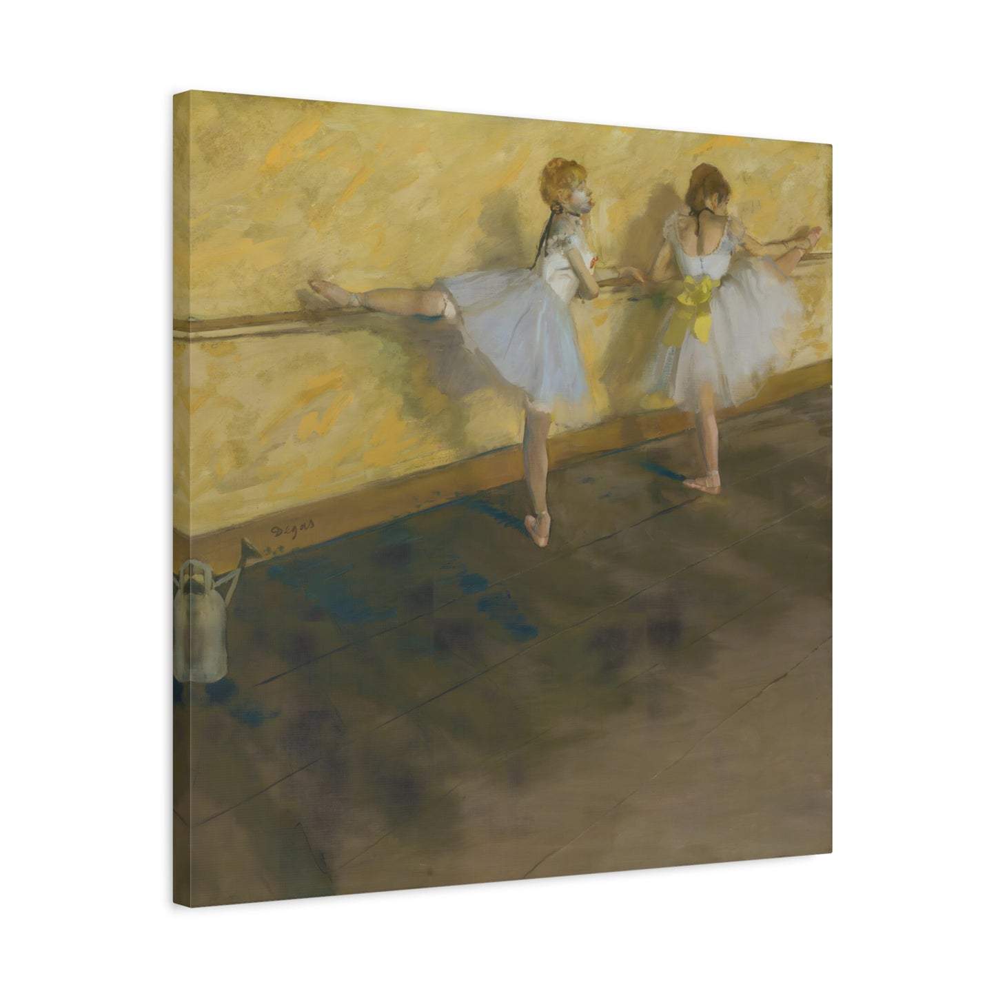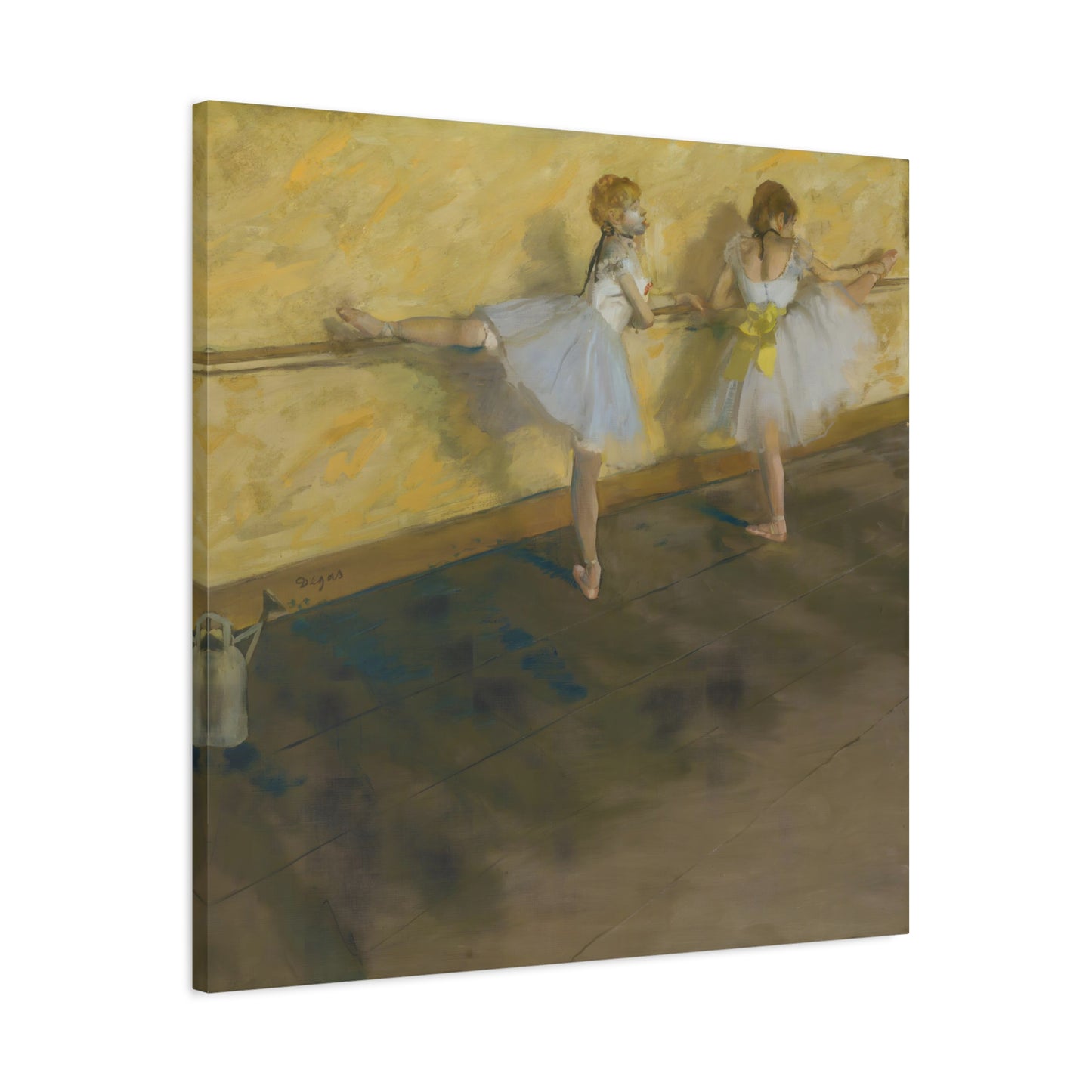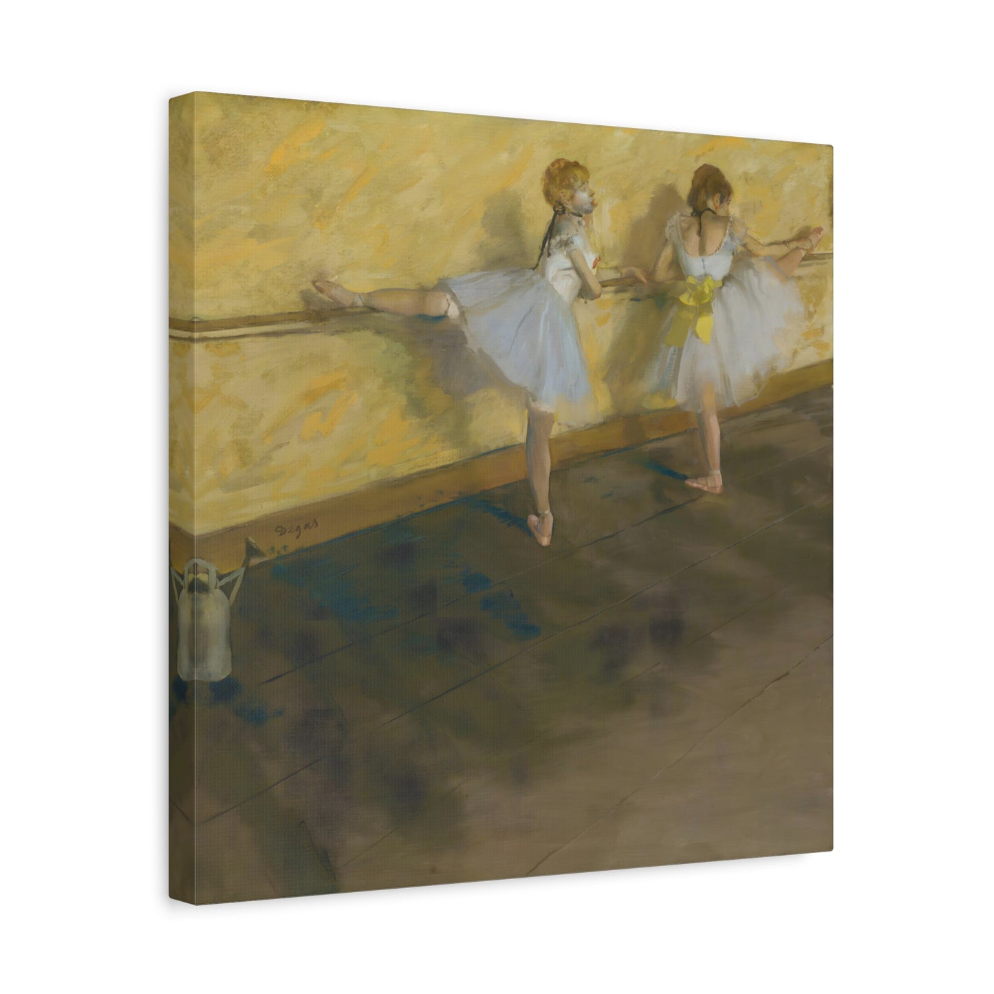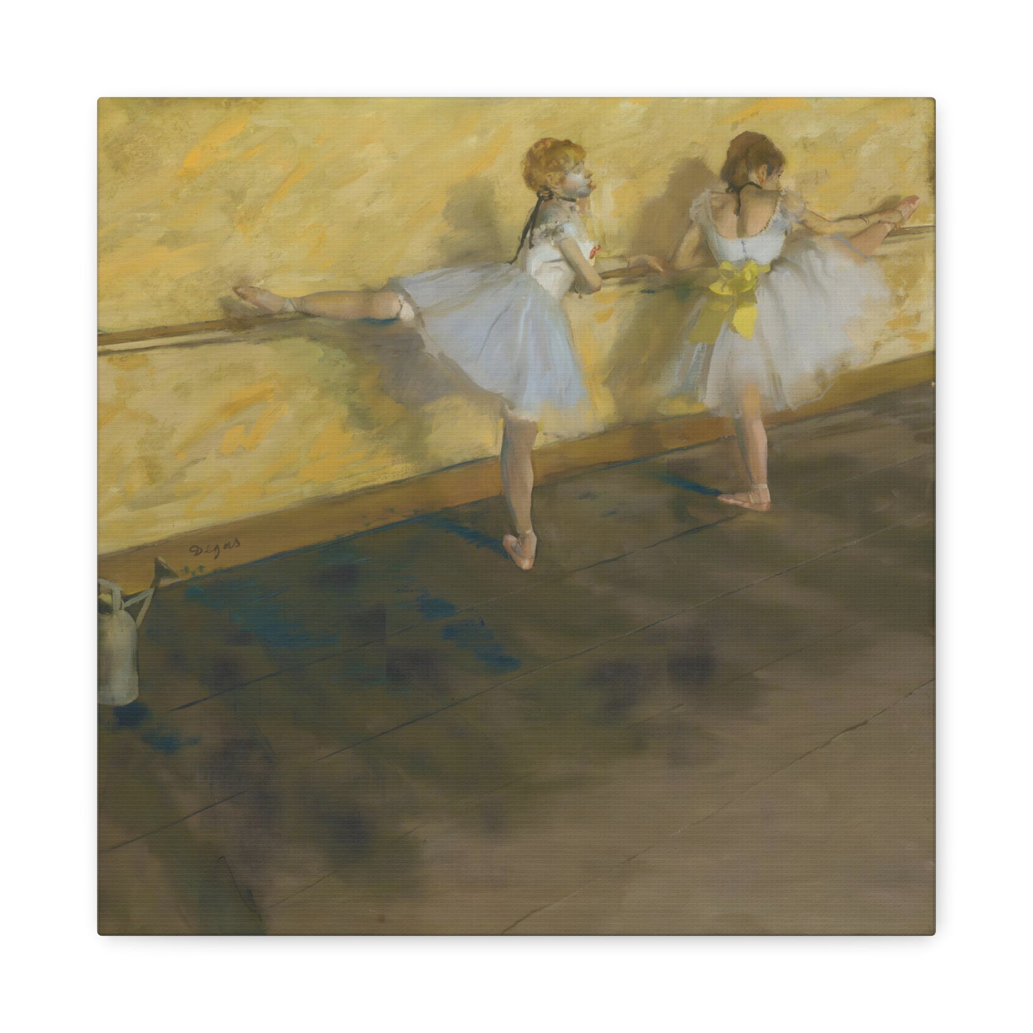 Immerse yourself in the captivating world of ballet with Edgar Degas' extraordinary masterpiece, Dancers Practicing at the Barre. Created in 1877, this enchanting artwork captures the dedication and artistry of ballet dancers as they refine their technique at the barre. Degas' masterful brushwork brings these graceful figures to life, evoking a sense of strength and elegance. With its delicate hues and meticulous details, this artwork becomes a mesmerizing centerpiece that will transport your home to a realm of artistic beauty. Our meticulously replicated canvas art preserves every nuance, ensuring that you can own a breathtaking piece of history that will ignite your passion for dance and infuse your living space with an aura of sophistication. Embark on a visual journey with Dancers Practicing at the Barre and let its ethereal charm captivate your heart and soul.
