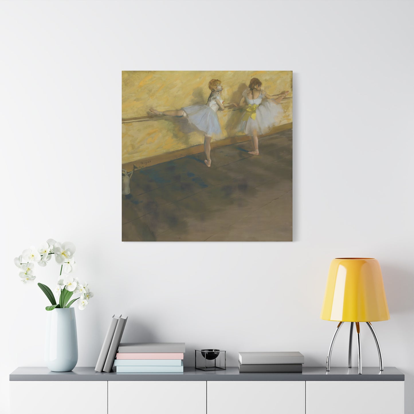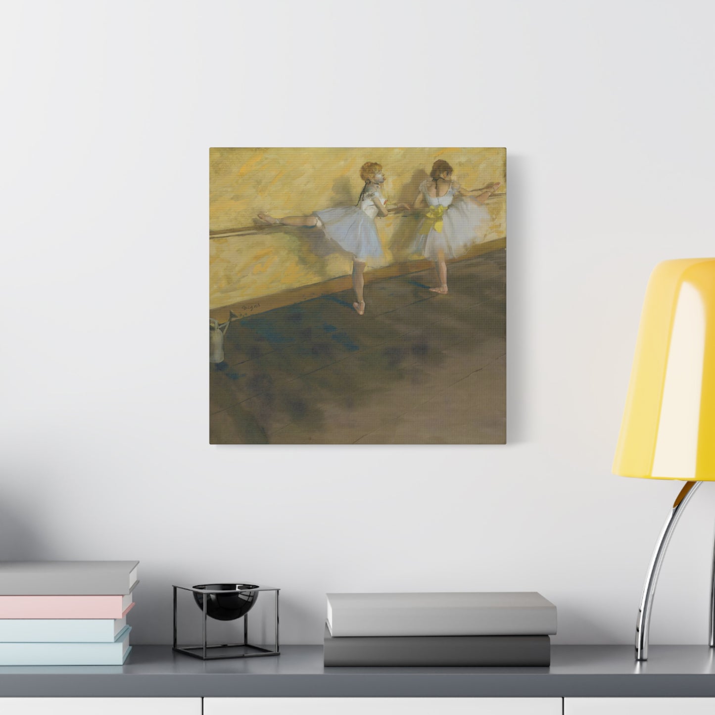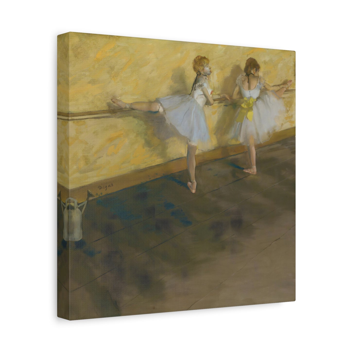 Immerse yourself in the captivating world of ballet with Edgar Degas' extraordinary masterpiece, Dancers Practicing at the Barre. Created in 1877, this enchanting artwork captures the dedication and artistry of ballet dancers as they refine their technique at the barre. Degas' masterful brushwork brings these graceful figures to life, evoking a sense of strength and elegance. With its delicate hues and meticulous details, this artwork becomes a mesmerizing centerpiece that will transport your home to a realm of artistic beauty. Our meticulously replicated canvas art preserves every nuance, ensuring that you can own a breathtaking piece of history that will ignite your passion for dance and infuse your living space with an aura of sophistication. Embark on a visual journey with Dancers Practicing at the Barre and let its ethereal charm captivate your heart and soul.