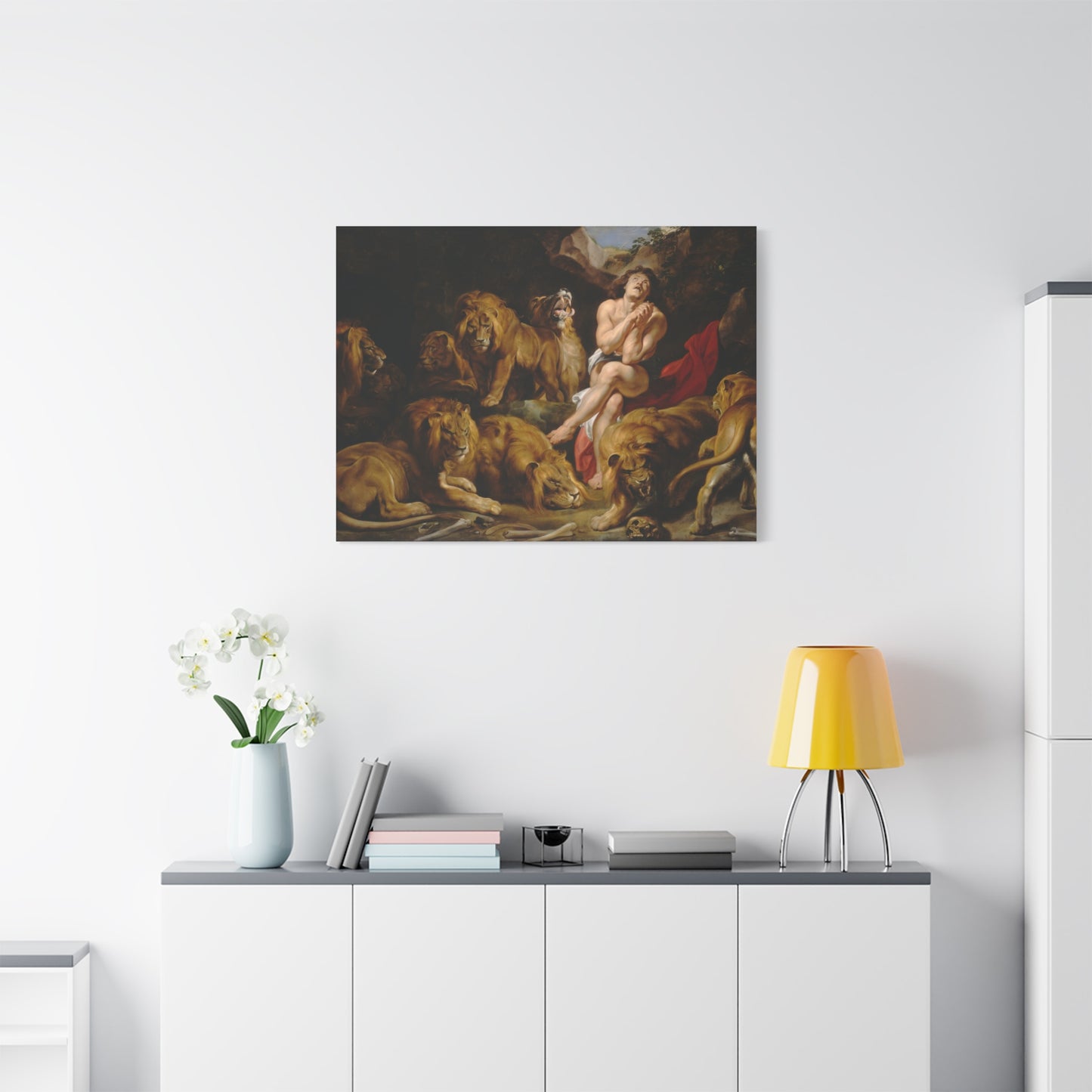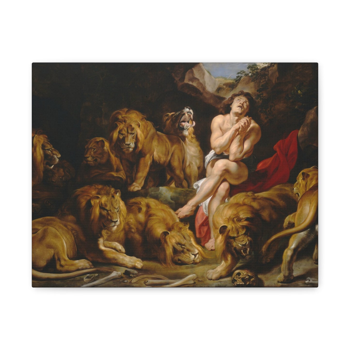 Step into the dramatic biblical tale of Daniel in the Lions' Den with Peter Paul Rubens' awe-inspiring masterpiece. Painted in 1615, this iconic artwork brings to life the suspenseful story of Daniel's unwavering faith and divine protection. Rubens' remarkable attention to detail and his ability to capture human emotions make this painting a captivating addition to any home. Imagine the thrill of witnessing the fearless Daniel surrounded by ferocious lions, their menacing gazes held at bay by his unwavering trust in God. Owning a replicated canvas of Daniel in the Lions' Den allows you to bring the power of faith, bravery, and divine intervention into your living space. Let the vibrant colors, dynamic composition, and masterful storytelling transport you to a world of ancient wonders, reminding you of the triumph of faith over adversity. Indulge in this extraordinary piece and create a captivating focal point that sparks conversation and inspires awe in all who behold it.