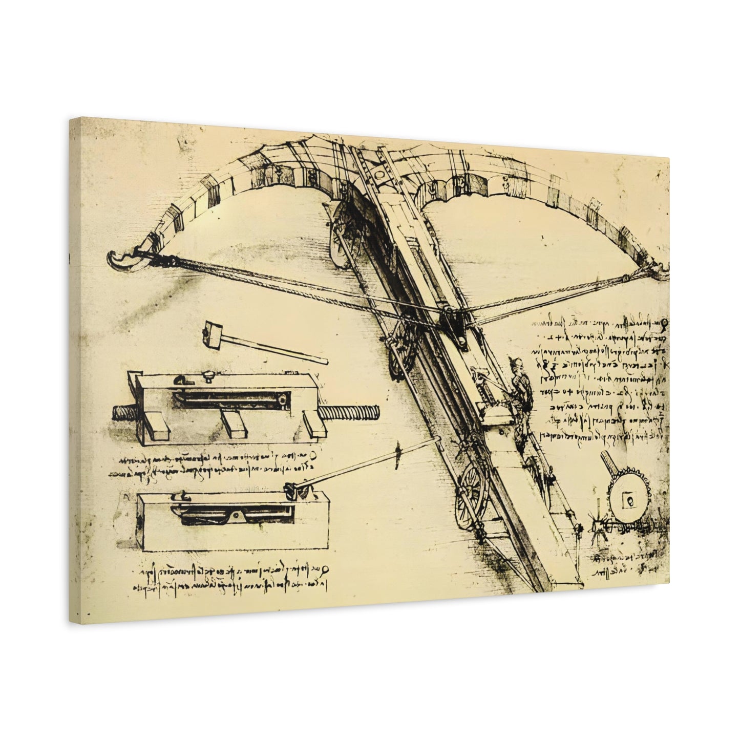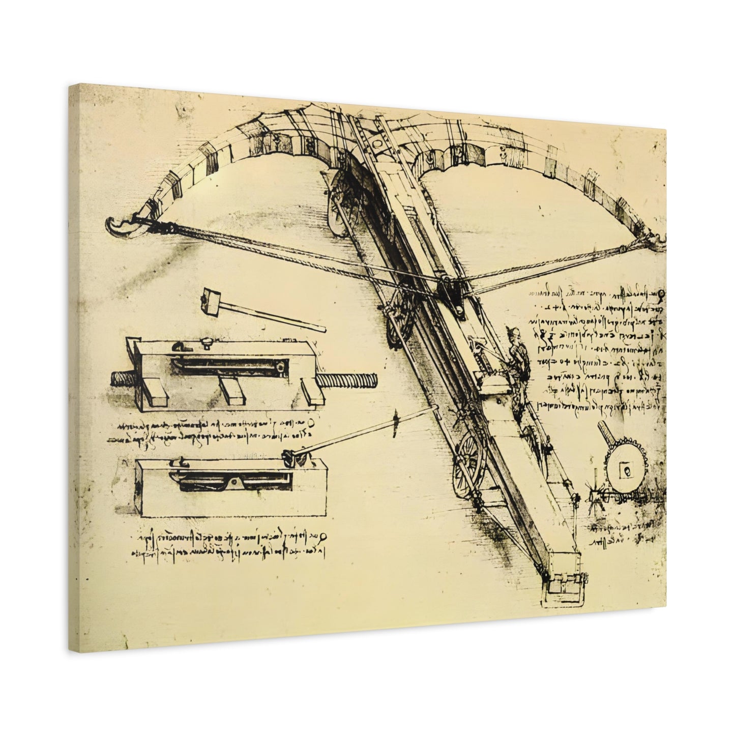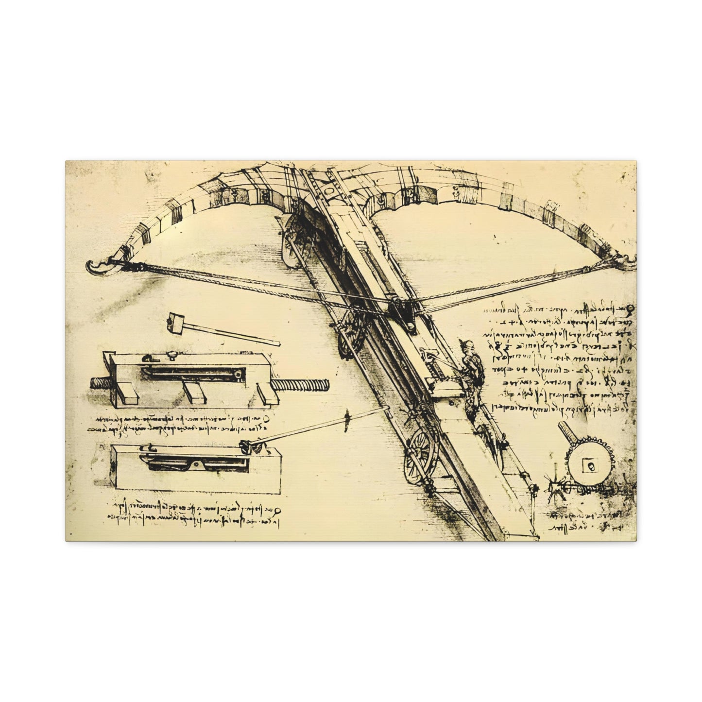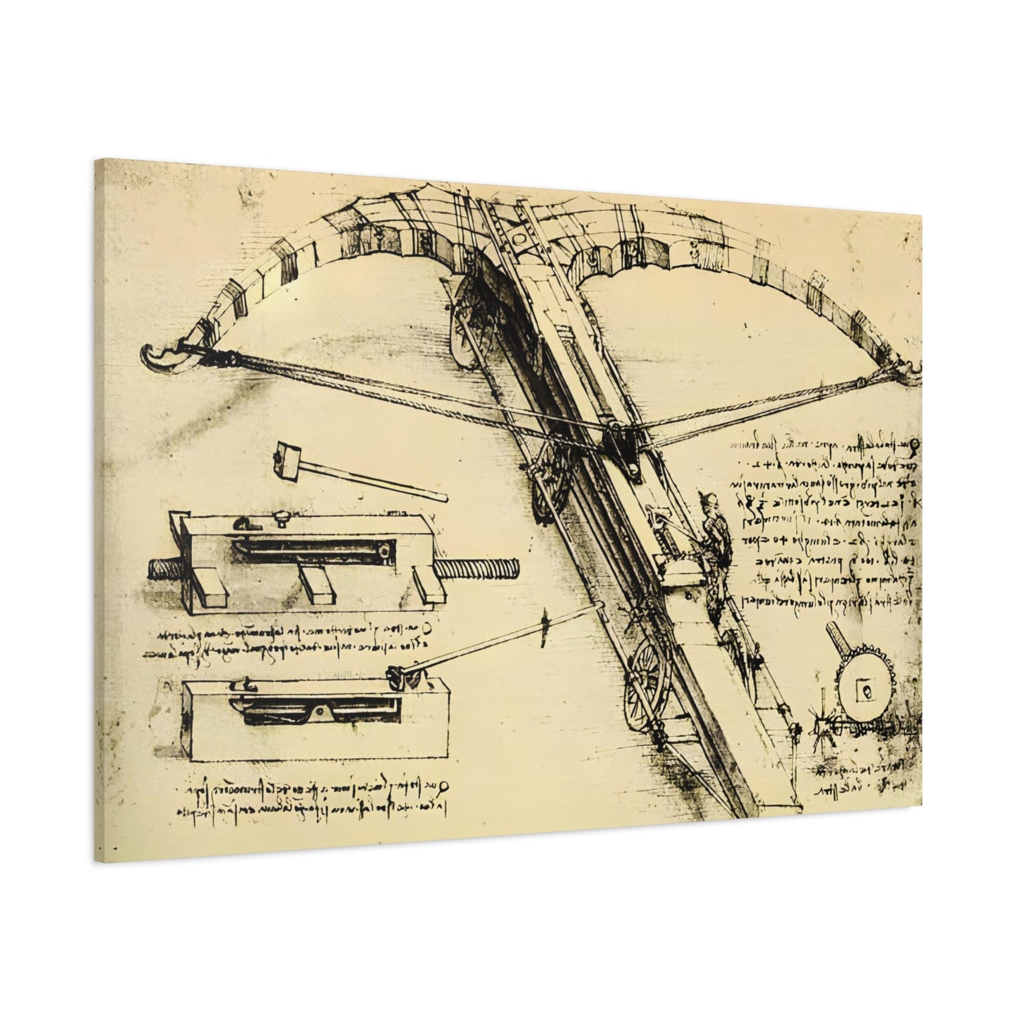Transport yourself to the brilliant mind of Leonardo da Vinci with his visionary artwork, Design for a Giant Crossbow. Created in the late 15th century, this intriguing piece showcases da Vinci's inventive spirit and scientific curiosity. The meticulously detailed drawing depicts a revolutionary concept for a massive crossbow, highlighting da Vinci's genius as an engineer and innovator. Owning a canvas art replication of this extraordinary design allows you to bring the spirit of innovation and Renaissance ingenuity into your home. Immerse yourself in da Vinci's world of invention, and let this captivating artwork inspire your own creative endeavors. Experience the awe-inspiring brilliance of one of history's greatest minds and invite the spirit of innovation into your living space.