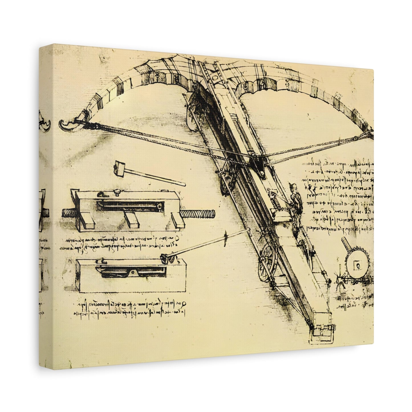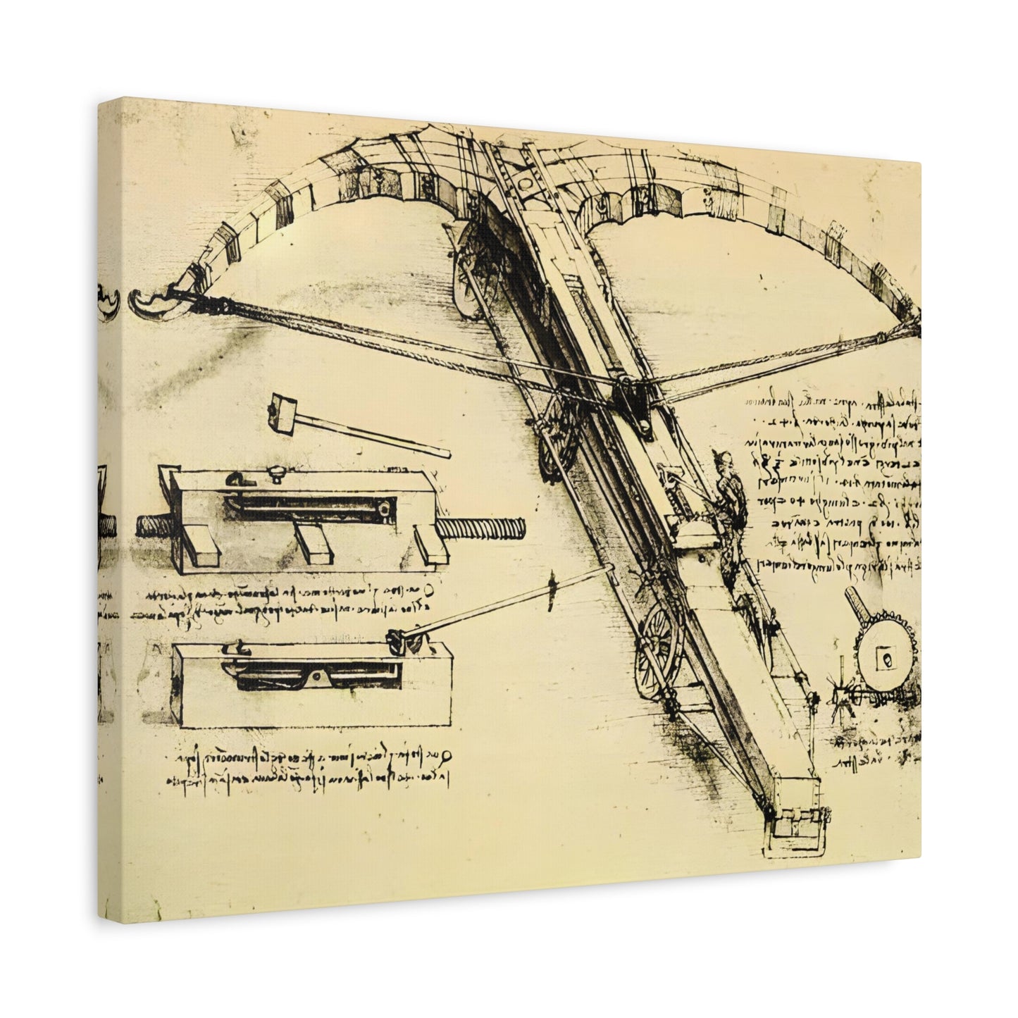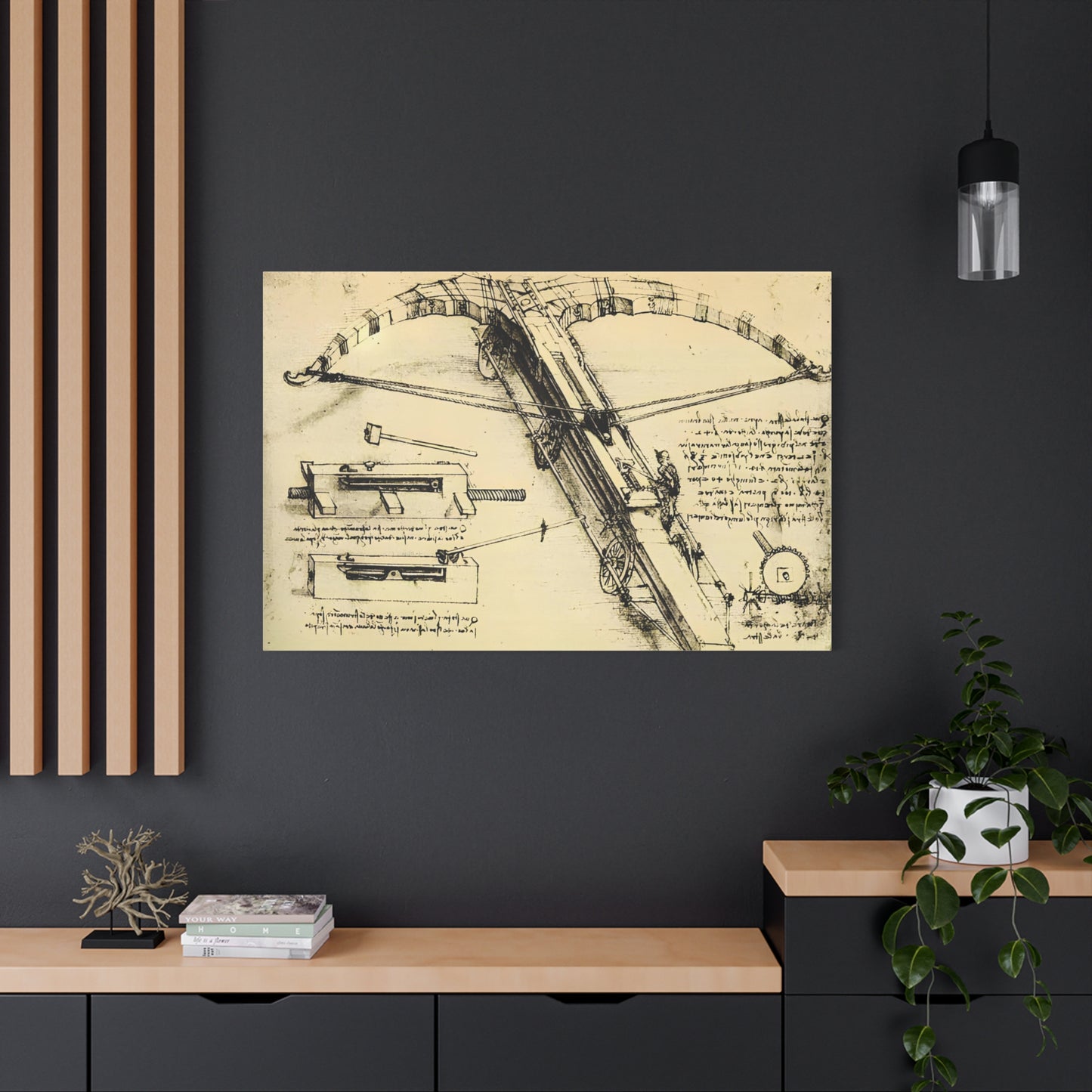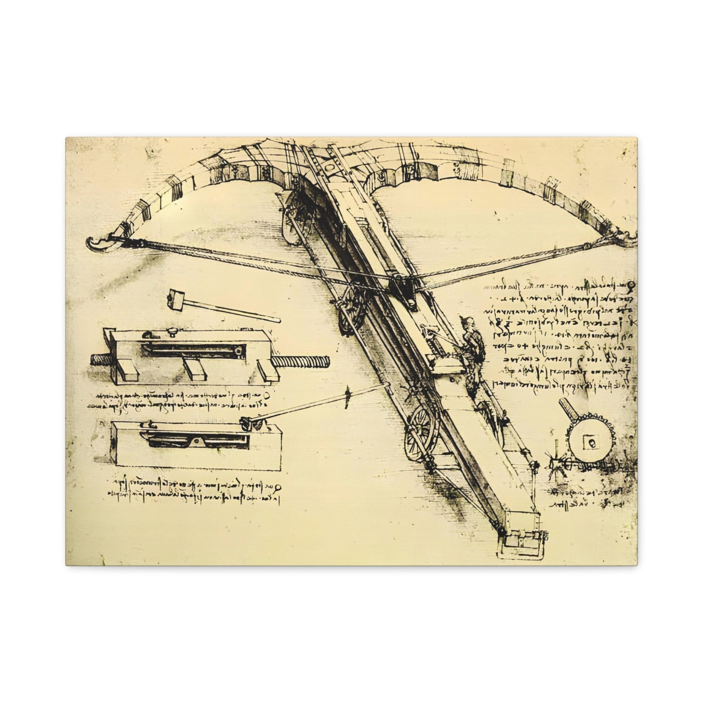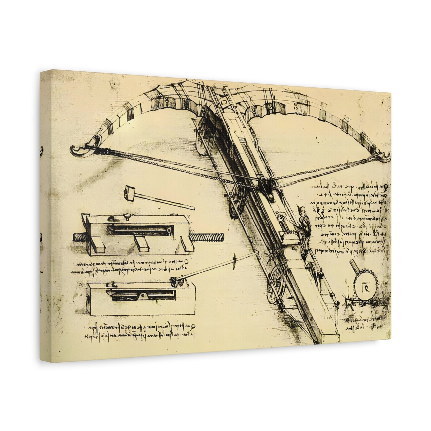 Transport yourself to the brilliant mind of Leonardo da Vinci with his visionary artwork, Design for a Giant Crossbow. Created in the late 15th century, this intriguing piece showcases da Vinci's inventive spirit and scientific curiosity. The meticulously detailed drawing depicts a revolutionary concept for a massive crossbow, highlighting da Vinci's genius as an engineer and innovator. Owning a canvas art replication of this extraordinary design allows you to bring the spirit of innovation and Renaissance ingenuity into your home. Immerse yourself in da Vinci's world of invention, and let this captivating artwork inspire your own creative endeavors. Experience the awe-inspiring brilliance of one of history's greatest minds and invite the spirit of innovation into your living space.