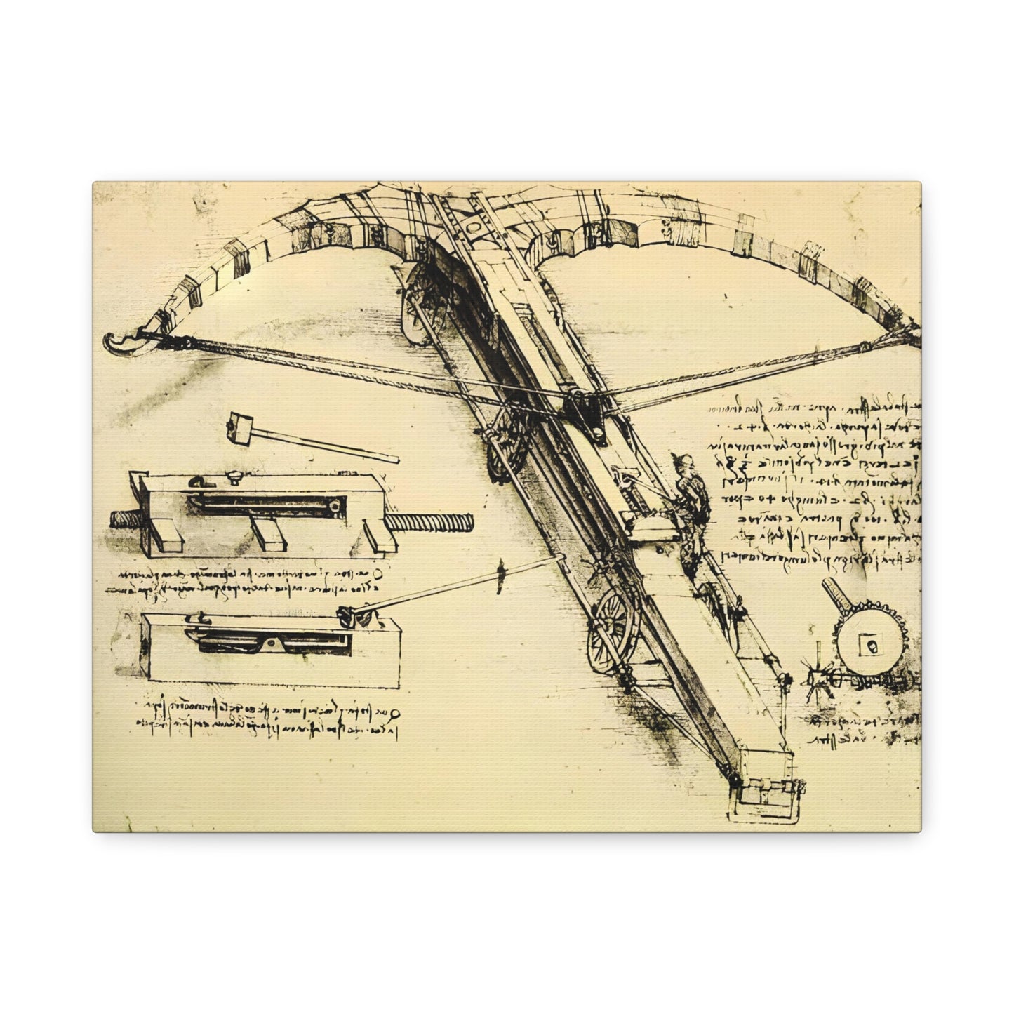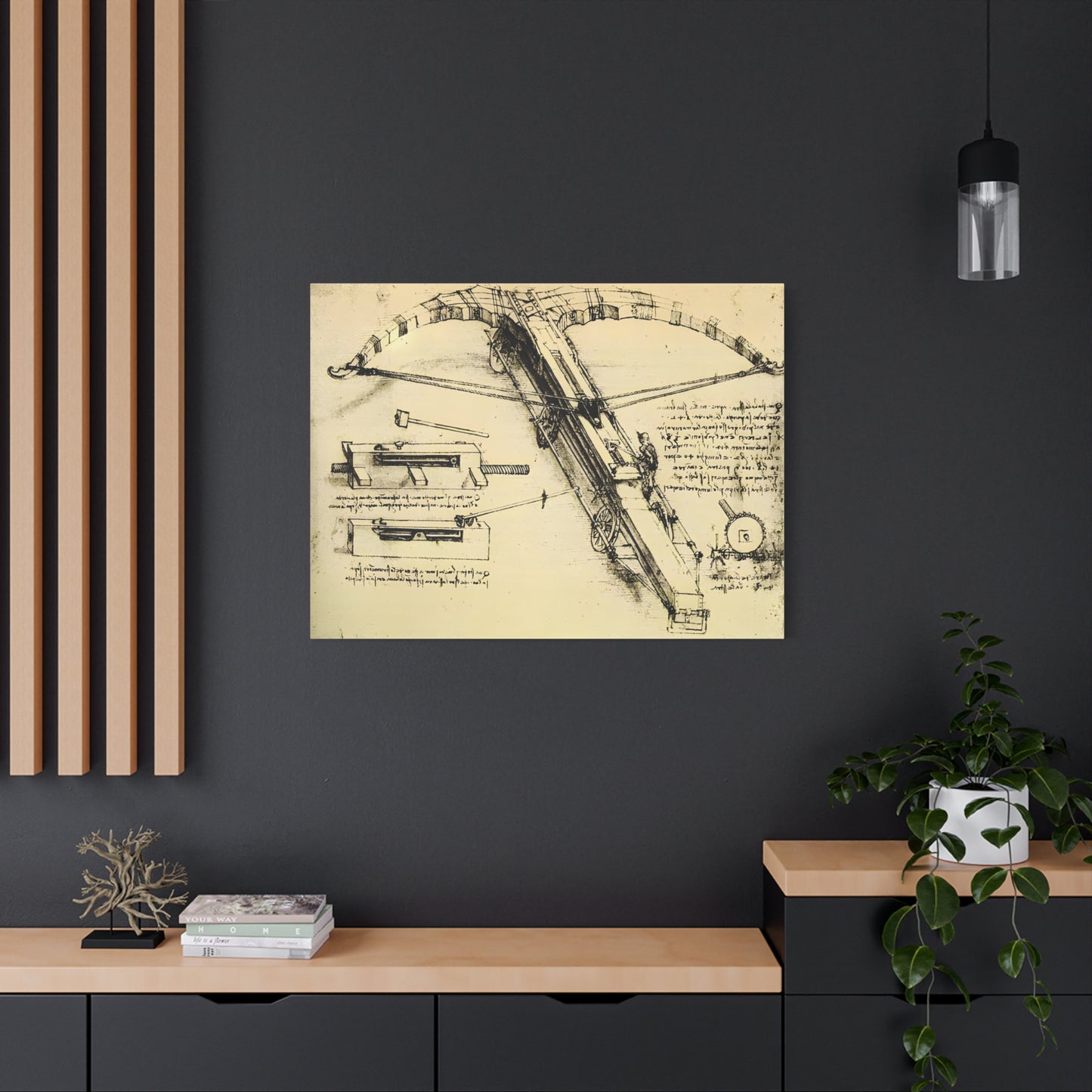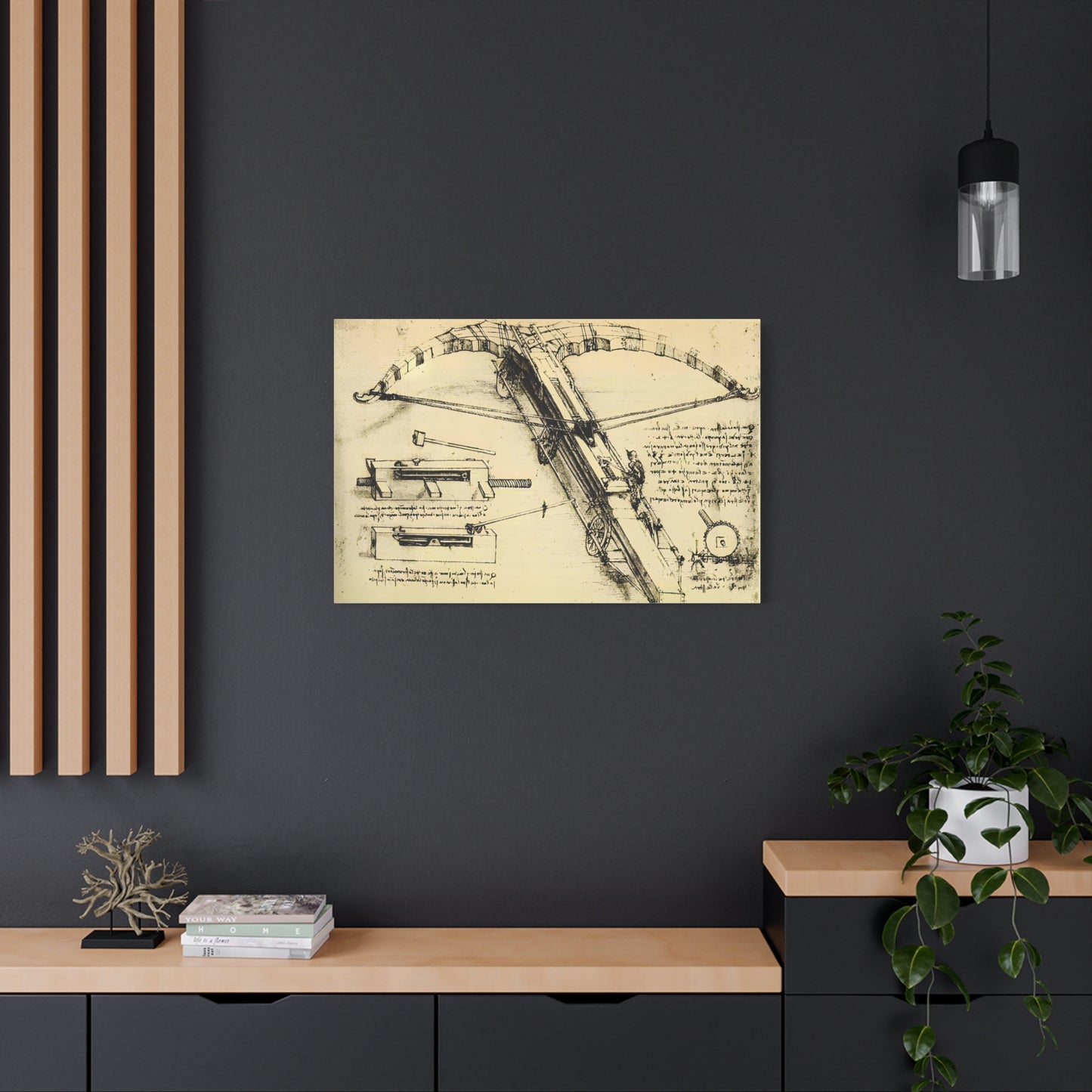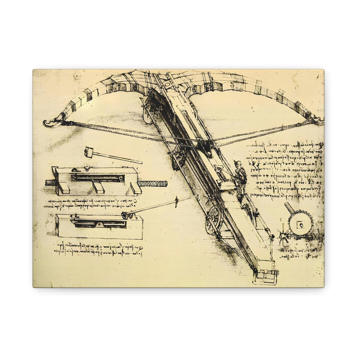 Transport yourself to the brilliant mind of Leonardo da Vinci with his visionary artwork, Design for a Giant Crossbow. Created in the late 15th century, this intriguing piece showcases da Vinci's inventive spirit and scientific curiosity. The meticulously detailed drawing depicts a revolutionary concept for a massive crossbow, highlighting da Vinci's genius as an engineer and innovator. Owning a canvas art replication of this extraordinary design allows you to bring the spirit of innovation and Renaissance ingenuity into your home. Immerse yourself in da Vinci's world of invention, and let this captivating artwork inspire your own creative endeavors. Experience the awe-inspiring brilliance of one of history's greatest minds and invite the spirit of innovation into your living space.