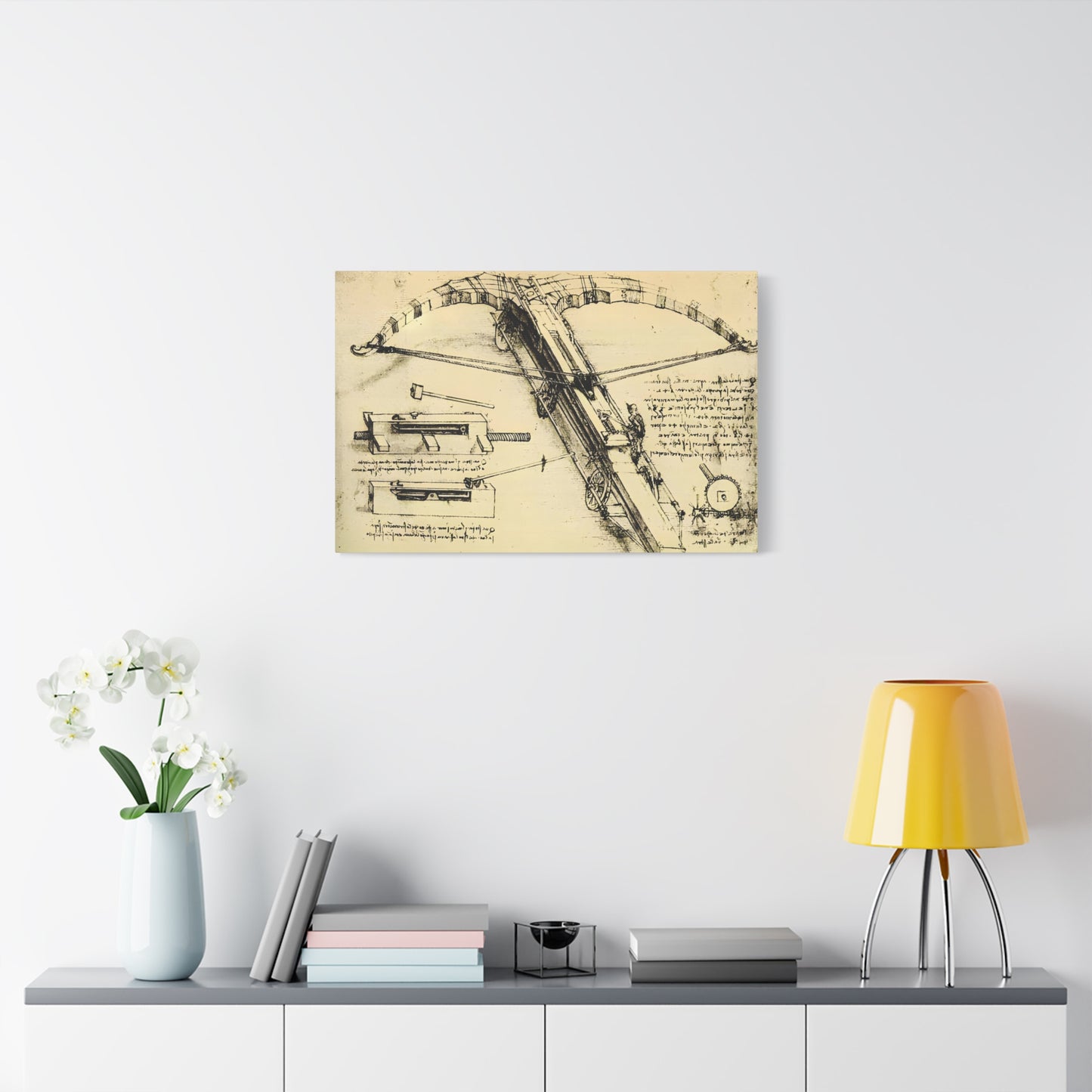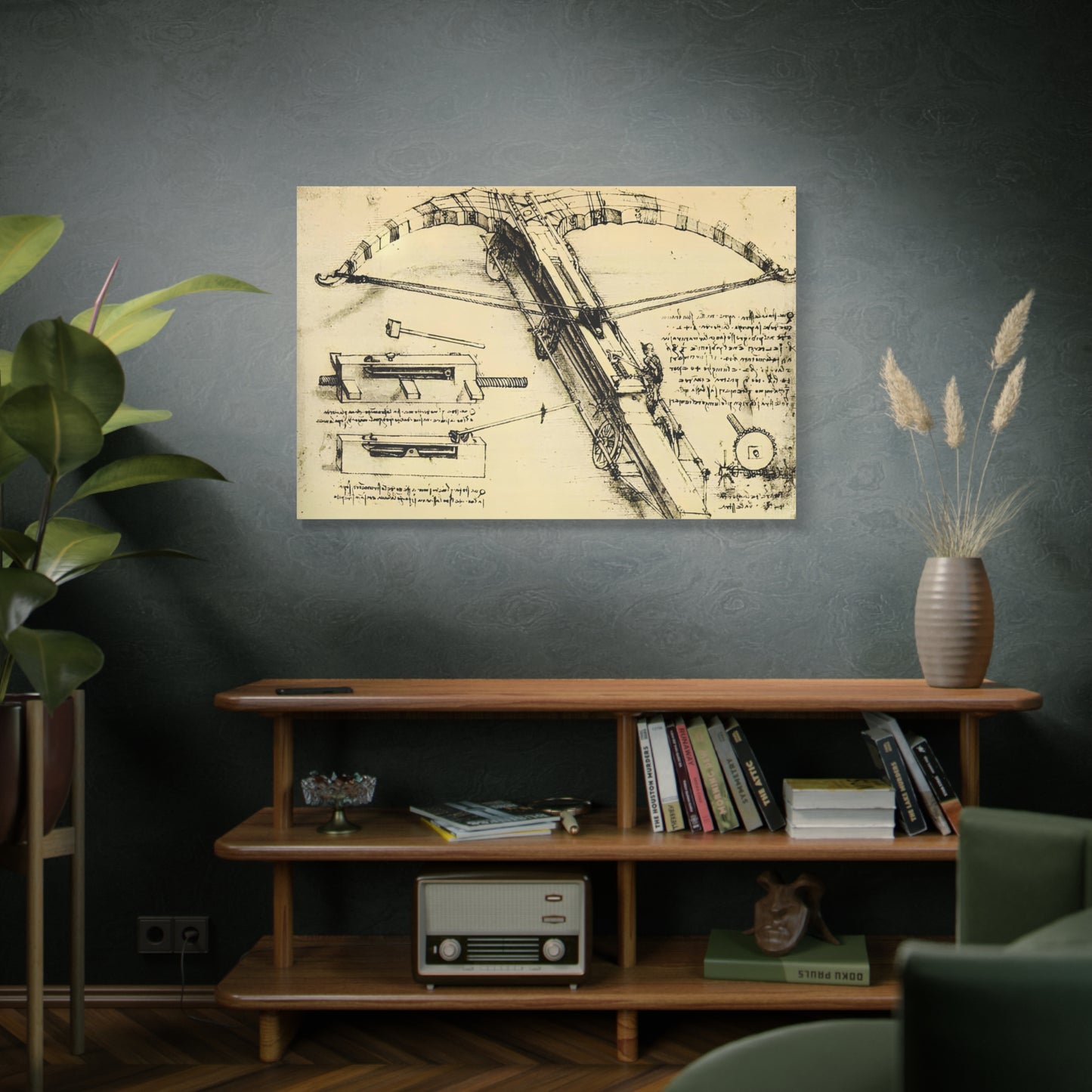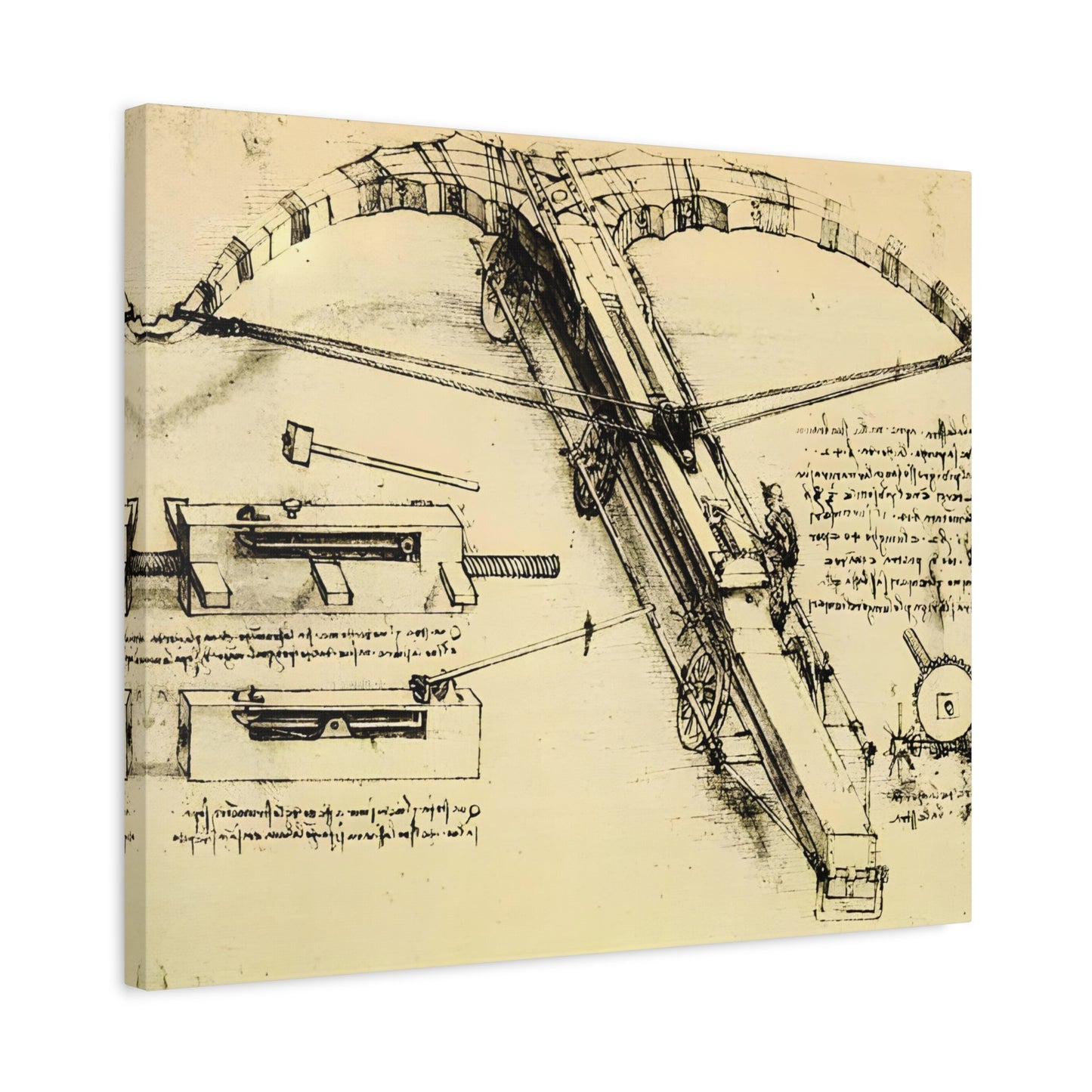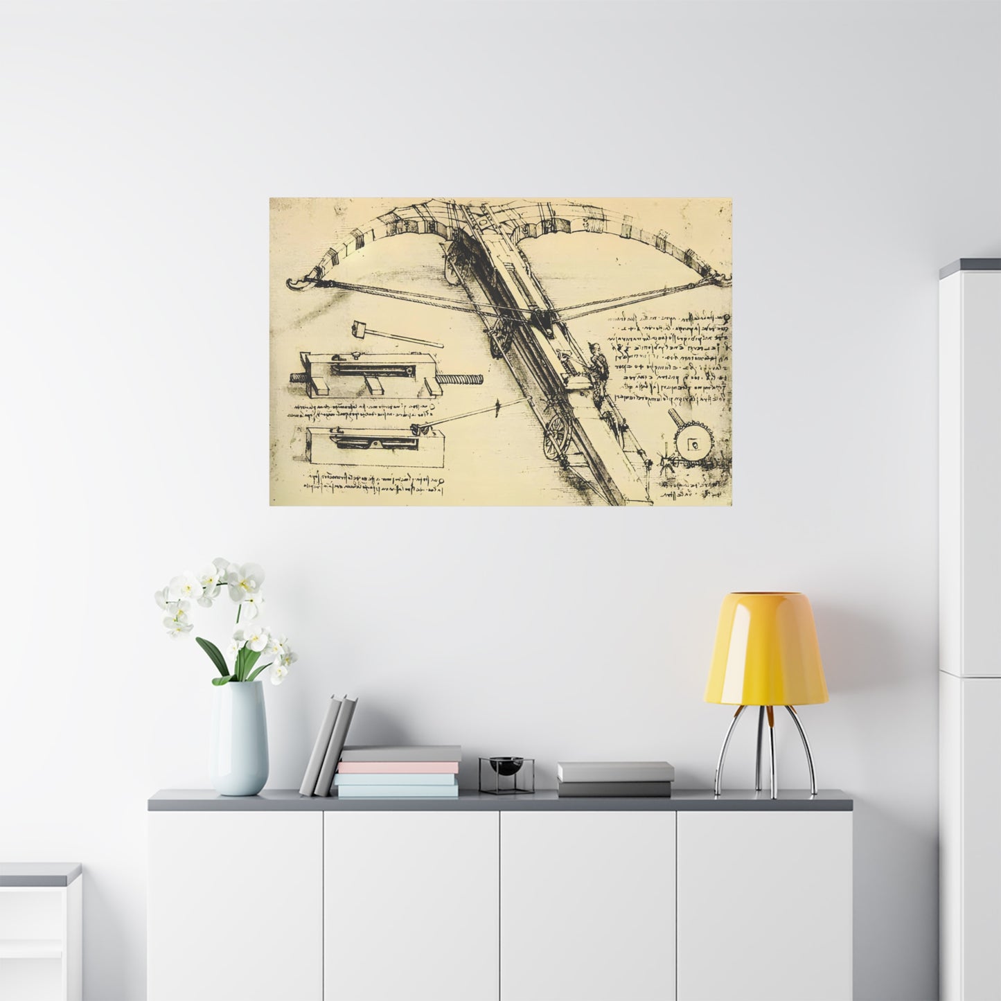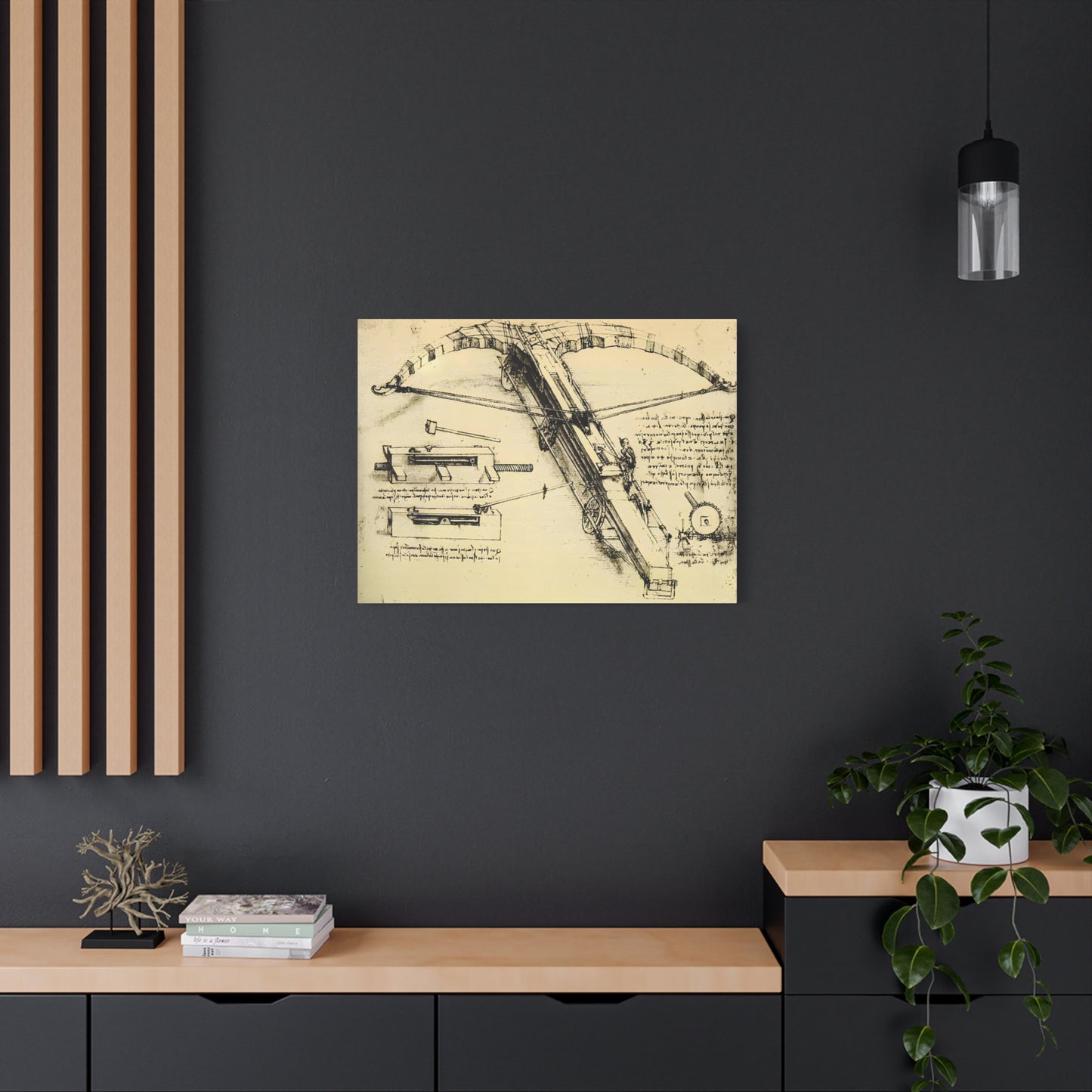 Transport yourself to the brilliant mind of Leonardo da Vinci with his visionary artwork, Design for a Giant Crossbow. Created in the late 15th century, this intriguing piece showcases da Vinci's inventive spirit and scientific curiosity. The meticulously detailed drawing depicts a revolutionary concept for a massive crossbow, highlighting da Vinci's genius as an engineer and innovator. Owning a canvas art replication of this extraordinary design allows you to bring the spirit of innovation and Renaissance ingenuity into your home. Immerse yourself in da Vinci's world of invention, and let this captivating artwork inspire your own creative endeavors. Experience the awe-inspiring brilliance of one of history's greatest minds and invite the spirit of innovation into your living space.
