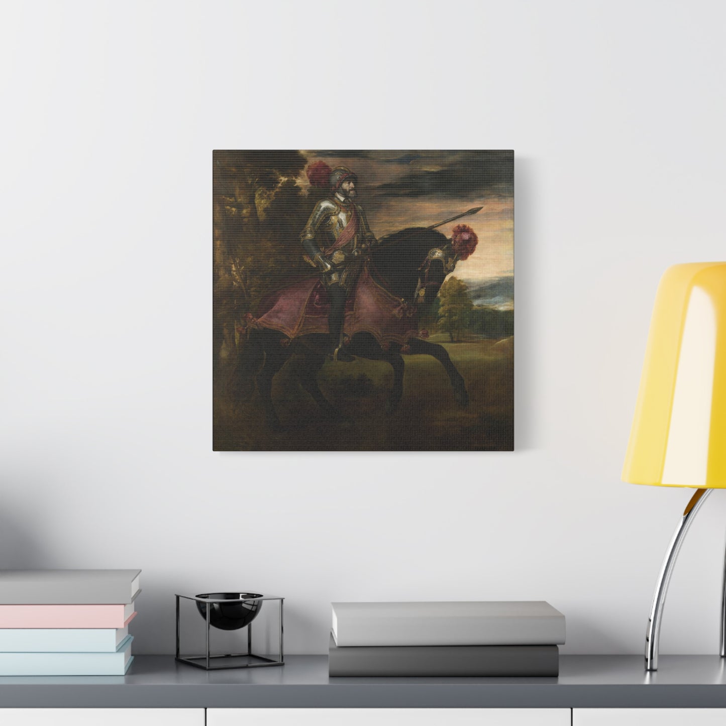 Embark on a majestic journey through time with Caravaggio's Equestrian Portrait of Charles V, a captivating masterpiece created in 1605. Immerse yourself in the grandeur of a powerful ruler astride a majestic steed, the embodiment of strength and authority. This iconic artwork, renowned for its exceptional attention to detail and dynamic composition, will command attention in any space. Owning a high-quality canvas replication of this extraordinary painting brings the allure of history and the spirit of leadership into your home. Let the regal presence and artistic brilliance of Caravaggio's Equestrian Portrait of Charles V captivate your space, making a bold statement that exudes power and sophistication.
