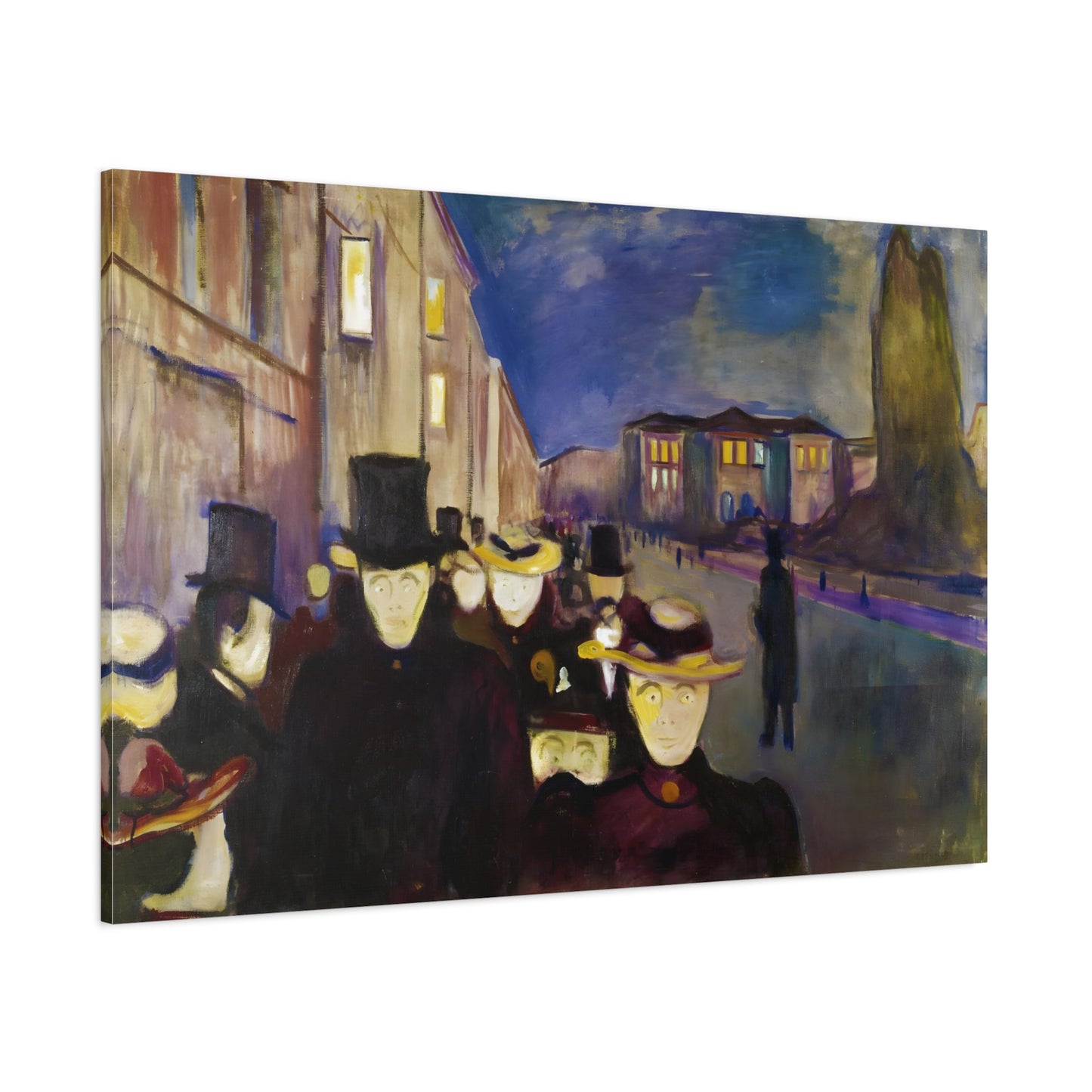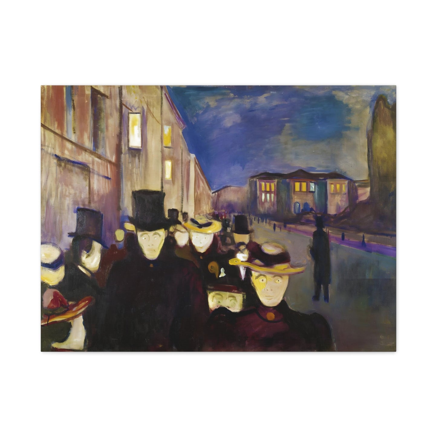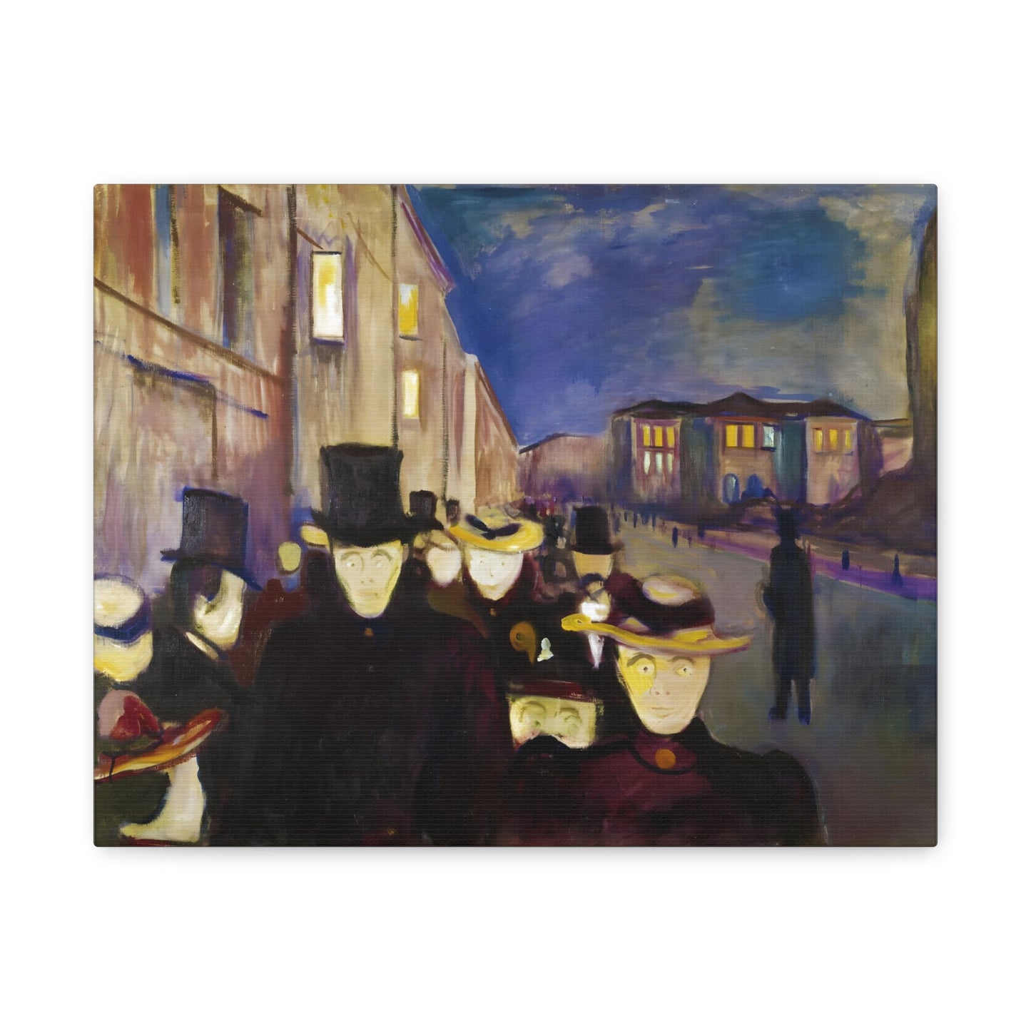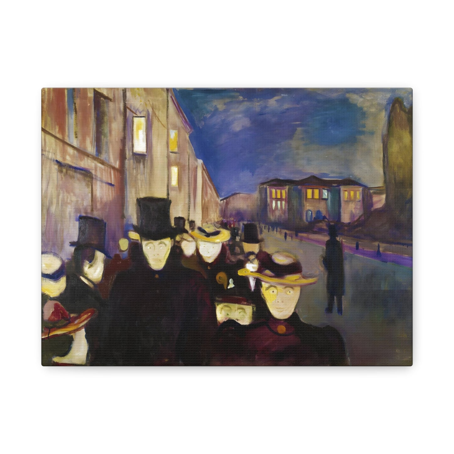 Transport yourself to the enchanting streets of Oslo with Evening on Karl Johan Street by Edvard Munch, painted in 1892. This captivating masterpiece captures the bustling energy and ethereal beauty of a city bathed in the golden glow of twilight. With our meticulously replicated canvas art, you can bring this iconic scene into your home, immersing yourself in the romantic ambiance of Munch's brushstrokes. Experience the allure of urban life, the play of light and shadows, and the timeless charm of this exquisite artwork. Add a touch of sophistication and elegance to your space with our stunning canvas replication of Evening on Karl Johan Street and let its captivating allure transform your surroundings.
