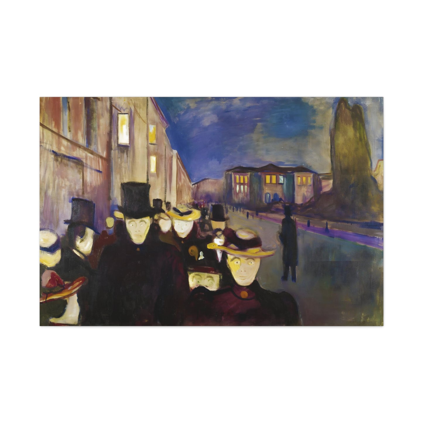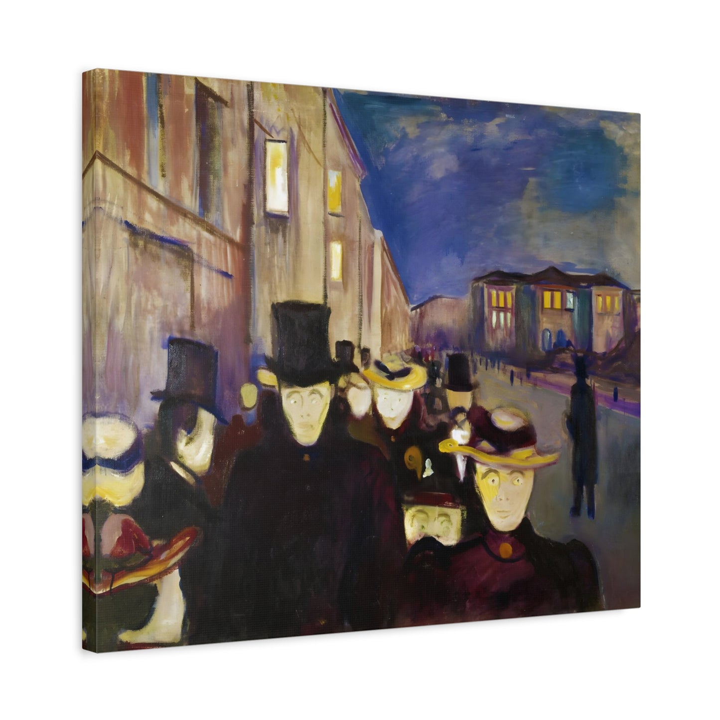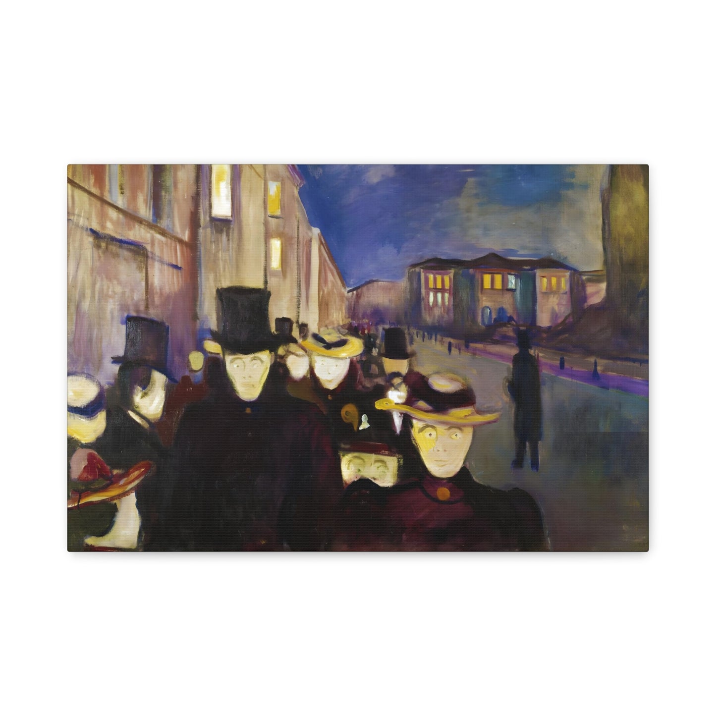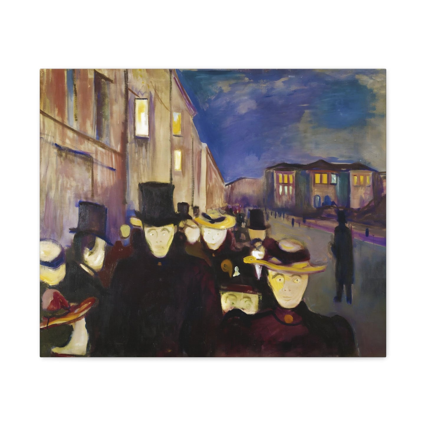Transport yourself to the enchanting streets of Oslo with Evening on Karl Johan Street by Edvard Munch, painted in 1892. This captivating masterpiece captures the bustling energy and ethereal beauty of a city bathed in the golden glow of twilight. With our meticulously replicated canvas art, you can bring this iconic scene into your home, immersing yourself in the romantic ambiance of Munch's brushstrokes. Experience the allure of urban life, the play of light and shadows, and the timeless charm of this exquisite artwork. Add a touch of sophistication and elegance to your space with our stunning canvas replication of Evening on Karl Johan Street and let its captivating allure transform your surroundings.