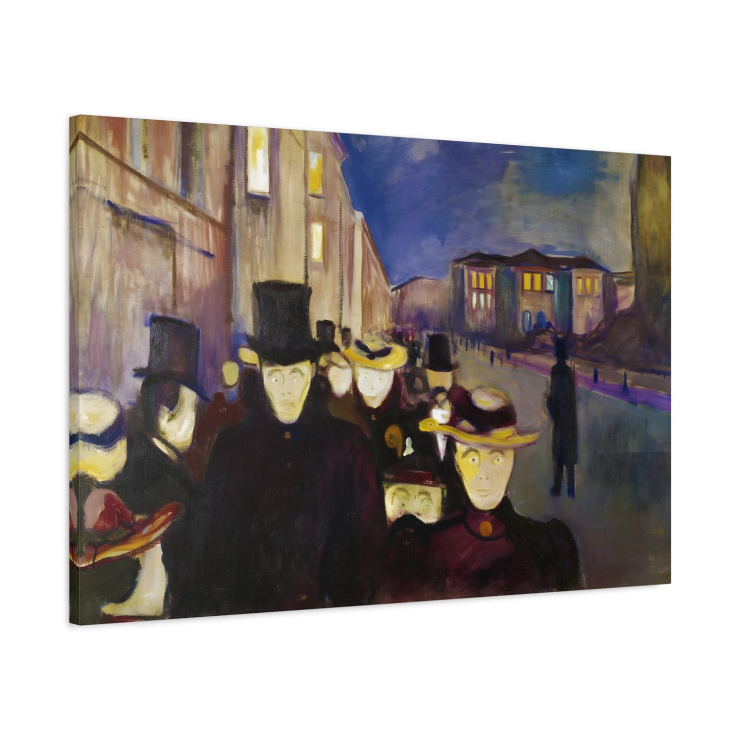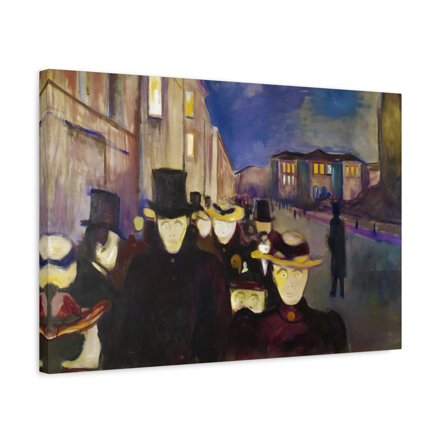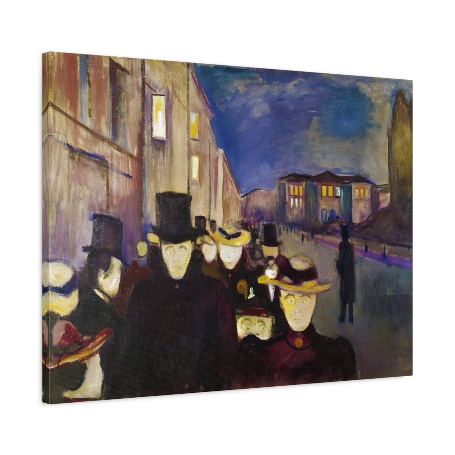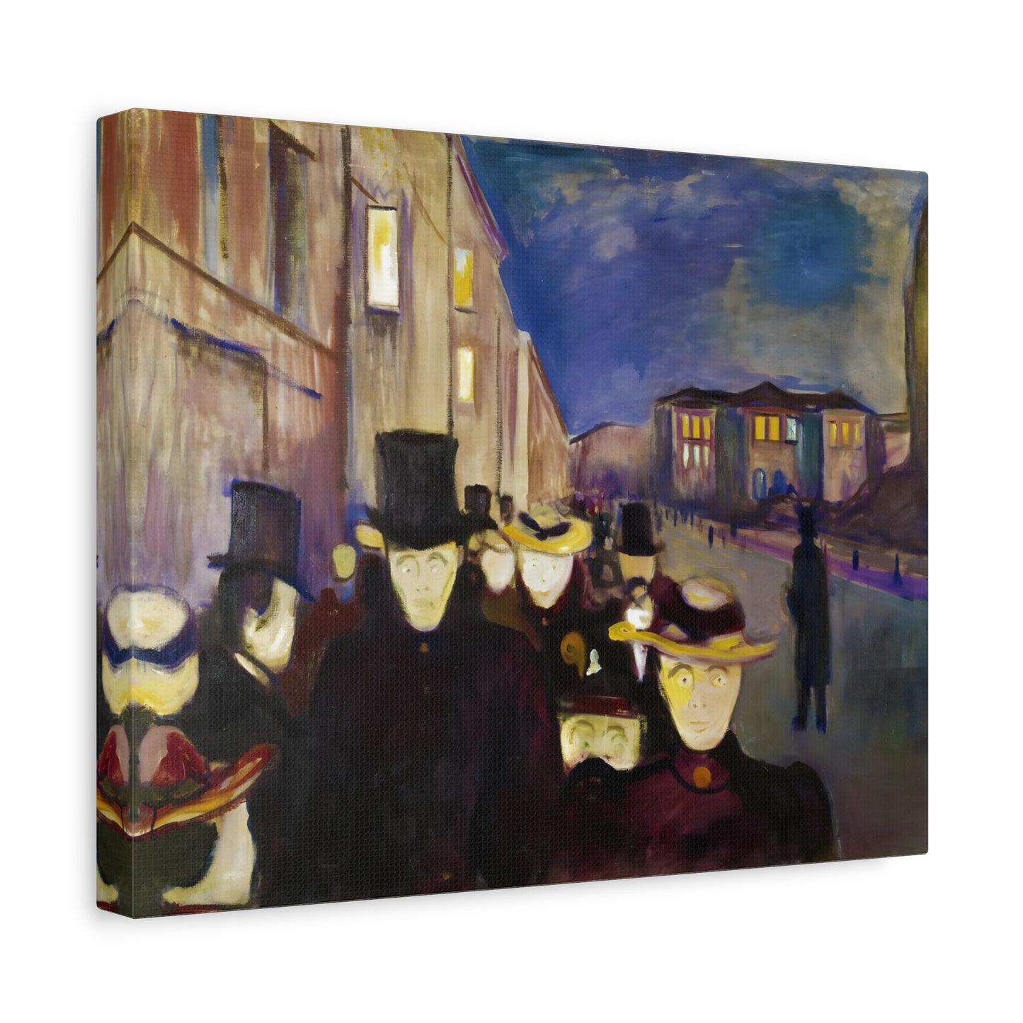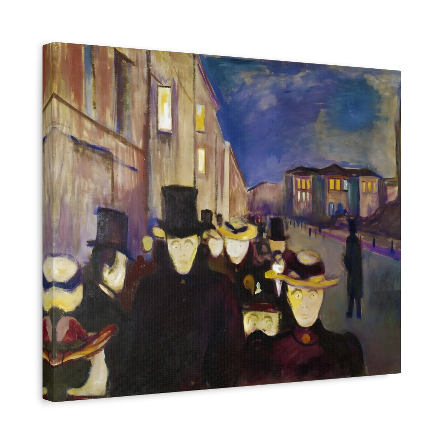 Transport yourself to the enchanting streets of Oslo with Evening on Karl Johan Street by Edvard Munch, painted in 1892. This captivating masterpiece captures the bustling energy and ethereal beauty of a city bathed in the golden glow of twilight. With our meticulously replicated canvas art, you can bring this iconic scene into your home, immersing yourself in the romantic ambiance of Munch's brushstrokes. Experience the allure of urban life, the play of light and shadows, and the timeless charm of this exquisite artwork. Add a touch of sophistication and elegance to your space with our stunning canvas replication of Evening on Karl Johan Street and let its captivating allure transform your surroundings.