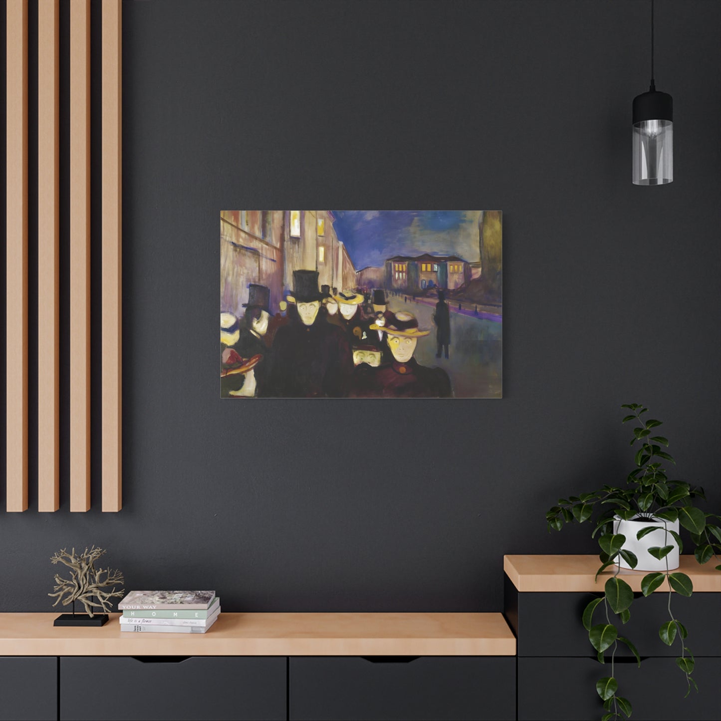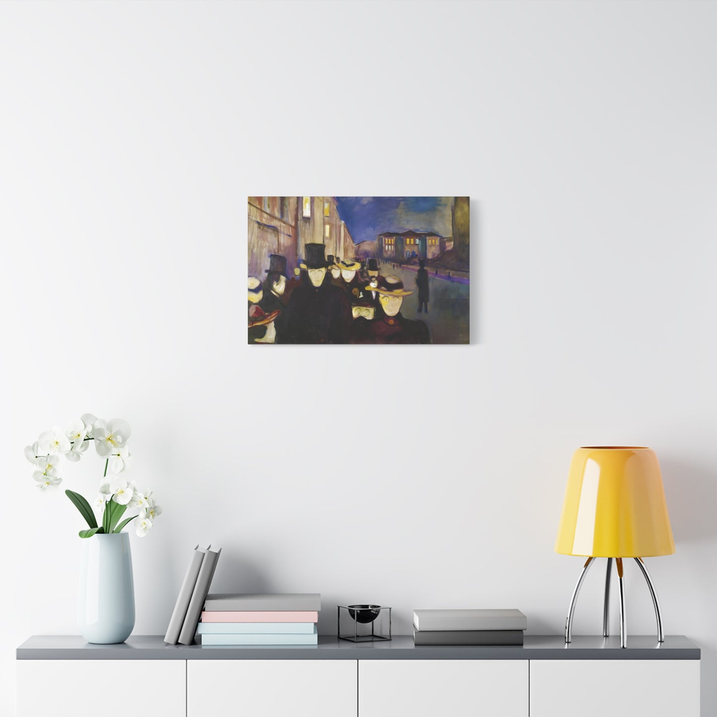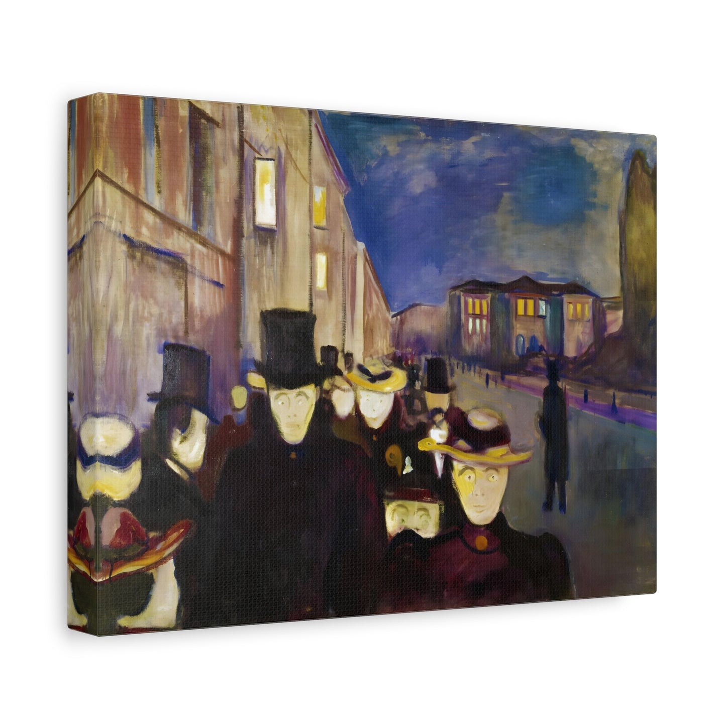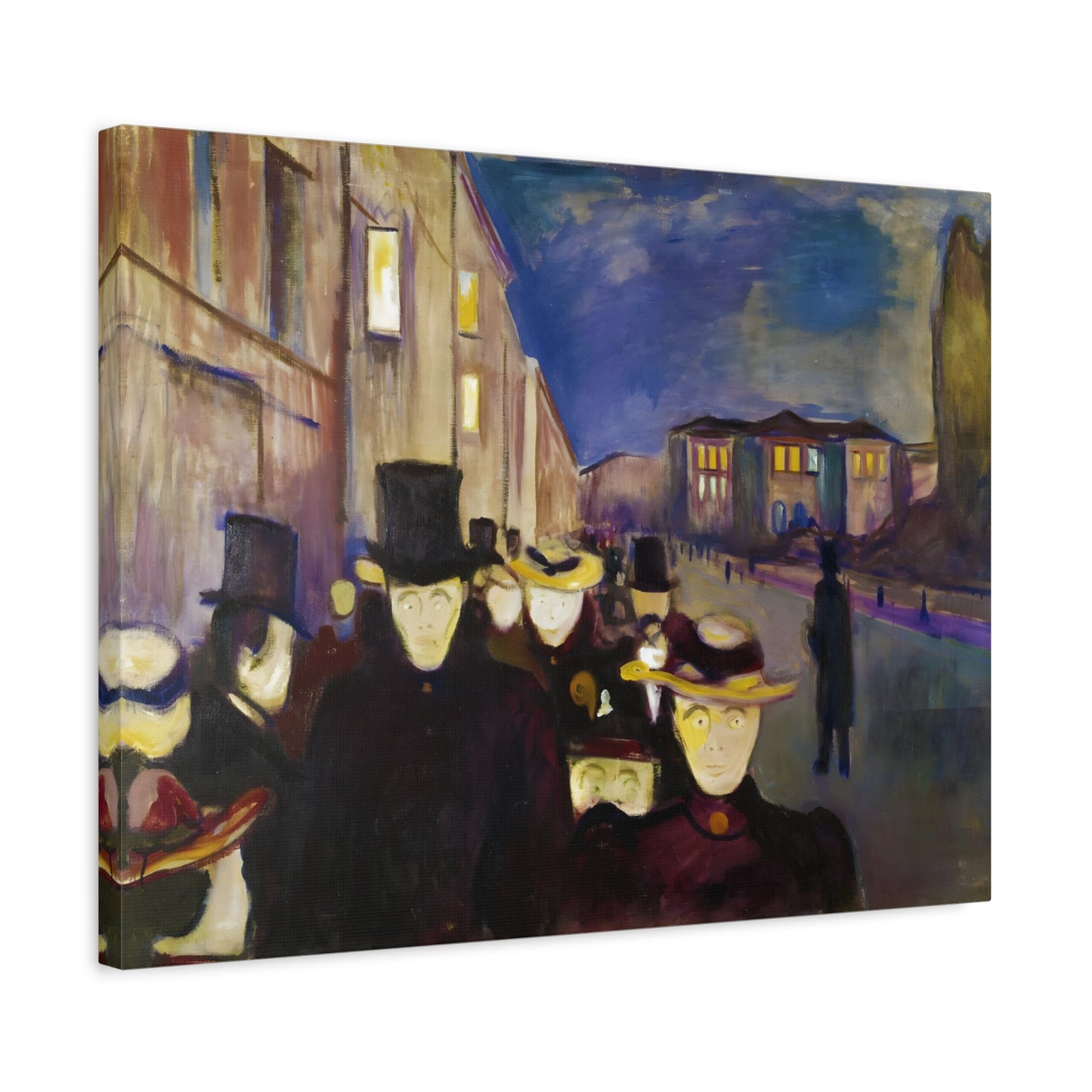 Transport yourself to the enchanting streets of Oslo with Evening on Karl Johan Street by Edvard Munch, painted in 1892. This captivating masterpiece captures the bustling energy and ethereal beauty of a city bathed in the golden glow of twilight. With our meticulously replicated canvas art, you can bring this iconic scene into your home, immersing yourself in the romantic ambiance of Munch's brushstrokes. Experience the allure of urban life, the play of light and shadows, and the timeless charm of this exquisite artwork. Add a touch of sophistication and elegance to your space with our stunning canvas replication of Evening on Karl Johan Street and let its captivating allure transform your surroundings.