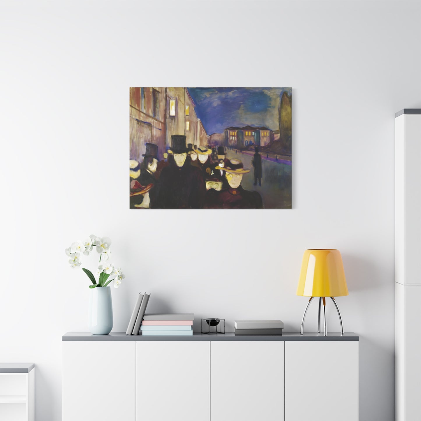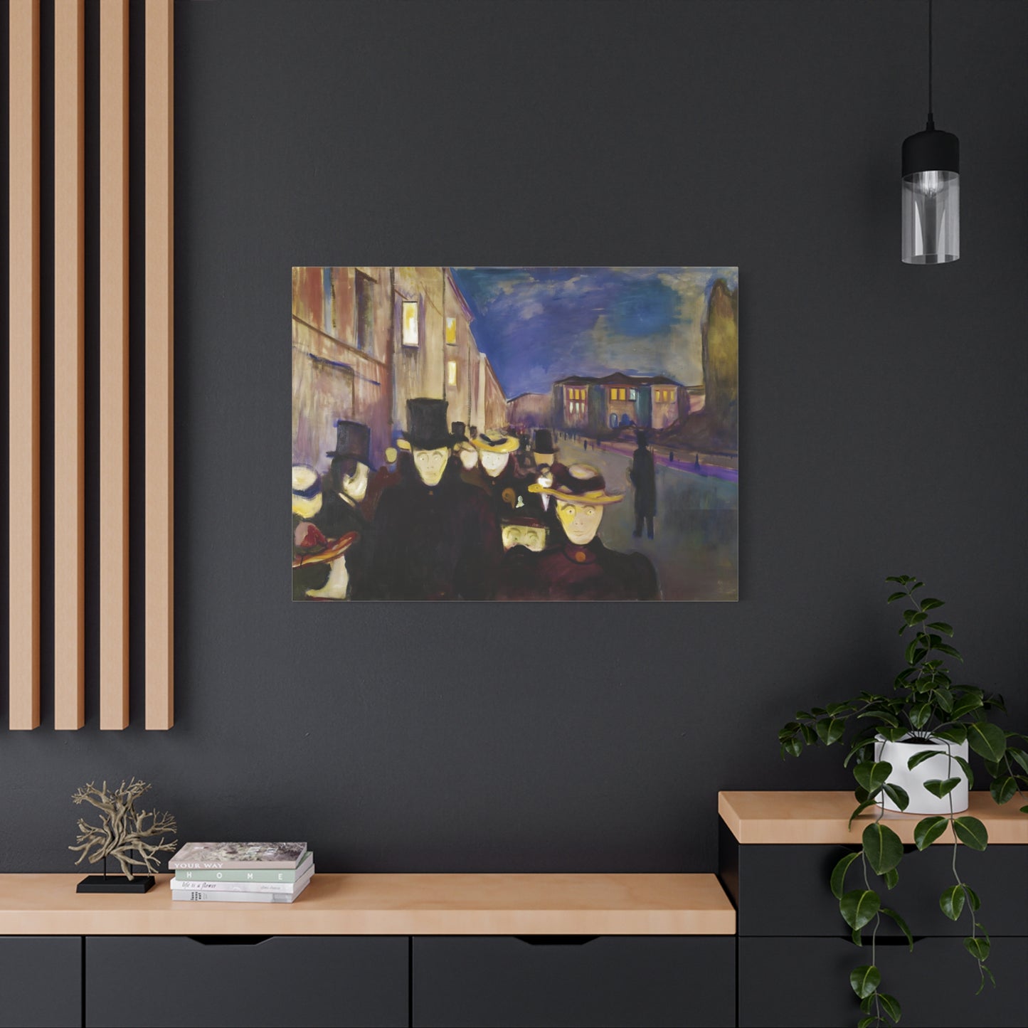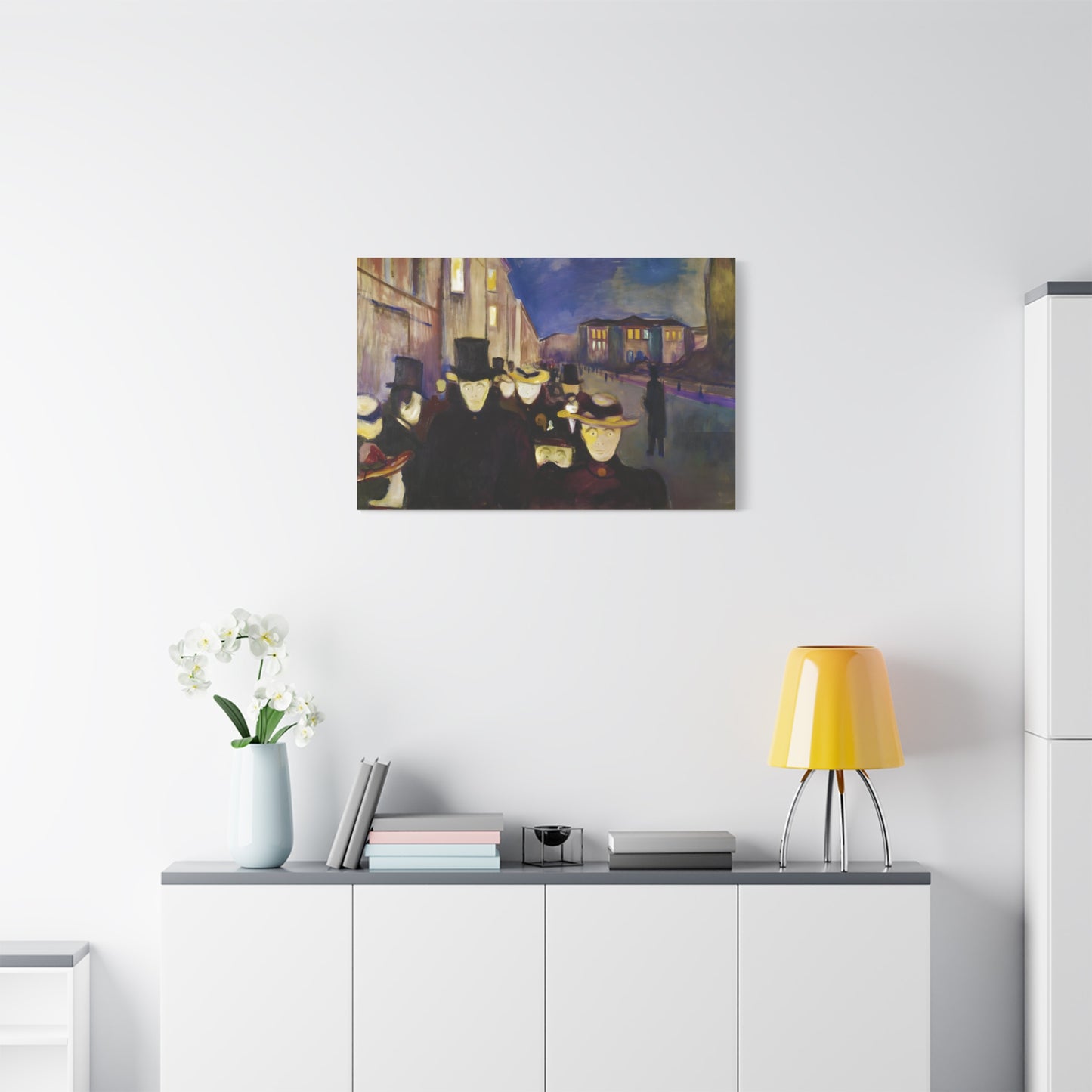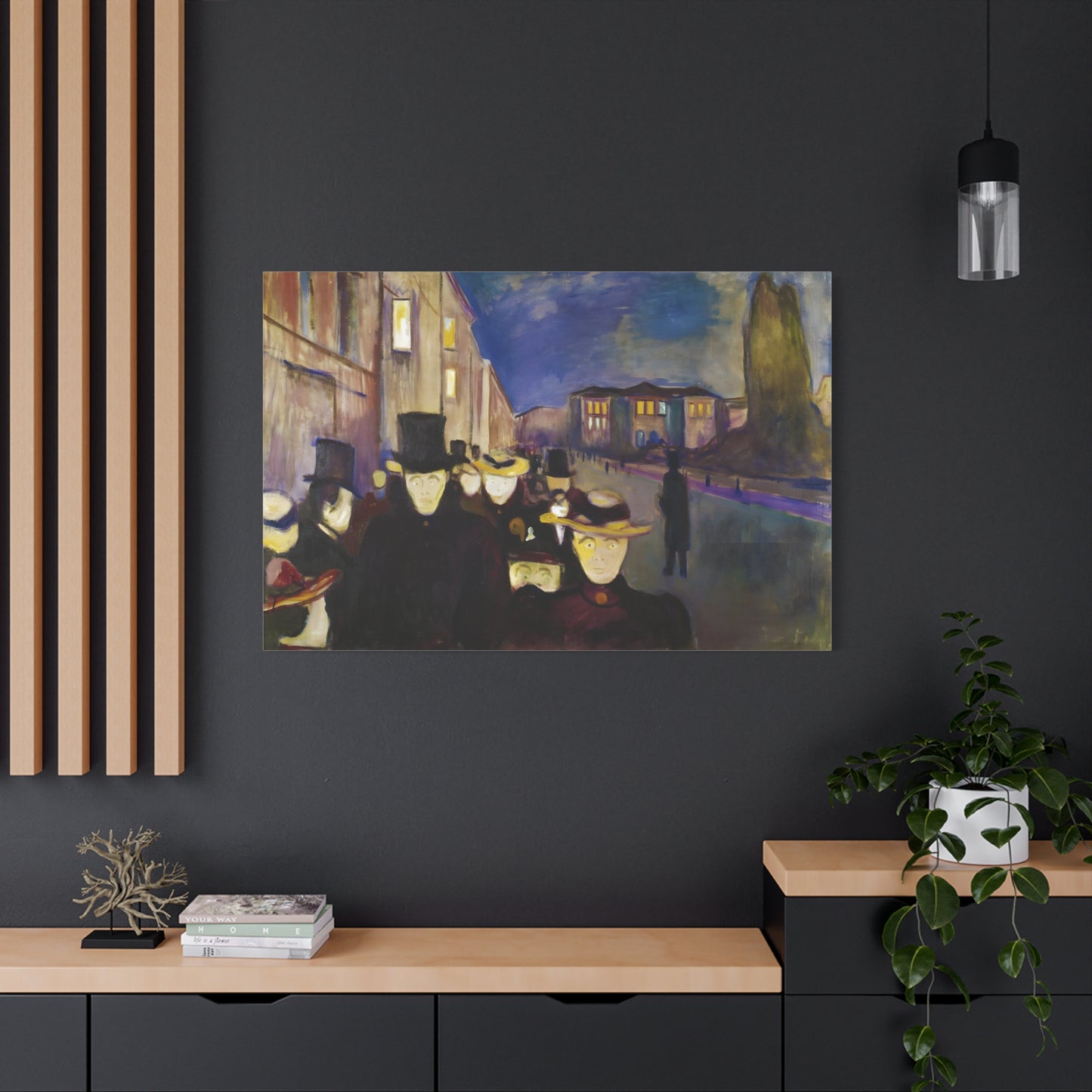 Transport yourself to the enchanting streets of Oslo with Evening on Karl Johan Street by Edvard Munch, painted in 1892. This captivating masterpiece captures the bustling energy and ethereal beauty of a city bathed in the golden glow of twilight. With our meticulously replicated canvas art, you can bring this iconic scene into your home, immersing yourself in the romantic ambiance of Munch's brushstrokes. Experience the allure of urban life, the play of light and shadows, and the timeless charm of this exquisite artwork. Add a touch of sophistication and elegance to your space with our stunning canvas replication of Evening on Karl Johan Street and let its captivating allure transform your surroundings.