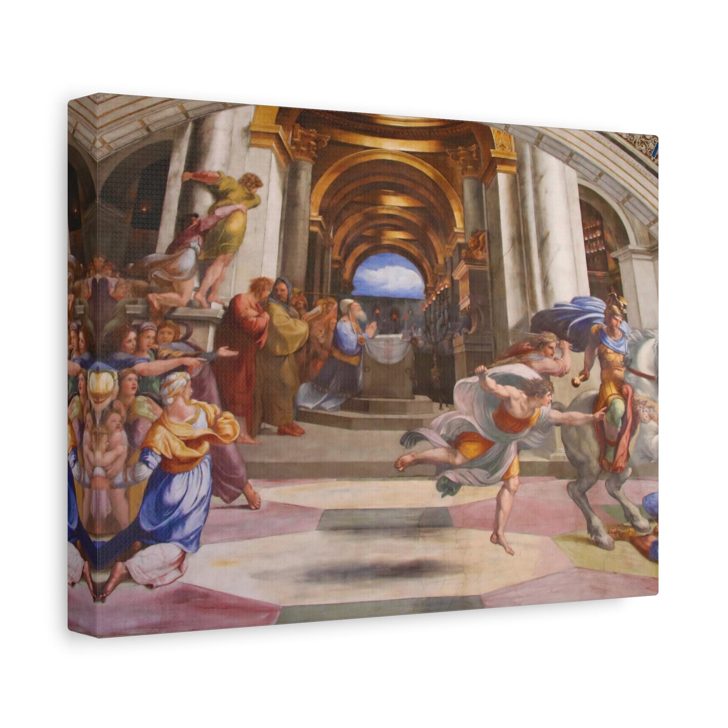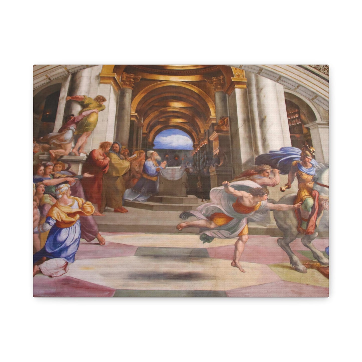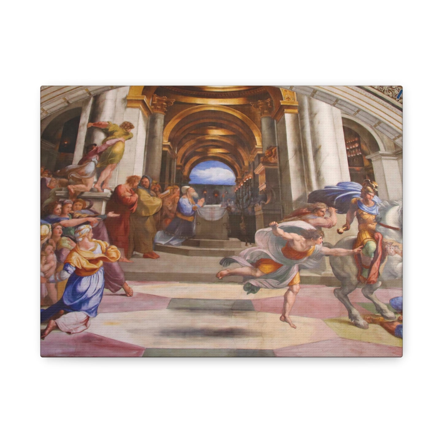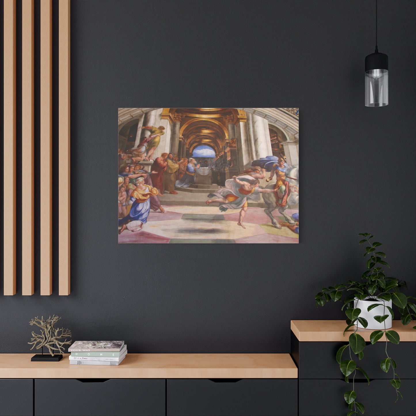 Experience the dramatic intensity of Raphael's Expulsion of Heliodorus from the Temple, created in 1512 as a captivating portrayal of divine intervention. Step into the scene as Heliodorus, a sacrilegious intruder, is forcefully expelled from the sacred space by celestial figures. This iconic masterpiece captures the clash between earthly and divine forces with its dynamic composition, skillful brushwork, and powerful emotions. Owning a replicated version of this artwork allows you to bring the grandeur and spiritual significance of the Renaissance into your home. Let the Expulsion of Heliodorus from the Temple command attention and ignite conversations, serving as a reminder of the triumph of righteousness. Immerse yourself in the epic narrative of this extraordinary painting, adding a touch of awe-inspiring beauty to your living space. Created in 1512, this timeless masterpiece continues to inspire and captivate audiences with its profound symbolism and artistic brilliance.
