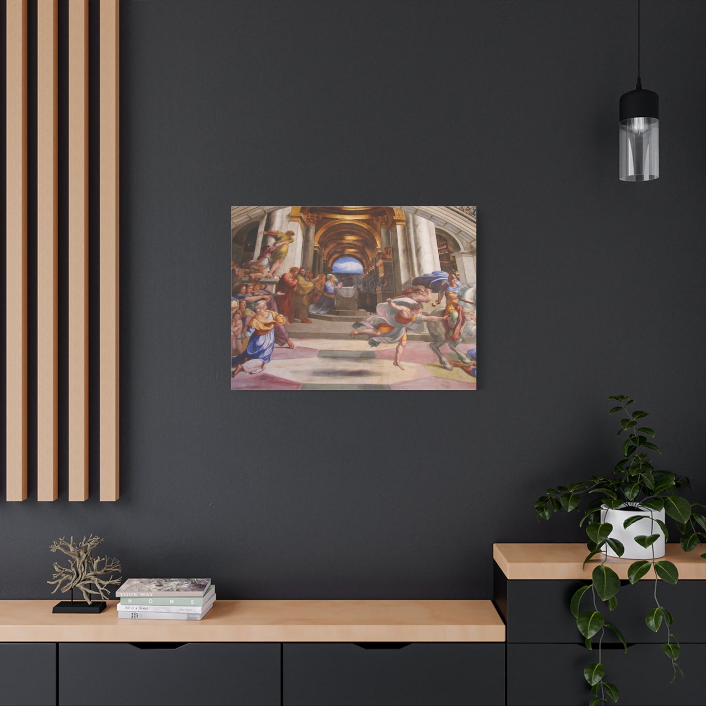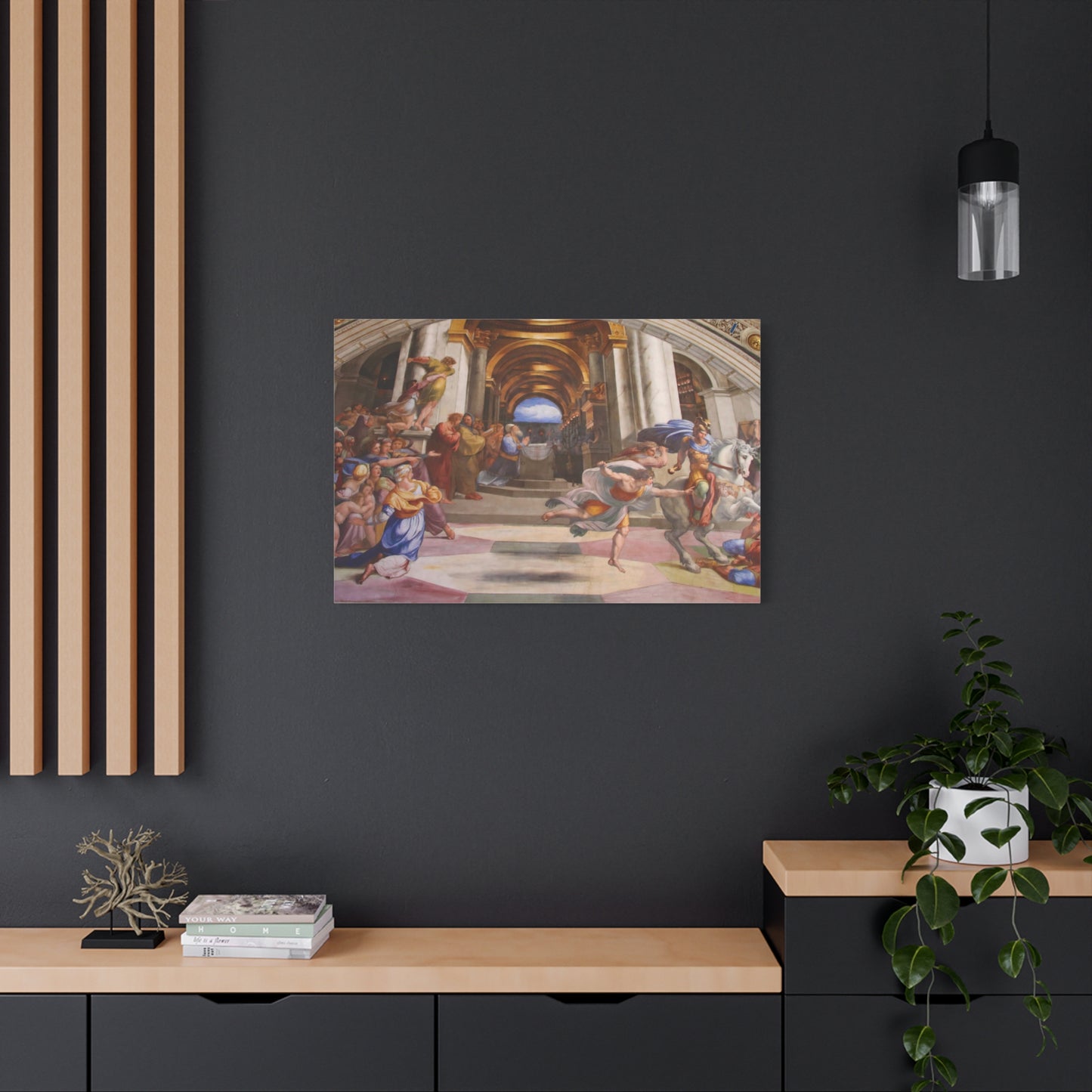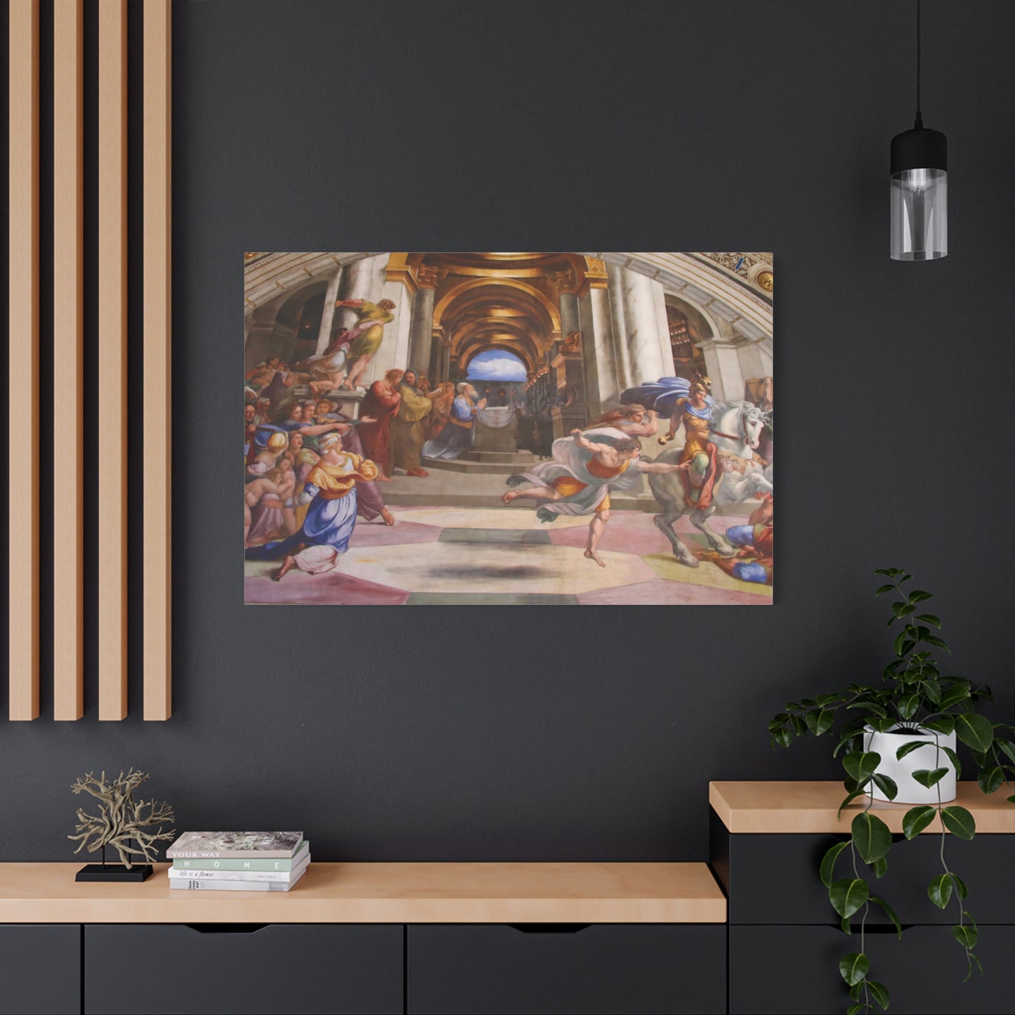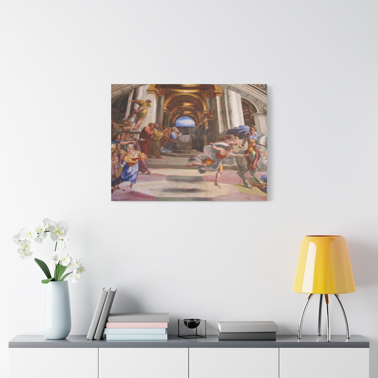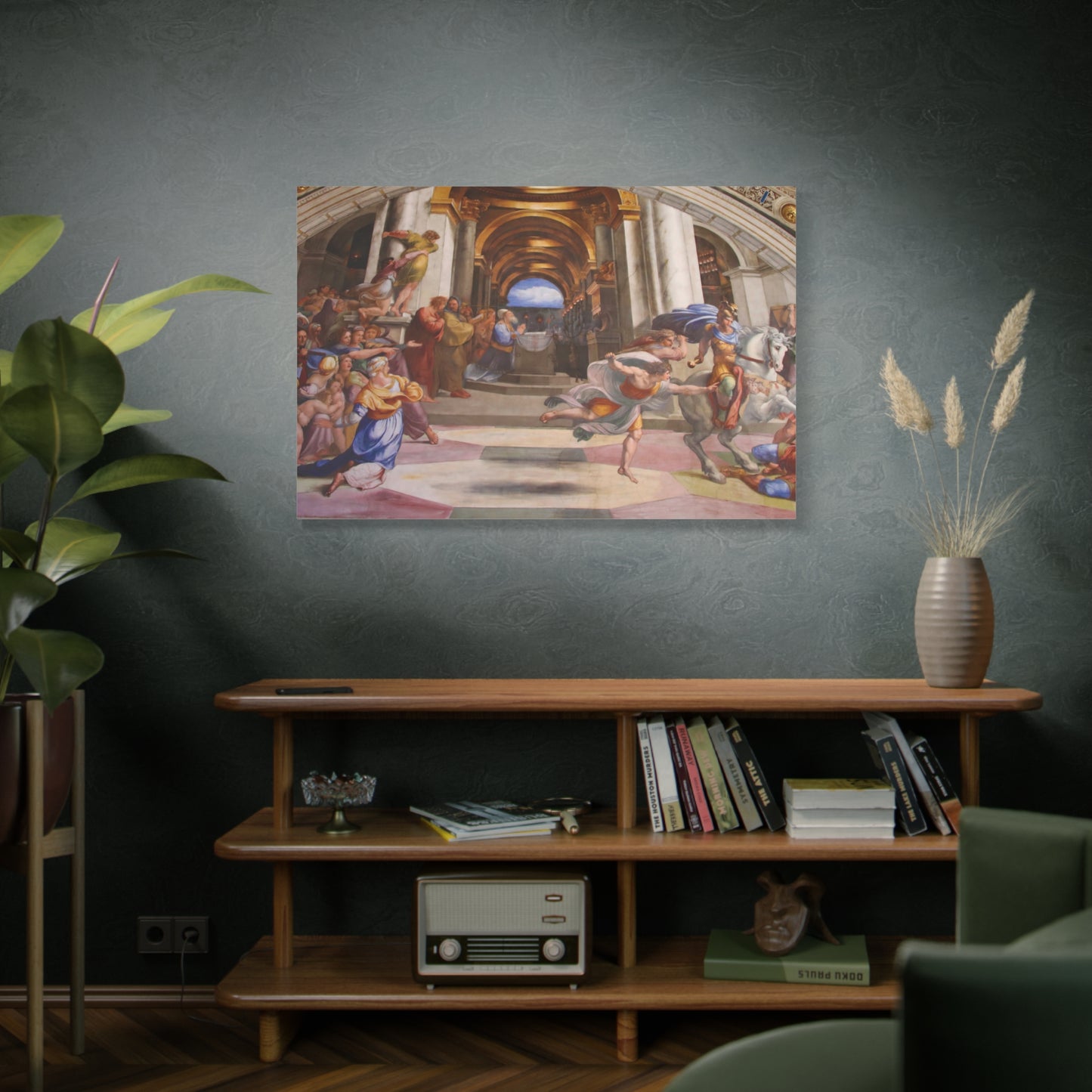 Experience the dramatic intensity of Raphael's Expulsion of Heliodorus from the Temple, created in 1512 as a captivating portrayal of divine intervention. Step into the scene as Heliodorus, a sacrilegious intruder, is forcefully expelled from the sacred space by celestial figures. This iconic masterpiece captures the clash between earthly and divine forces with its dynamic composition, skillful brushwork, and powerful emotions. Owning a replicated version of this artwork allows you to bring the grandeur and spiritual significance of the Renaissance into your home. Let the Expulsion of Heliodorus from the Temple command attention and ignite conversations, serving as a reminder of the triumph of righteousness. Immerse yourself in the epic narrative of this extraordinary painting, adding a touch of awe-inspiring beauty to your living space. Created in 1512, this timeless masterpiece continues to inspire and captivate audiences with its profound symbolism and artistic brilliance.