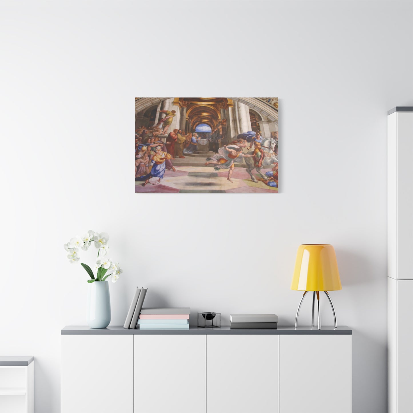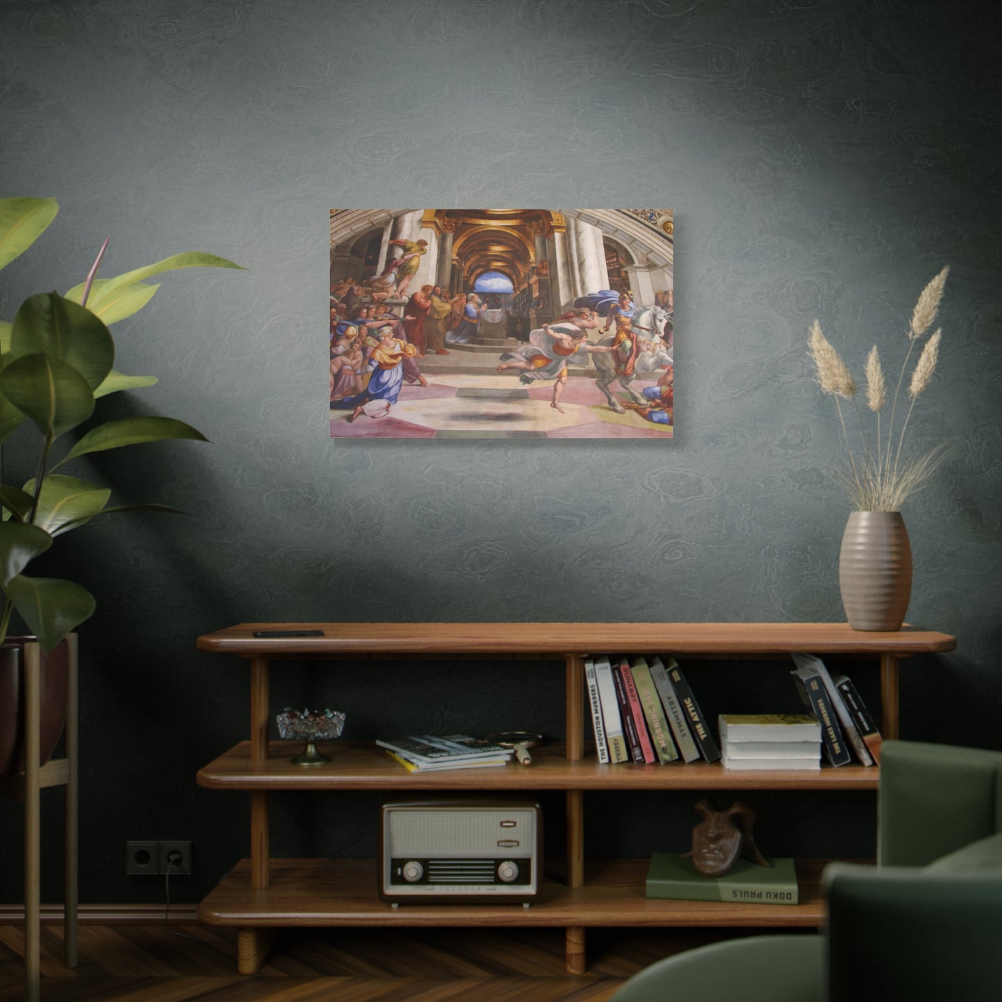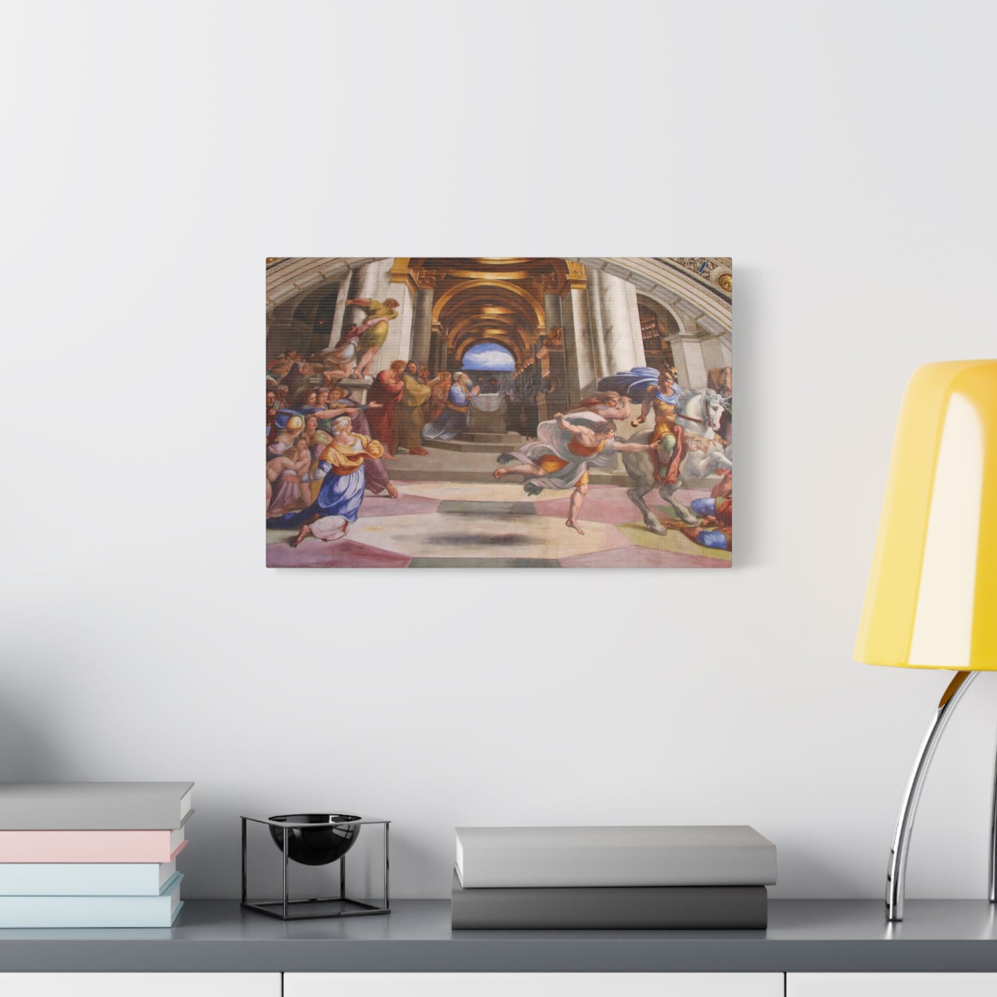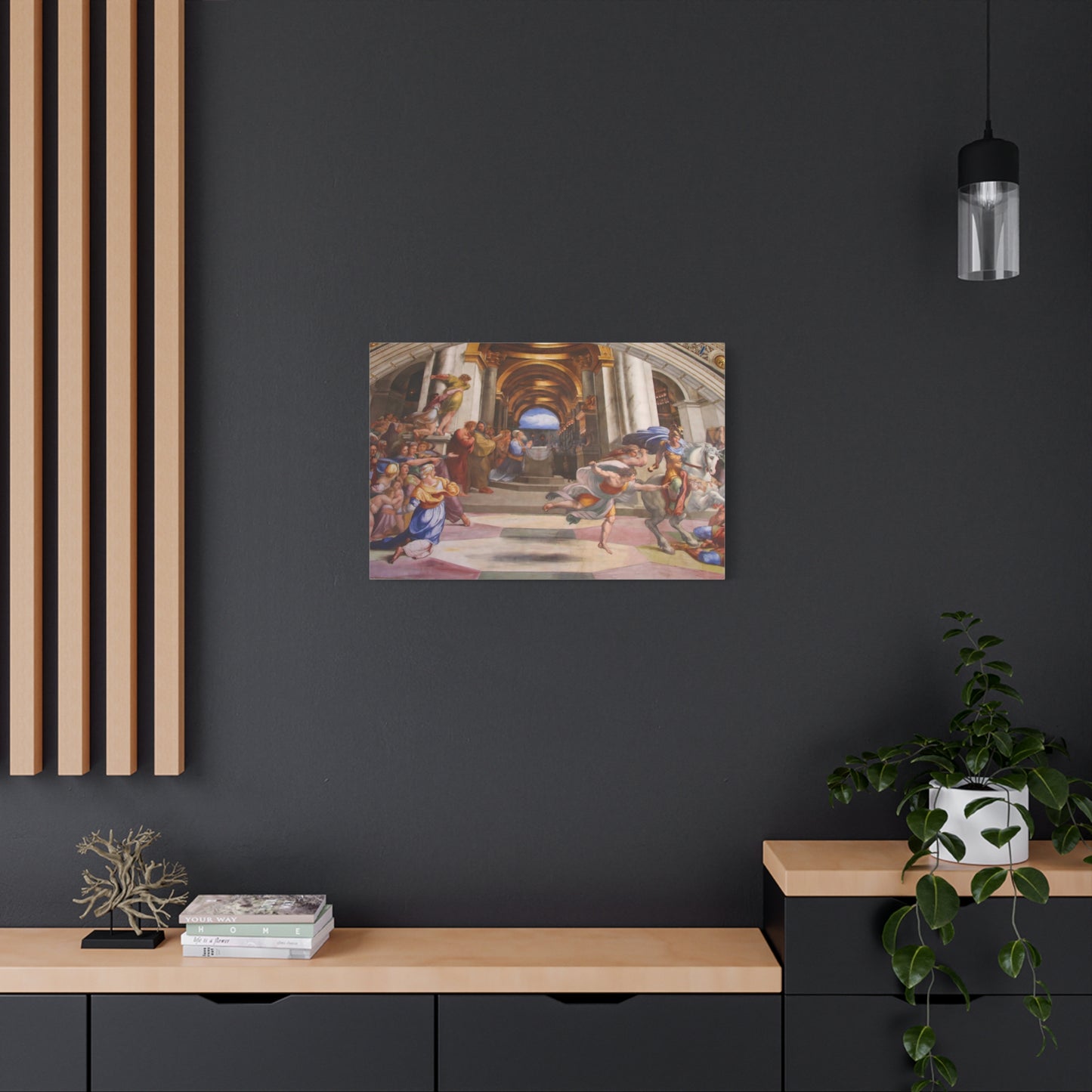 Experience the dramatic intensity of Raphael's Expulsion of Heliodorus from the Temple, created in 1512 as a captivating portrayal of divine intervention. Step into the scene as Heliodorus, a sacrilegious intruder, is forcefully expelled from the sacred space by celestial figures. This iconic masterpiece captures the clash between earthly and divine forces with its dynamic composition, skillful brushwork, and powerful emotions. Owning a replicated version of this artwork allows you to bring the grandeur and spiritual significance of the Renaissance into your home. Let the Expulsion of Heliodorus from the Temple command attention and ignite conversations, serving as a reminder of the triumph of righteousness. Immerse yourself in the epic narrative of this extraordinary painting, adding a touch of awe-inspiring beauty to your living space. Created in 1512, this timeless masterpiece continues to inspire and captivate audiences with its profound symbolism and artistic brilliance.