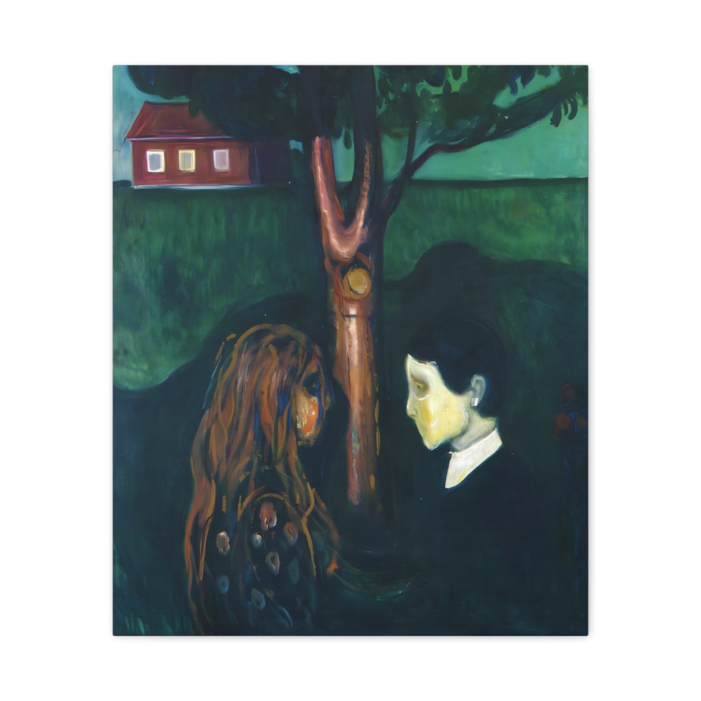 Step into the mesmerizing world of Eye in Eye by Edvard Munch, created in 1894. This extraordinary artwork captivates with its haunting beauty and profound emotional depth. The piercing gaze of the subject draws you in, evoking a sense of intrigue and introspection. Our meticulously replicated canvas art allows you to bring this powerful masterpiece into your home, infusing your space with a captivating aura. The interplay of light and shadow, the expressive brushstrokes, and the intense emotional presence make Eye in Eye a must-have for art enthusiasts. Experience the profound connection between art and soul with our exquisite canvas replication of this iconic Munch artwork and let it become the focal point of your decor, sparking conversation and igniting the imagination.