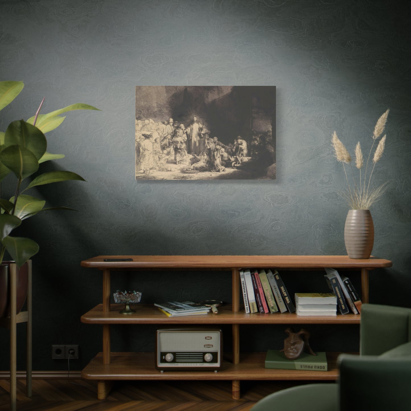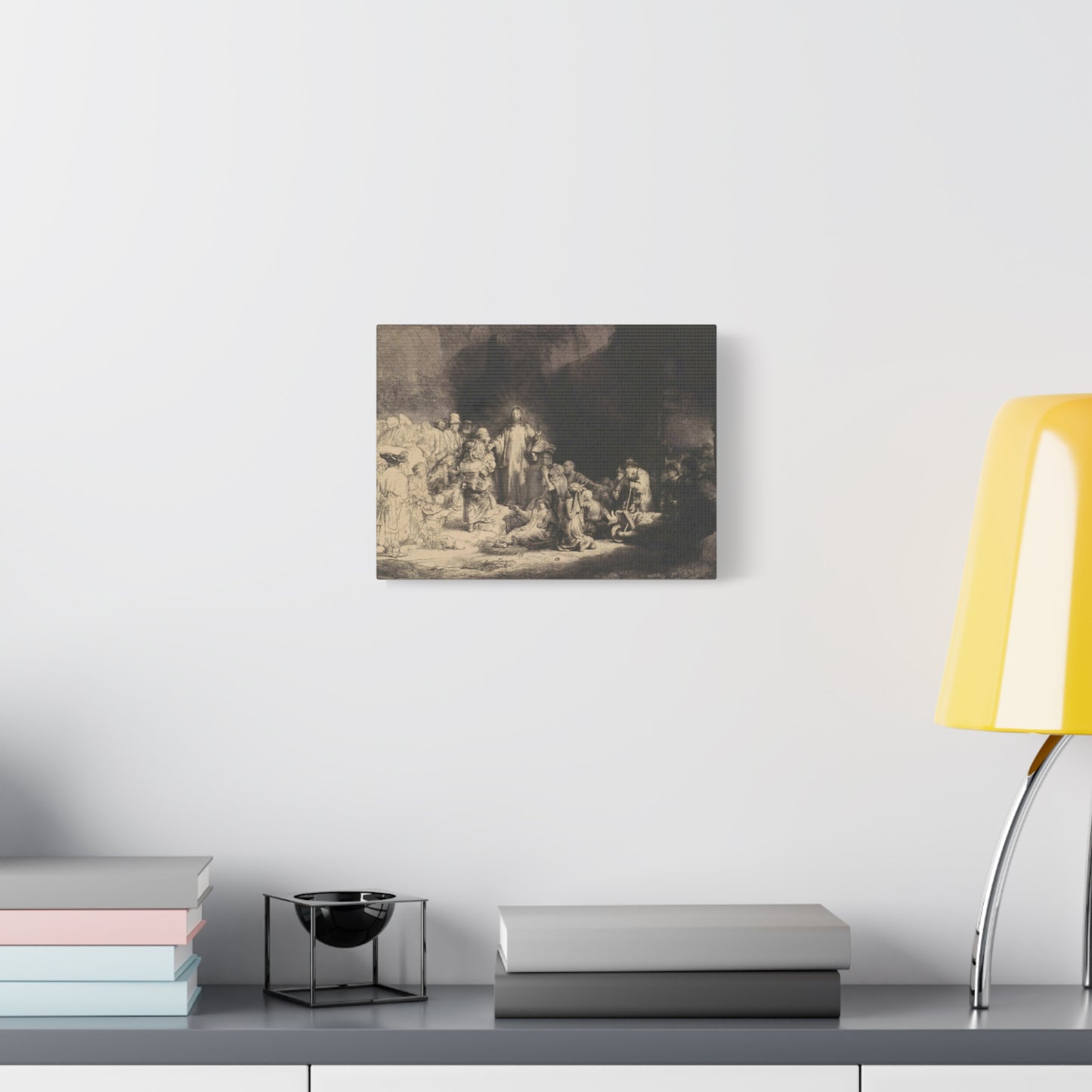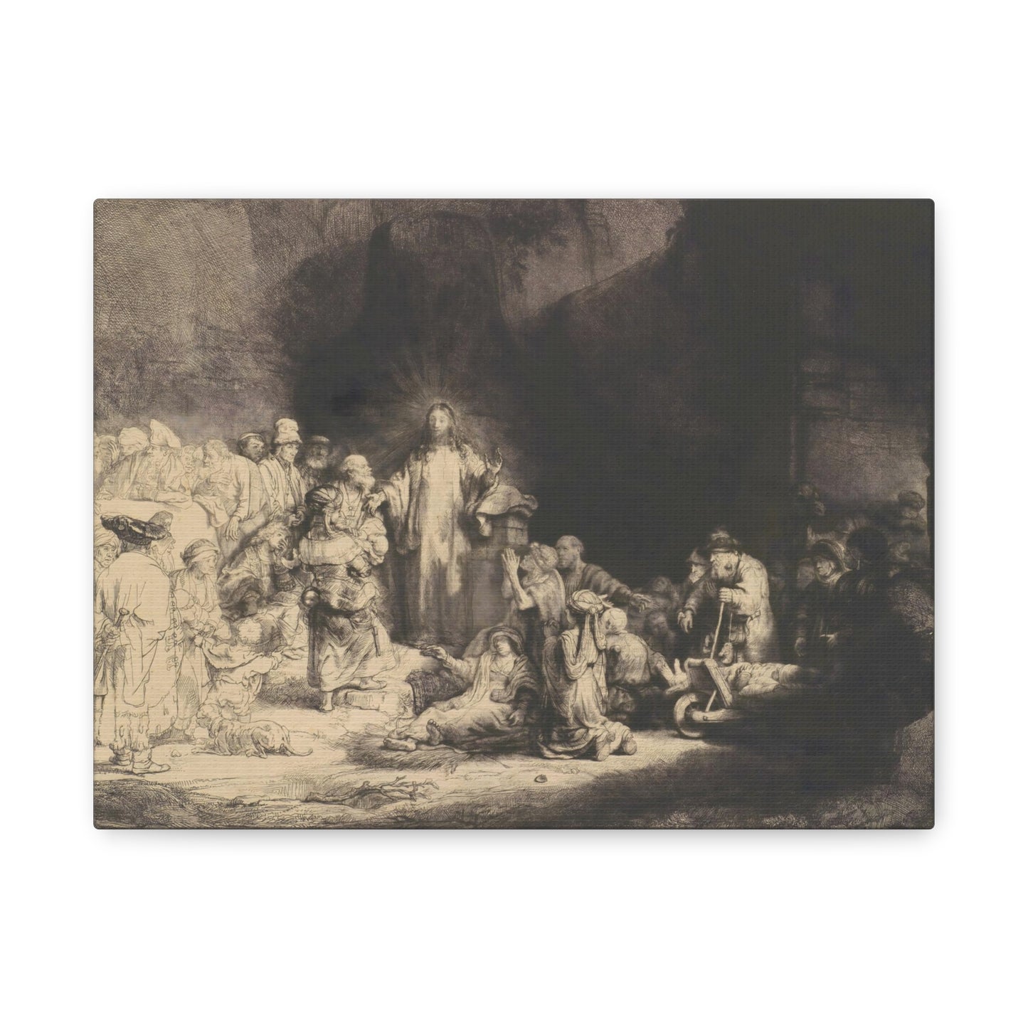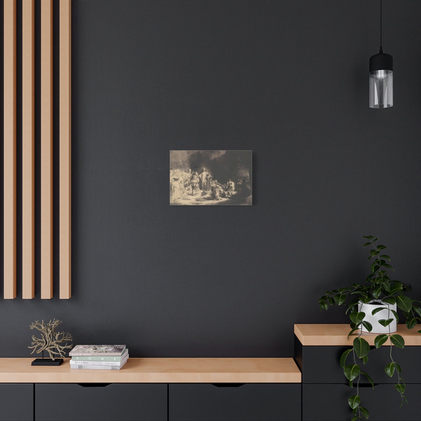 Introducing the magnificent Hundred Guilder Print by Rembrandt, a true masterpiece that showcases the artist's exceptional talent and unrivaled craftsmanship. Created in 1643, this etching is a tour de force of intricate detail, captivating storytelling, and exquisite composition. It depicts the biblical scene of Christ healing the sick and performing miracles, offering a profound glimpse into Rembrandt's profound understanding of light, shadow, and human emotions. By owning a canvas art replication of the Hundred Guilder Print, you bring home a piece of art history and immerse yourself in Rembrandt's genius. The rich symbolism, impeccable technique, and timeless beauty of this artwork make it a captivating addition to any art collection. Experience the power and grace of Rembrandt's masterwork in your own space and let it inspire and uplift you every day. Don't miss the opportunity to own a piece of art that will leave a lasting impression on all who behold it.