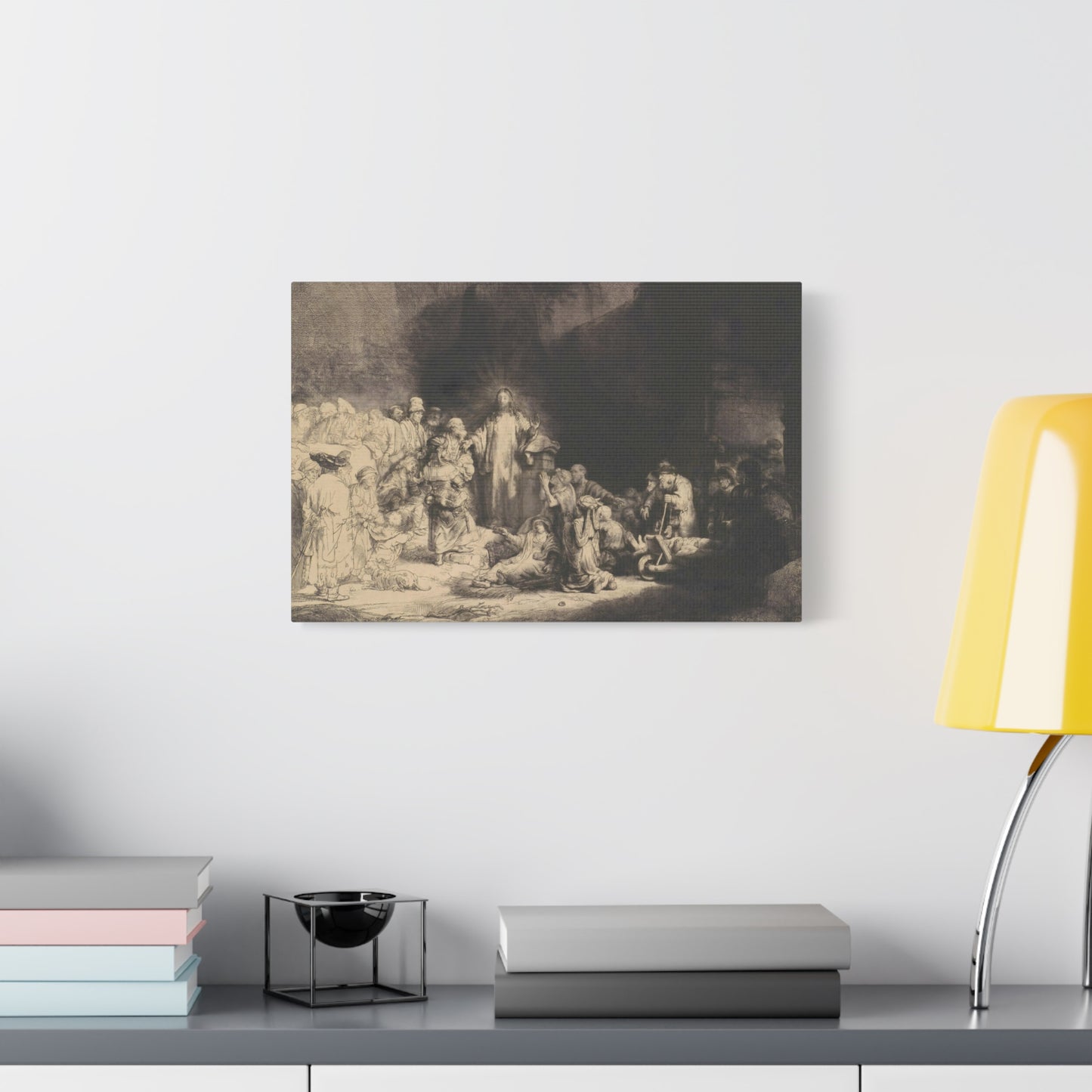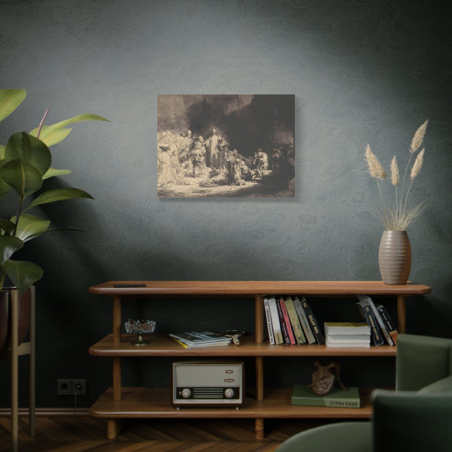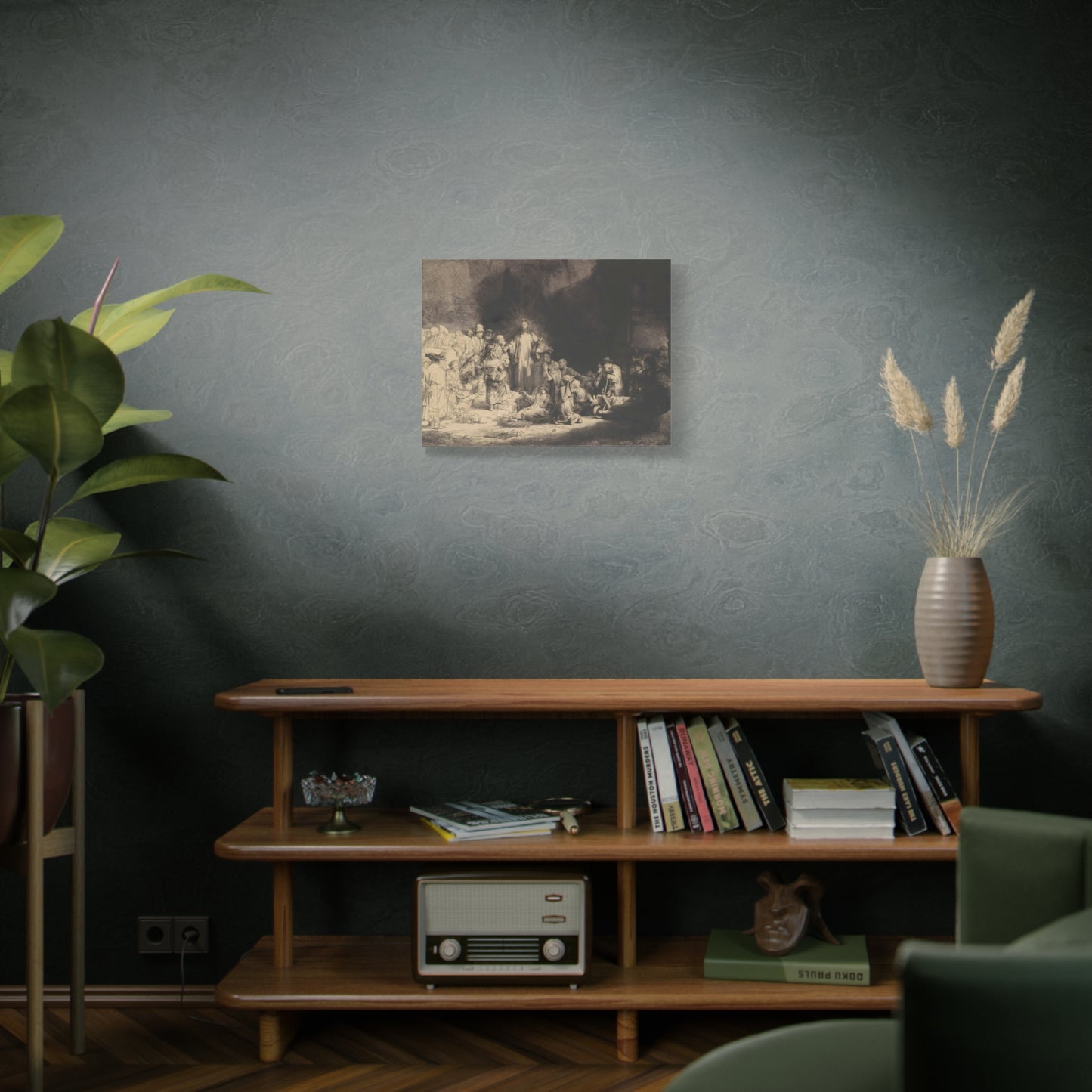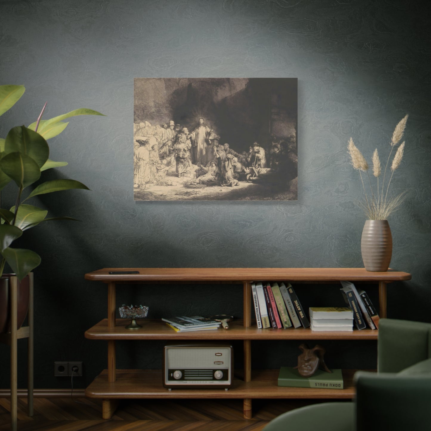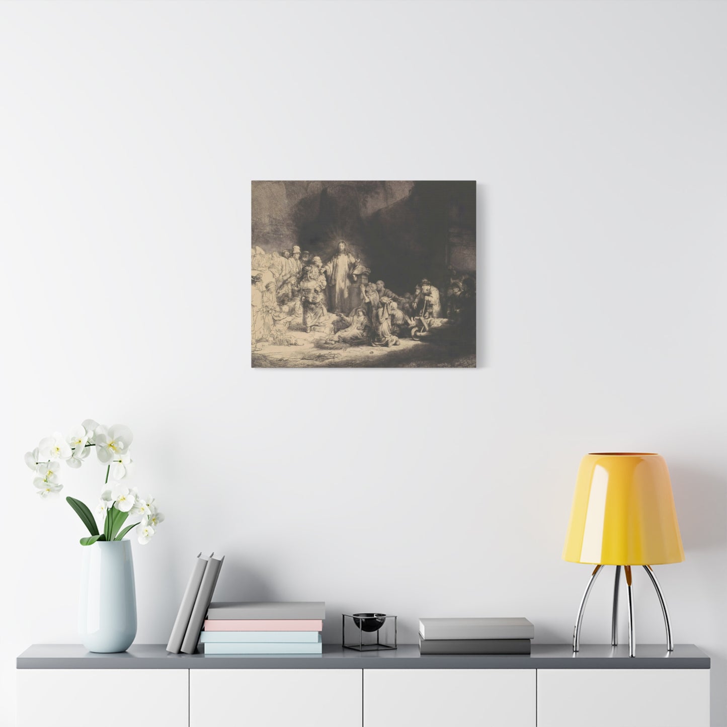 Introducing the magnificent Hundred Guilder Print by Rembrandt, a true masterpiece that showcases the artist's exceptional talent and unrivaled craftsmanship. Created in 1643, this etching is a tour de force of intricate detail, captivating storytelling, and exquisite composition. It depicts the biblical scene of Christ healing the sick and performing miracles, offering a profound glimpse into Rembrandt's profound understanding of light, shadow, and human emotions. By owning a canvas art replication of the Hundred Guilder Print, you bring home a piece of art history and immerse yourself in Rembrandt's genius. The rich symbolism, impeccable technique, and timeless beauty of this artwork make it a captivating addition to any art collection. Experience the power and grace of Rembrandt's masterwork in your own space and let it inspire and uplift you every day. Don't miss the opportunity to own a piece of art that will leave a lasting impression on all who behold it.