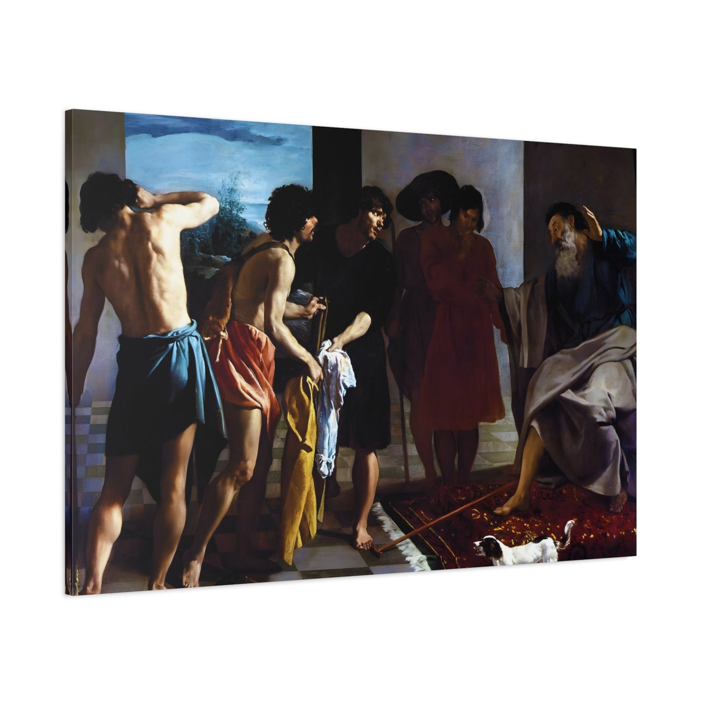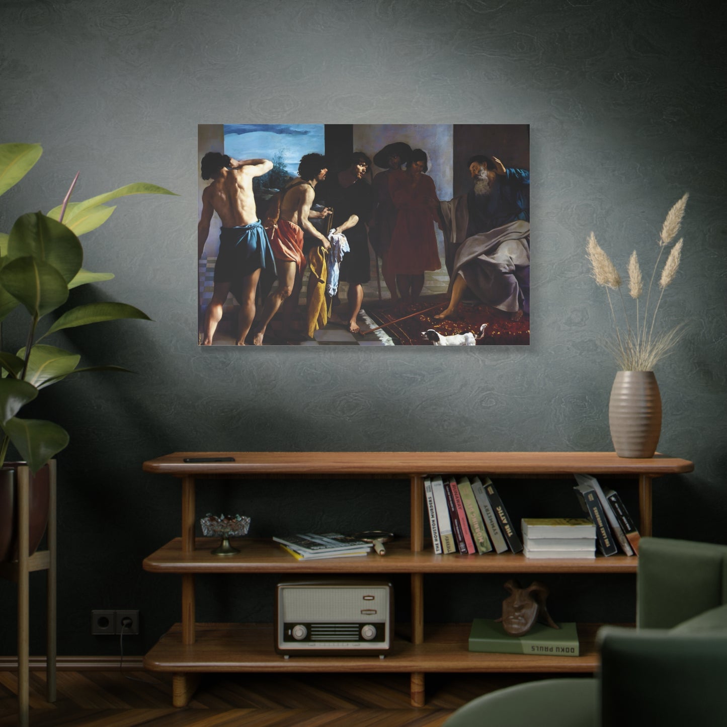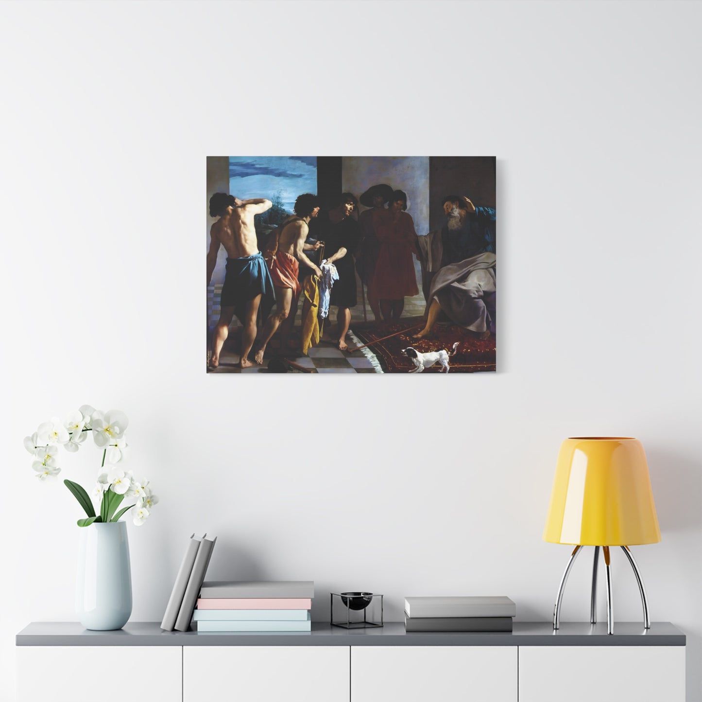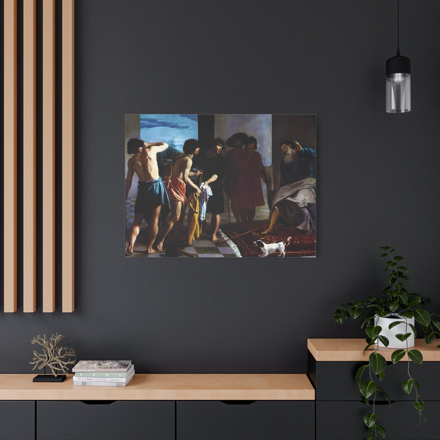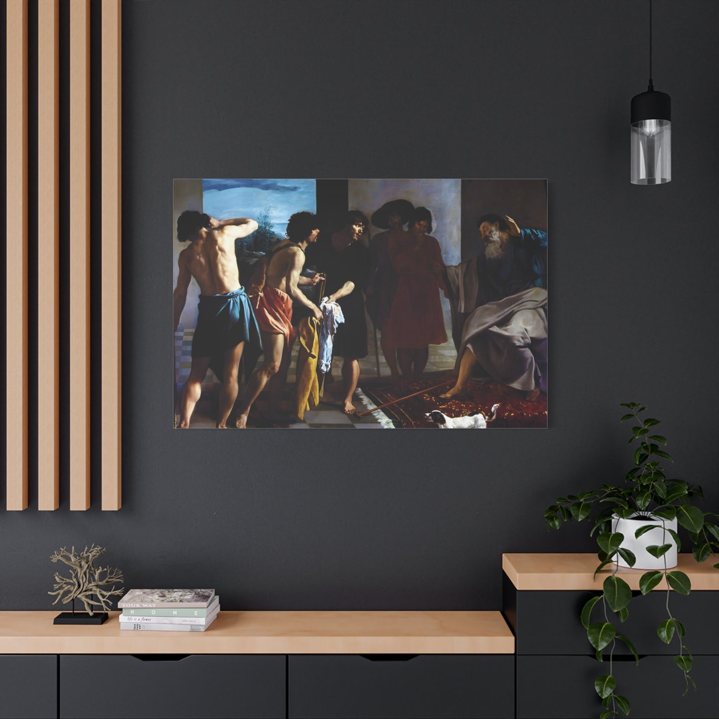 Immerse yourself in the dramatic tale of Joseph's Bloody Coat Brought to Jacob by Diego Velázquez, an extraordinary artwork created in the 17th century. This captivating masterpiece tells a powerful story of betrayal, family dynamics, and emotional turmoil. Velázquez's masterful brushwork and rich colors breathe life into the scene, transporting you to the heart of the narrative. Owning this canvas replication allows you to bring the intensity and intrigue of this biblical tale into your home, creating a thought-provoking focal point that sparks conversations and ignites the imagination. Experience the thrill of owning a piece of history and let Joseph's Bloody Coat Brought to Jacob captivate and inspire you every day.