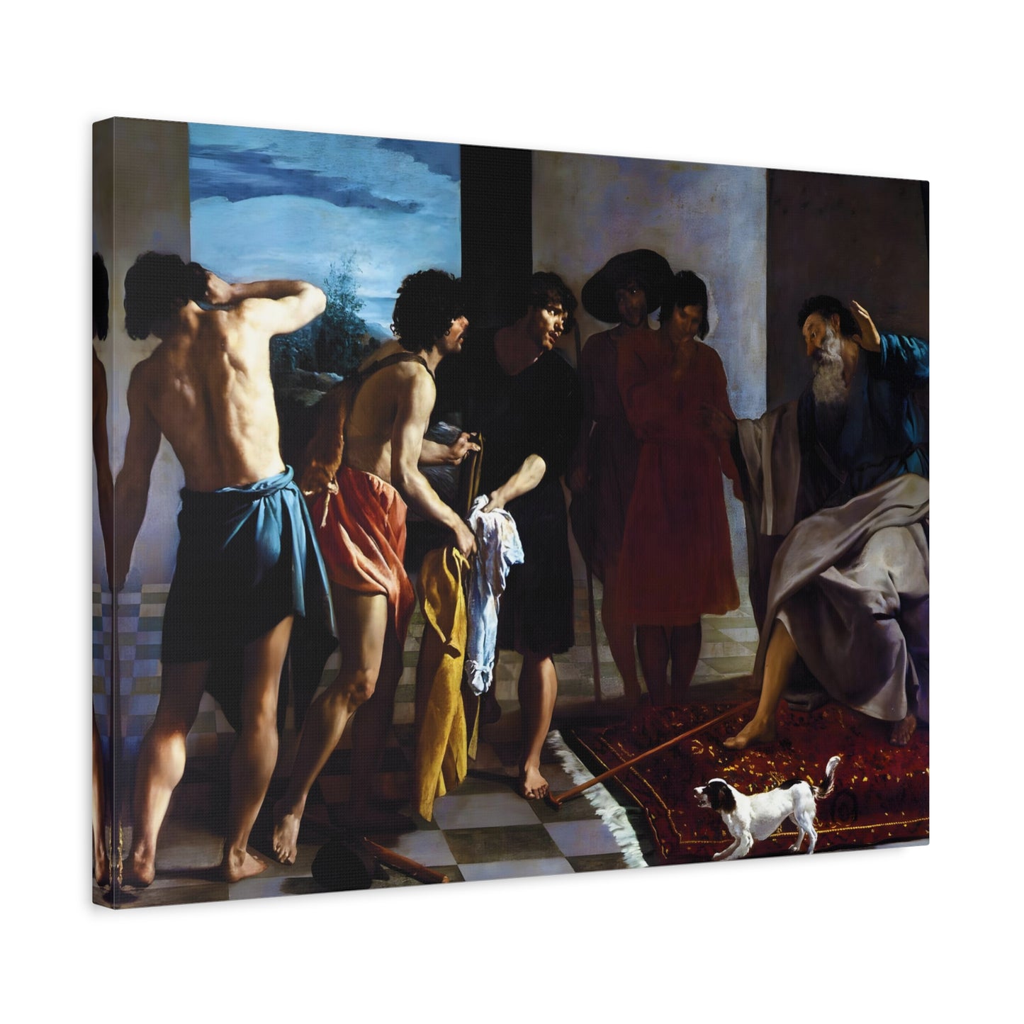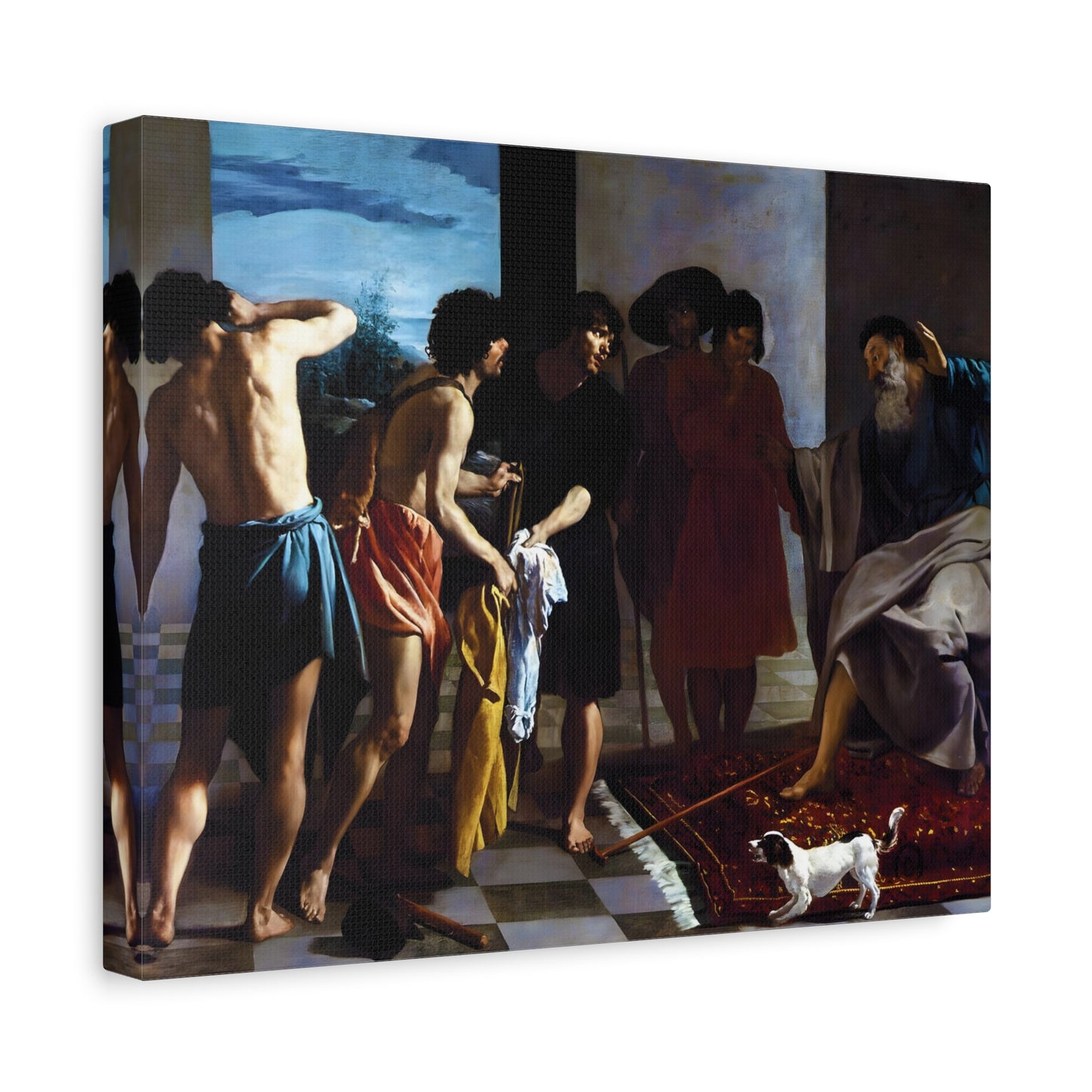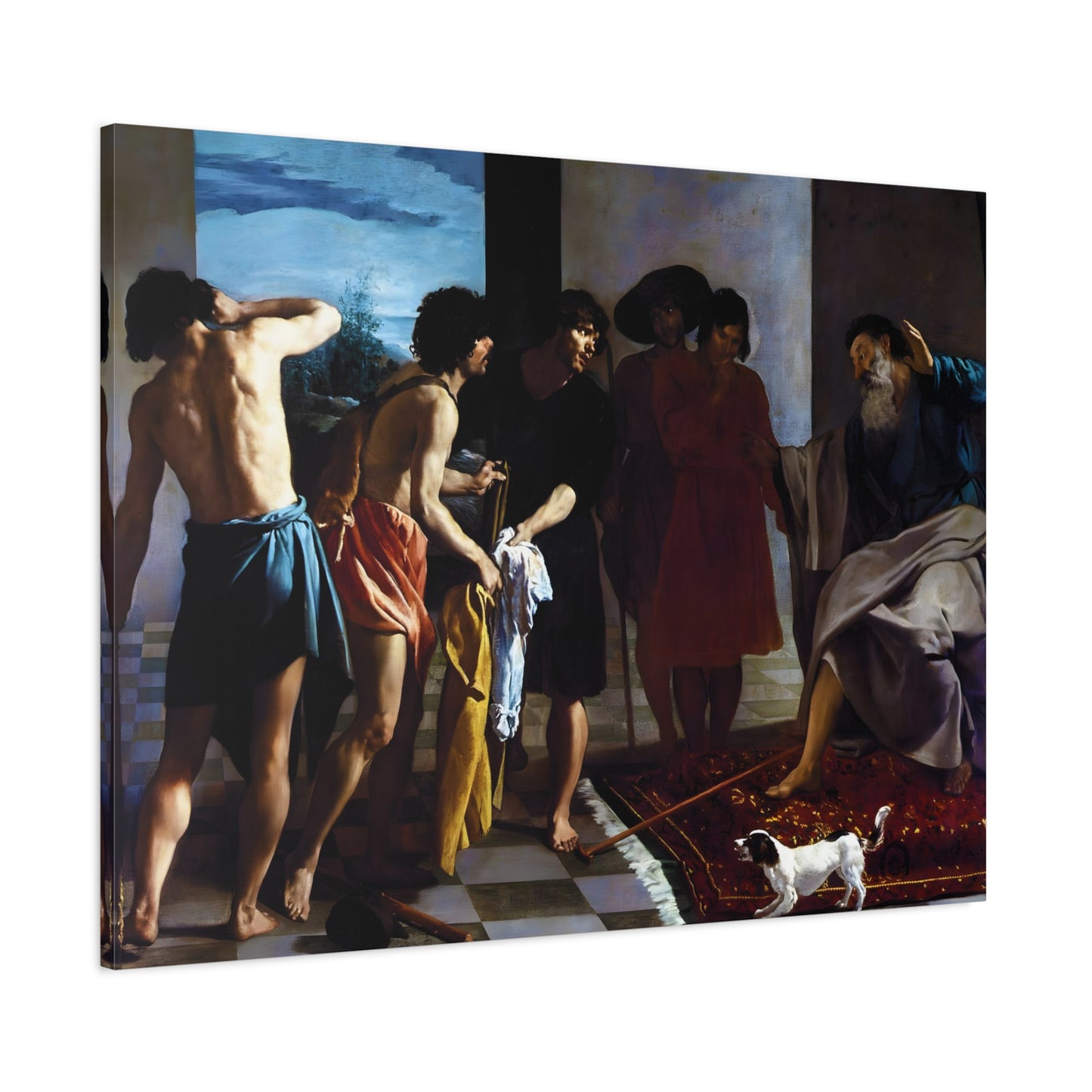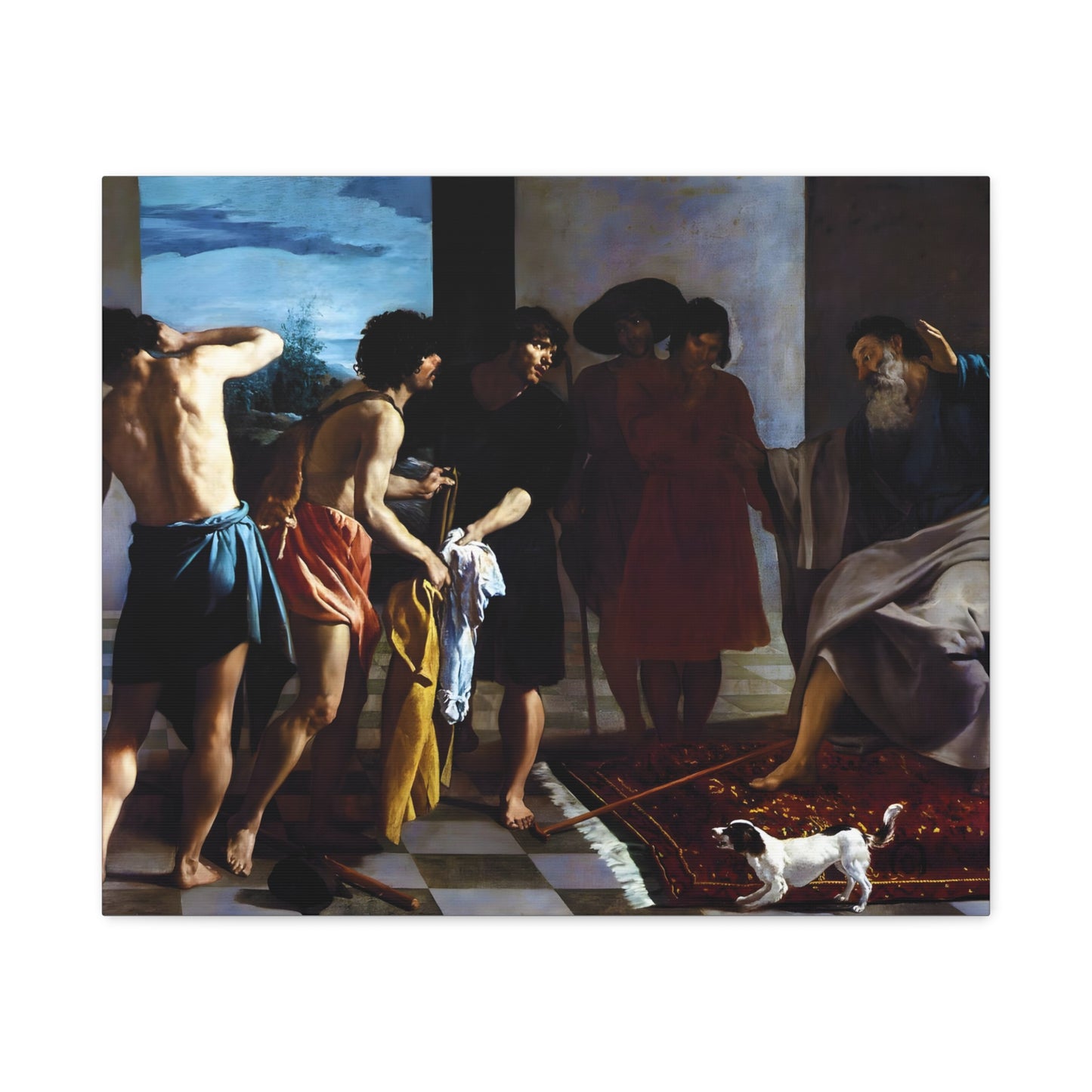 Immerse yourself in the dramatic tale of Joseph's Bloody Coat Brought to Jacob by Diego Velázquez, an extraordinary artwork created in the 17th century. This captivating masterpiece tells a powerful story of betrayal, family dynamics, and emotional turmoil. Velázquez's masterful brushwork and rich colors breathe life into the scene, transporting you to the heart of the narrative. Owning this canvas replication allows you to bring the intensity and intrigue of this biblical tale into your home, creating a thought-provoking focal point that sparks conversations and ignites the imagination. Experience the thrill of owning a piece of history and let Joseph's Bloody Coat Brought to Jacob captivate and inspire you every day.