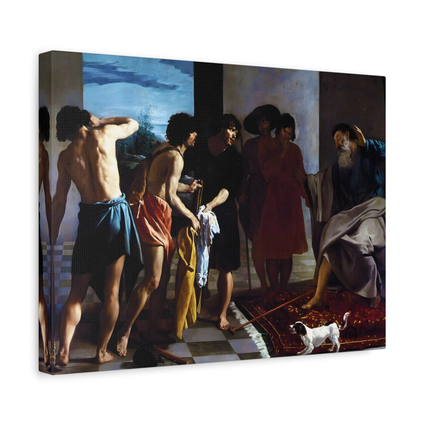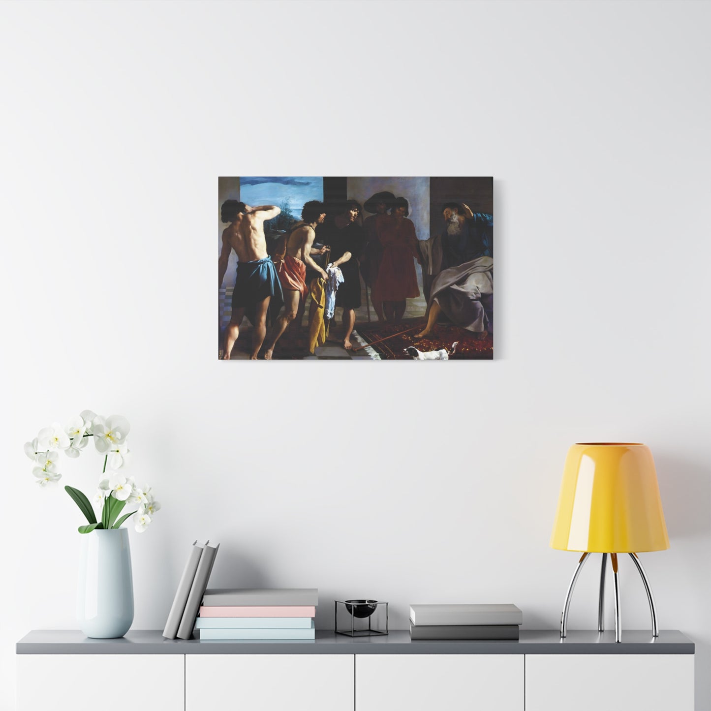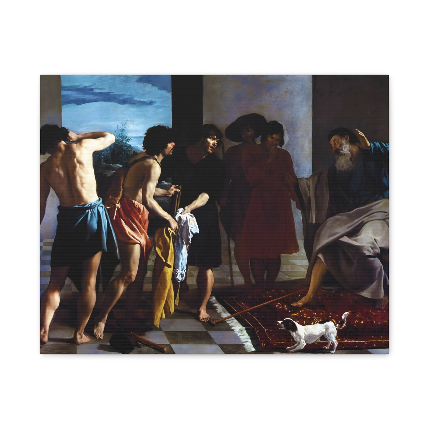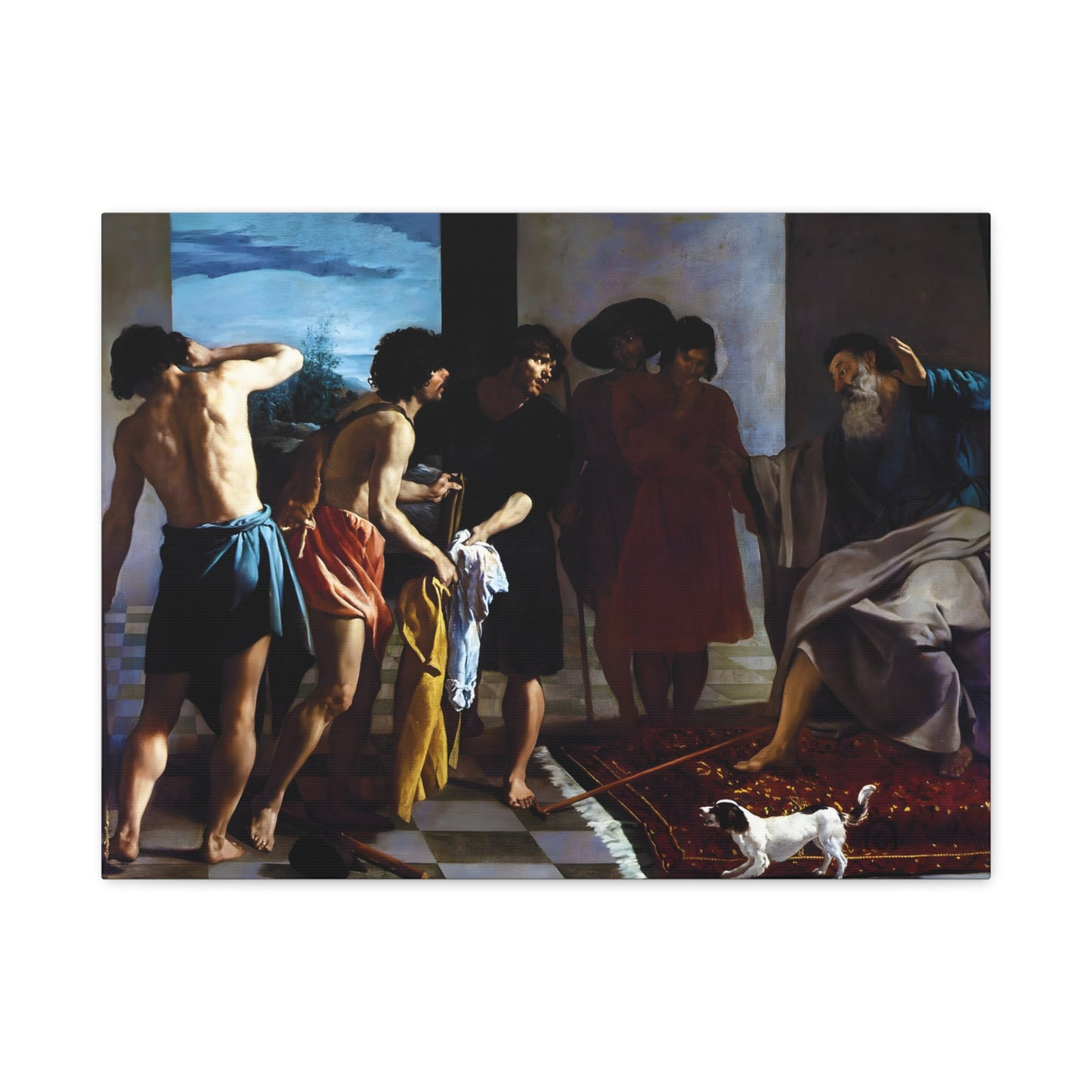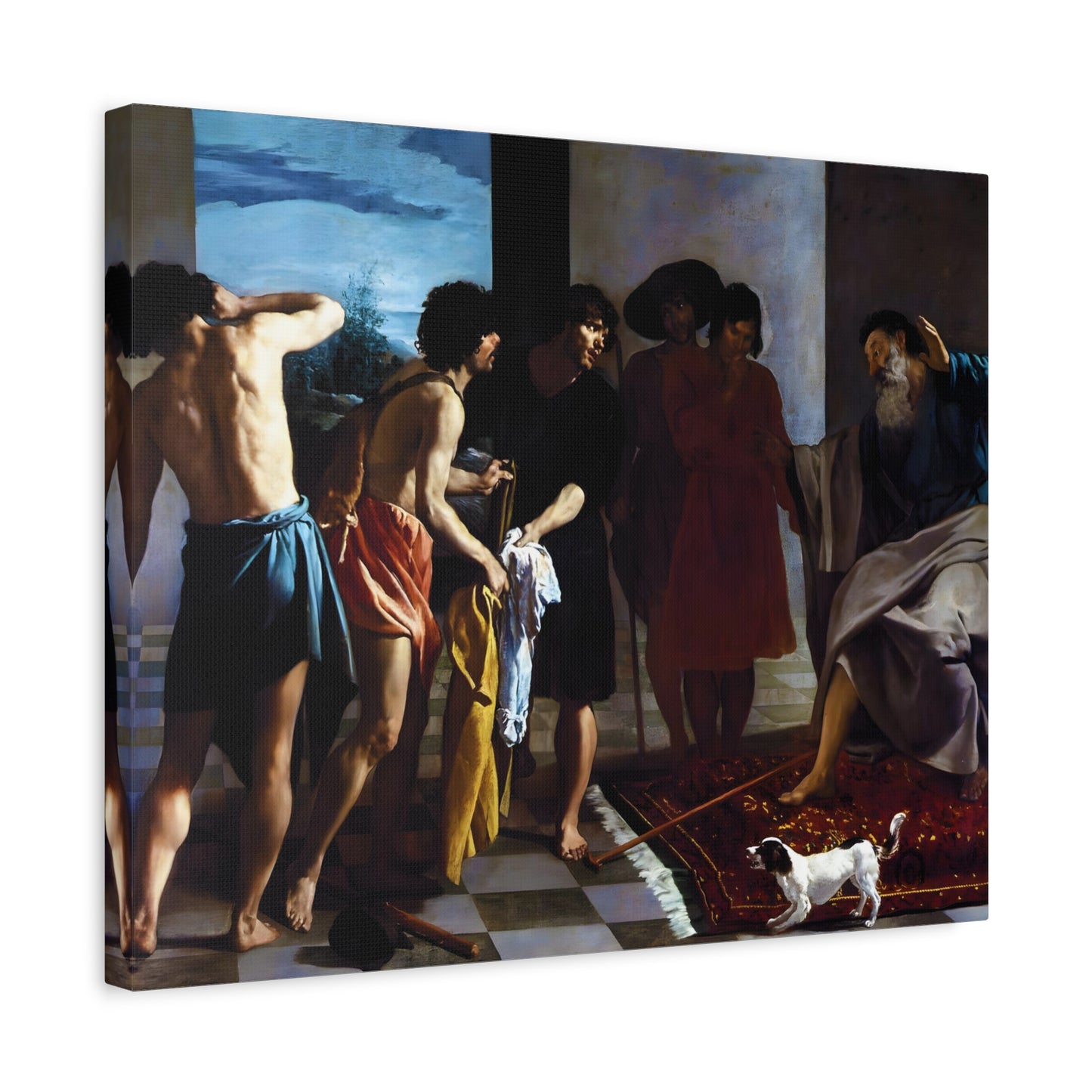 Immerse yourself in the dramatic tale of Joseph's Bloody Coat Brought to Jacob by Diego Velázquez, an extraordinary artwork created in the 17th century. This captivating masterpiece tells a powerful story of betrayal, family dynamics, and emotional turmoil. Velázquez's masterful brushwork and rich colors breathe life into the scene, transporting you to the heart of the narrative. Owning this canvas replication allows you to bring the intensity and intrigue of this biblical tale into your home, creating a thought-provoking focal point that sparks conversations and ignites the imagination. Experience the thrill of owning a piece of history and let Joseph's Bloody Coat Brought to Jacob captivate and inspire you every day.