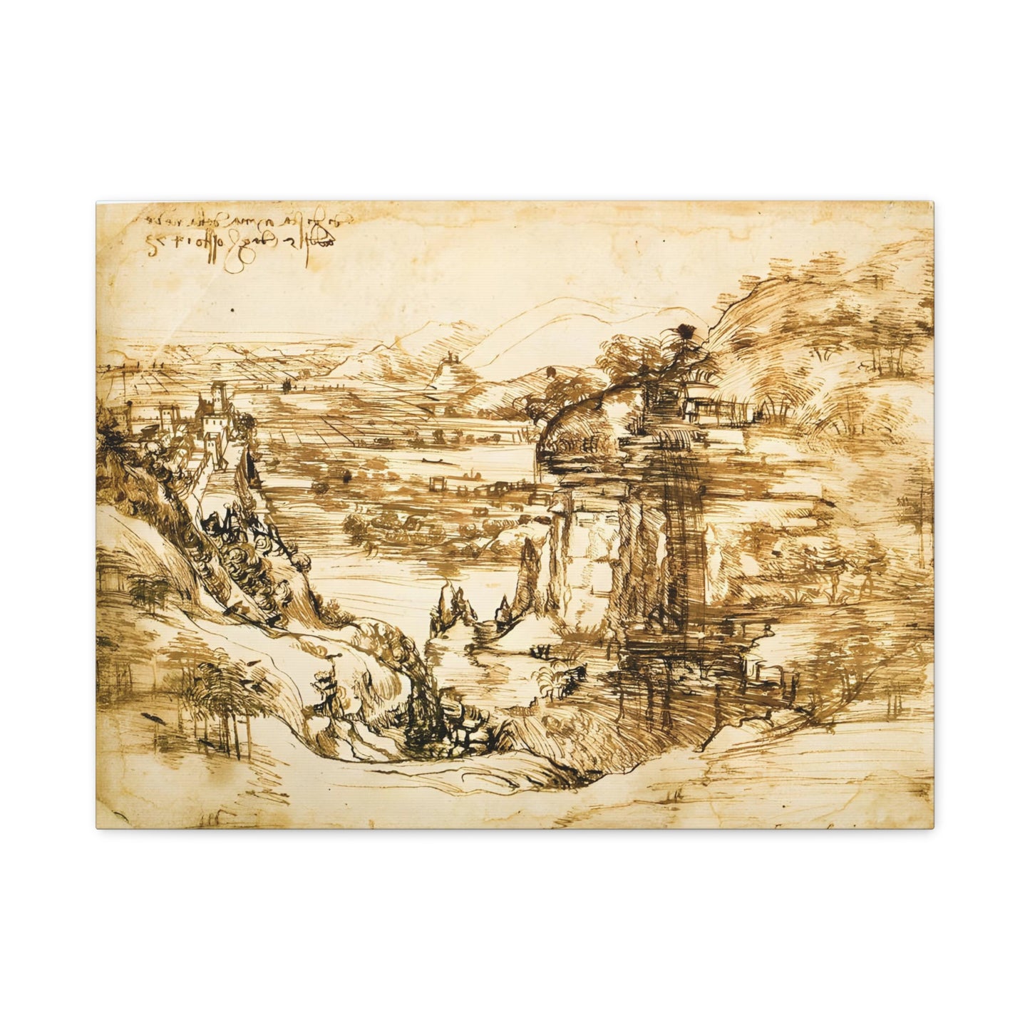 Landscape Drawing Santa Maria della Neve By Leonardo da Vinci