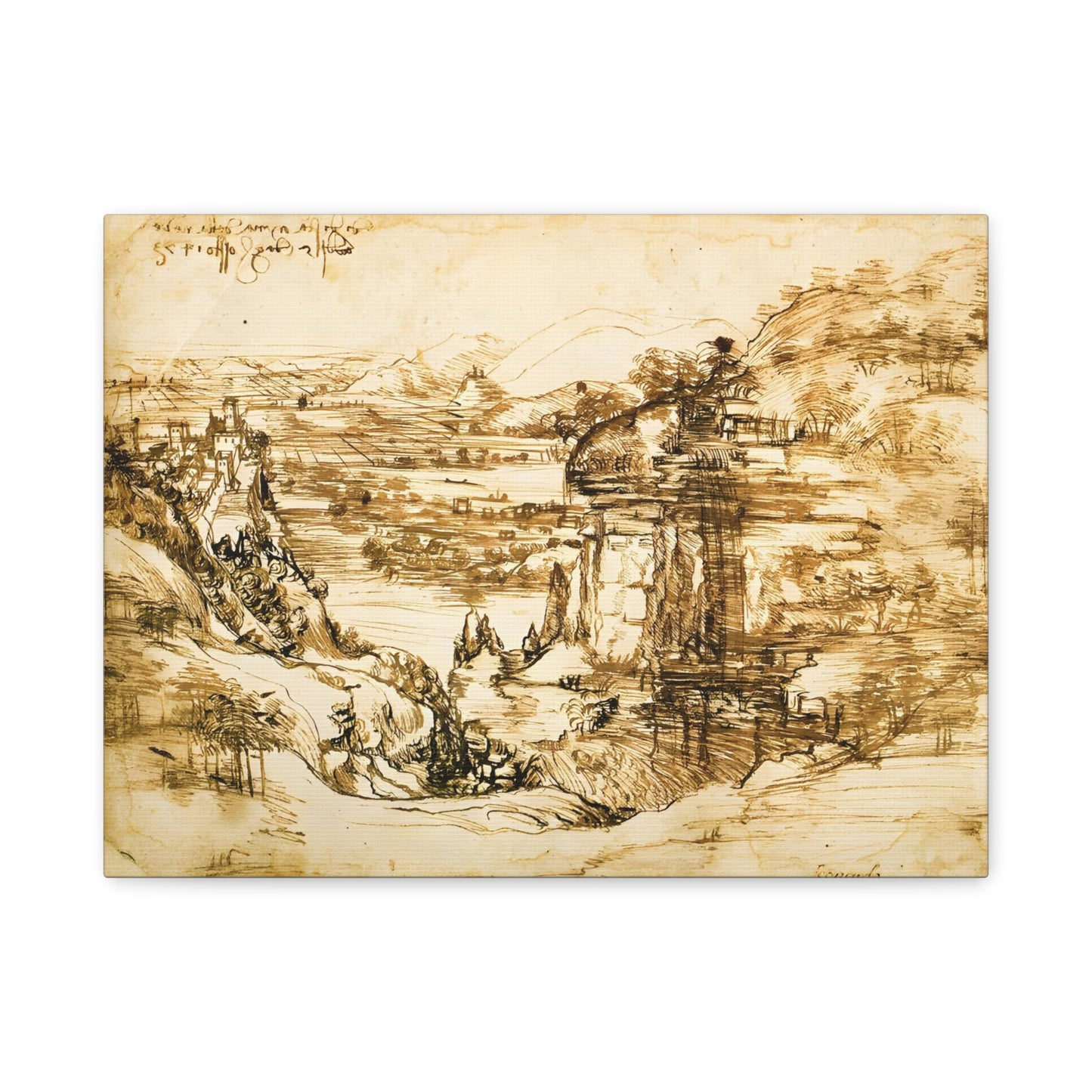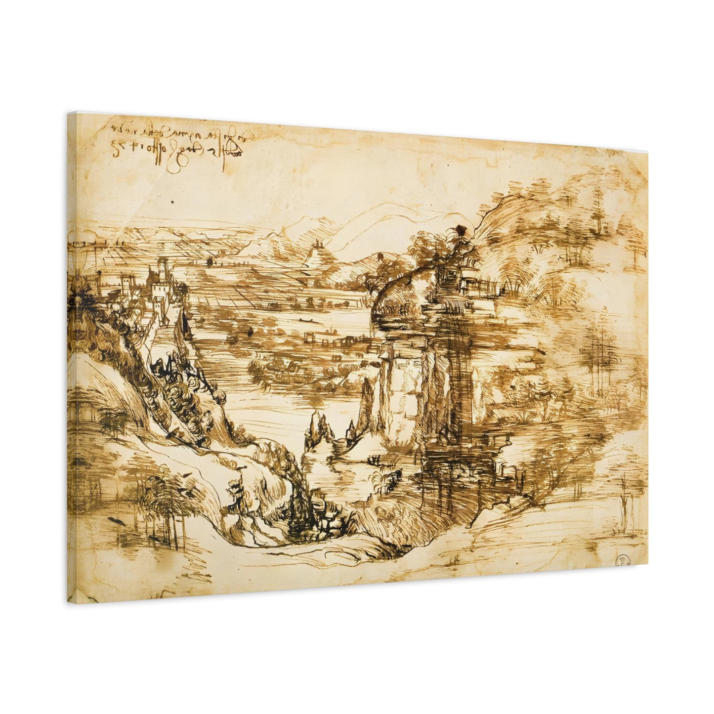 Transport yourself to the picturesque beauty of Leonardo da Vinci's Landscape Drawing Santa Maria della Neve. Created in the 16th century, this exquisite artwork captures the serene and captivating scenery of Santa Maria della Neve with meticulous precision. The delicate lines and shading in this drawing evoke a sense of tranquility and bring the essence of nature into your home. Imagine gazing upon this breathtaking landscape, feeling the calmness and serenity wash over you. With its timeless beauty and impeccable artistry, this artwork is a testament to da Vinci's genius and will be a stunning addition to your living space. Don't miss the opportunity to own a replica of this extraordinary piece and infuse your home with the elegance and serenity of Leonardo da Vinci's vision.