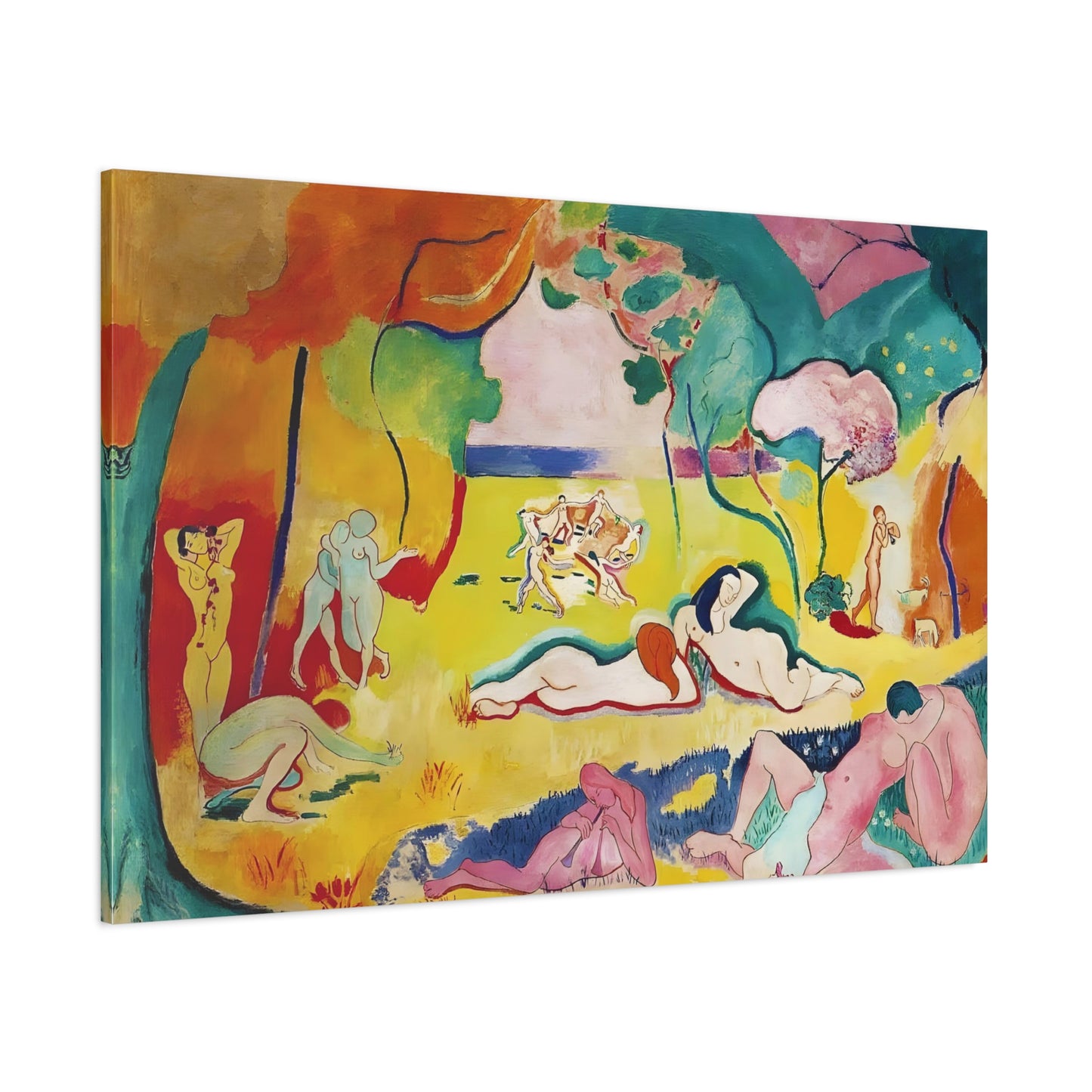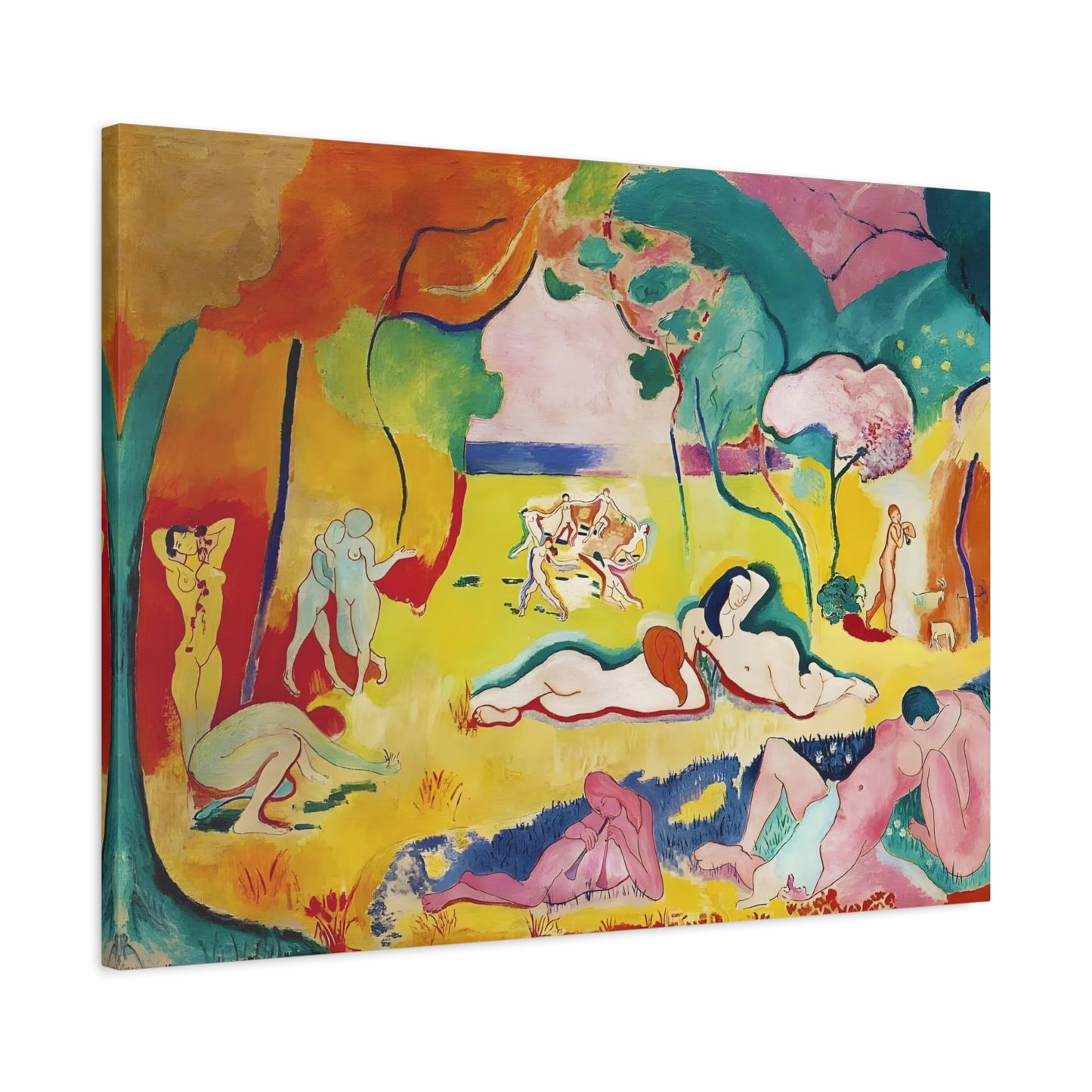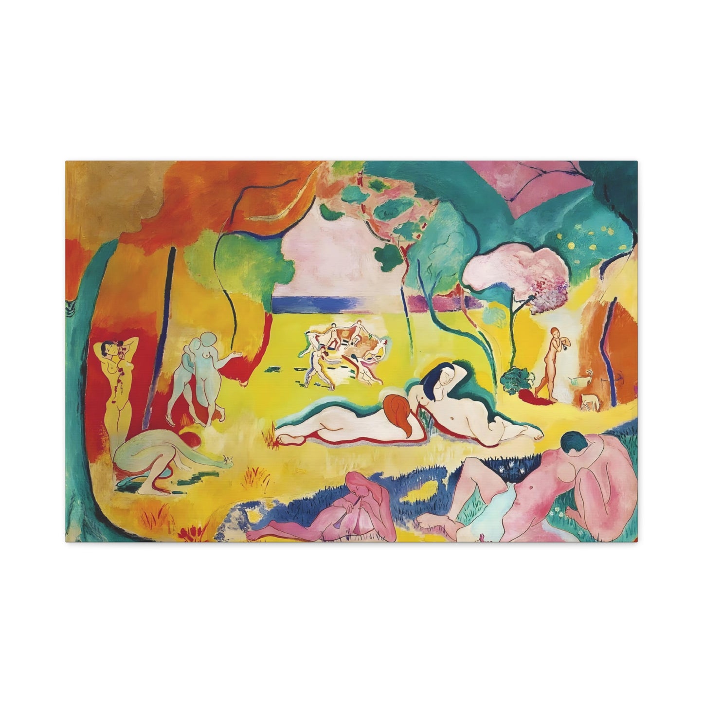 Experience the exuberant beauty of Le Bonheur de Vivre (The Joy of Life) by Henri Matisse, created in 1905-1906. This iconic masterpiece is a celebration of color, movement, and the joy of living. With its vibrant palette, swirling forms, and harmonious composition, Le Bonheur de Vivre transports you to a world of pure bliss and freedom. Displaying a replicated canvas of this captivating artwork in your home will infuse your space with an infectious sense of vitality and happiness. Let the radiant colors and rhythmic lines inspire you and uplift your spirits every day. Transform your living space into a vibrant oasis of joy and immerse yourself in the timeless allure of Matisse's genius. Don't miss this opportunity to own a piece of art history and invite the joy of life into your home.