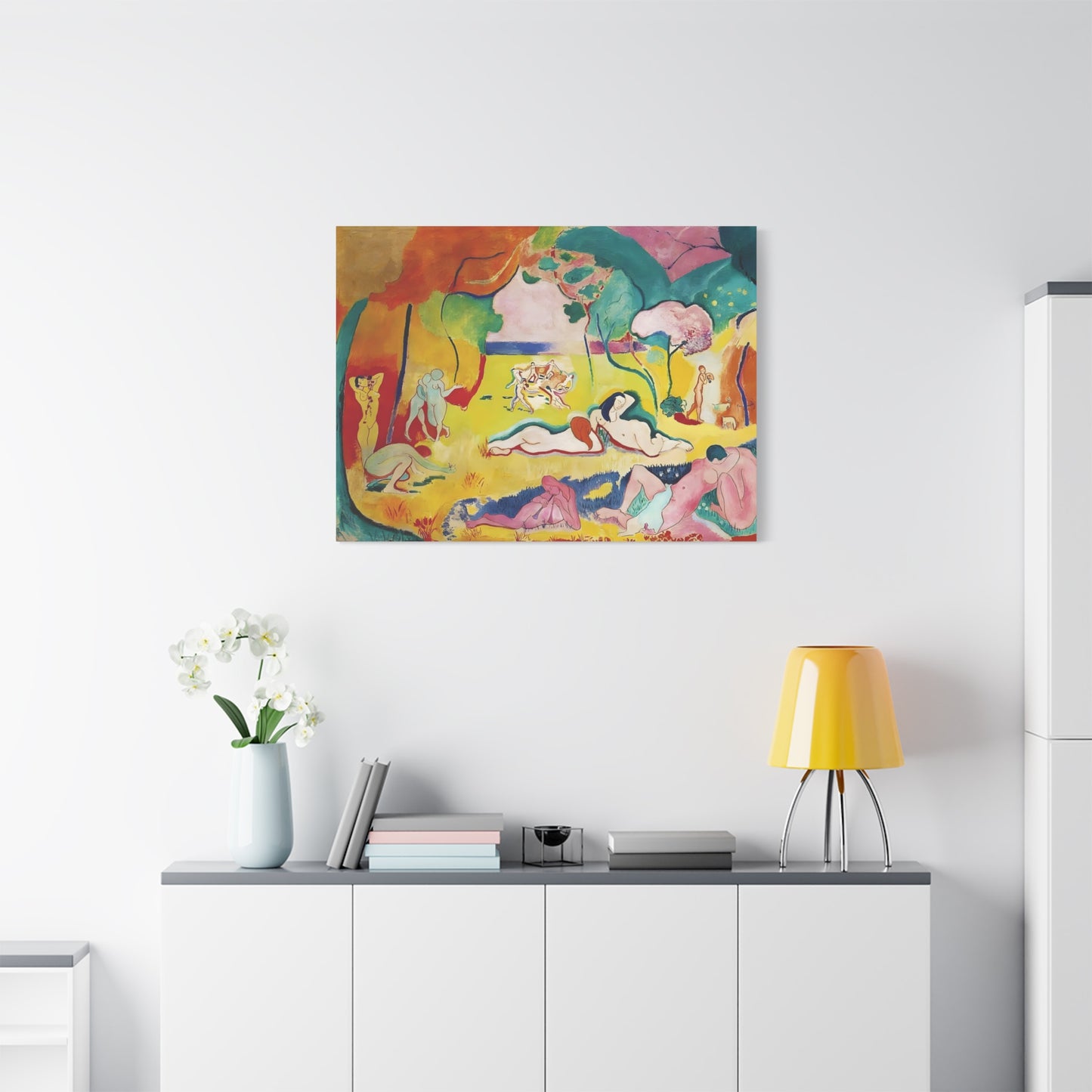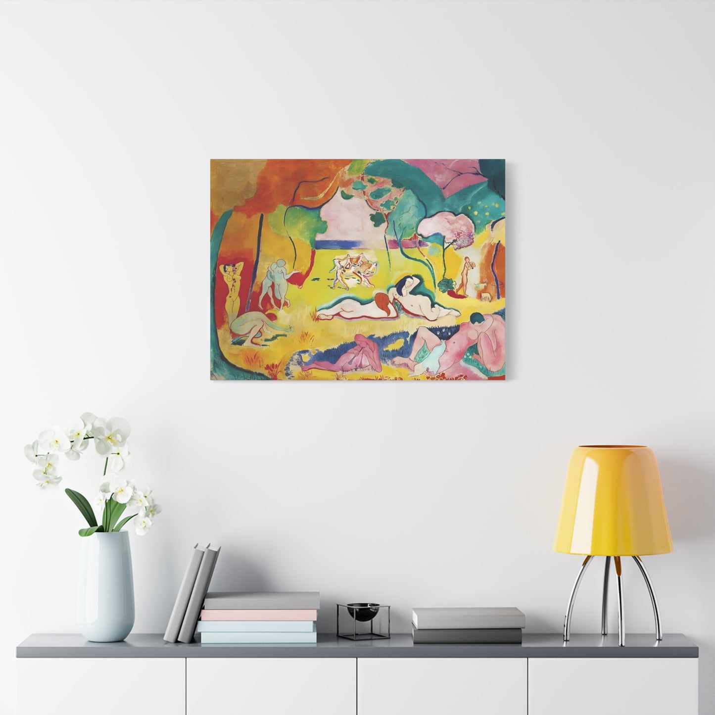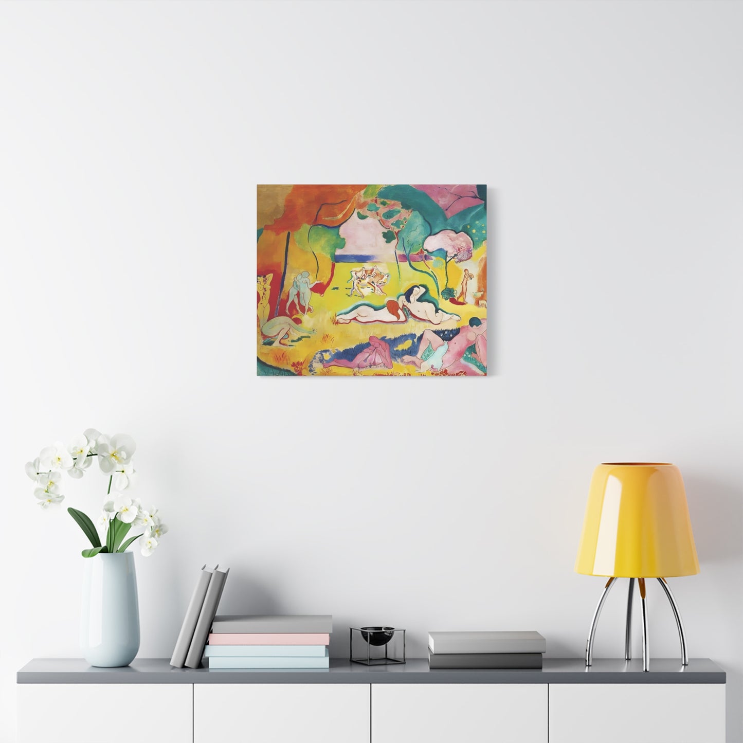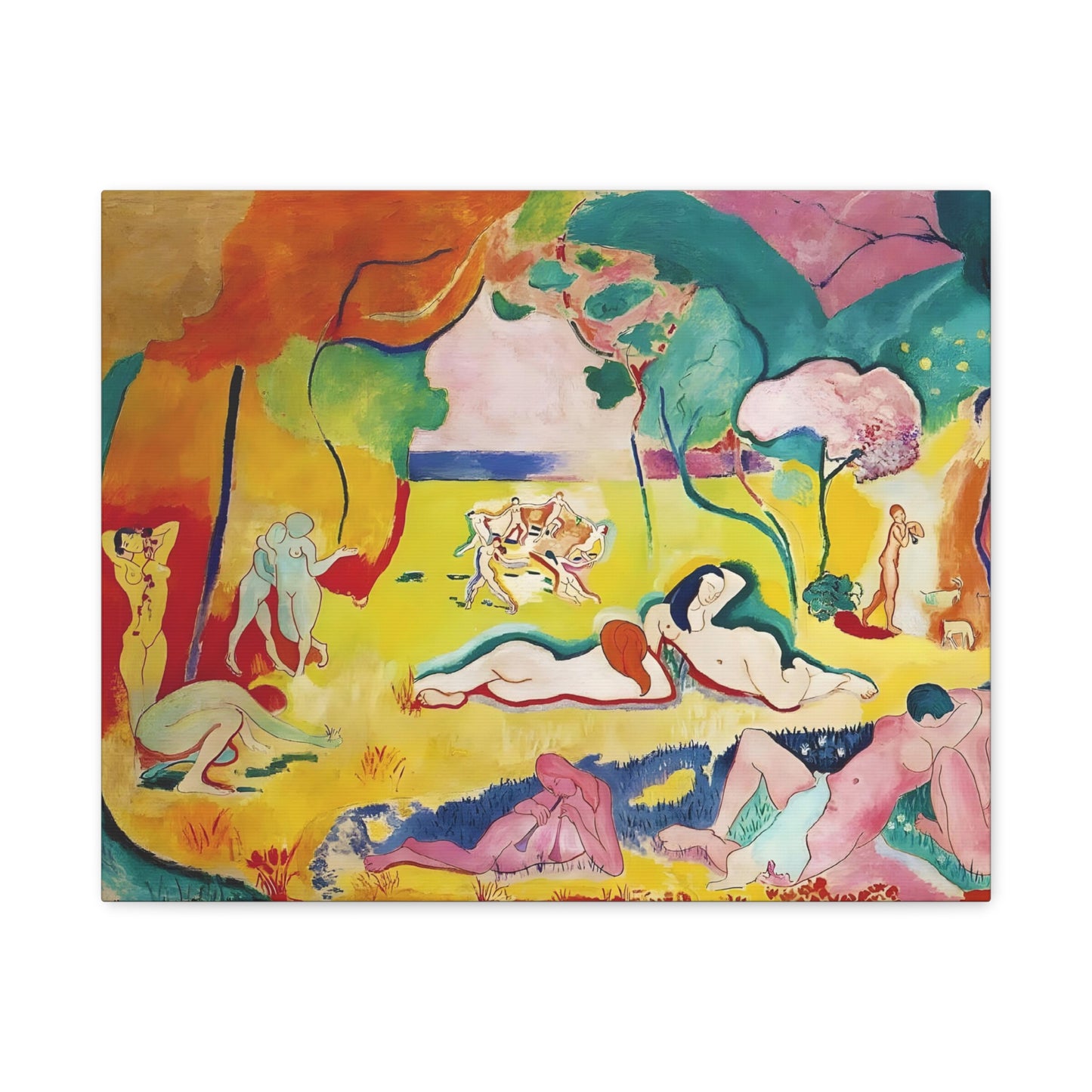 Experience the exuberant beauty of Le Bonheur de Vivre (The Joy of Life) by Henri Matisse, created in 1905-1906. This iconic masterpiece is a celebration of color, movement, and the joy of living. With its vibrant palette, swirling forms, and harmonious composition, Le Bonheur de Vivre transports you to a world of pure bliss and freedom. Displaying a replicated canvas of this captivating artwork in your home will infuse your space with an infectious sense of vitality and happiness. Let the radiant colors and rhythmic lines inspire you and uplift your spirits every day. Transform your living space into a vibrant oasis of joy and immerse yourself in the timeless allure of Matisse's genius. Don't miss this opportunity to own a piece of art history and invite the joy of life into your home.