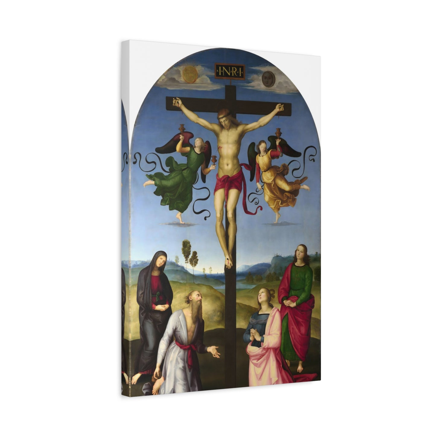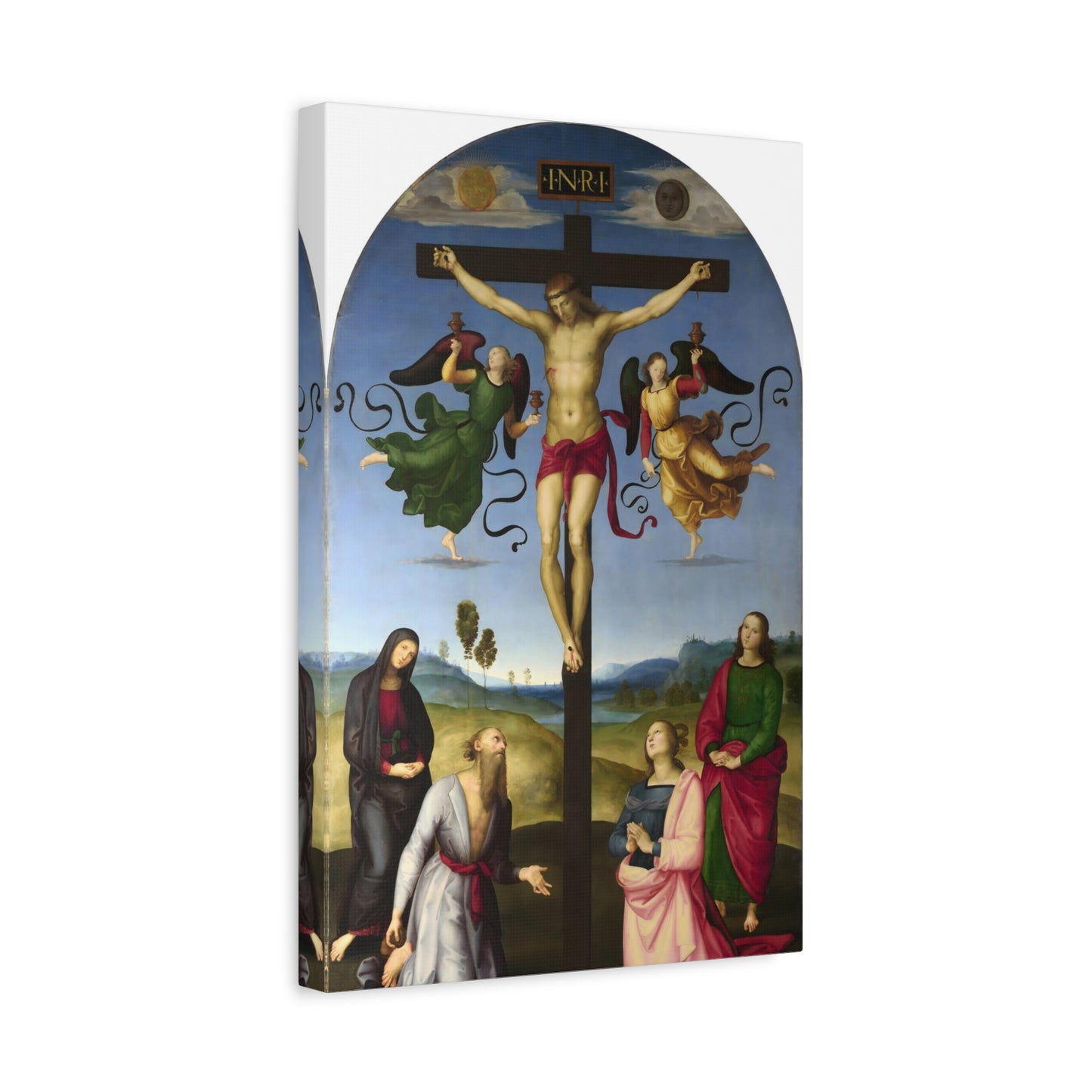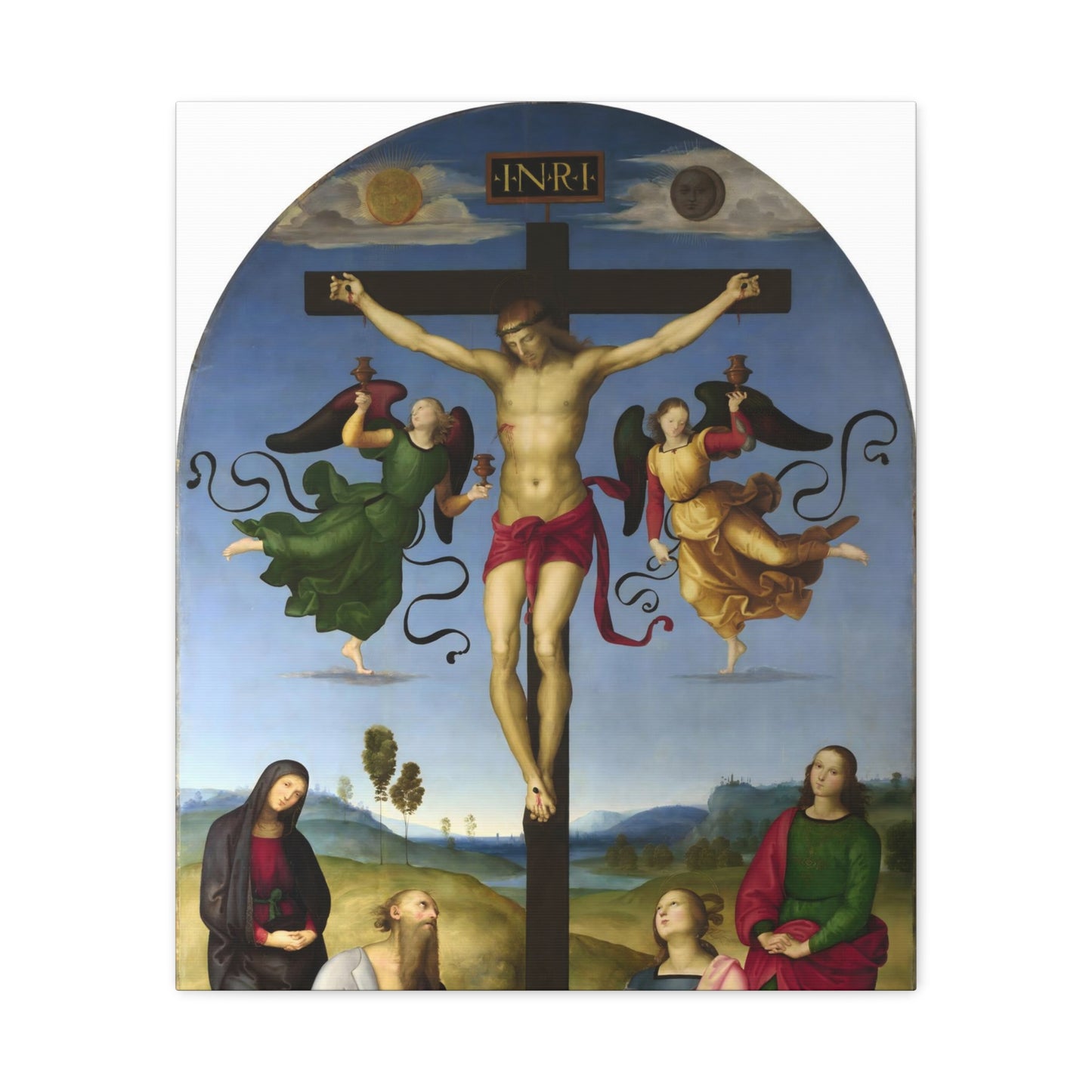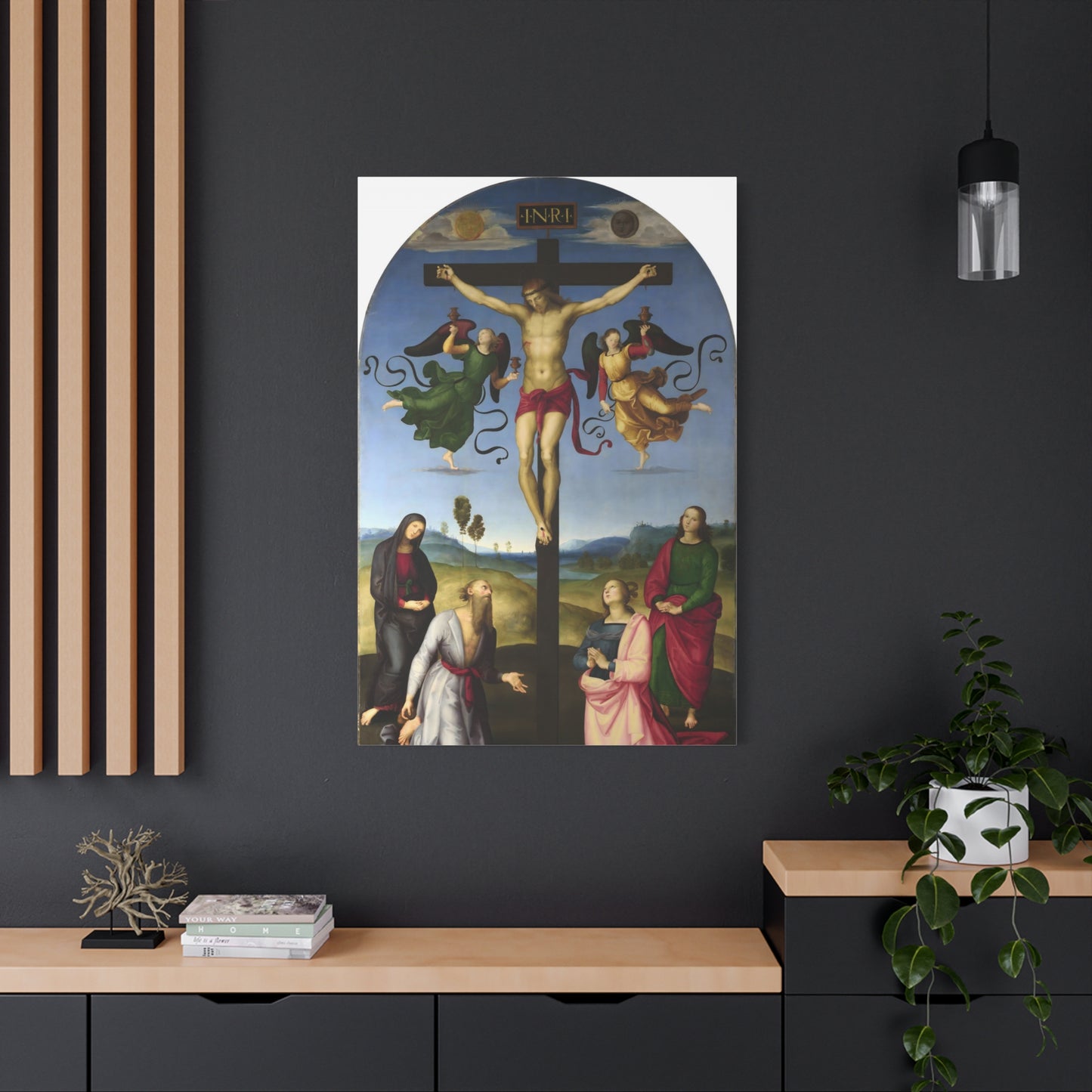 Experience the profound beauty and spiritual depth of the Mond Crucifixion by Raphael, a masterpiece that will elevate your home with its transcendent power. Painted in 1502-1503, this artwork depicts the crucifixion of Christ with remarkable precision and emotional intensity. The vibrant colors, intricate details, and expert composition captivate the viewer, drawing them into the solemn scene. Owning a replicated version of this artwork allows you to bring the essence of Renaissance art and religious symbolism into your living space, creating a sanctuary of contemplation and reverence. Let the Mond Crucifixion inspire and uplift you, reminding you of the eternal sacrifice and the message of hope it represents. Embrace the spiritual journey and make this extraordinary artwork a centerpiece in your home.