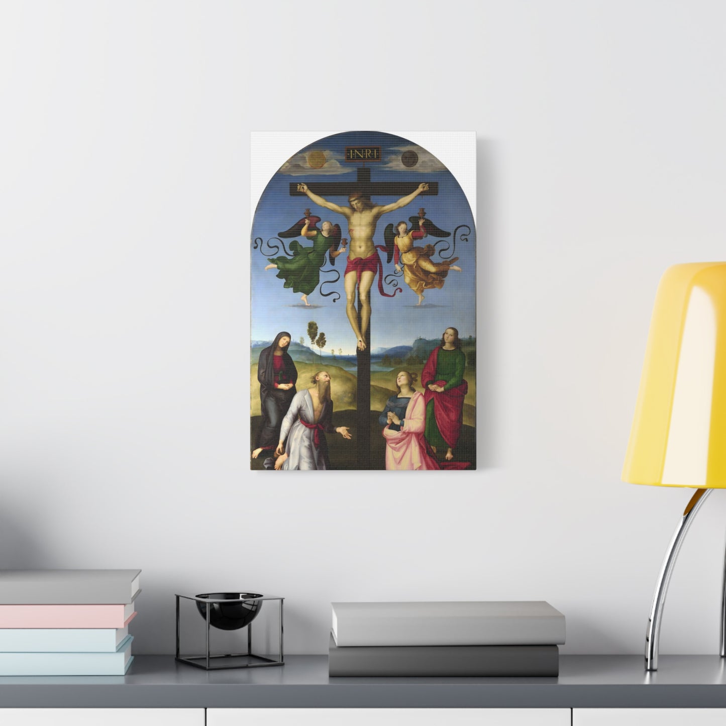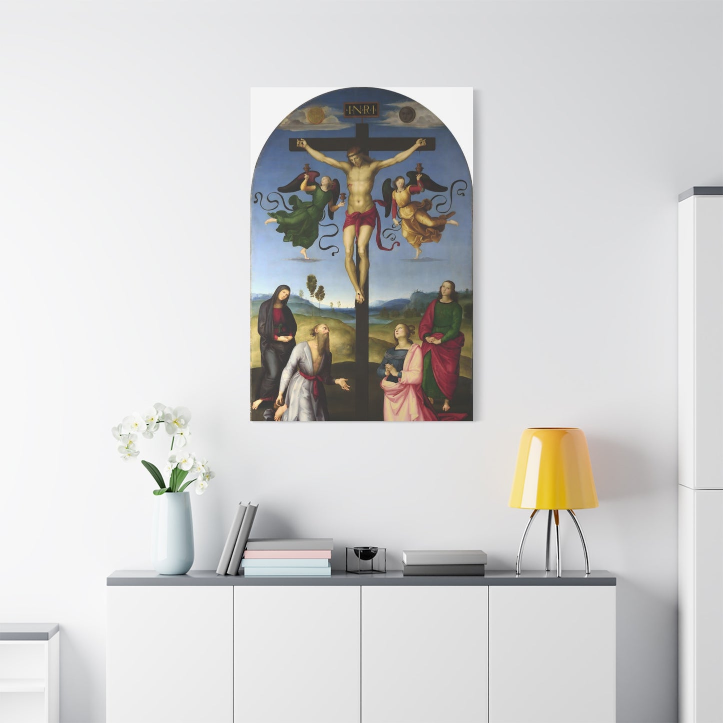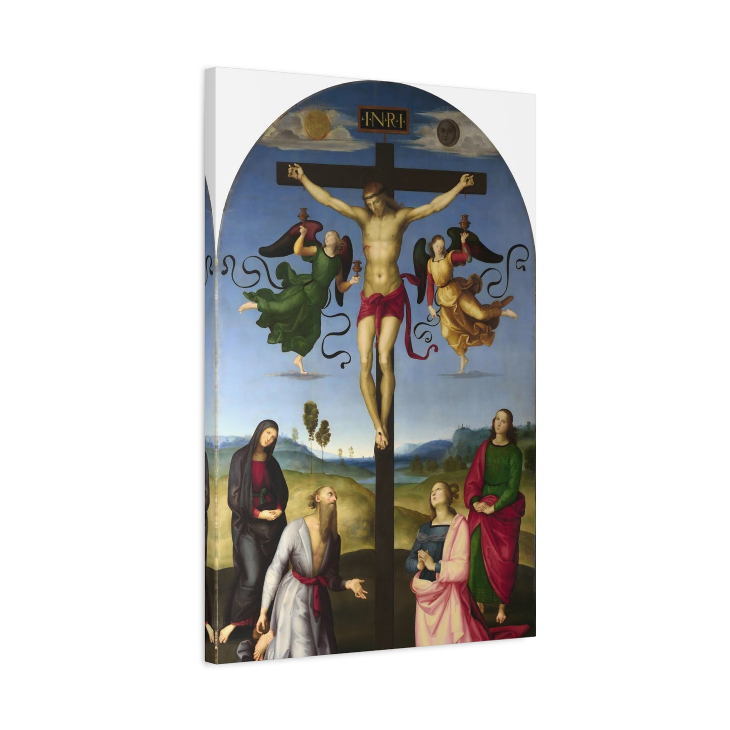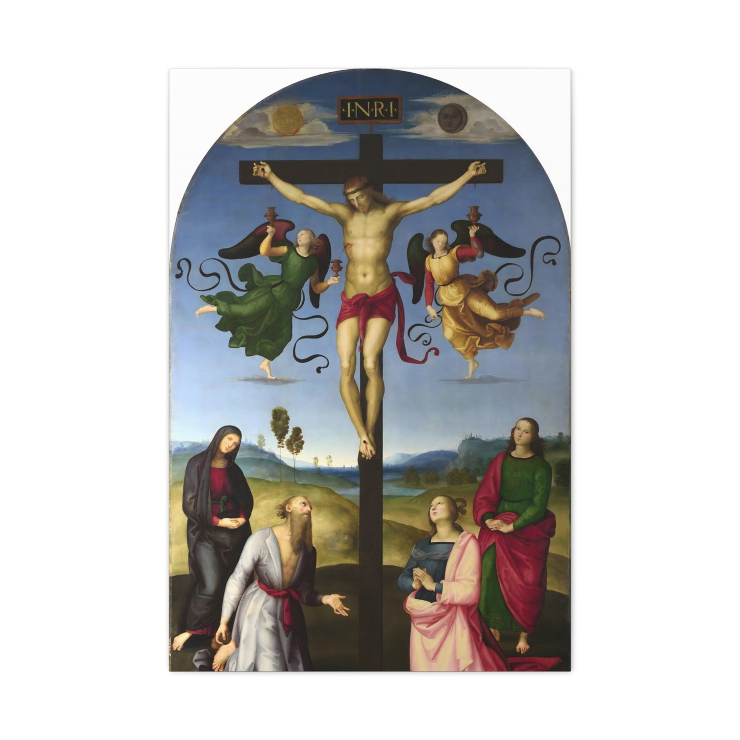 Experience the profound beauty and spiritual depth of the Mond Crucifixion by Raphael, a masterpiece that will elevate your home with its transcendent power. Painted in 1502-1503, this artwork depicts the crucifixion of Christ with remarkable precision and emotional intensity. The vibrant colors, intricate details, and expert composition captivate the viewer, drawing them into the solemn scene. Owning a replicated version of this artwork allows you to bring the essence of Renaissance art and religious symbolism into your living space, creating a sanctuary of contemplation and reverence. Let the Mond Crucifixion inspire and uplift you, reminding you of the eternal sacrifice and the message of hope it represents. Embrace the spiritual journey and make this extraordinary artwork a centerpiece in your home.
