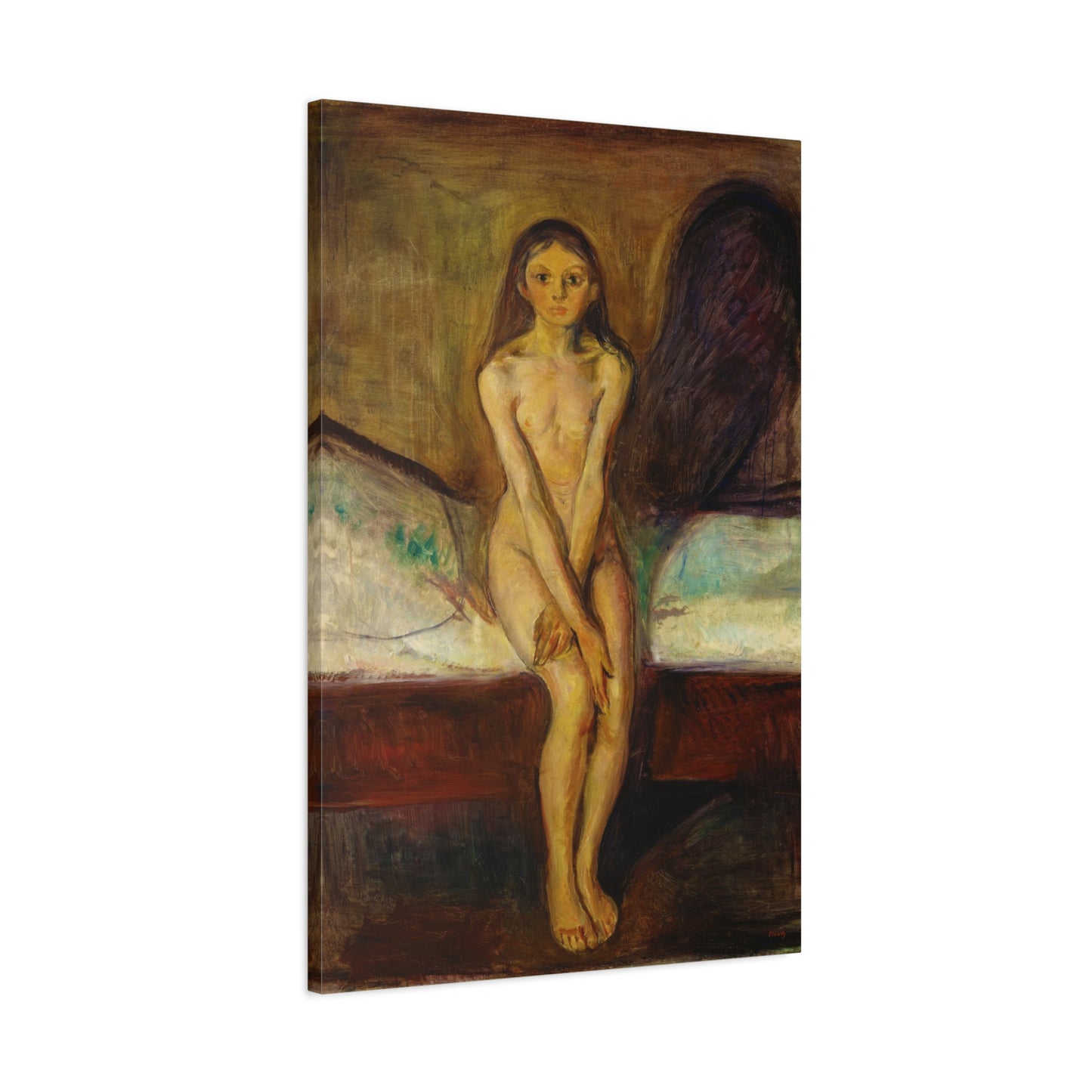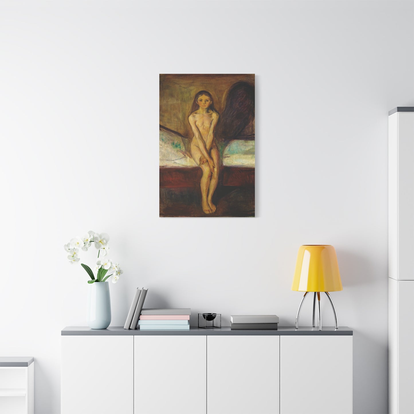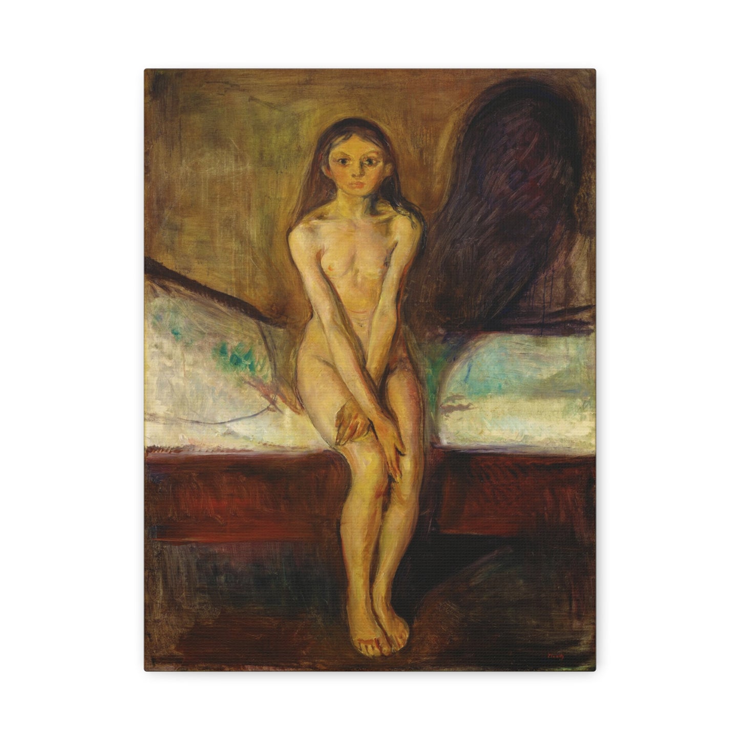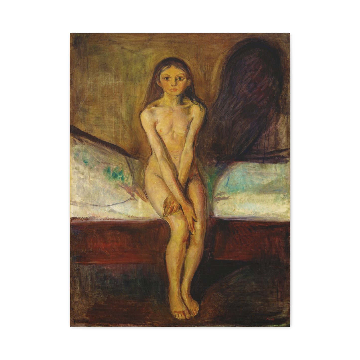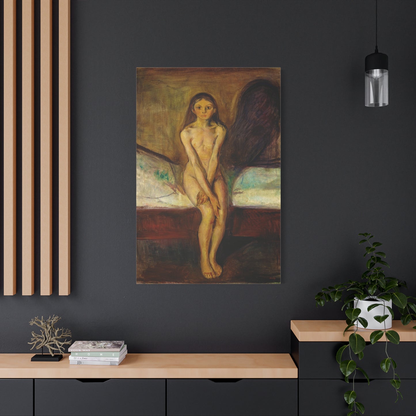 Experience the captivating power of Puberty by Edvard Munch, created in 1894-1895. This iconic artwork explores the delicate transition from innocence to adolescence, portrayed with Munch's signature emotional intensity and evocative symbolism. Our meticulously replicated canvas art captures every brushstroke, preserving the raw emotion and depth of the original masterpiece. Displaying Puberty in your home invites a profound exploration of human emotions and the complexities of growth and self-discovery. Let this remarkable artwork ignite conversations, evoke introspection, and infuse your space with a touch of enigmatic beauty. Embrace the allure of Munch's genius and own a piece of artistic history with our exquisite canvas replication of Puberty.