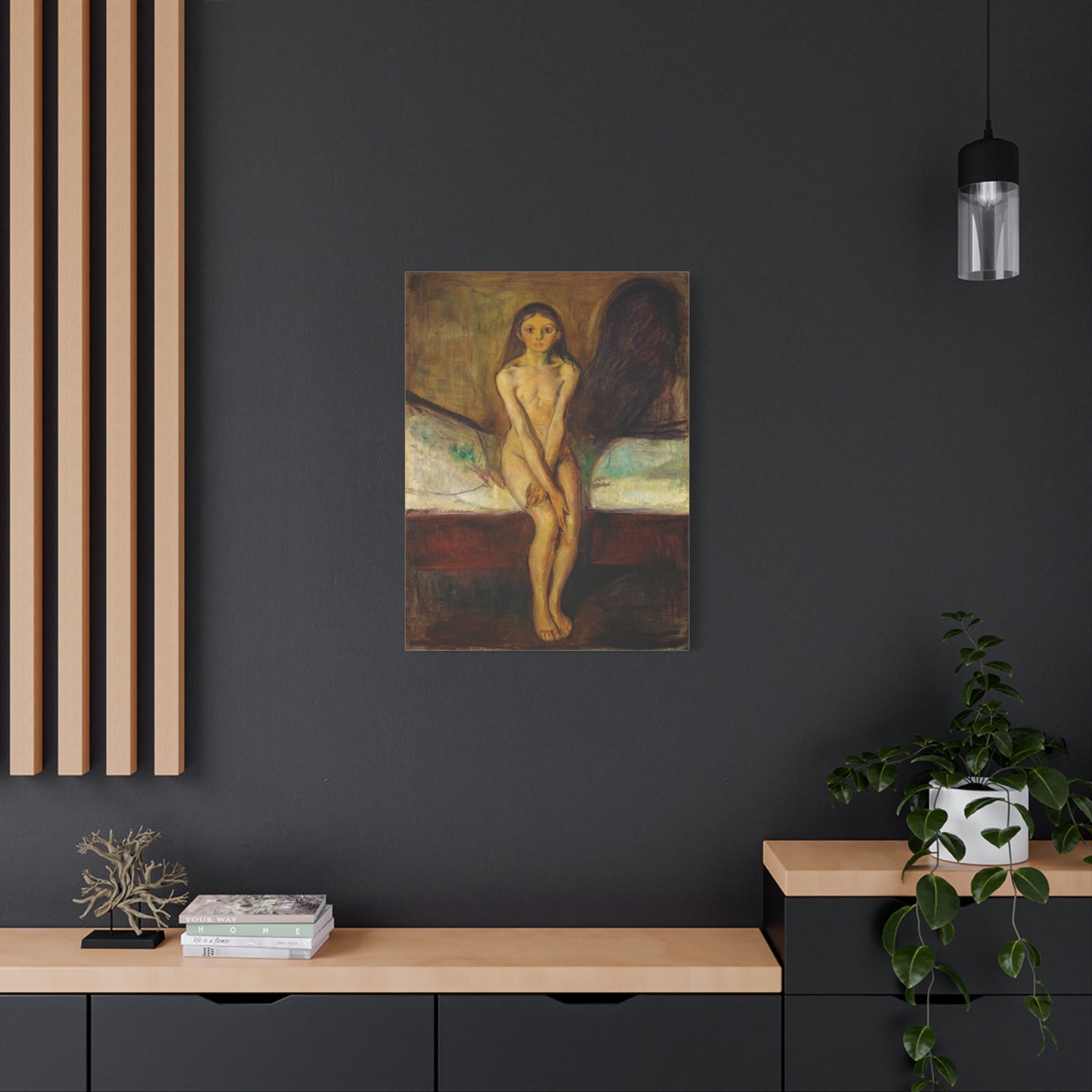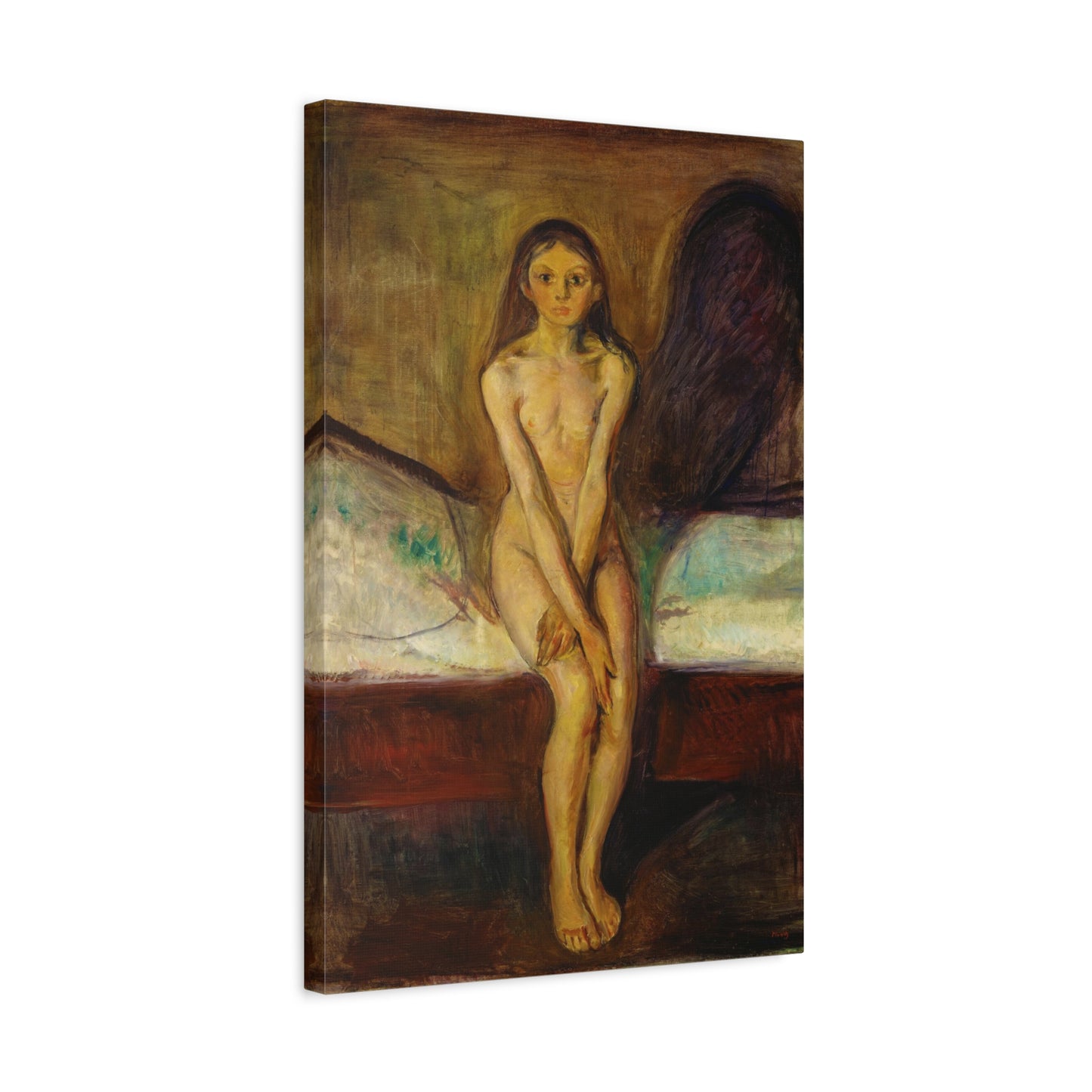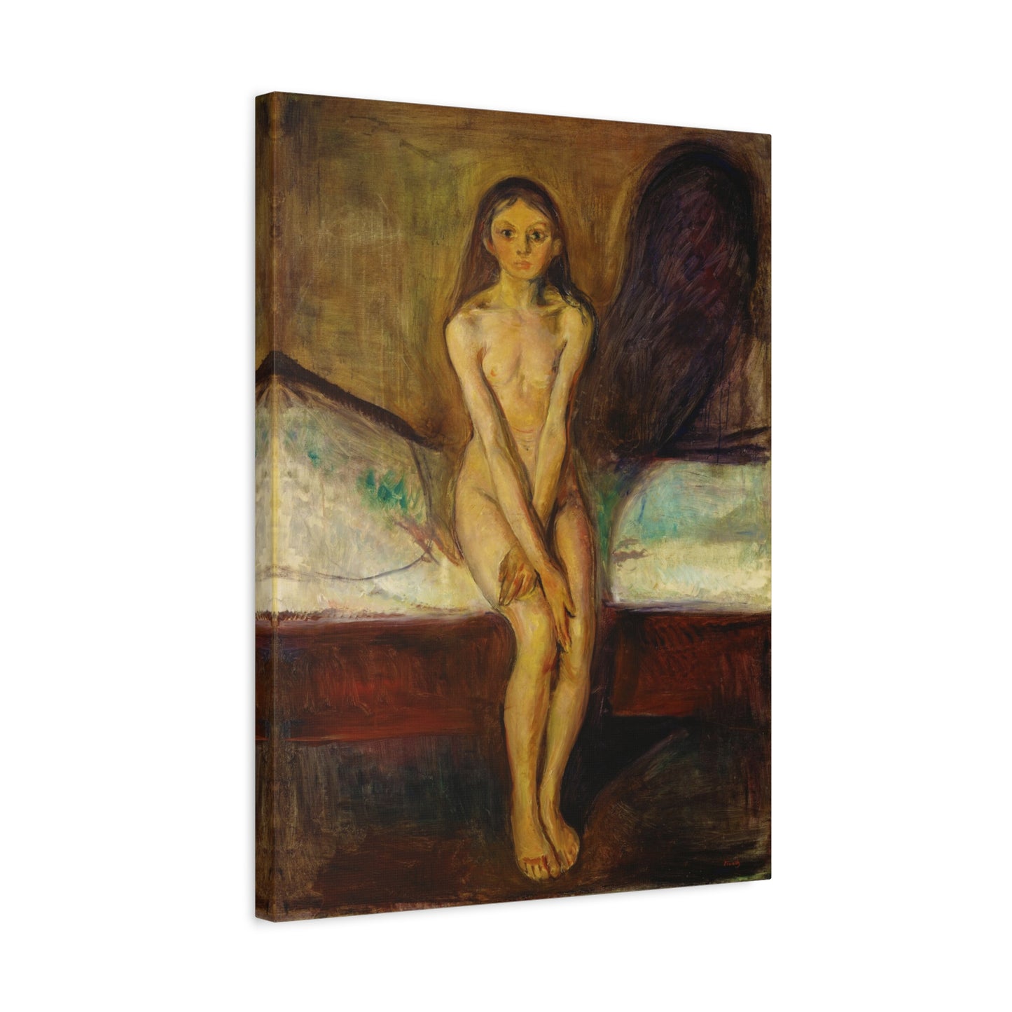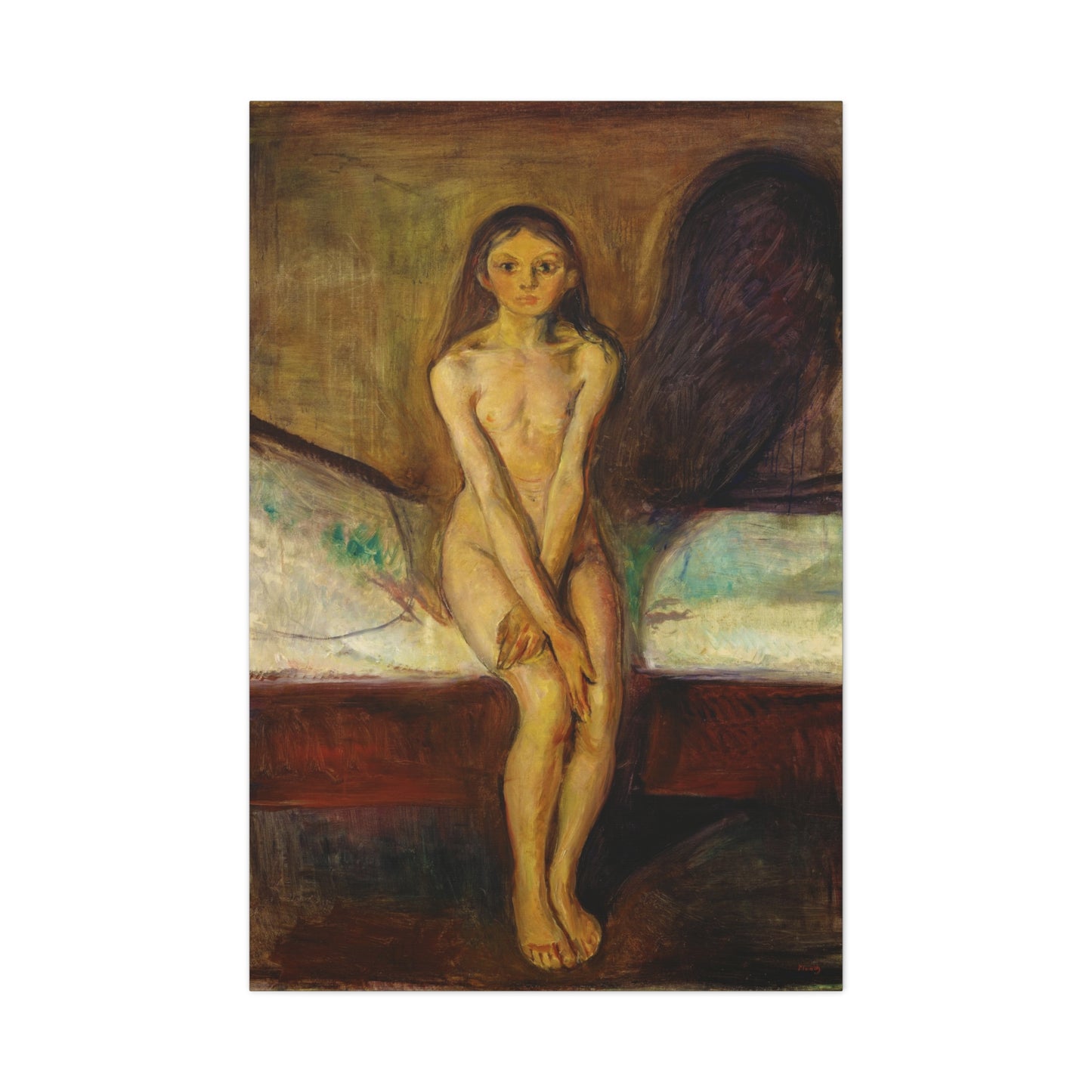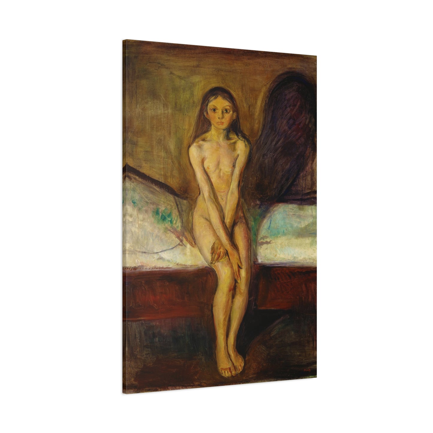 Experience the captivating power of Puberty by Edvard Munch, created in 1894-1895. This iconic artwork explores the delicate transition from innocence to adolescence, portrayed with Munch's signature emotional intensity and evocative symbolism. Our meticulously replicated canvas art captures every brushstroke, preserving the raw emotion and depth of the original masterpiece. Displaying Puberty in your home invites a profound exploration of human emotions and the complexities of growth and self-discovery. Let this remarkable artwork ignite conversations, evoke introspection, and infuse your space with a touch of enigmatic beauty. Embrace the allure of Munch's genius and own a piece of artistic history with our exquisite canvas replication of Puberty.