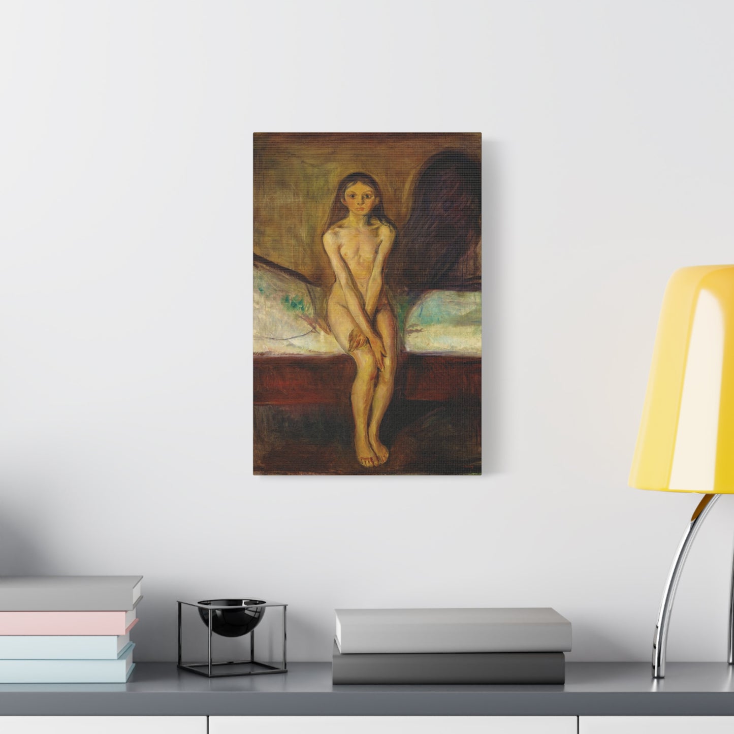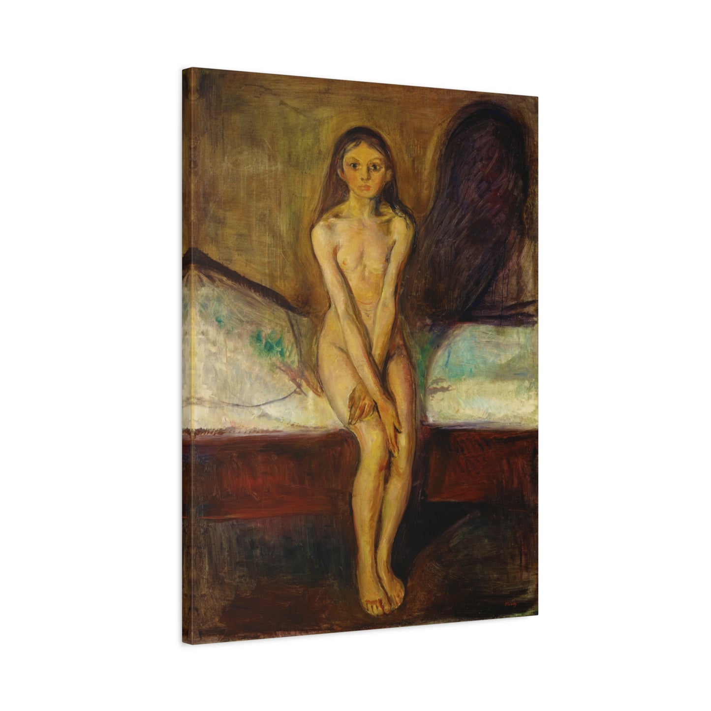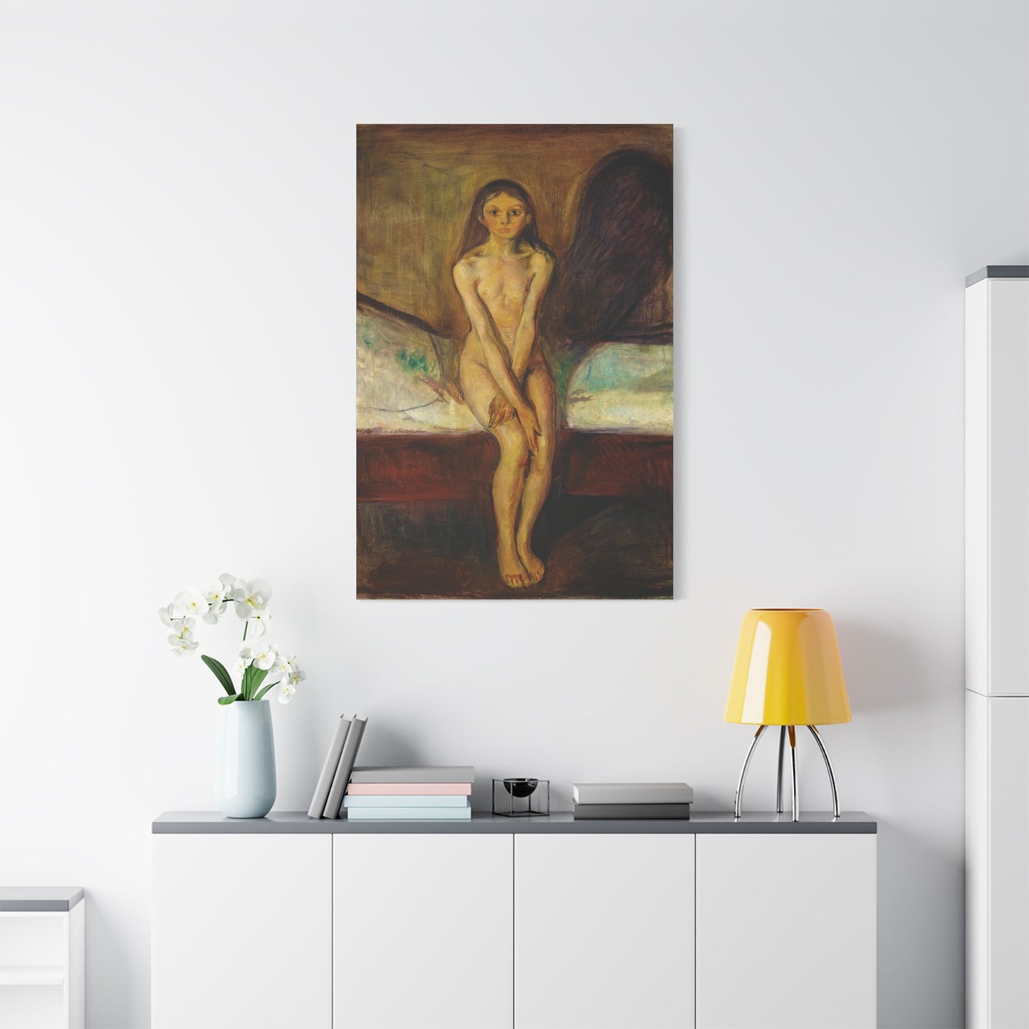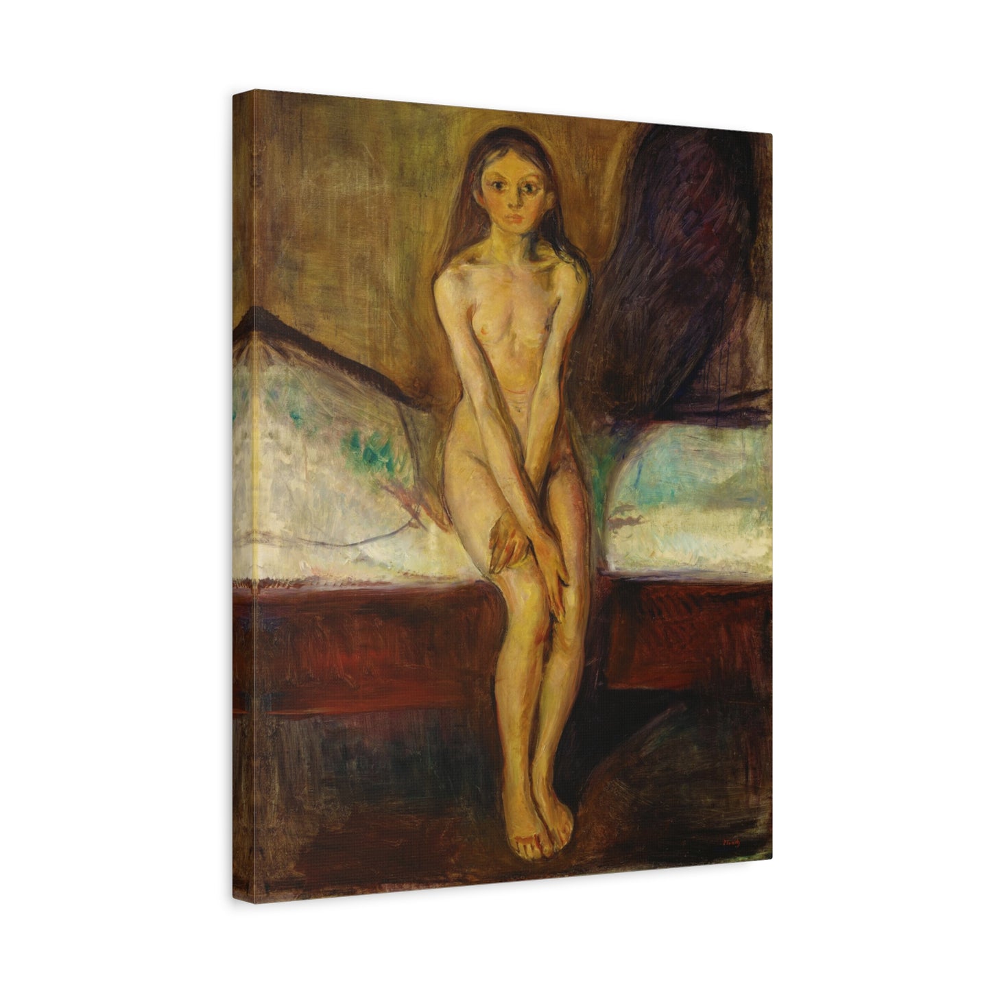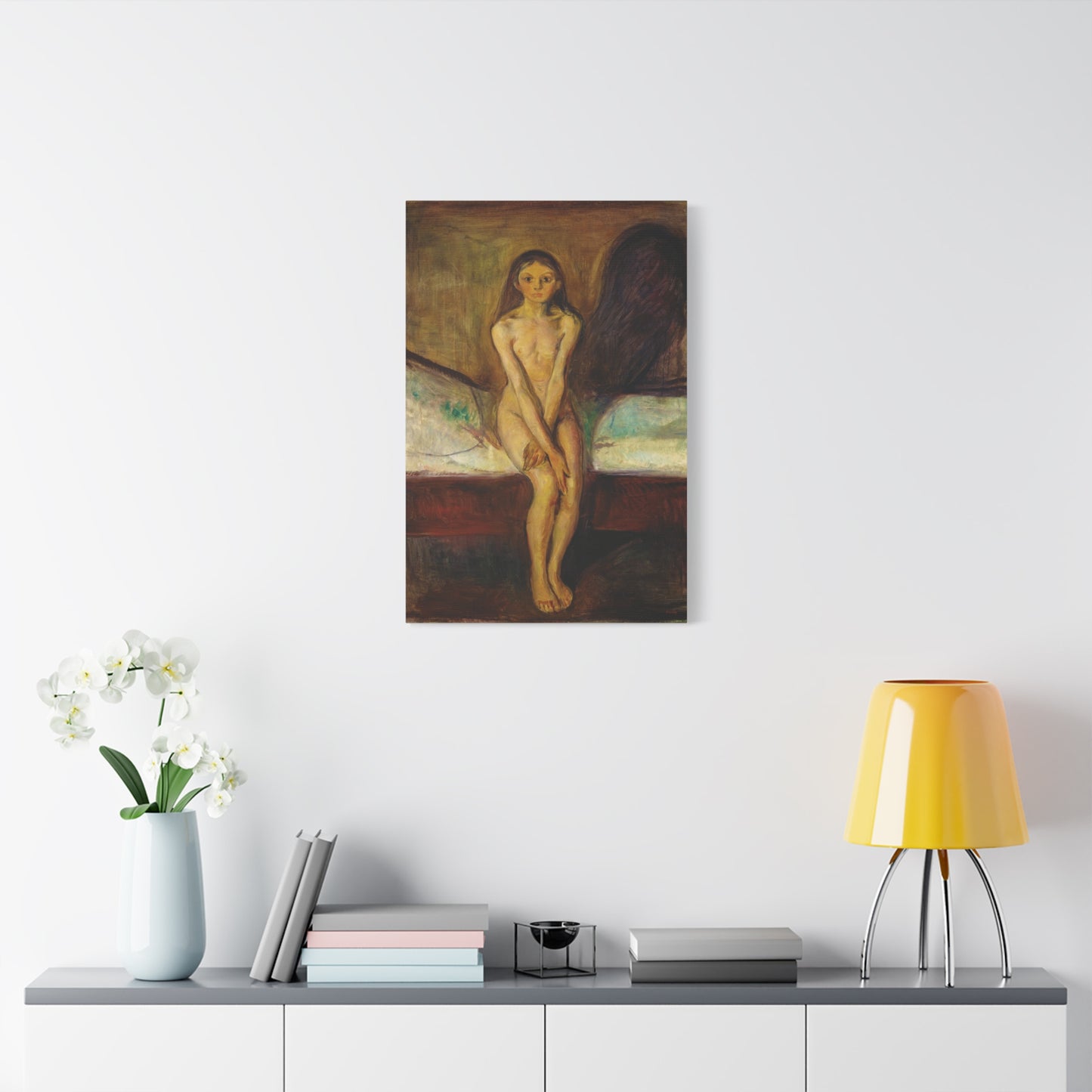 Experience the captivating power of Puberty by Edvard Munch, created in 1894-1895. This iconic artwork explores the delicate transition from innocence to adolescence, portrayed with Munch's signature emotional intensity and evocative symbolism. Our meticulously replicated canvas art captures every brushstroke, preserving the raw emotion and depth of the original masterpiece. Displaying Puberty in your home invites a profound exploration of human emotions and the complexities of growth and self-discovery. Let this remarkable artwork ignite conversations, evoke introspection, and infuse your space with a touch of enigmatic beauty. Embrace the allure of Munch's genius and own a piece of artistic history with our exquisite canvas replication of Puberty.
