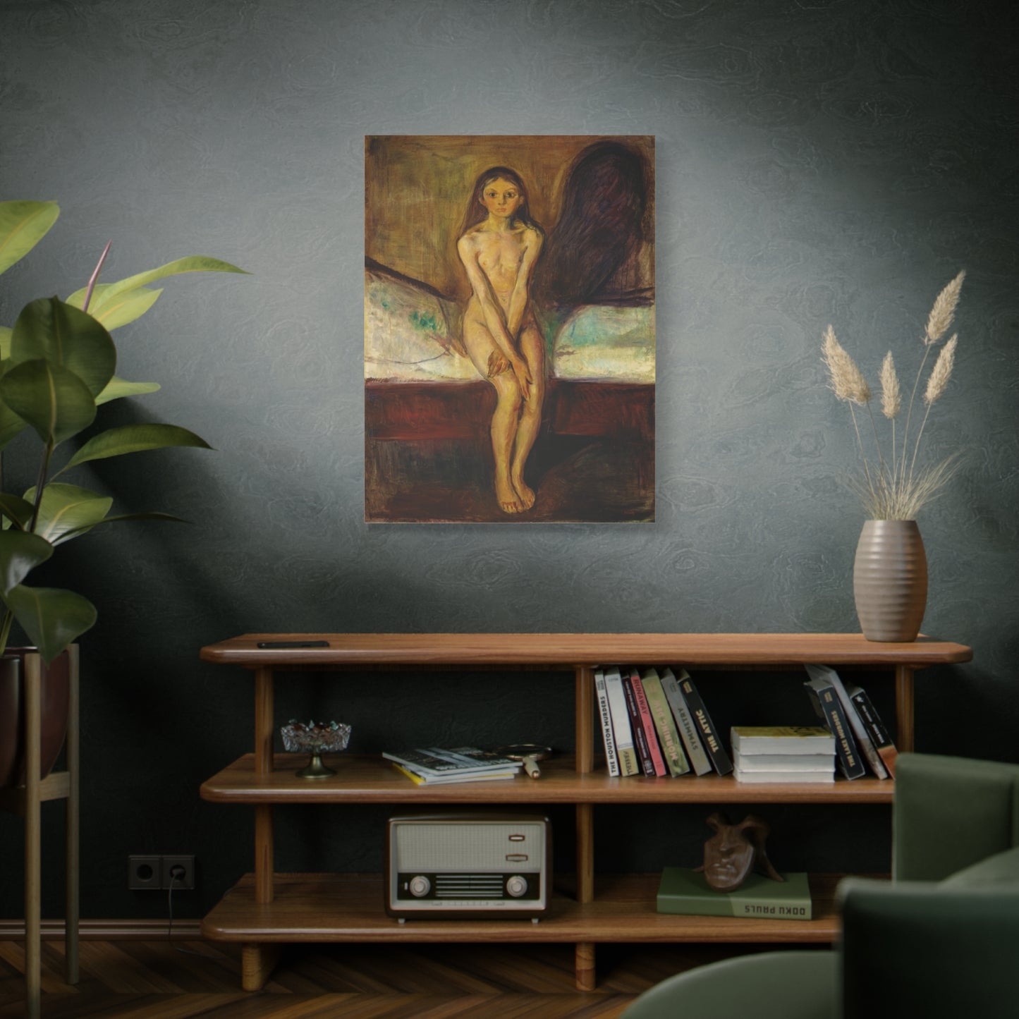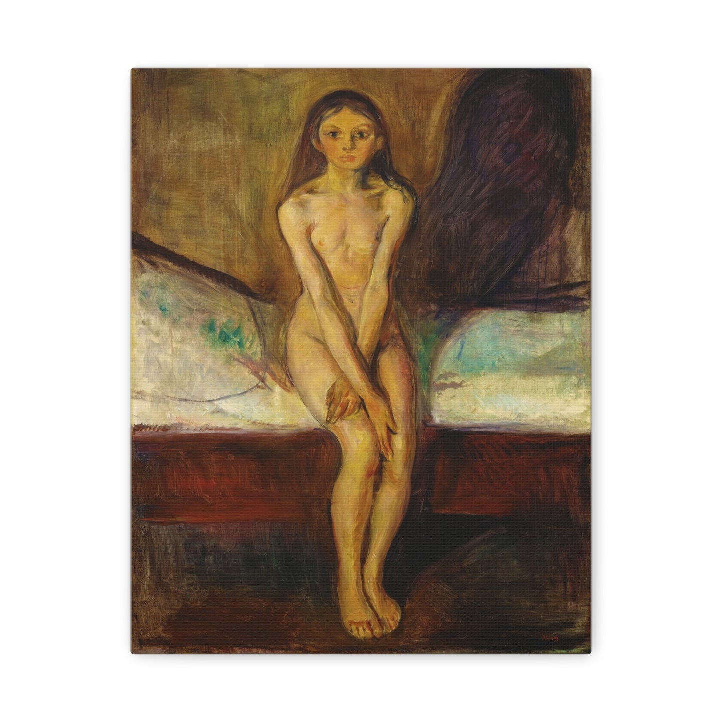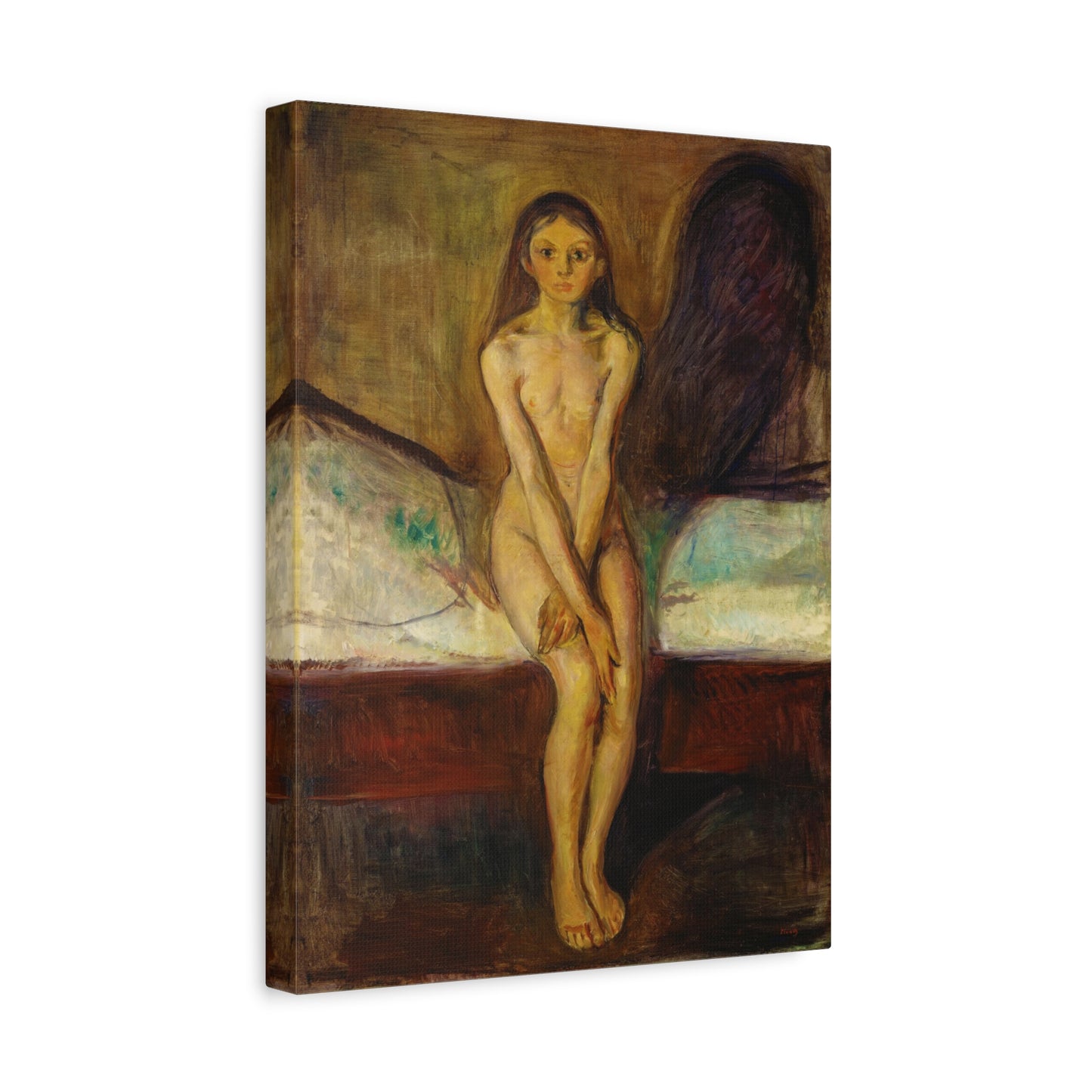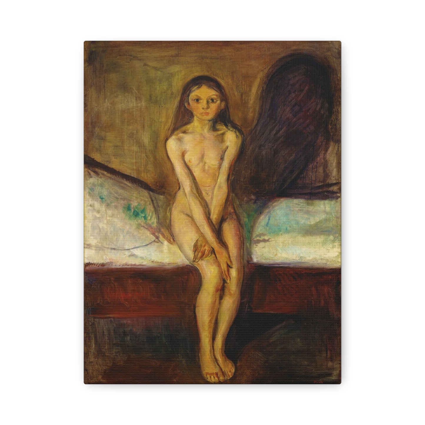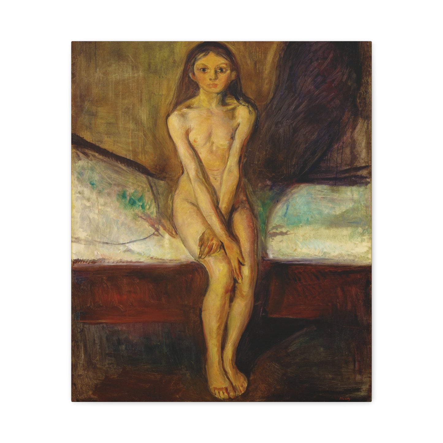 Experience the captivating power of Puberty by Edvard Munch, created in 1894-1895. This iconic artwork explores the delicate transition from innocence to adolescence, portrayed with Munch's signature emotional intensity and evocative symbolism. Our meticulously replicated canvas art captures every brushstroke, preserving the raw emotion and depth of the original masterpiece. Displaying Puberty in your home invites a profound exploration of human emotions and the complexities of growth and self-discovery. Let this remarkable artwork ignite conversations, evoke introspection, and infuse your space with a touch of enigmatic beauty. Embrace the allure of Munch's genius and own a piece of artistic history with our exquisite canvas replication of Puberty.