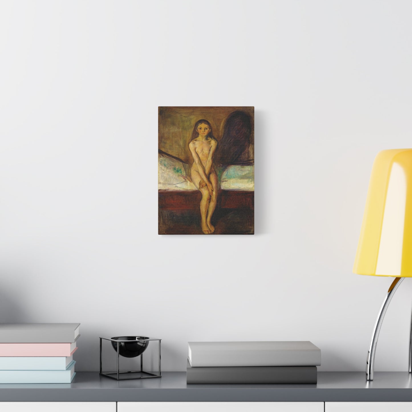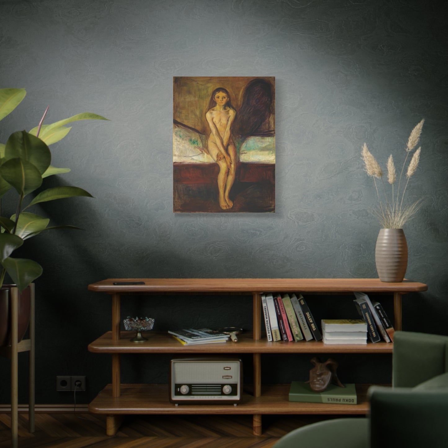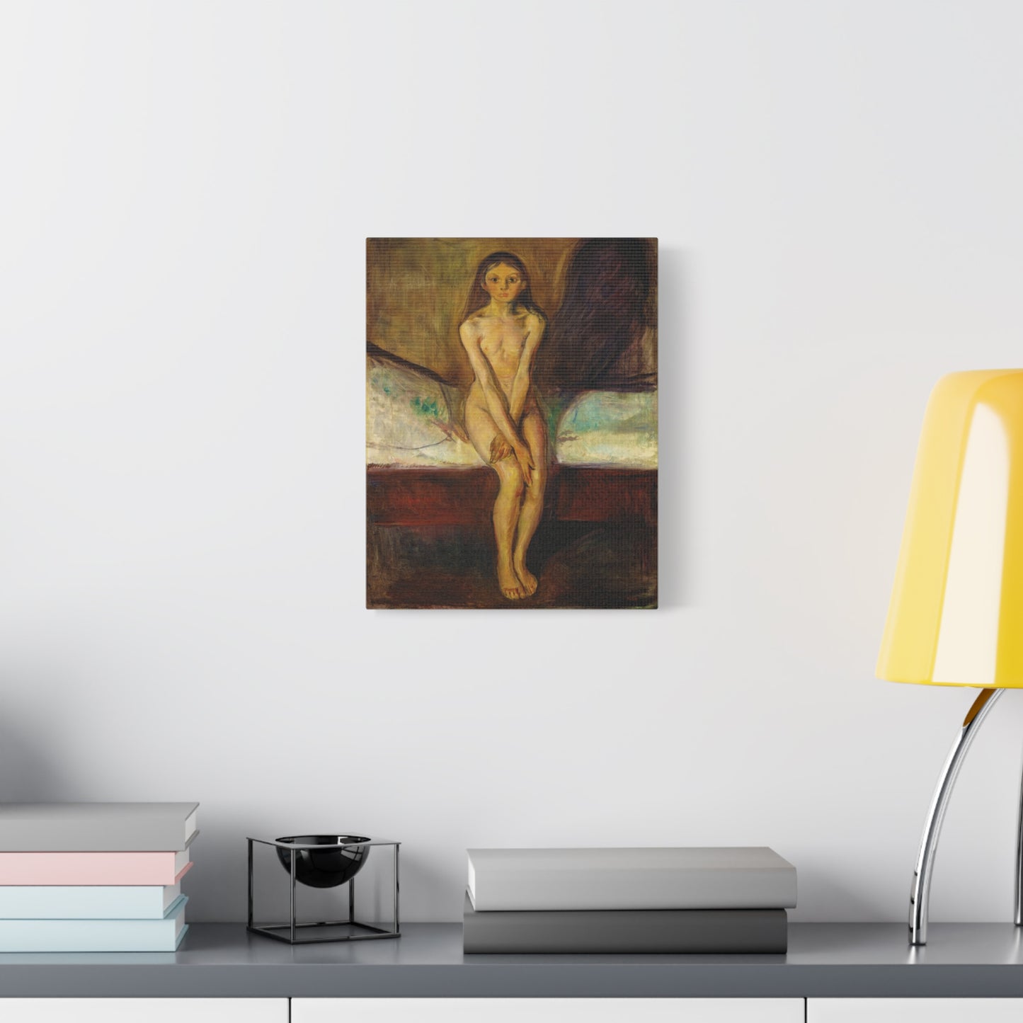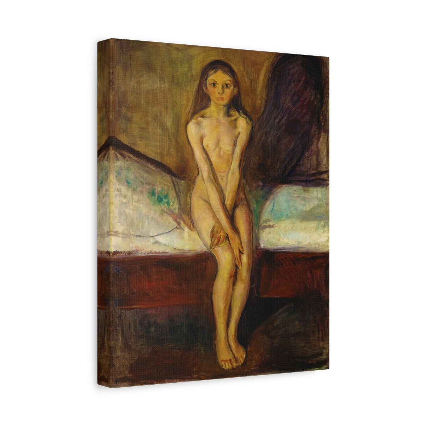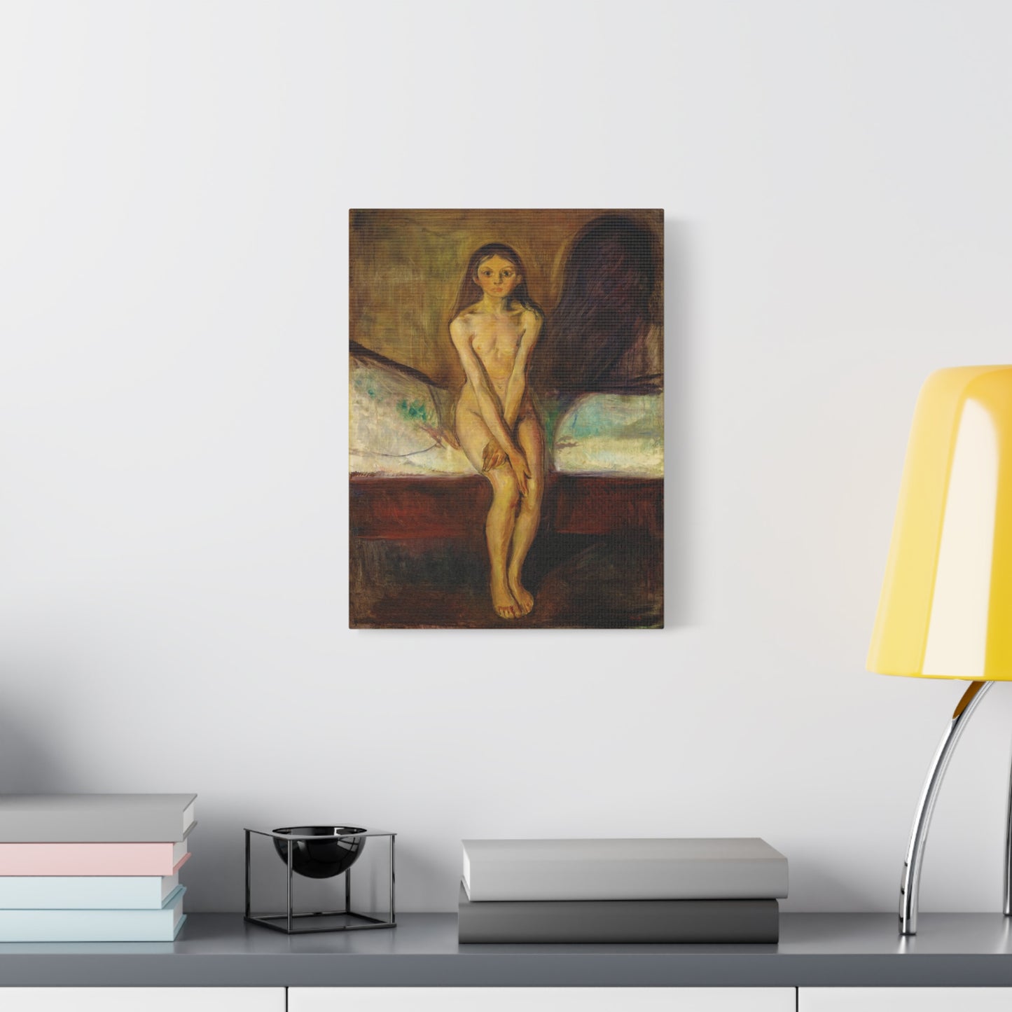 Experience the captivating power of Puberty by Edvard Munch, created in 1894-1895. This iconic artwork explores the delicate transition from innocence to adolescence, portrayed with Munch's signature emotional intensity and evocative symbolism. Our meticulously replicated canvas art captures every brushstroke, preserving the raw emotion and depth of the original masterpiece. Displaying Puberty in your home invites a profound exploration of human emotions and the complexities of growth and self-discovery. Let this remarkable artwork ignite conversations, evoke introspection, and infuse your space with a touch of enigmatic beauty. Embrace the allure of Munch's genius and own a piece of artistic history with our exquisite canvas replication of Puberty.
