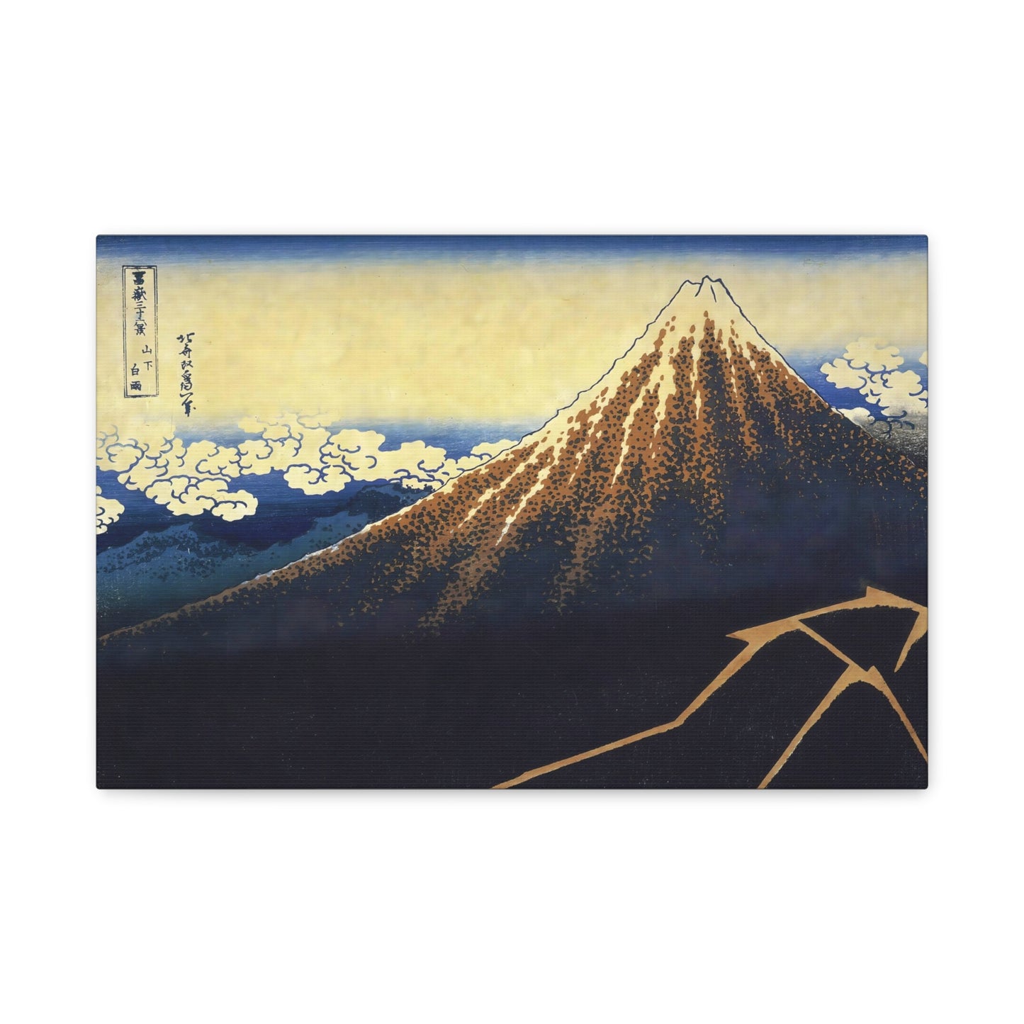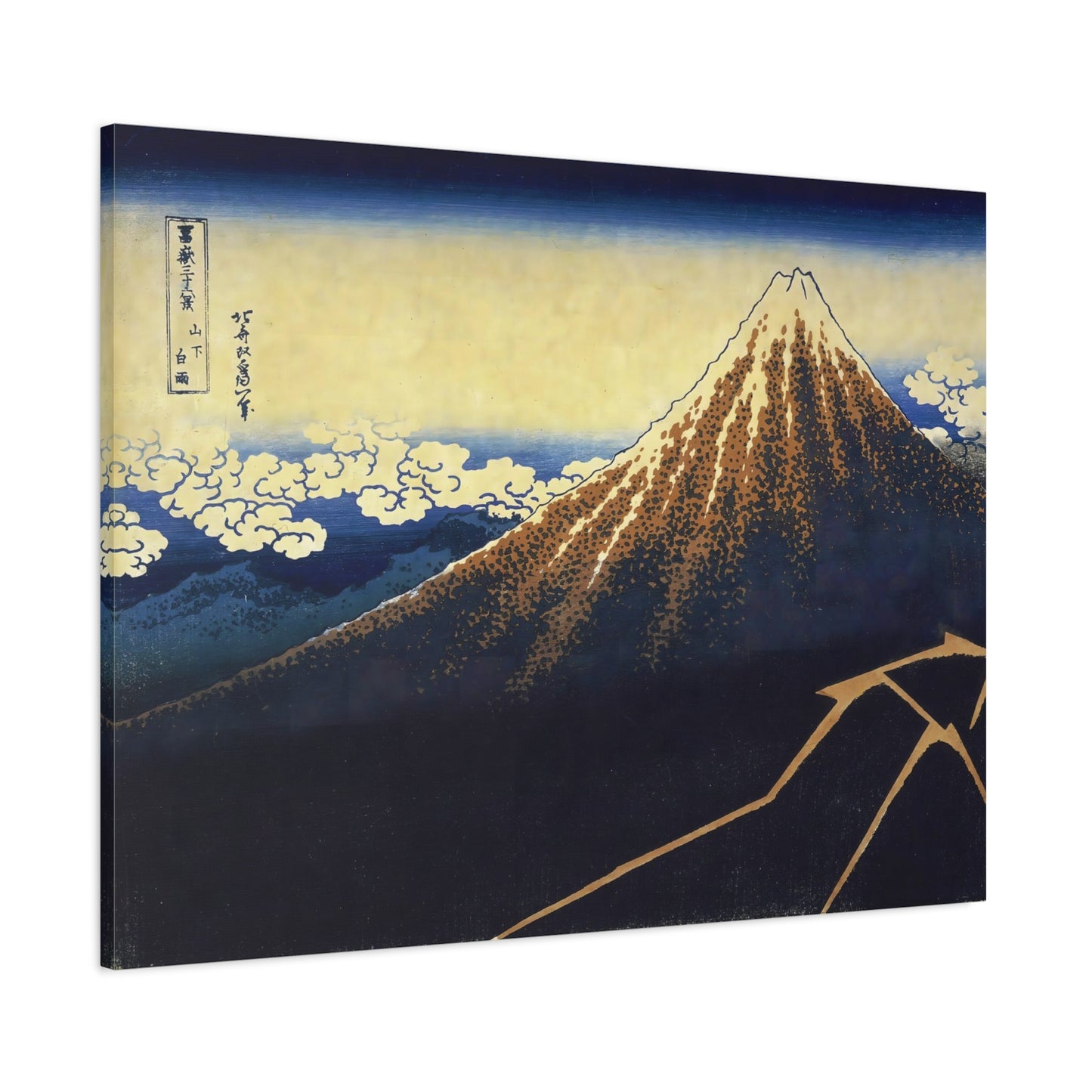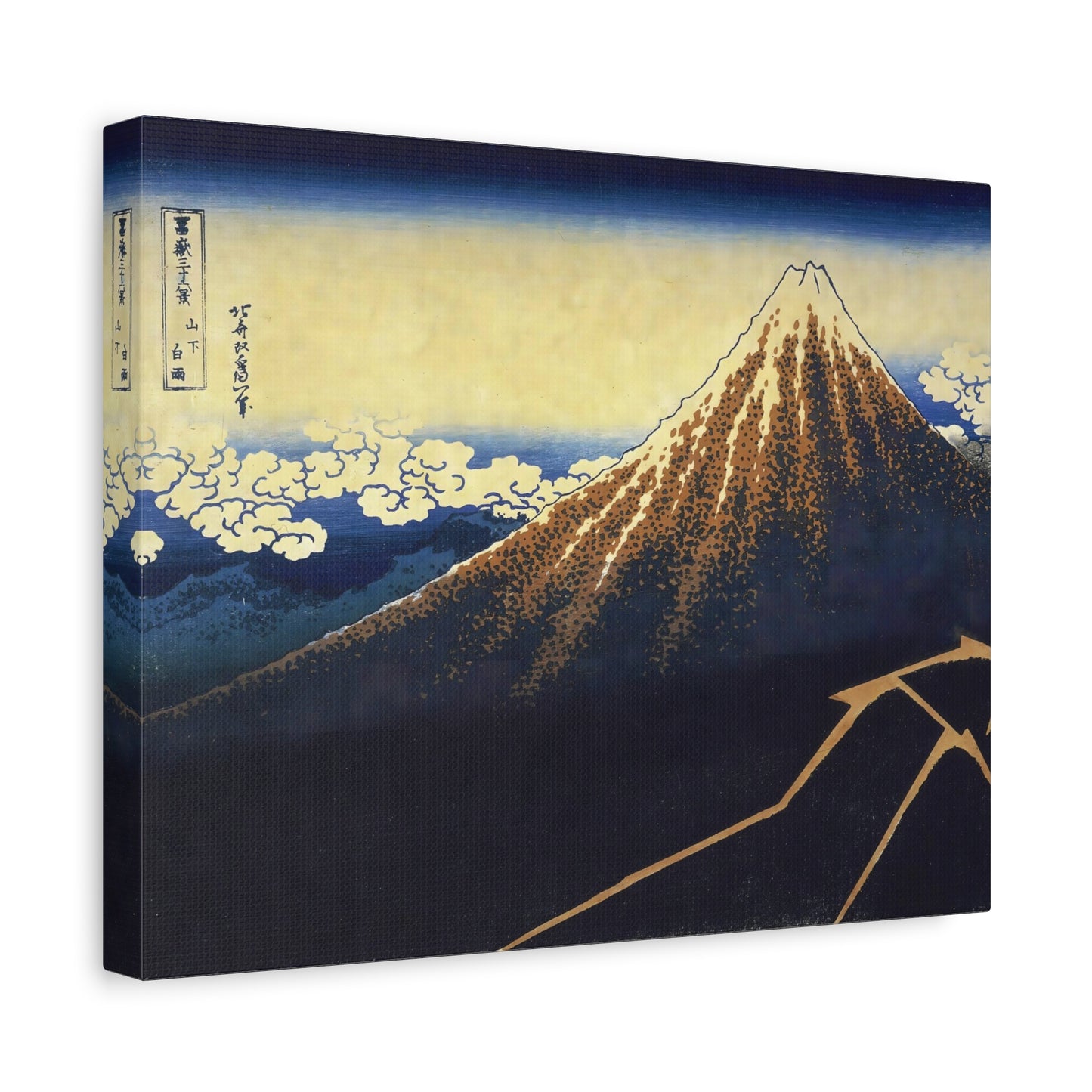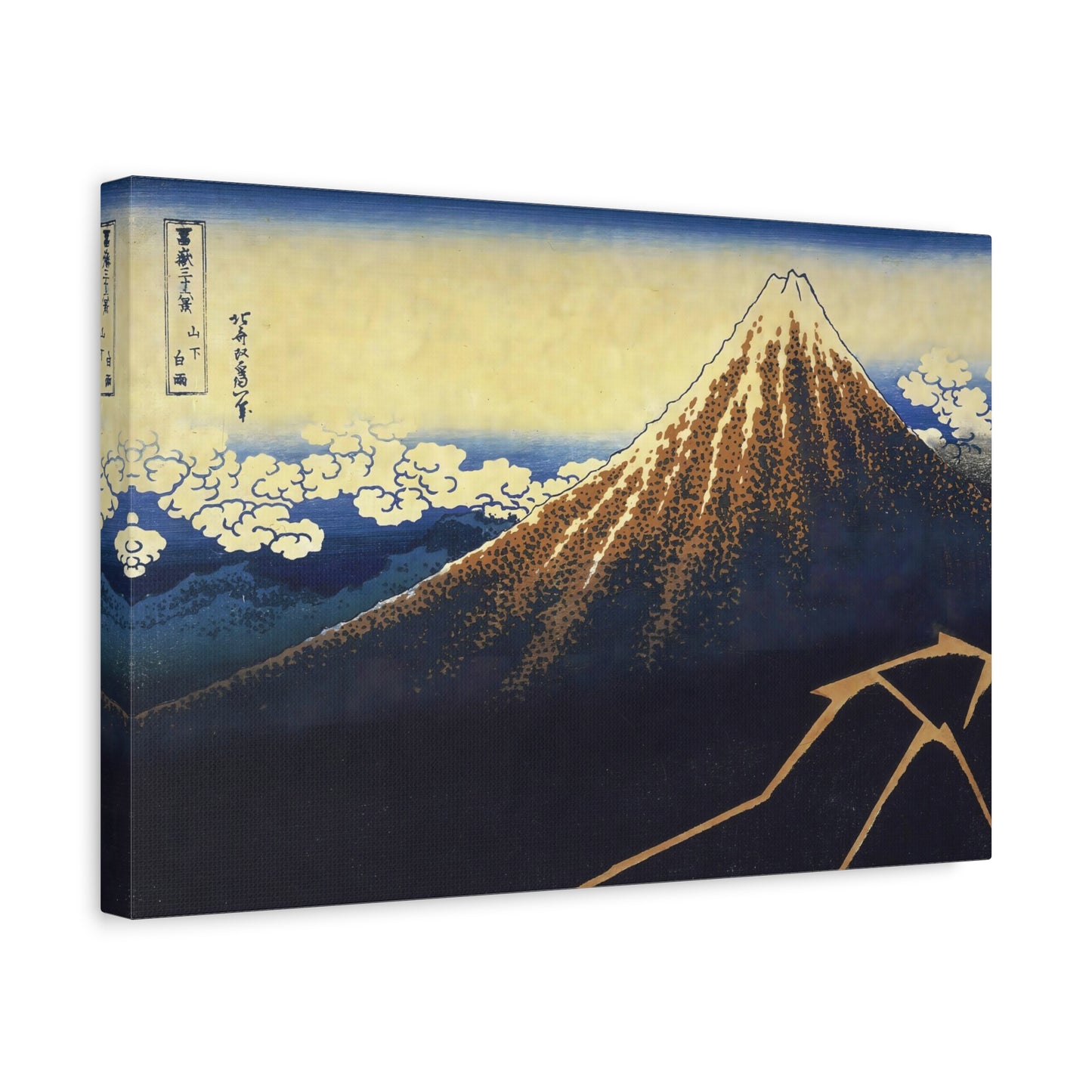 Transport yourself to the mesmerizing world of Katsushika Hokusai's Rainstorm at the Foot of the Mountain, a captivating artwork created in the 19th century. Experience the sheer power and beauty of nature as torrential rain descends upon a tranquil landscape. Hokusai's masterful use of color and intricate detailing captures the intensity of the storm, immersing you in its raw energy. Owning this canvas replication allows you to bring the dynamic forces of nature into your home, creating a captivating focal point that ignites the imagination. Let Rainstorm at the Foot of the Mountain infuse your space with excitement and evoke a sense of awe at the majestic power of the natural world.