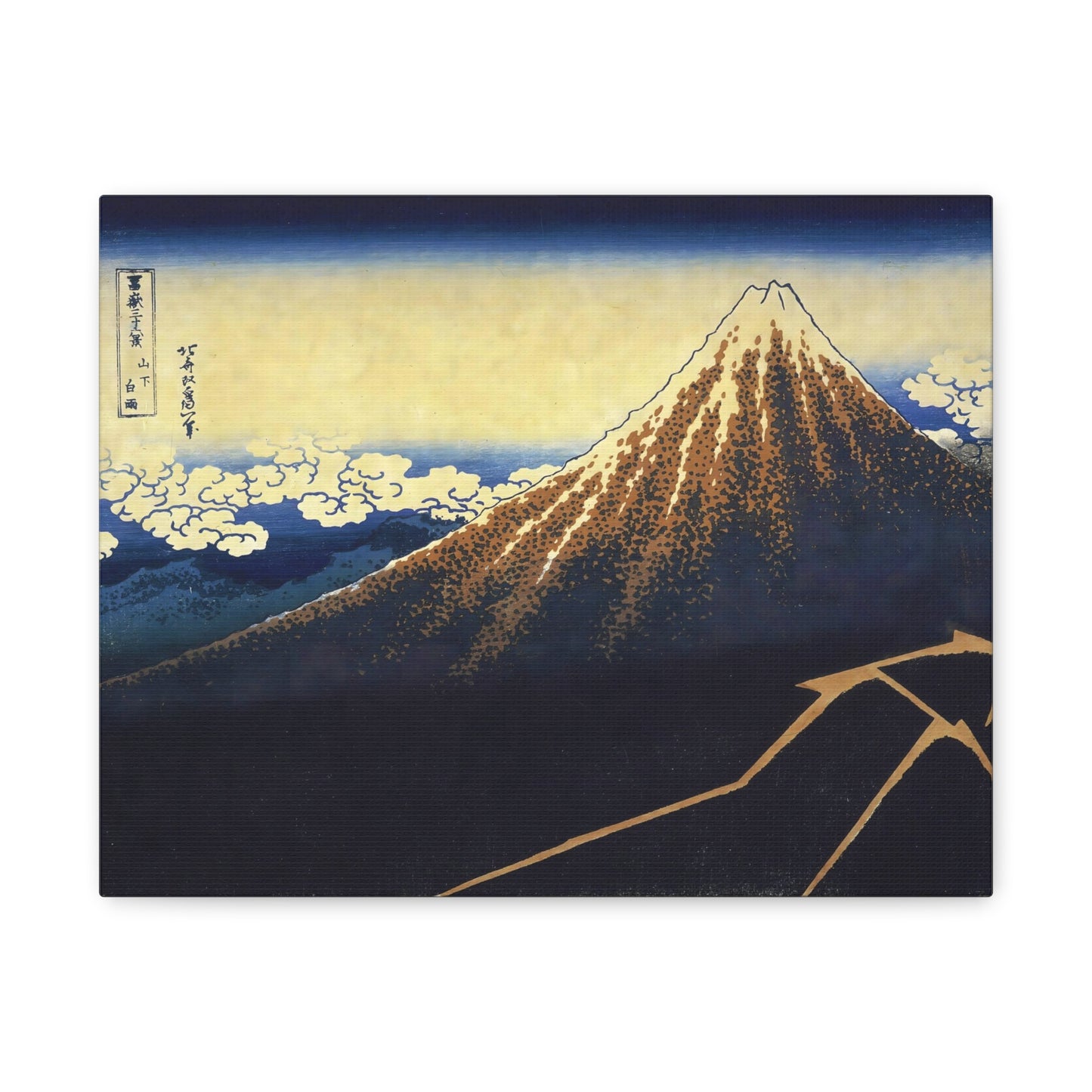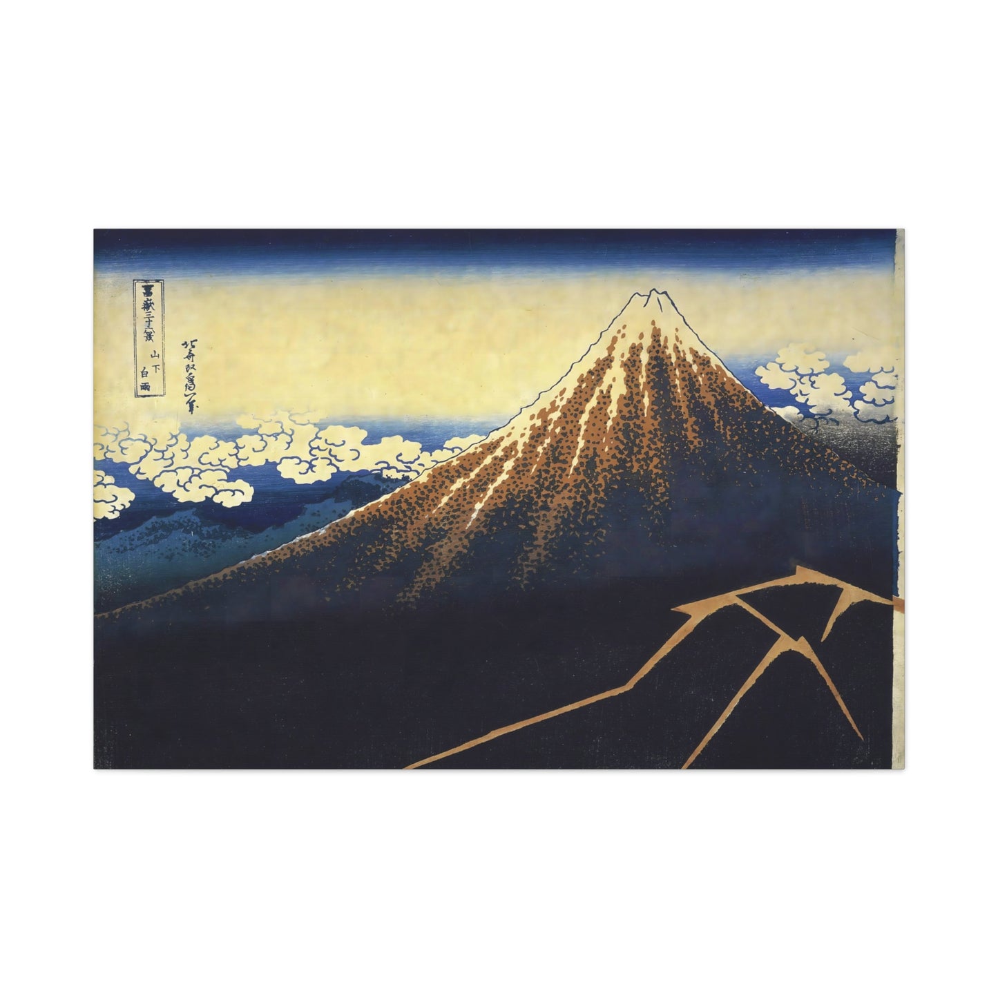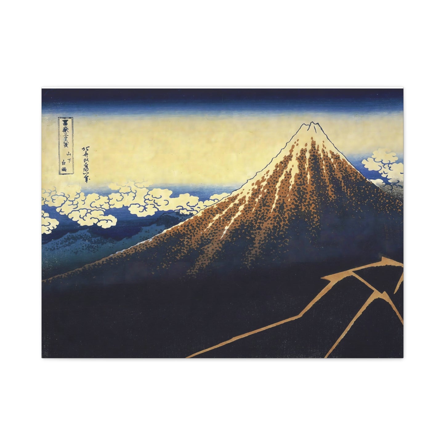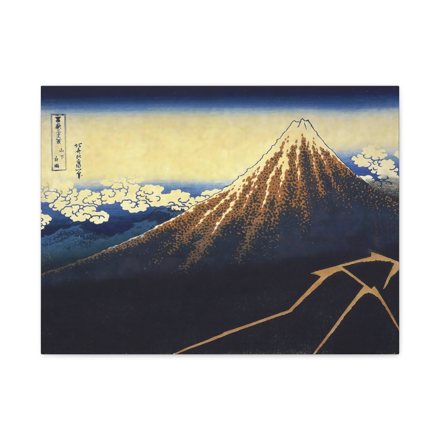 Transport yourself to the mesmerizing world of Katsushika Hokusai's Rainstorm at the Foot of the Mountain, a captivating artwork created in the 19th century. Experience the sheer power and beauty of nature as torrential rain descends upon a tranquil landscape. Hokusai's masterful use of color and intricate detailing captures the intensity of the storm, immersing you in its raw energy. Owning this canvas replication allows you to bring the dynamic forces of nature into your home, creating a captivating focal point that ignites the imagination. Let Rainstorm at the Foot of the Mountain infuse your space with excitement and evoke a sense of awe at the majestic power of the natural world.