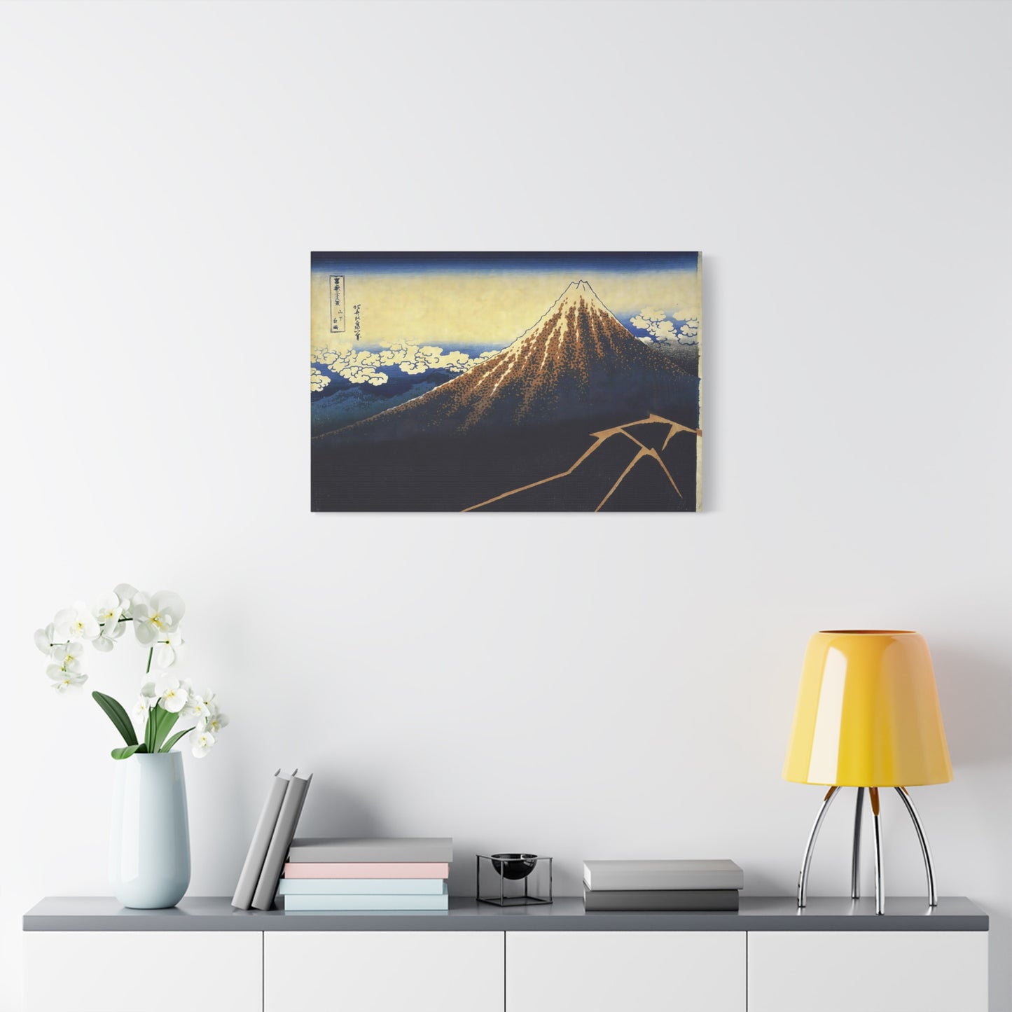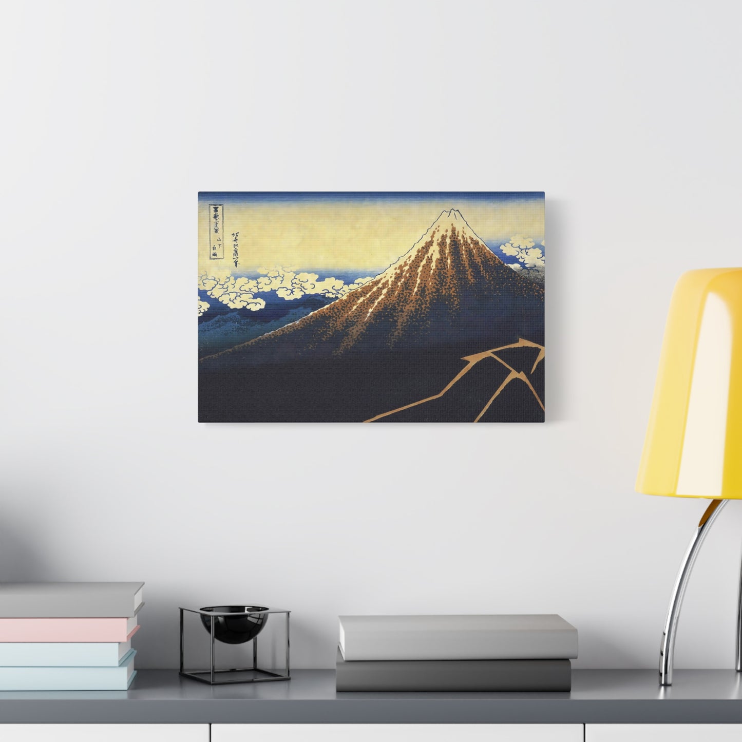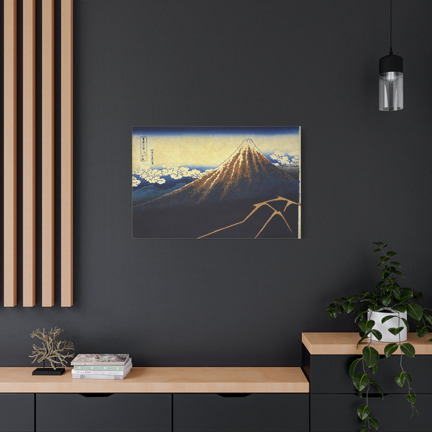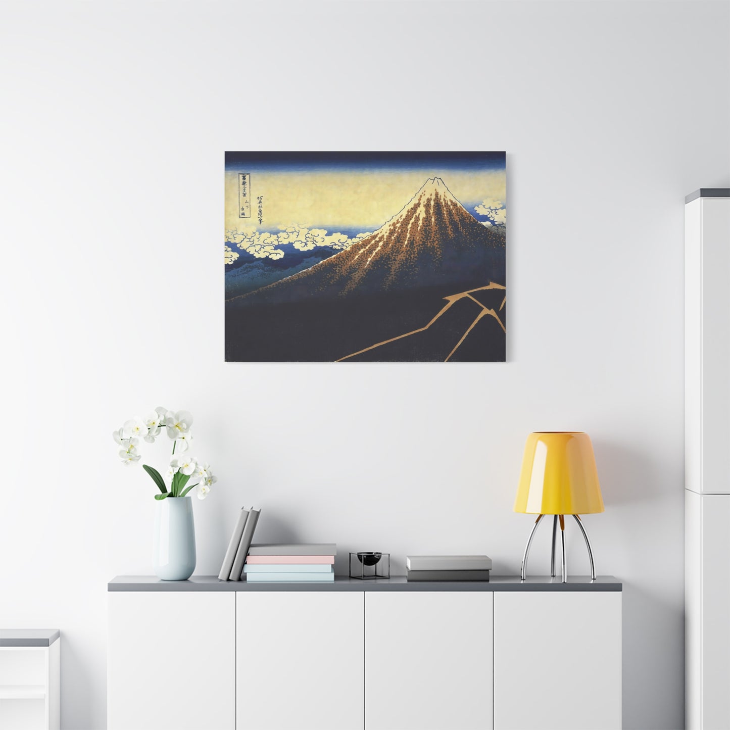 Transport yourself to the mesmerizing world of Katsushika Hokusai's Rainstorm at the Foot of the Mountain, a captivating artwork created in the 19th century. Experience the sheer power and beauty of nature as torrential rain descends upon a tranquil landscape. Hokusai's masterful use of color and intricate detailing captures the intensity of the storm, immersing you in its raw energy. Owning this canvas replication allows you to bring the dynamic forces of nature into your home, creating a captivating focal point that ignites the imagination. Let Rainstorm at the Foot of the Mountain infuse your space with excitement and evoke a sense of awe at the majestic power of the natural world.