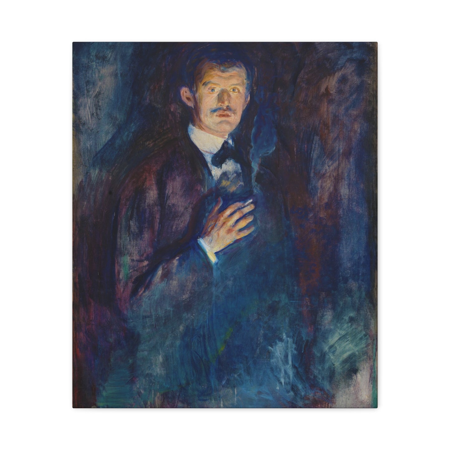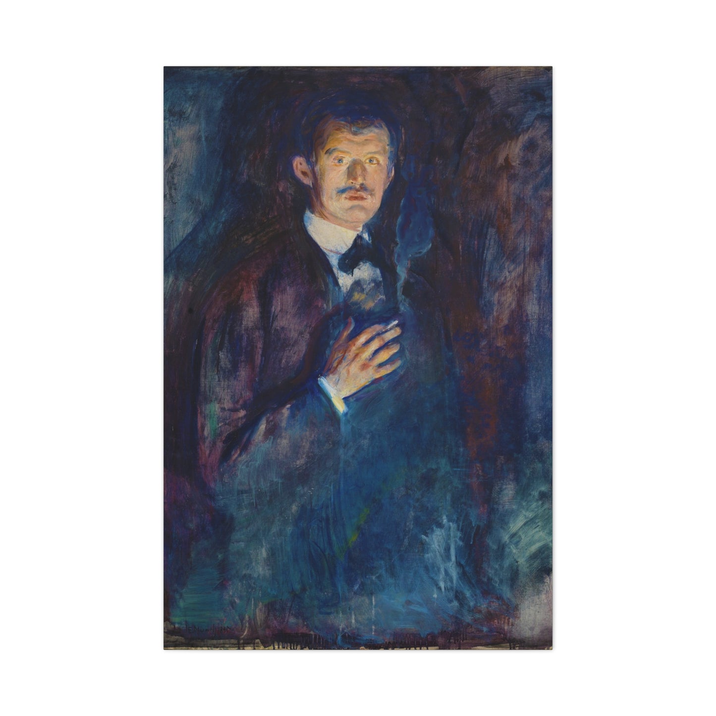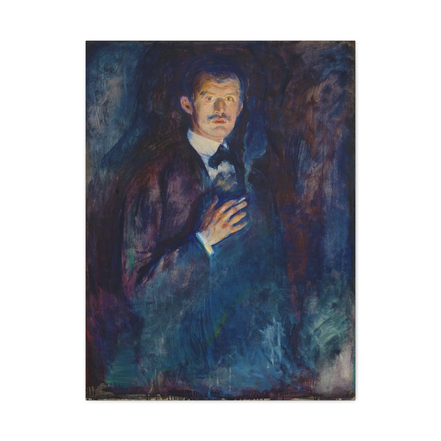 Introducing the mesmerizing Self-Portrait with Burning Cigarette by the renowned artist Edvard Munch, created in 1895. This striking artwork captures Munch's introspective gaze as he holds a burning cigarette, evoking a sense of contemplation and intensity. Our meticulously replicated canvas art brings forth every nuanced brushstroke, preserving the raw emotion and enigmatic atmosphere of the original masterpiece. Displaying this iconic self-portrait in your home adds a touch of intrigue and artistic sophistication, serving as a captivating conversation starter and a testament to your refined taste. Immerse yourself in Munch's world and embrace the allure of this captivating artwork that truly stands the test of time.