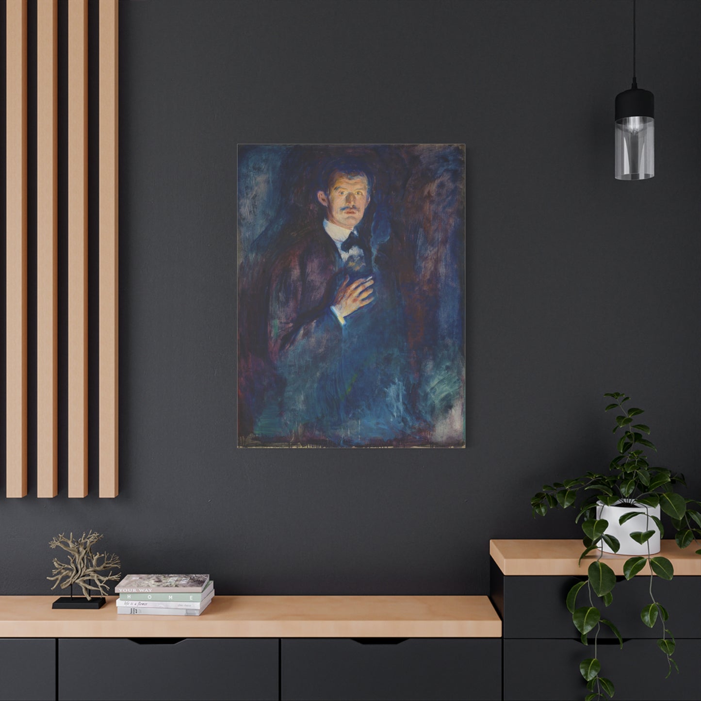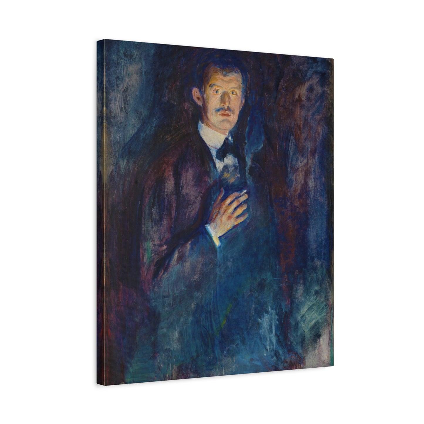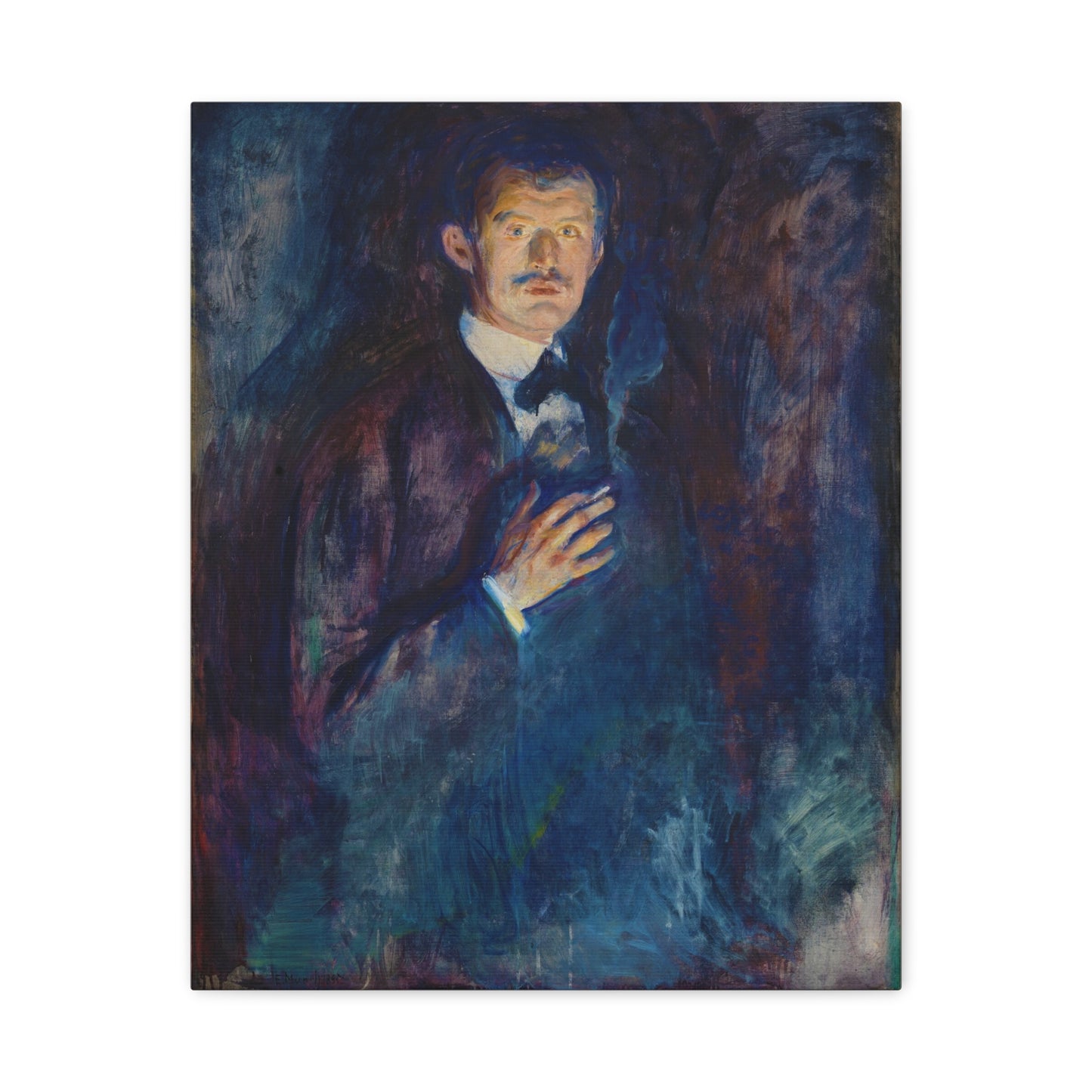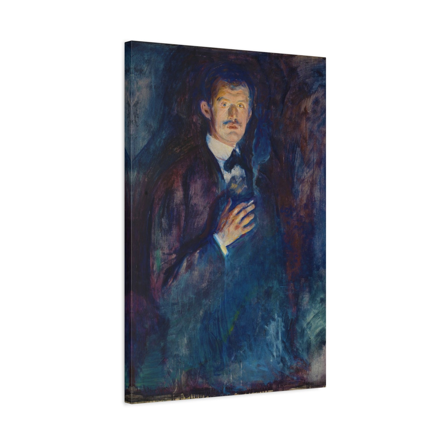 Introducing the mesmerizing Self-Portrait with Burning Cigarette by the renowned artist Edvard Munch, created in 1895. This striking artwork captures Munch's introspective gaze as he holds a burning cigarette, evoking a sense of contemplation and intensity. Our meticulously replicated canvas art brings forth every nuanced brushstroke, preserving the raw emotion and enigmatic atmosphere of the original masterpiece. Displaying this iconic self-portrait in your home adds a touch of intrigue and artistic sophistication, serving as a captivating conversation starter and a testament to your refined taste. Immerse yourself in Munch's world and embrace the allure of this captivating artwork that truly stands the test of time.