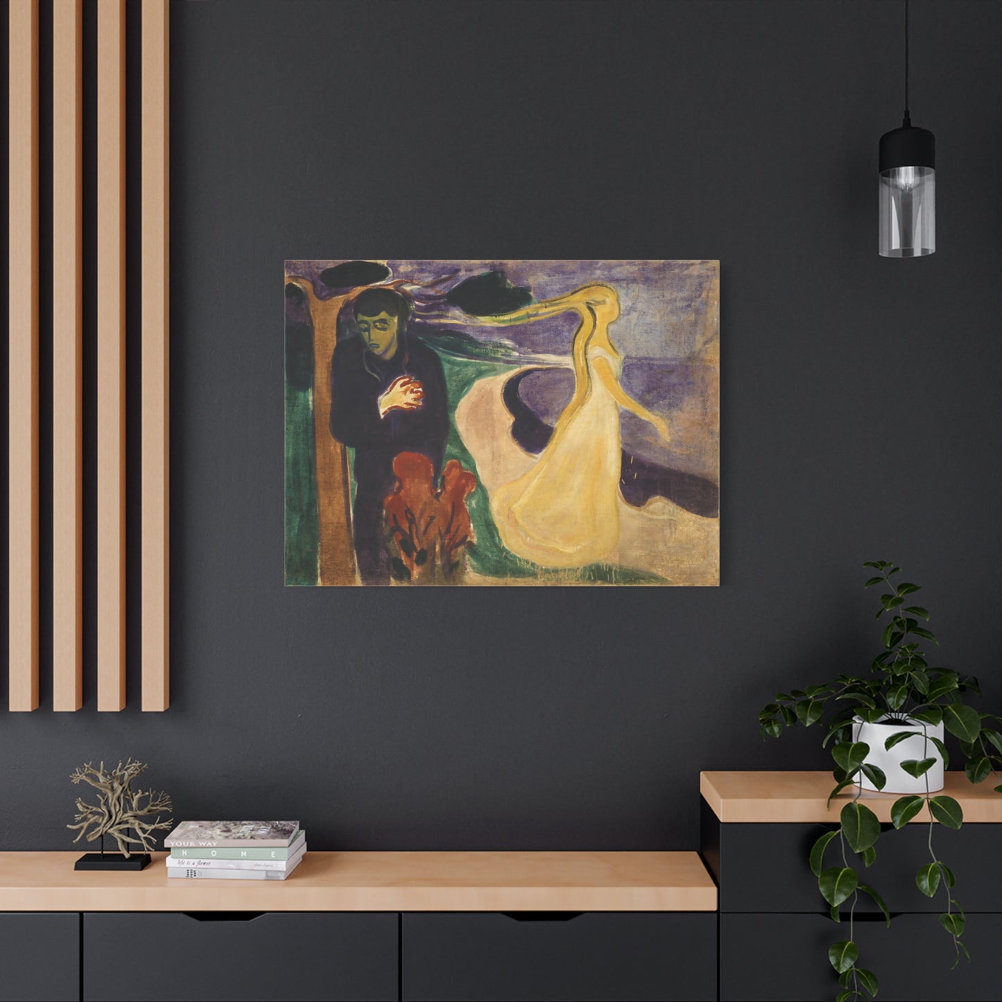 The iconic artwork Separation by Edvard Munch, created in 1896, is an absolute masterpiece that captures the raw emotions and human experience like no other. This powerful piece depicts a couple parting ways, their bodies twisted in anguish, symbolizing the heart-wrenching pain of separation. The vibrant colors and bold brushstrokes exude energy, drawing you into the intensity of the moment. Owning a replicated canvas of this extraordinary artwork will infuse your home with passion and drama. Imagine the conversations it will spark, the emotions it will evoke, and the awe it will inspire in your guests. Don't miss the opportunity to own a piece of history and elevate your space with this captivating symbol of human emotion.