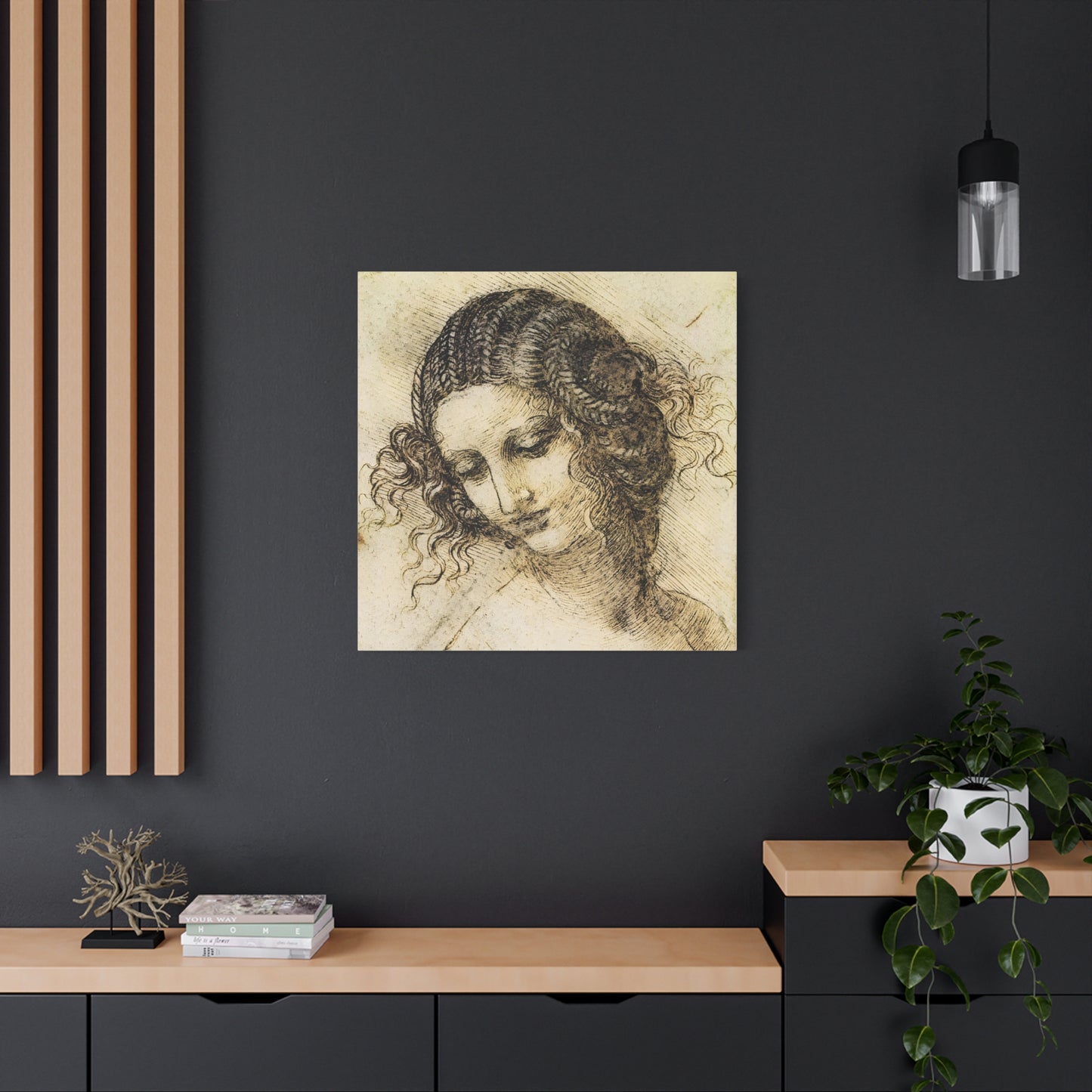 Step into the enchanting world of Leonardo da Vinci with his captivating artwork, Study for the Head of Leda. Created around the year 1506, this remarkable piece showcases da Vinci's mastery in capturing the beauty and grace of the human form. Leda, the mythological queen of Sparta, is depicted with mesmerizing serenity and elegance. The intricate details and delicate brushwork bring her to life, evoking a sense of mystery and sensuality. Owning a canvas art replication of this extraordinary study allows you to adorn your home with a touch of Renaissance allure, infusing it with the timeless charm and allure of da Vinci's genius. Immerse yourself in the captivating world of classical mythology and indulge in the exquisite craftsmanship of one of history's greatest artists.