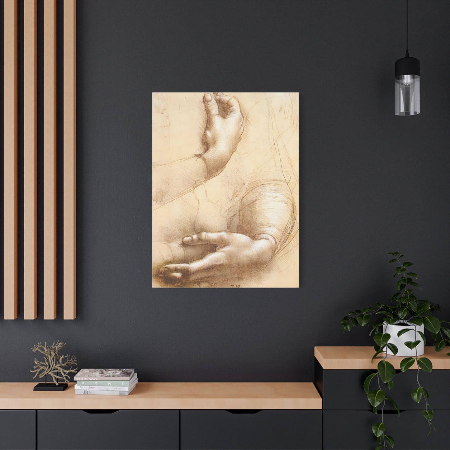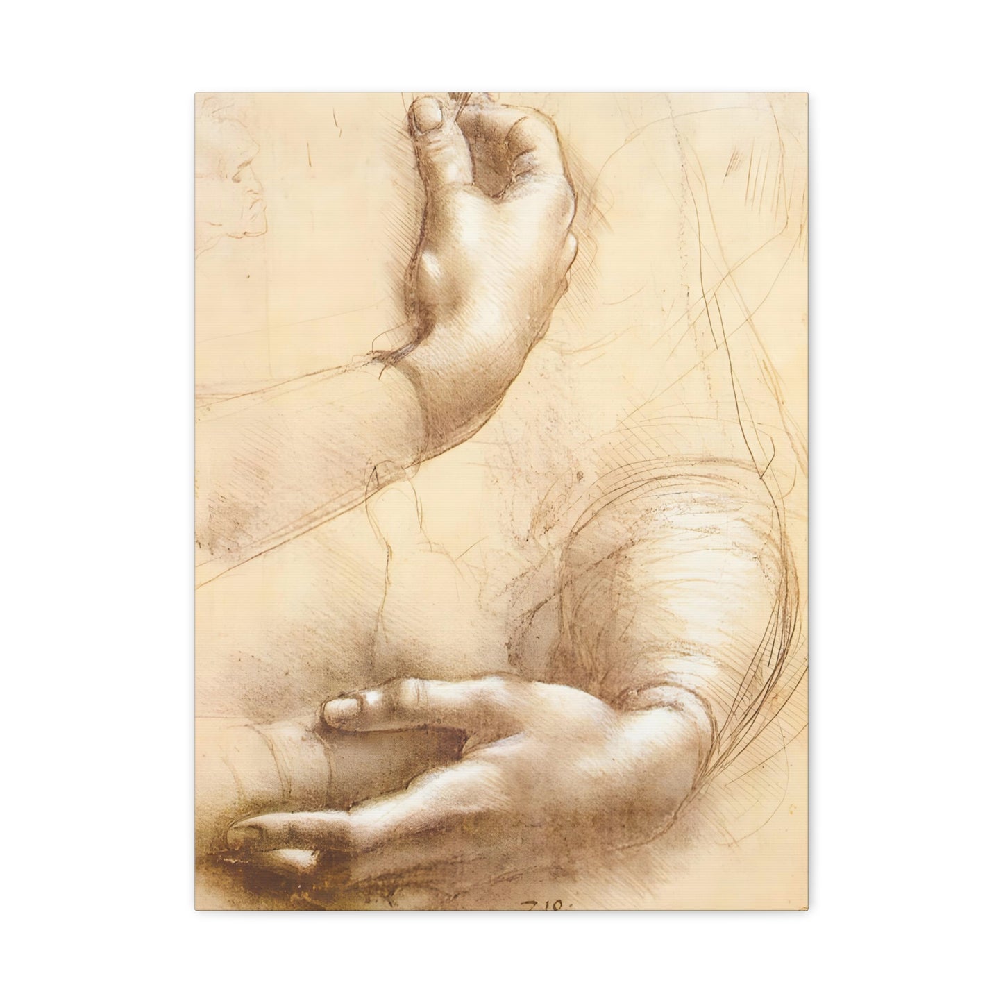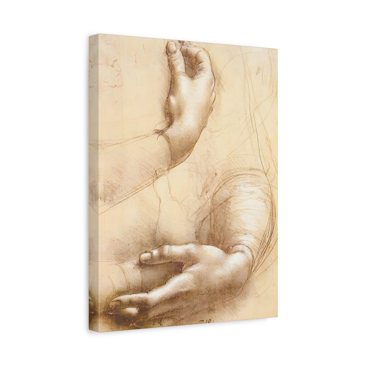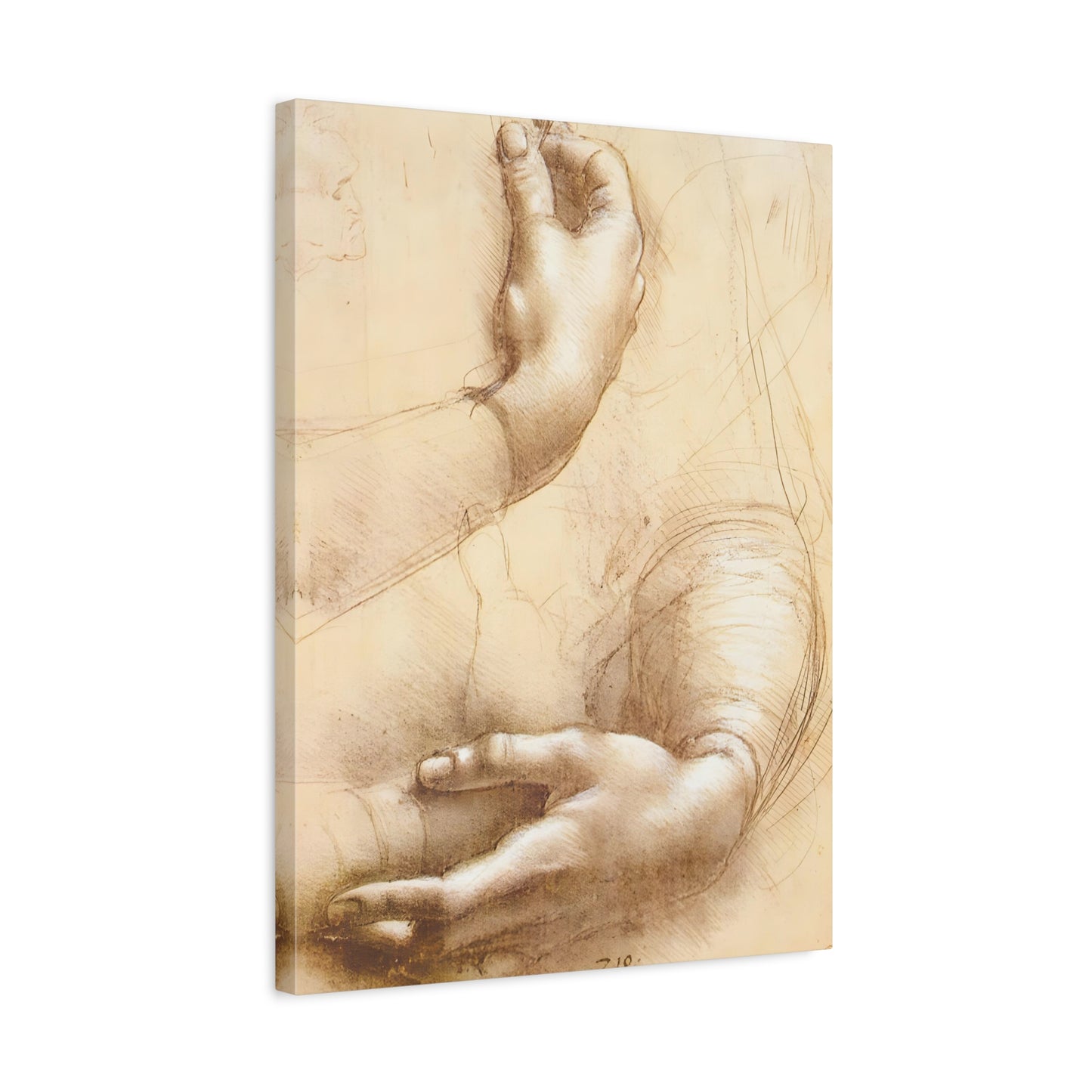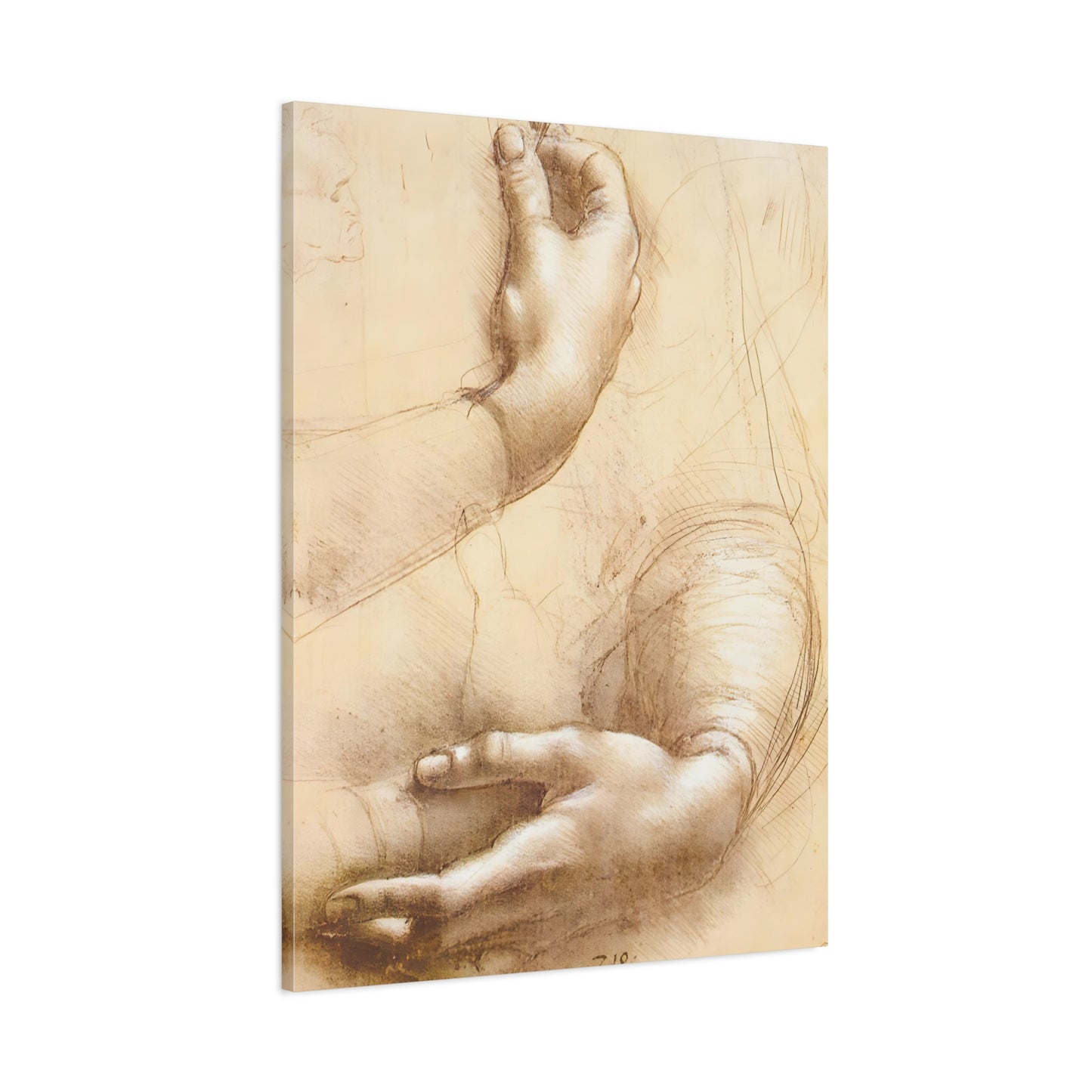 Immerse yourself in the exquisite mastery of Leonardo da Vinci's Study of Hands, created in the late 15th century. This captivating artwork showcases da Vinci's unparalleled ability to capture the intricate beauty and expressiveness of human hands. The level of detail and precision in this study is truly remarkable, drawing you into the realm of Leonardo's genius. A canvas art replication of this piece will not only add sophistication to your home decor but also serve as a constant reminder of the artist's extraordinary talent. Displaying this artwork allows you to appreciate the human form in all its intricacies and connect with the artistic brilliance of Leonardo da Vinci. Own a piece of artistic history and let the elegance of Study of Hands enrich your living space.