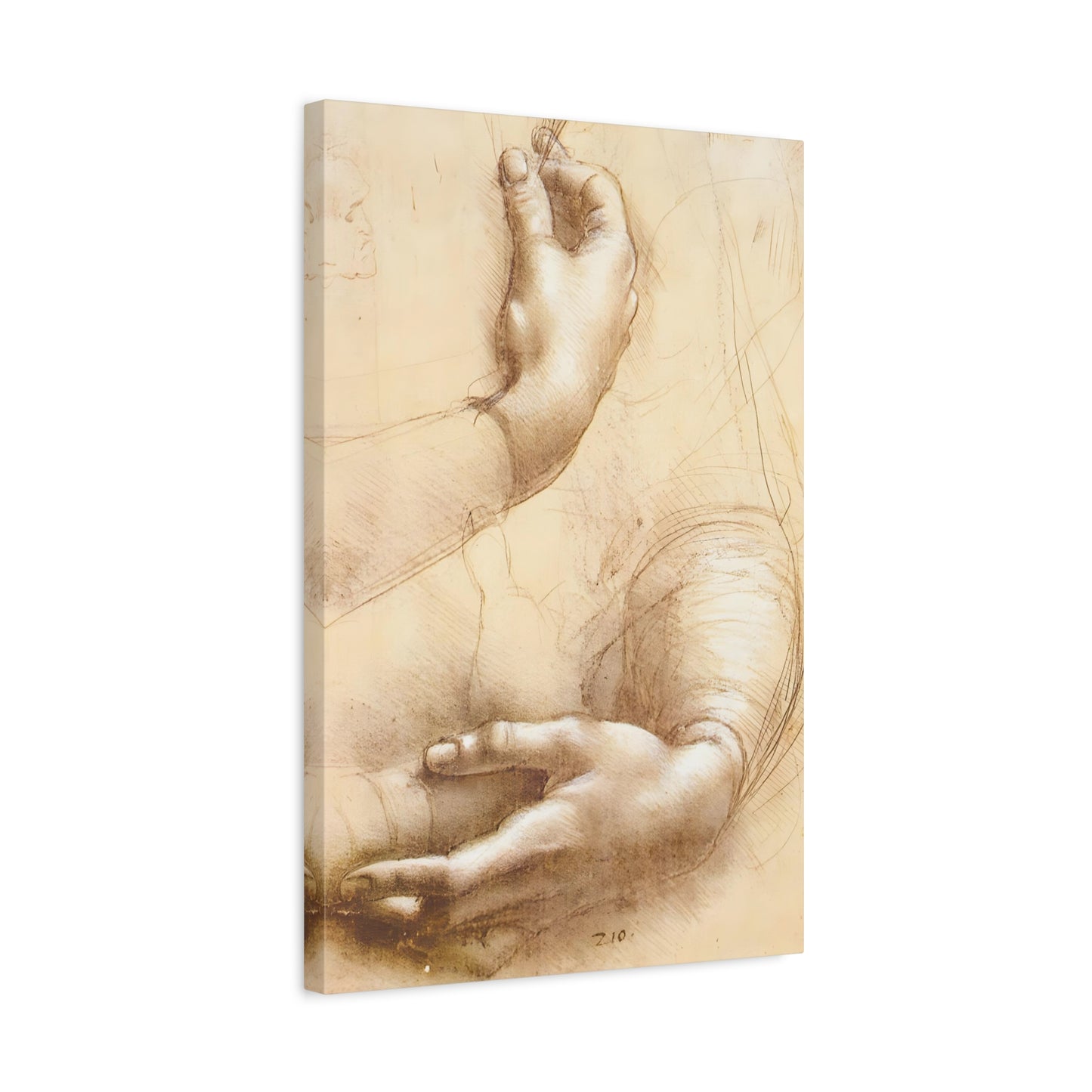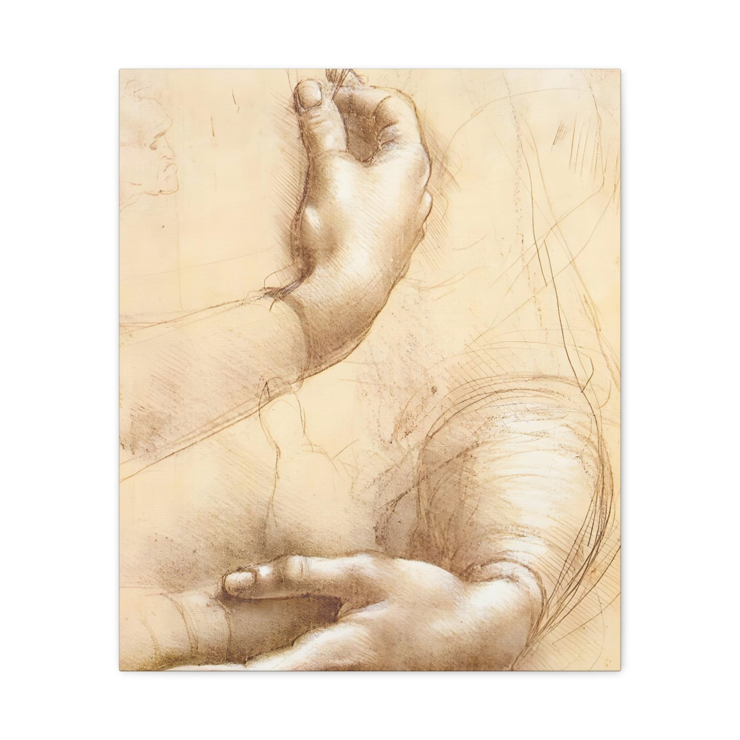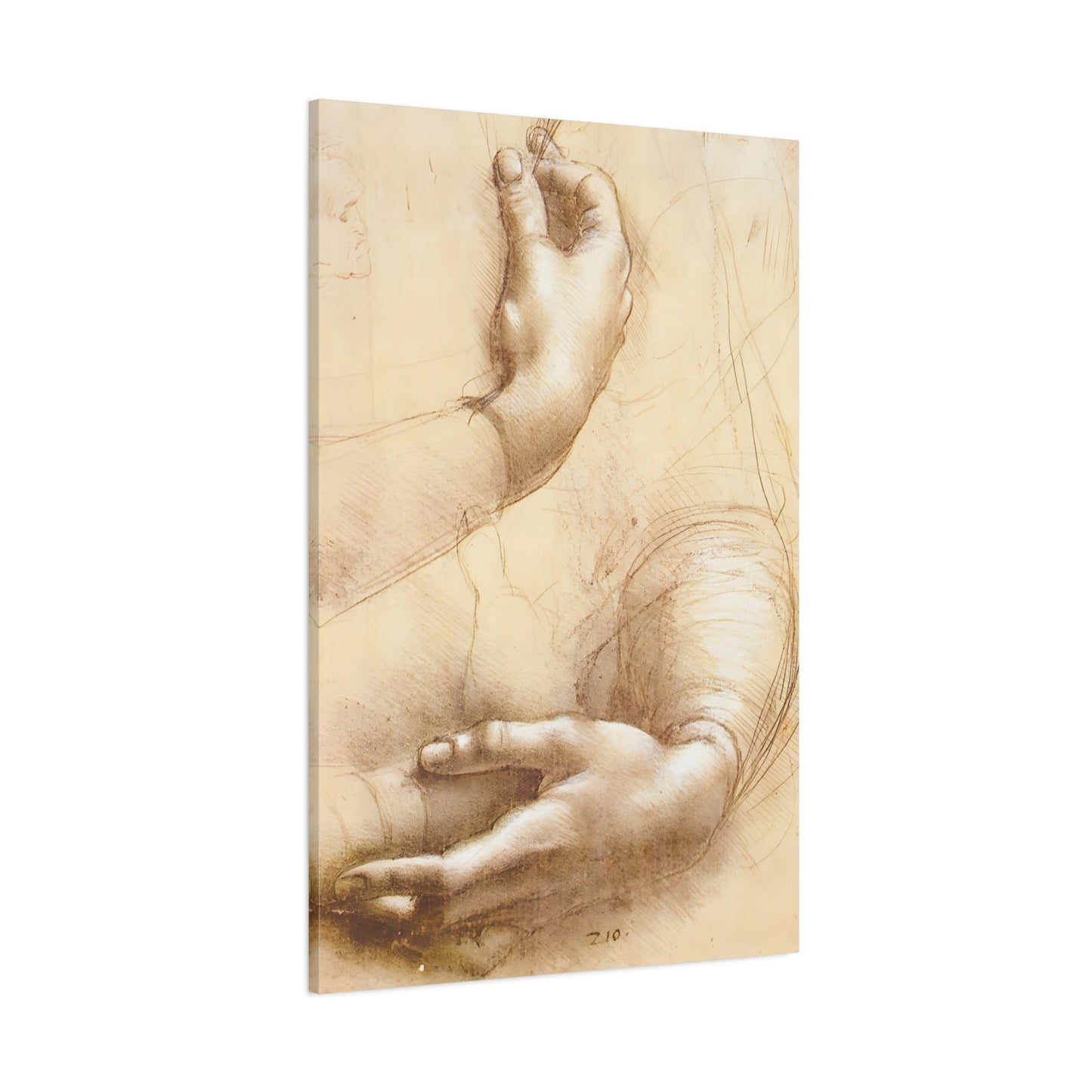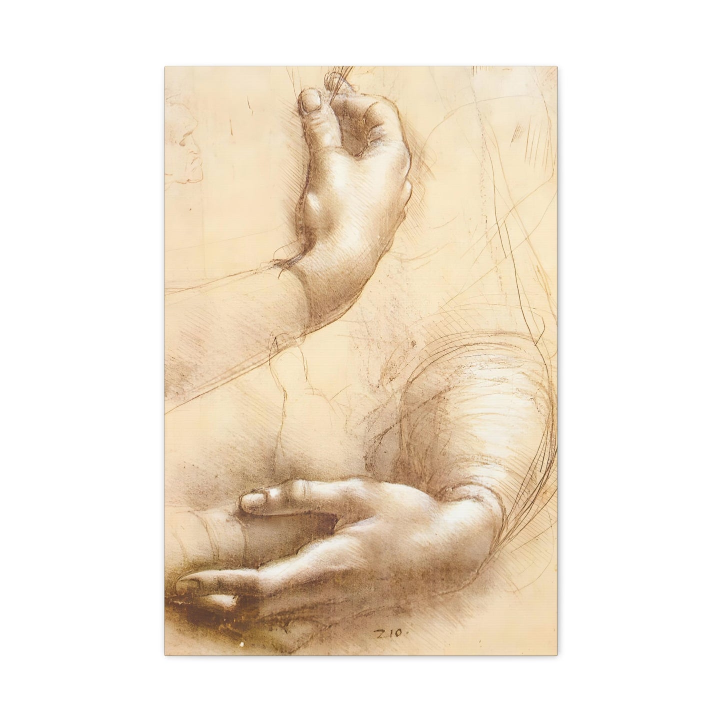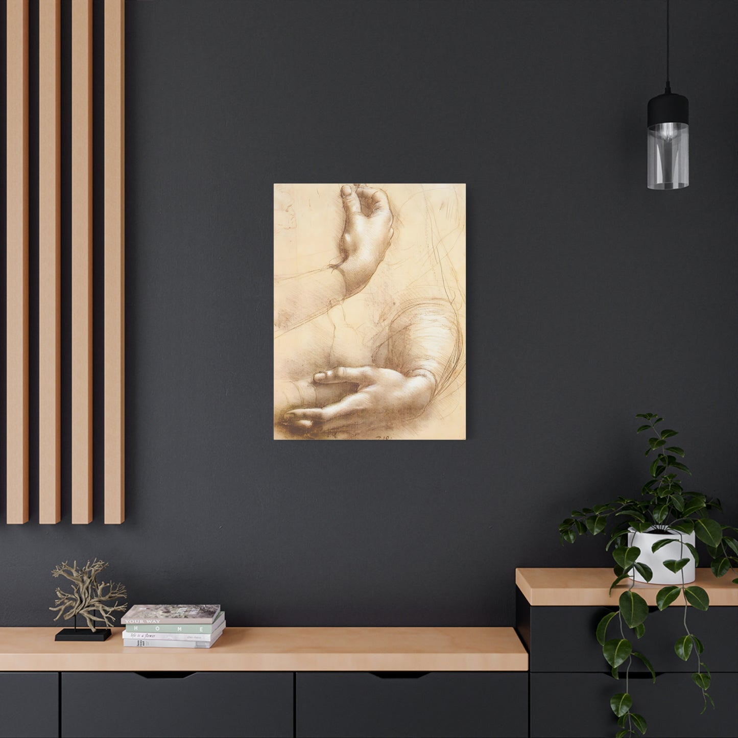 Immerse yourself in the exquisite mastery of Leonardo da Vinci's Study of Hands, created in the late 15th century. This captivating artwork showcases da Vinci's unparalleled ability to capture the intricate beauty and expressiveness of human hands. The level of detail and precision in this study is truly remarkable, drawing you into the realm of Leonardo's genius. A canvas art replication of this piece will not only add sophistication to your home decor but also serve as a constant reminder of the artist's extraordinary talent. Displaying this artwork allows you to appreciate the human form in all its intricacies and connect with the artistic brilliance of Leonardo da Vinci. Own a piece of artistic history and let the elegance of Study of Hands enrich your living space.