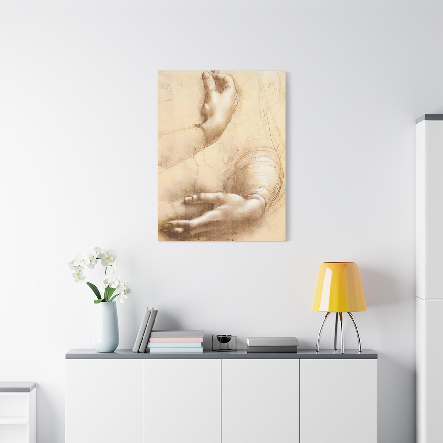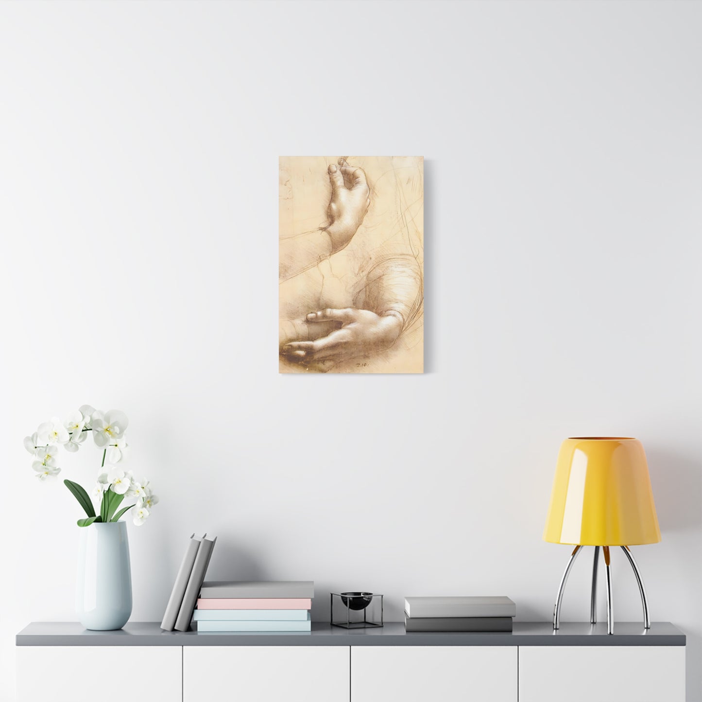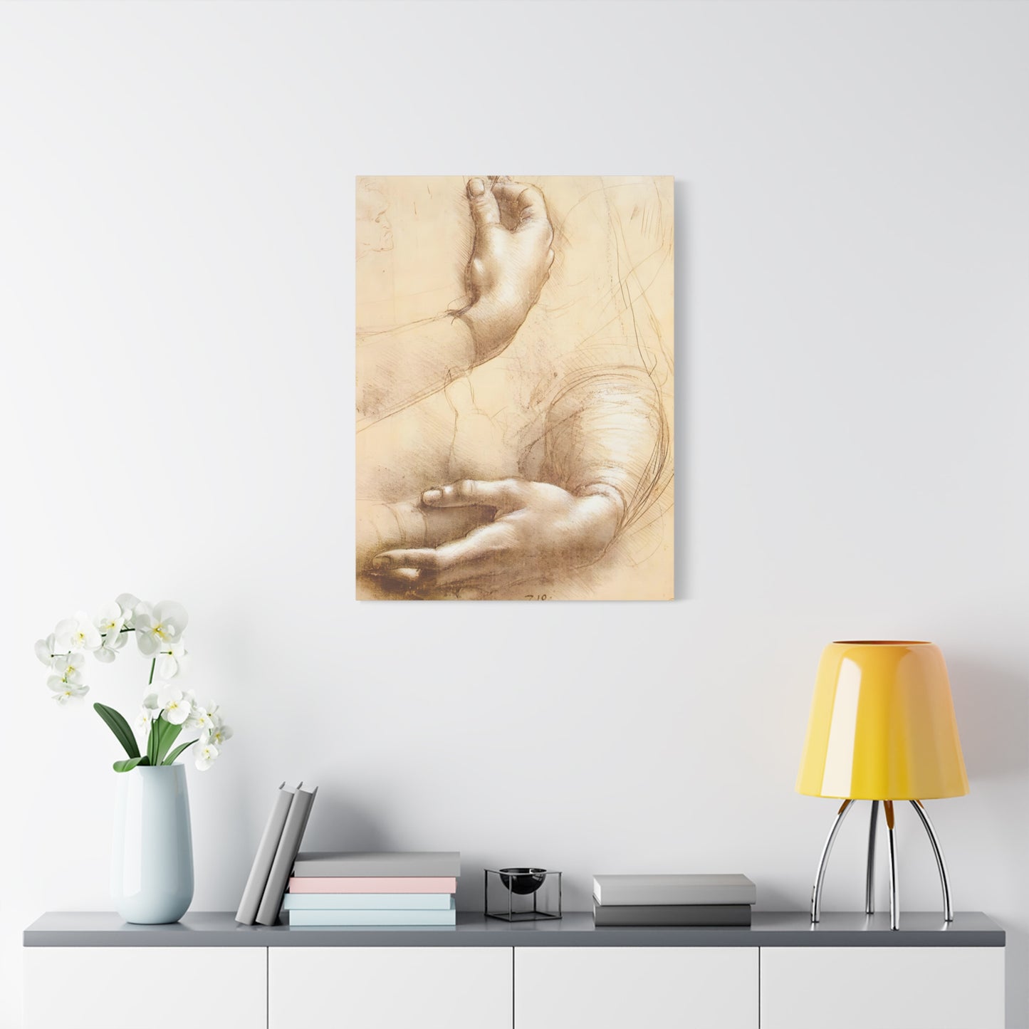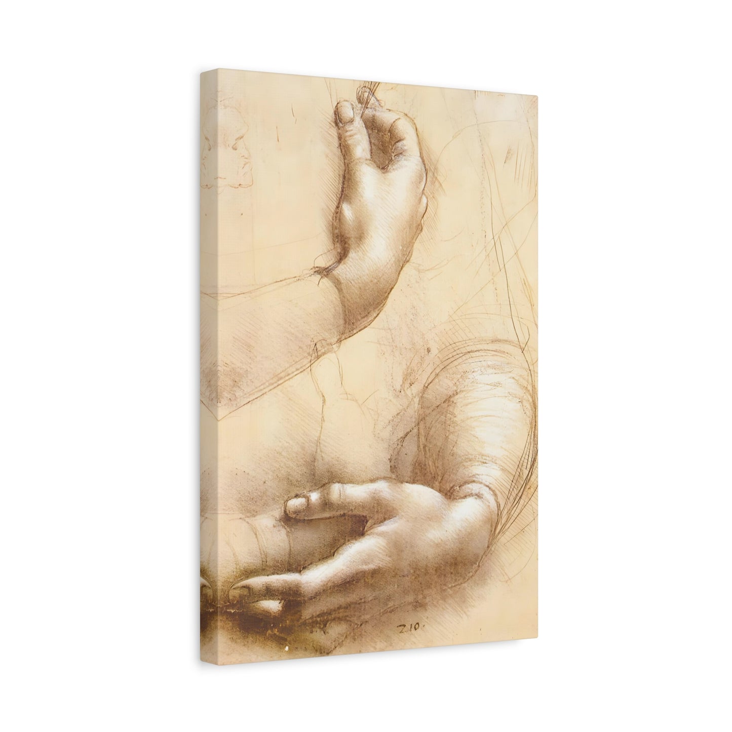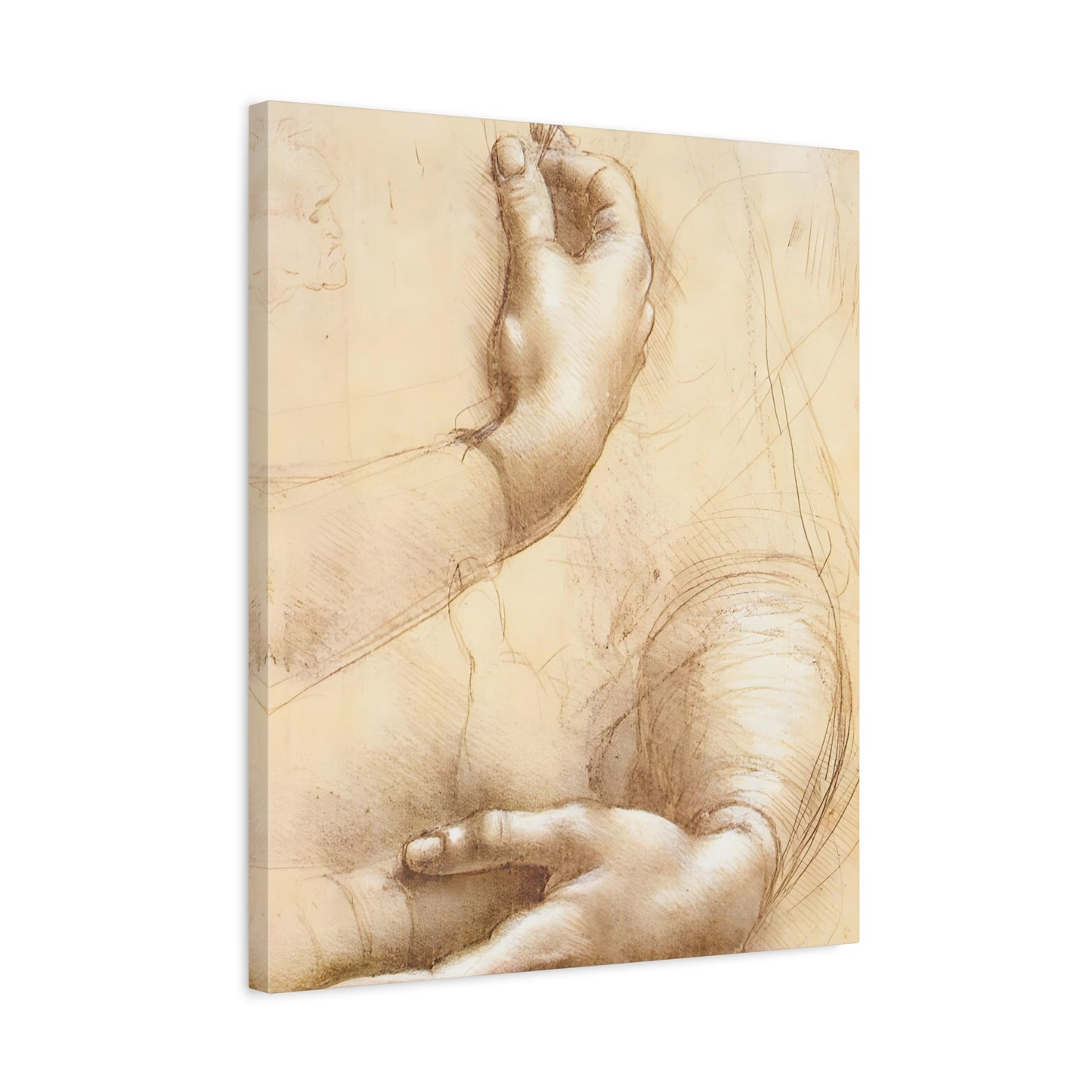 Immerse yourself in the exquisite mastery of Leonardo da Vinci's Study of Hands, created in the late 15th century. This captivating artwork showcases da Vinci's unparalleled ability to capture the intricate beauty and expressiveness of human hands. The level of detail and precision in this study is truly remarkable, drawing you into the realm of Leonardo's genius. A canvas art replication of this piece will not only add sophistication to your home decor but also serve as a constant reminder of the artist's extraordinary talent. Displaying this artwork allows you to appreciate the human form in all its intricacies and connect with the artistic brilliance of Leonardo da Vinci. Own a piece of artistic history and let the elegance of Study of Hands enrich your living space.