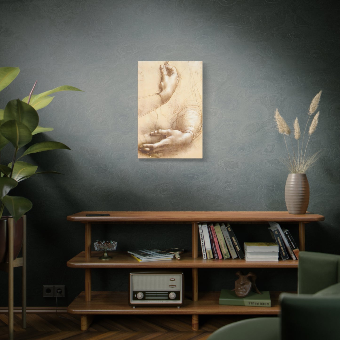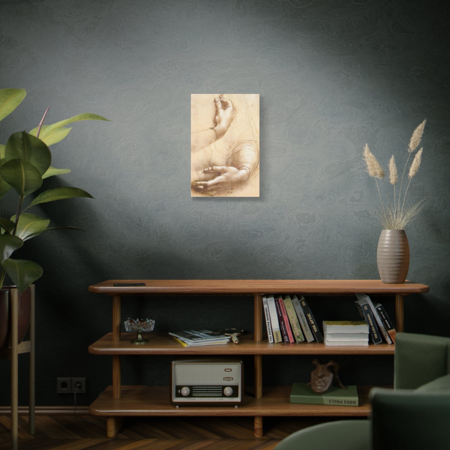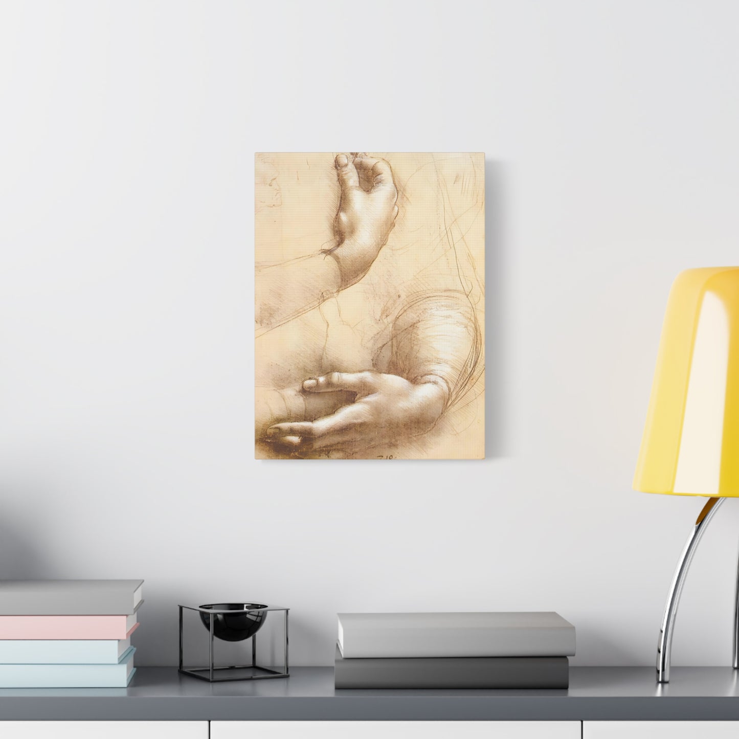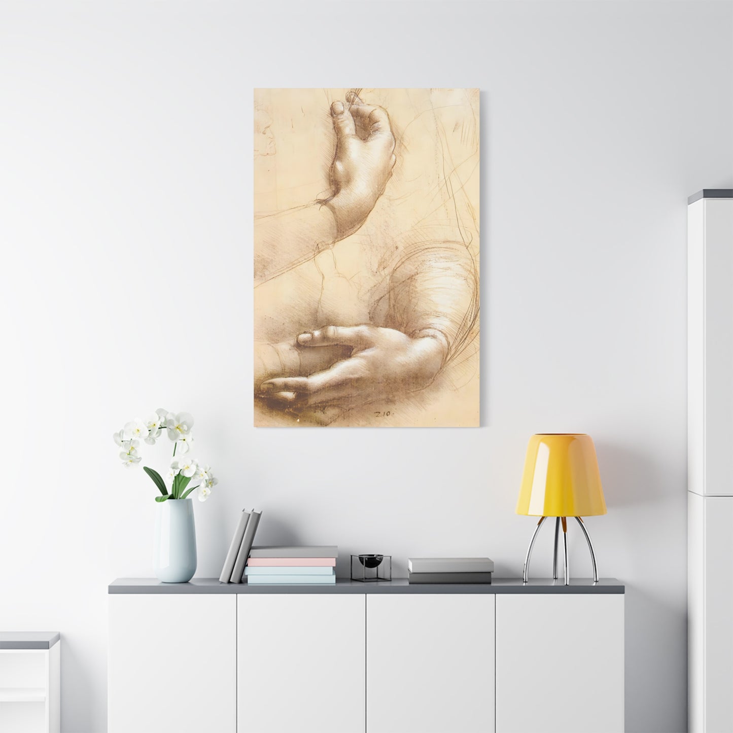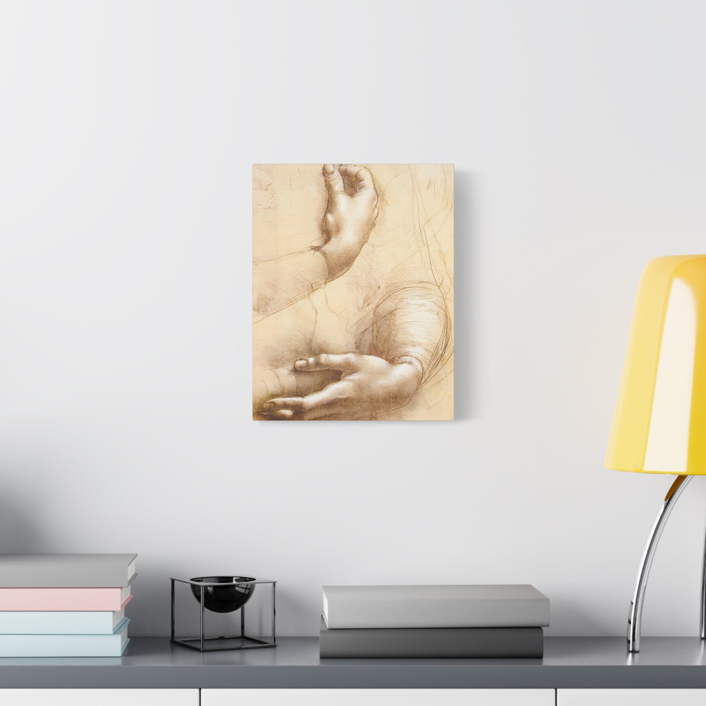 Immerse yourself in the exquisite mastery of Leonardo da Vinci's Study of Hands, created in the late 15th century. This captivating artwork showcases da Vinci's unparalleled ability to capture the intricate beauty and expressiveness of human hands. The level of detail and precision in this study is truly remarkable, drawing you into the realm of Leonardo's genius. A canvas art replication of this piece will not only add sophistication to your home decor but also serve as a constant reminder of the artist's extraordinary talent. Displaying this artwork allows you to appreciate the human form in all its intricacies and connect with the artistic brilliance of Leonardo da Vinci. Own a piece of artistic history and let the elegance of Study of Hands enrich your living space.