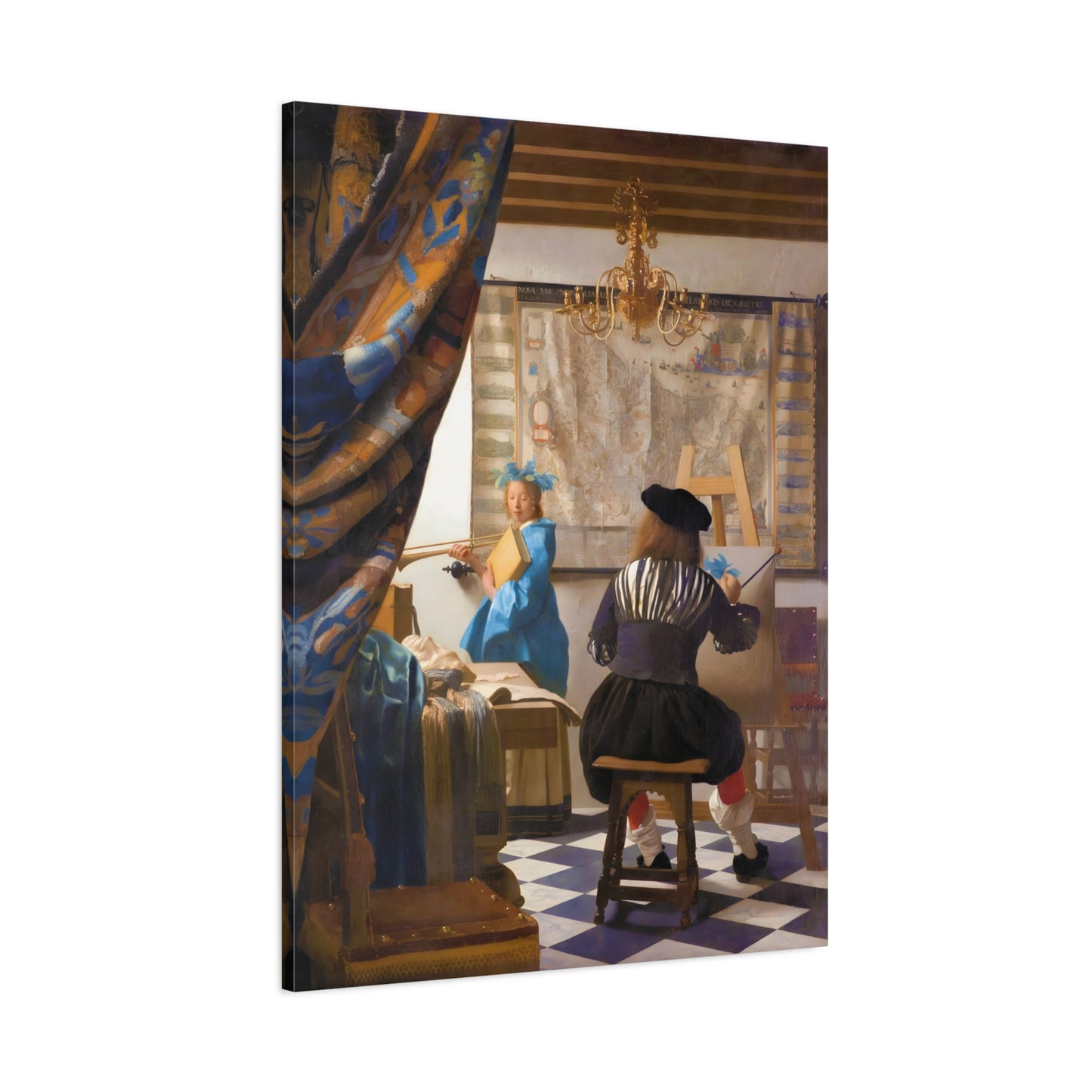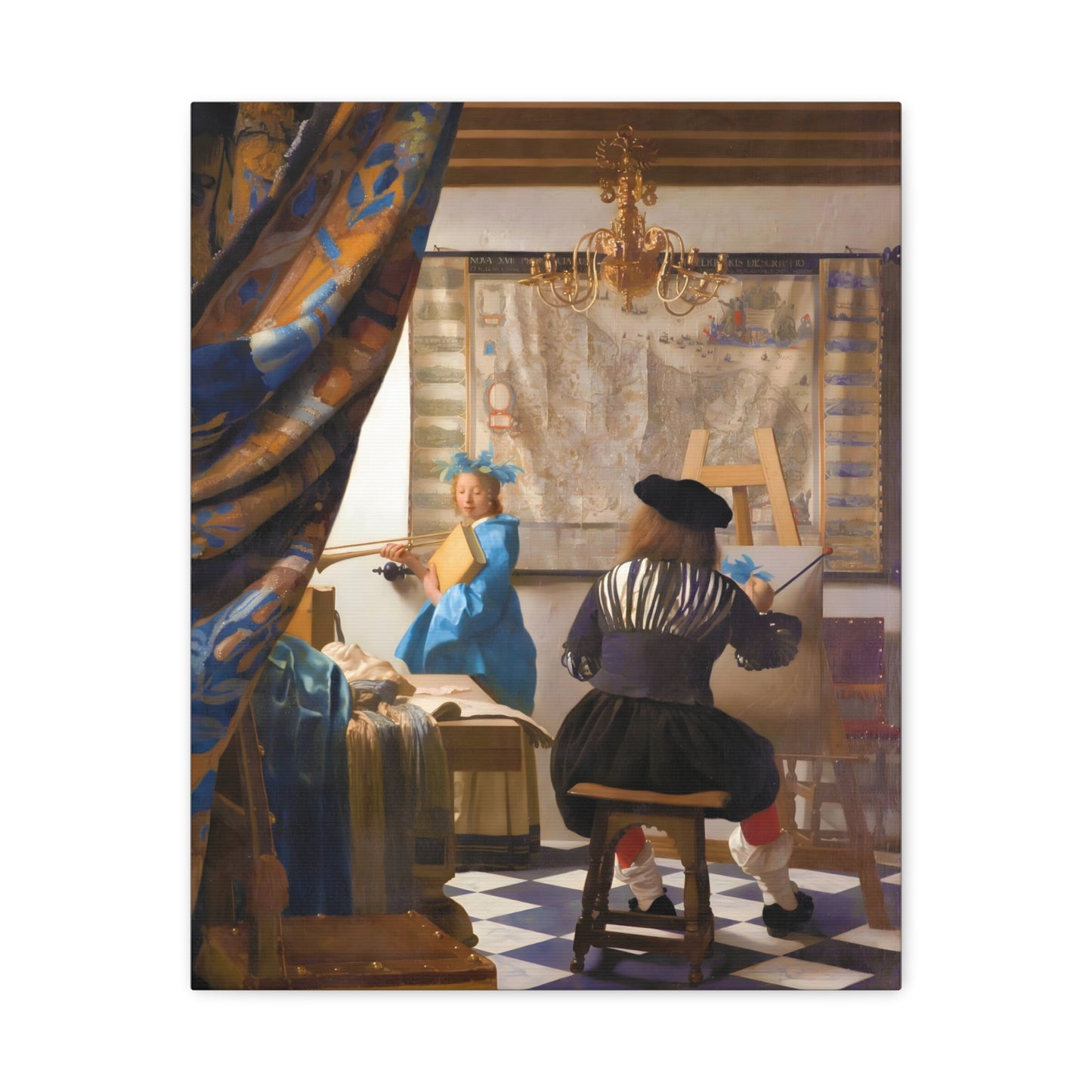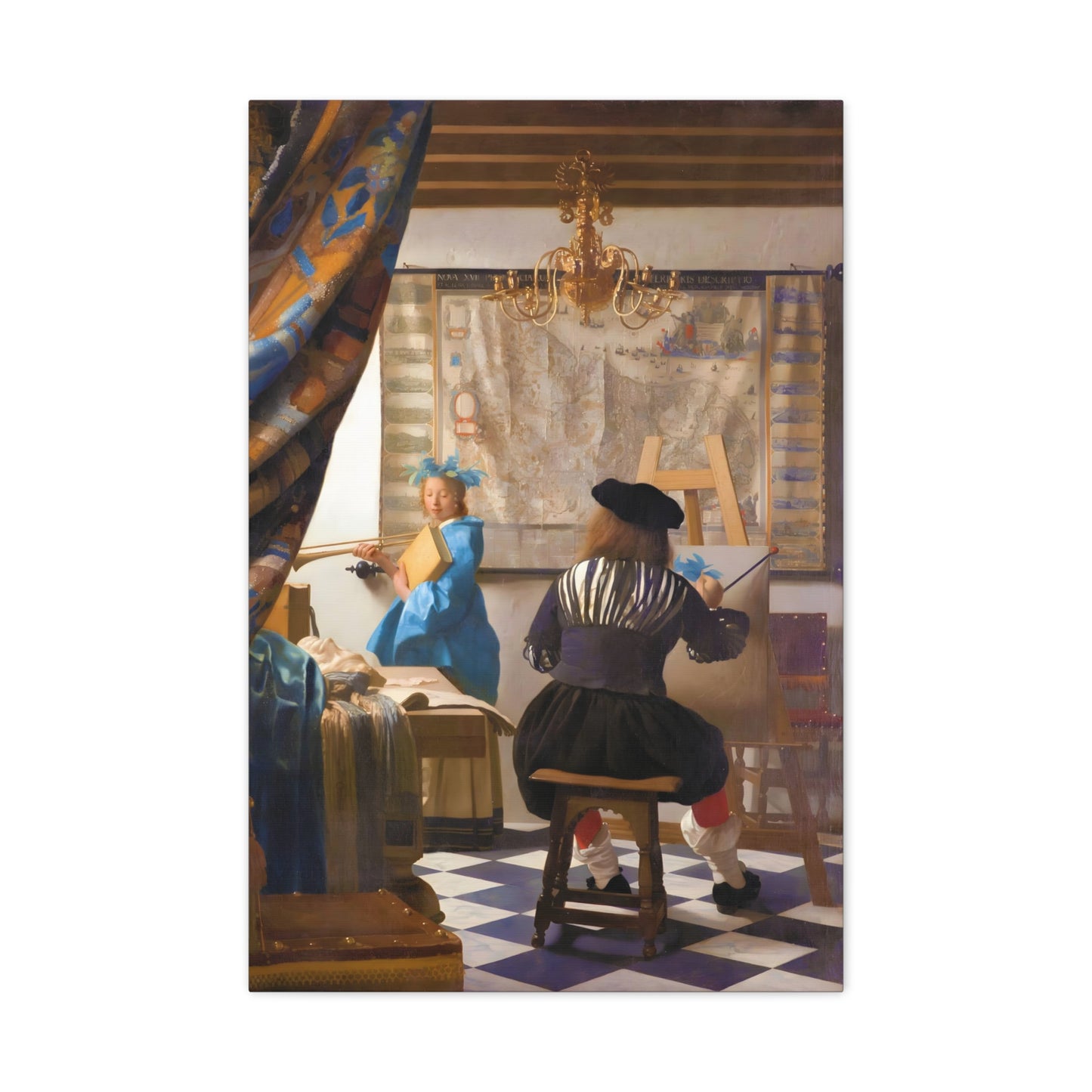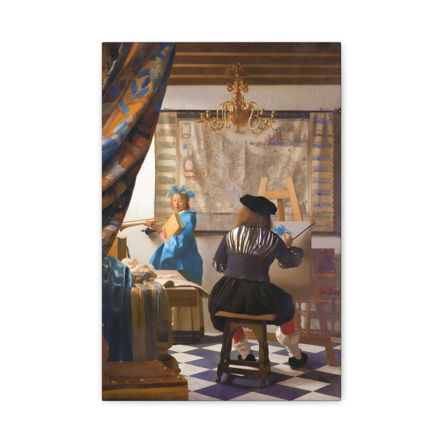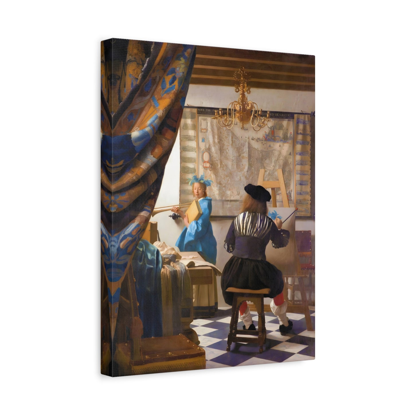Step into a world of artistic mastery with The Art of Painting by Johannes Vermeer, a masterpiece created in 1666. This exquisite artwork captures the essence of the creative process, with Vermeer himself depicted at his easel, immersed in the act of painting. The rich colors, meticulous details, and masterful use of light transport you to a bygone era of artistic brilliance. Our meticulously replicated canvas art allows you to bring this captivating scene into your own home, infusing your space with the beauty and sophistication of Vermeer's genius. Embrace the allure of this renowned painting and let it inspire your own artistic journey.